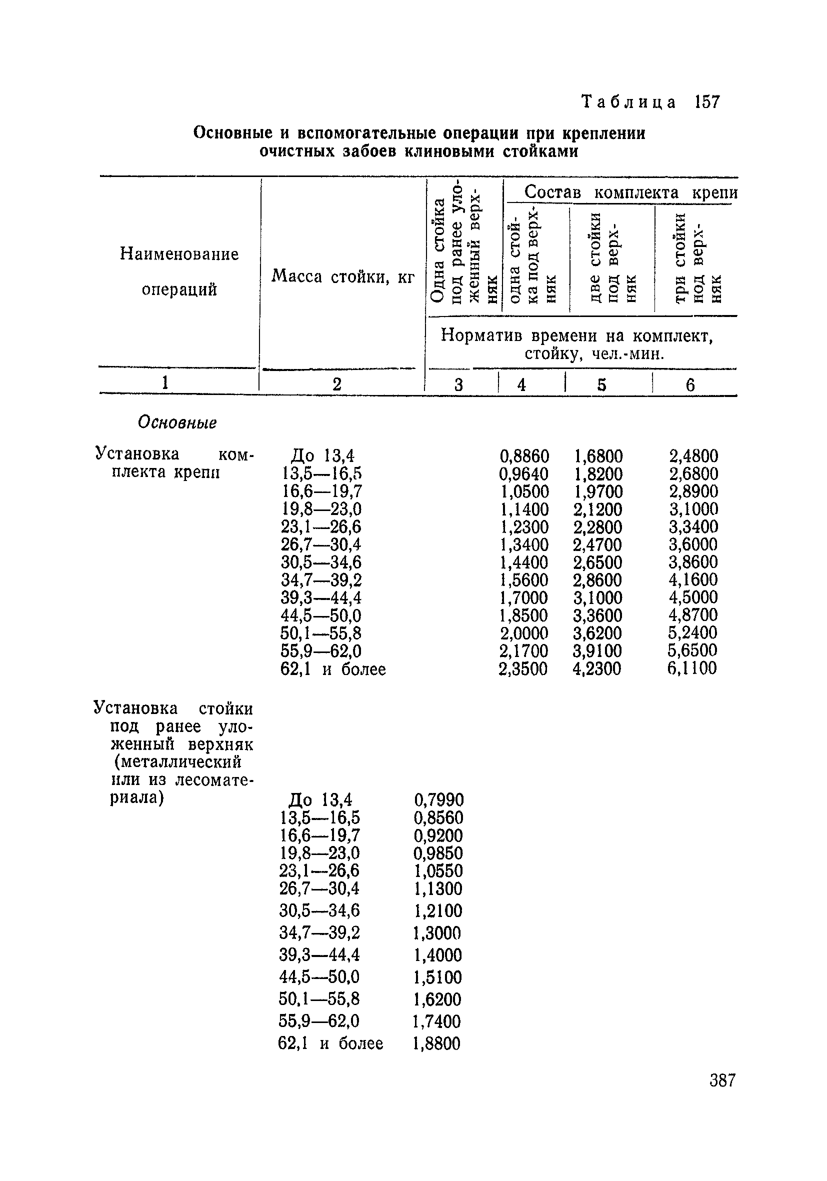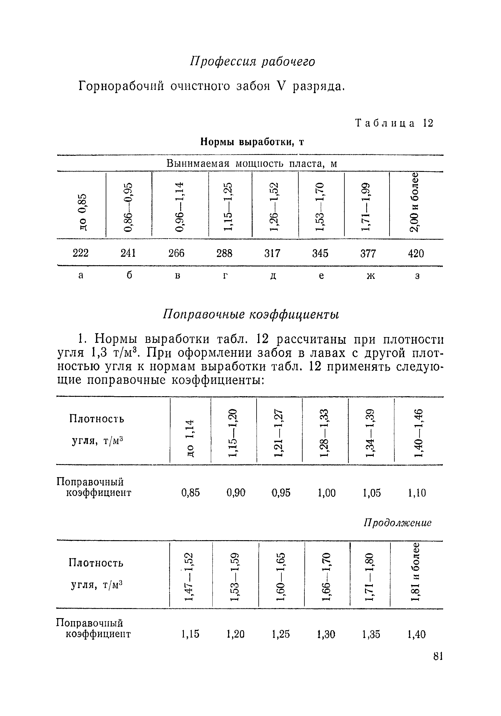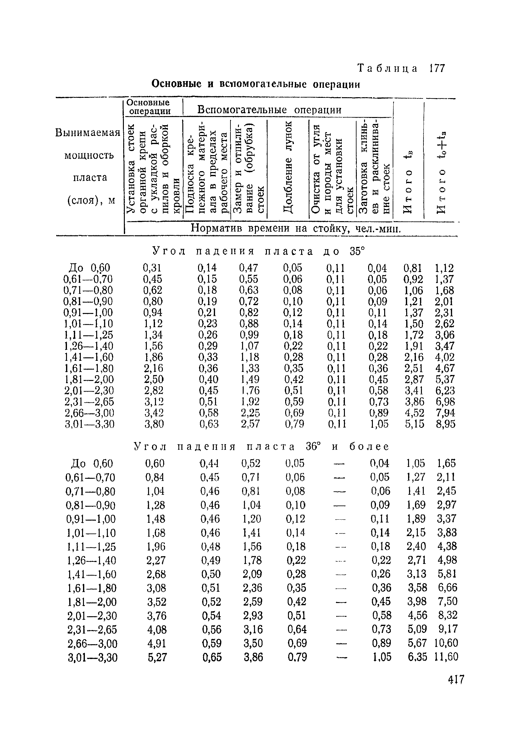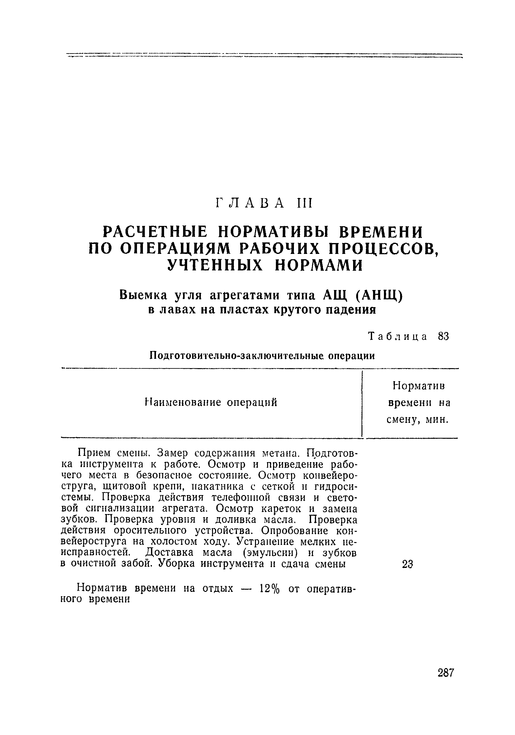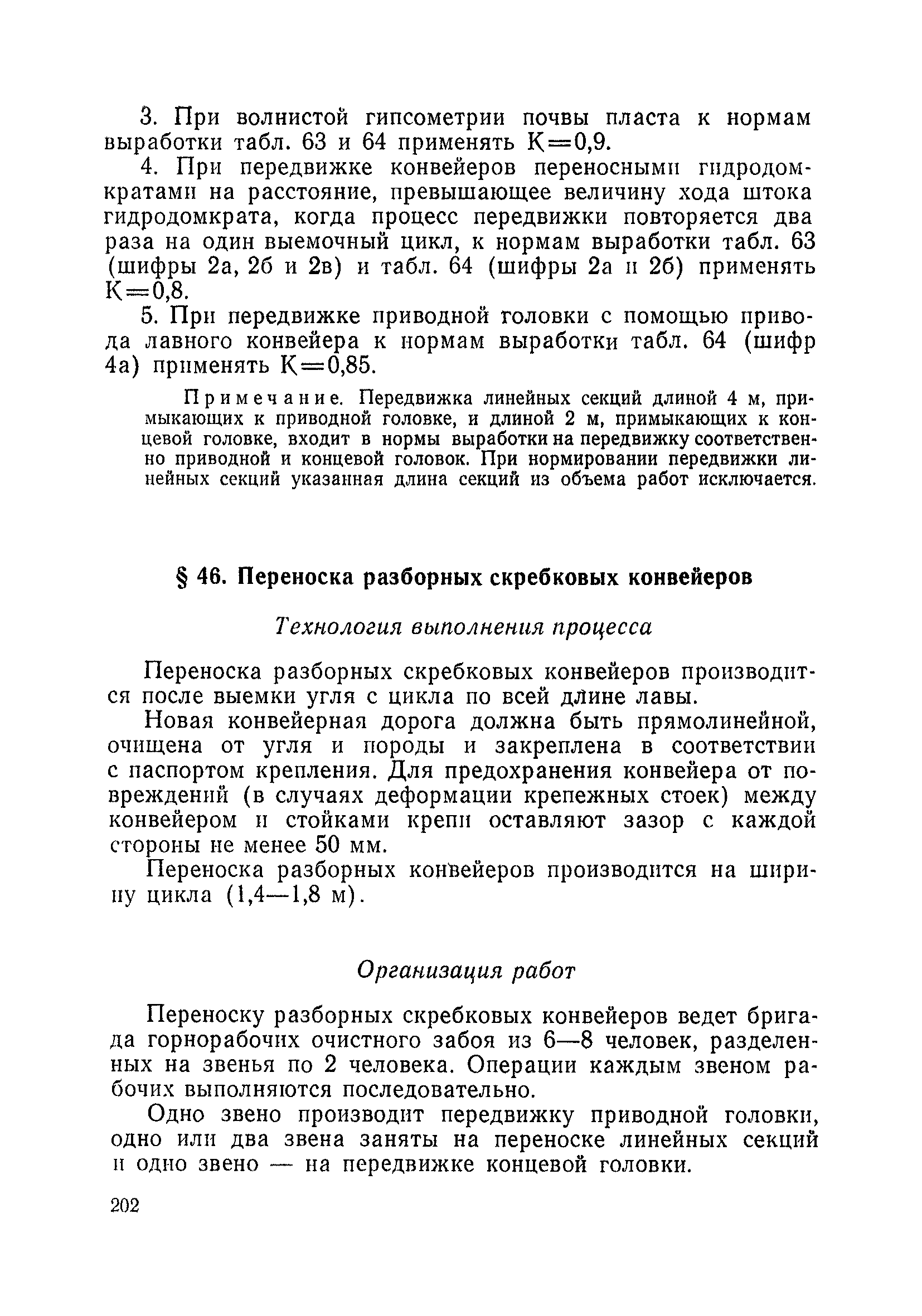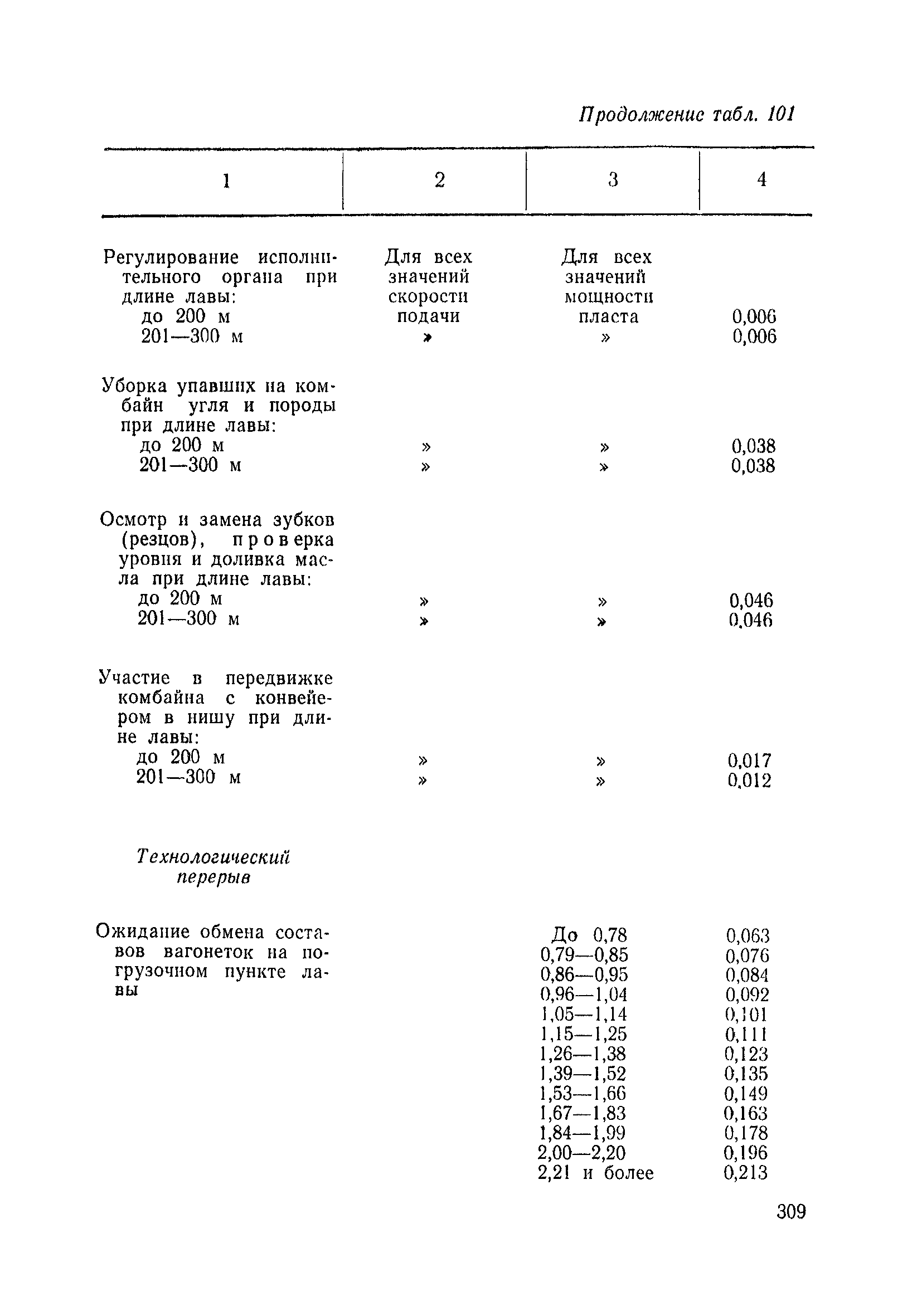 Типовые нормы выработки на очистные работы (кроме агрегатных) для угольных шахт| Статус: | справочные материалы, мп, тпр | | Название рус.: | Типовые нормы выработки на очистные работы (кроме агрегатных) для угольных шахт | | Дата добавления в базу: | 01.01.2019 | | Дата актуализации: | 01.01.2021 | | Область применения: | Типовые нормы выработки на очистные работы для угольных шахт рекомендуются для использования в качестве основы при разработке единых отраслевых и бассейновых норм выработки, а также для применения на предприятиях как местных технически обоснованных норм после утверждения их руководством по согласованию с соответствующим комитетом профсоюза и нормативно-исследовательской станцией производственного объединения (комбината) | | Оглавление: | Общая часть Техническая часть Нормативная часть Глава I. Типовые нормы выработки § 1. Выемка угля агрегатами типа АЩ (АНЩ) в лавах на пластах крутого падения § 2. Выемка угля очистными механизированными комплексами типа КГД в лавах на пластах крутого падения § 3. Передвижка гидрофицированной посадочной крепи «Спутник» § 4. Выемка угля в лавах, оборудованных струговыми установками § 5. Оформление забоя после выемки угля струговыми установками § 6. Передвижка гидродомкратов конвейерного става при выемке угля струговыми установками § 7. Выемка угля узкозахватным комбайном типа КШ и подготовка его к выемке следующей полосы угля § 8. Оформление забоя после выемки угля узкозахватным комбайном типа КШ § 9. Выемка угля узкозахватными комбайнами типов 1К-101, 2К-52, МК-67, БК-52 и подготовка комбайна к выемке следующей полосы угля в лавах на пластах пологого и наклонного падения § 10. Оформление забоя после выемки угля узкозахватными комбайнами типов 1К-101, 2К-52, МК-67 и ВК-52 § 11. Выемка угля комбайнами типов УКР, «Темп», КТ в лавах на пластах наклонного и крутого падения § 12. Спуск (перегон) комбайнов типов УКР, «Темп», КТ в лавах на пластах наклонного и крутого падения с передвижной кран-балки § 13. Передвижка предохранительной лебедки 1ЛГКН § 14. Оформление забоя после выемки угля комбайнами типов УКР, «Темп», КТ в лавах на пластах наклонного падения § 15. Выемка угля в лавах комбайном типа «Урал-2М» и подготовка его к выемке следующей полосы угля § 16. Оформление забоя после выемки угля комбайном типа «Урал-2М» § 17. Выемка угля широкозахватными комбайнами в лавах на пологих и наклонных пластах § 18. Демонтаж, монтаж, перегон и разворот широкозахватных комбайнов в лавах на пологих и наклонных пластах § 19. Оформление забоев после выемки угля широкозахватными комбайнами § 20. Зарубка угля в лавах врубовыми машинами § 21. Перегон (спуск) врубовых машин § 22. Навалоотбойка, навалка угля § 23. Бурение шпуров по углю ручными электросверлами (пневмосверлами) в лавах и камерах § 24. Бурение длинных шпуров ручными электросверлами с принудительной подачей при безлюдной выемке угля на пластах крутого падения § 25. Уборка угля в очистных забоях с помощью скреперной установки § 26. Передвижка скреперной установки § 27. Выемка угля отбойными молотками § 28. Выемка угля с применением ВМ в очистных забоях на пластах крутого падения § 29. Выемка угля под жесткими и эластичными щитами § 30. Выемка угля под арочными щитами § 31. Крепление очистных забоев металлическими (клиновыми и гидравлическими) стойками на пластах пологого и наклонного падения § 32. К