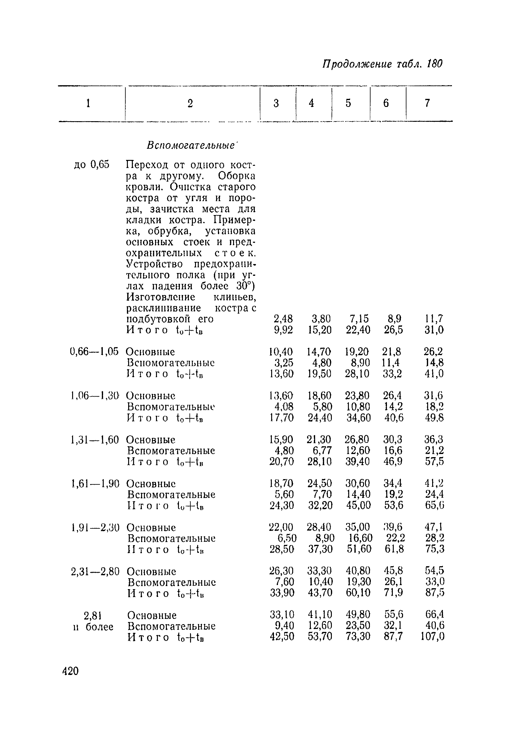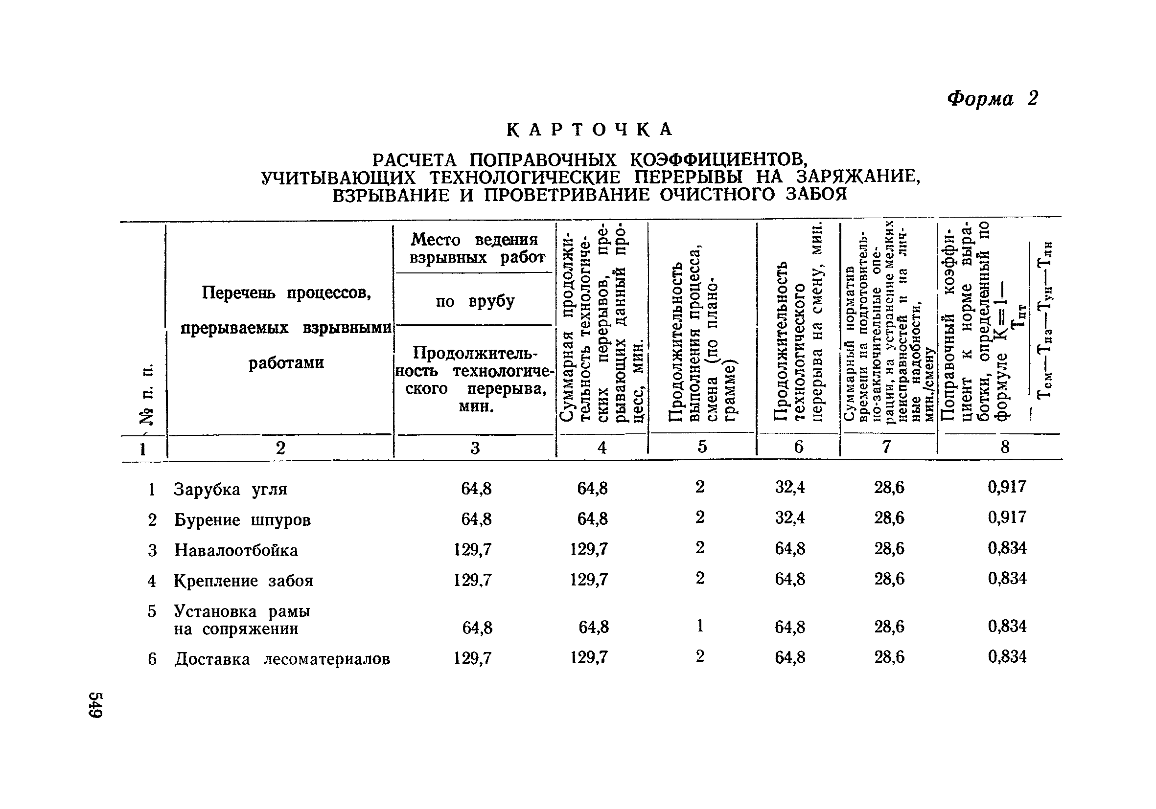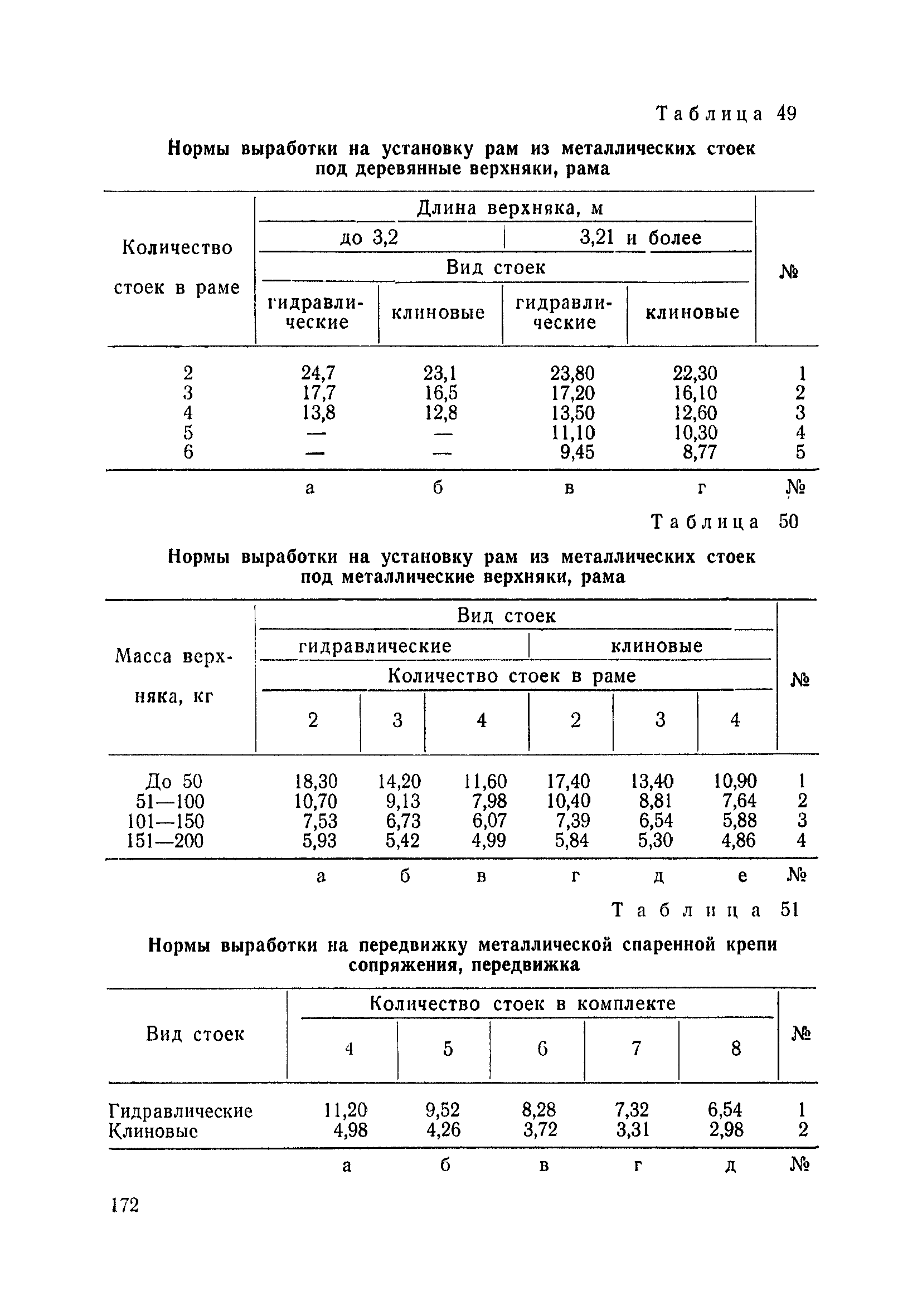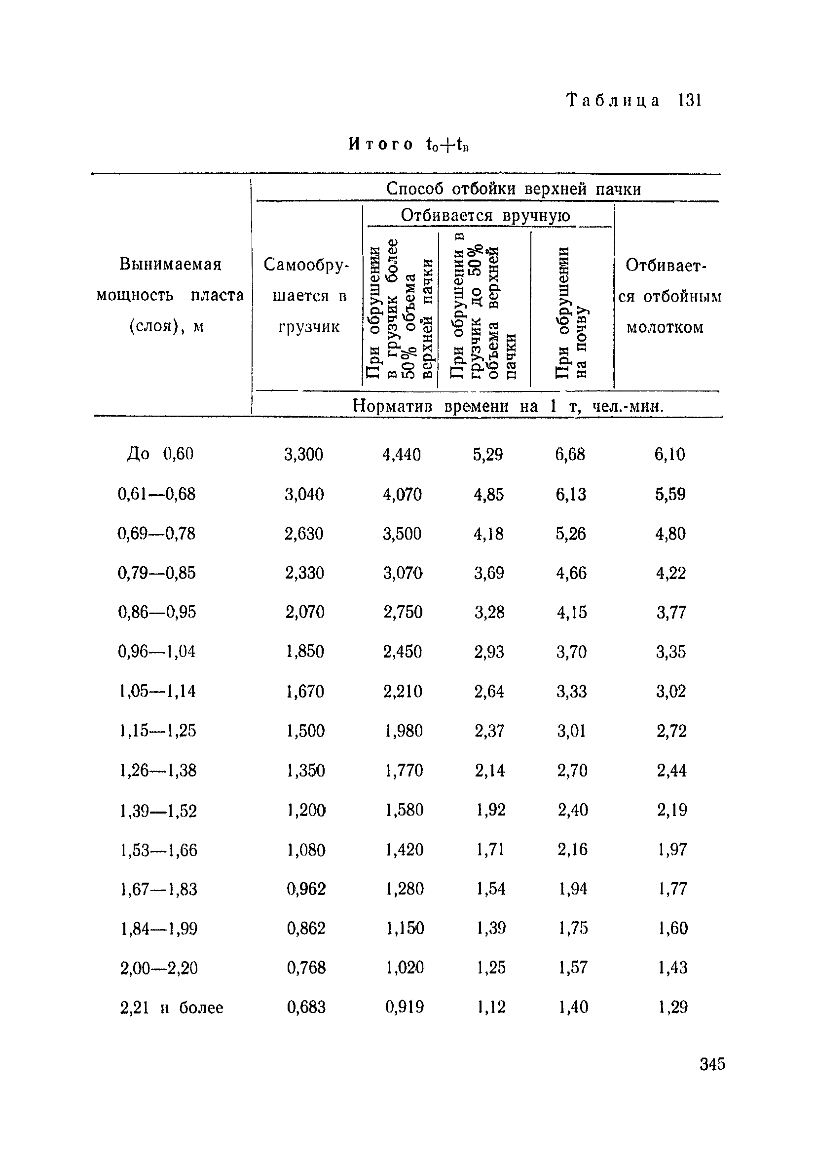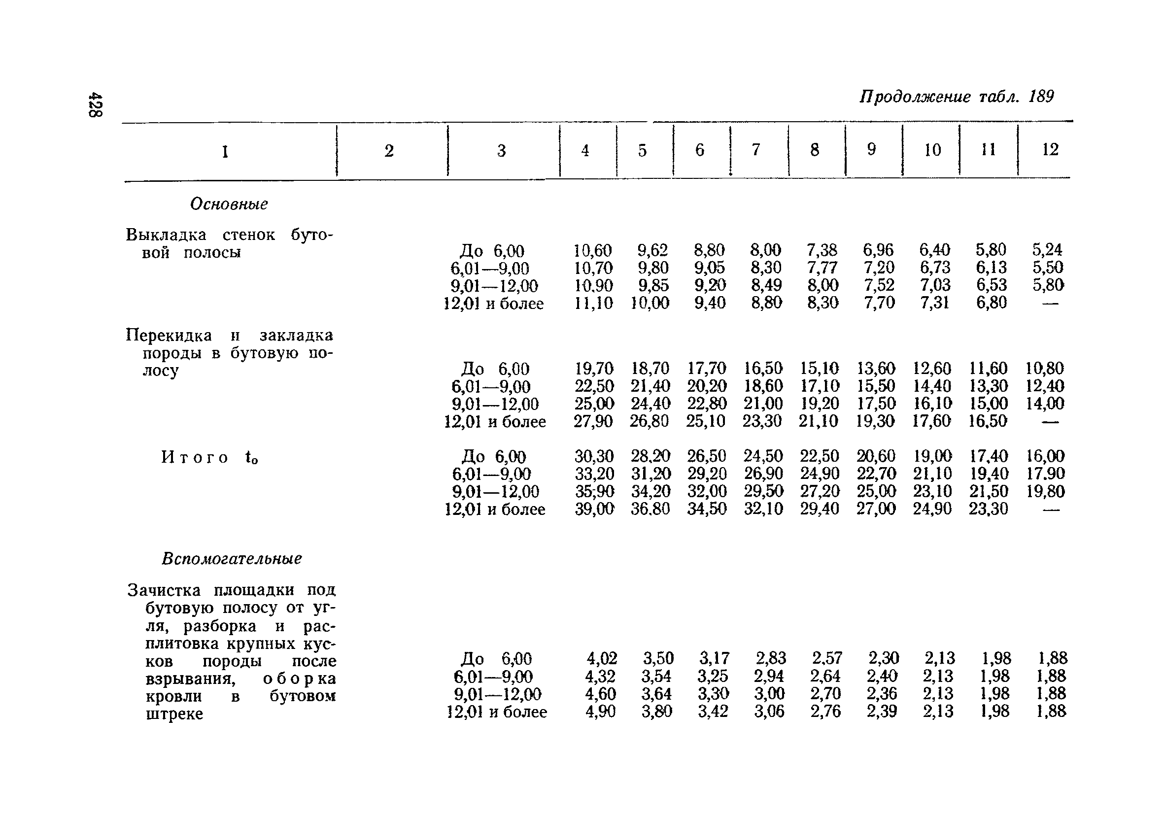 Типовые нормы выработки на очистные работы (кроме агрегатных) для угольных шахт| Статус: | справочные материалы, мп, тпр | | Название рус.: | Типовые нормы выработки на очистные работы (кроме агрегатных) для угольных шахт | | Дата добавления в базу: | 01.01.2019 | | Дата актуализации: | 01.01.2021 | | Область применения: | Типовые нормы выработки на очистные работы для угольных шахт рекомендуются для использования в качестве основы при разработке единых отраслевых и бассейновых норм выработки, а также для применения на предприятиях как местных технически обоснованных норм после утверждения их руководством по согласованию с соответствующим комитетом профсоюза и нормативно-исследовательской станцией производственного объединения (комбината) | | Оглавление: | Общая часть Техническая часть Нормативная часть Глава I. Типовые нормы выработки § 1. Выемка угля агрегатами типа АЩ (АНЩ) в лавах на пластах крутого падения § 2. Выемка угля очистными механизированными комплексами типа КГД в лавах на пластах крутого падения § 3. Передвижка гидрофицированной посадочной крепи «Спутник» § 4. Выемка угля в лавах, оборудованных струговыми установками § 5. Оформление забоя после выемки угля струговыми установками § 6. Передвижка гидродомкратов конвейерного става при выемке угля струговыми установками § 7. Выемка угля узкозахватным комбайном типа КШ и подготовка его к выемке следующей полосы угля § 8. Оформление забоя после выемки угля узкозахватным комбайном типа КШ § 9. Выемка угля узкозахватными комбайнами типов 1К-101, 2К-52, МК-67, БК-52 и подготовка комбайна к выемке следующей полосы угля в лавах на пластах пологого и наклонного падения § 10. Оформление забоя после выемки угля узкозахватными комбайнами типов 1К-101, 2К-52, МК-67 и ВК-52 § 11. Выемка угля комбайнами типов УКР, «Темп», КТ в лавах на пластах наклонного и крутого падения § 12. Спуск (перегон) комбайнов типов УКР, «Темп», КТ в лавах на пластах наклонного и крутого падения с передвижной кран-балки § 13. Передвижка предохранительной лебедки 1ЛГКН § 14. Оформление забоя после выемки угля комбайнами типов УКР, «Темп», КТ в лавах на пластах наклонного падения § 15. Выемка угля в лавах комбайном типа «Урал-2М» и подготовка его к выемке следующей полосы угля § 16. Оформление забоя после выемки угля комбайном типа «Урал-2М» § 17. Выемка угля широкозахватными комбайнами в лавах на пологих и наклонных пластах § 18. Демонтаж, монтаж, перегон и разворот широкозахватных комбайнов в лавах на пологих и наклонных пластах § 19. Оформление забоев после выемки угля широкозахватными комбайнами § 20. Зарубка угля в лавах врубовыми машинами § 21. Перегон (спуск) врубовых машин § 22. Навалоотбойка, навалка угля § 23. Бурение шпуров по углю ручными электросверлами (пневмосверлами) в лавах и камерах § 24. Бурение длинных шпуров ручными электросверлами с принудительной подачей при безлюдной выемке угля на пластах крутого падения § 25. Уборка угля в очистных забоях с помощью скреперной установки § 26. Передвижка скреперной установки § 27. Выемка угля отбойными молотками § 28. Выемка угля с применением ВМ в очистных забоях на пластах крутого падения § 29. Выемка угля под жесткими и эластичными щитами § 30. Выемка угля под арочными щитами § 31. Крепление очистных забоев металлическими (клиновыми и гидравлическими) стойками на пластах пологого и наклонного падения § 32. К