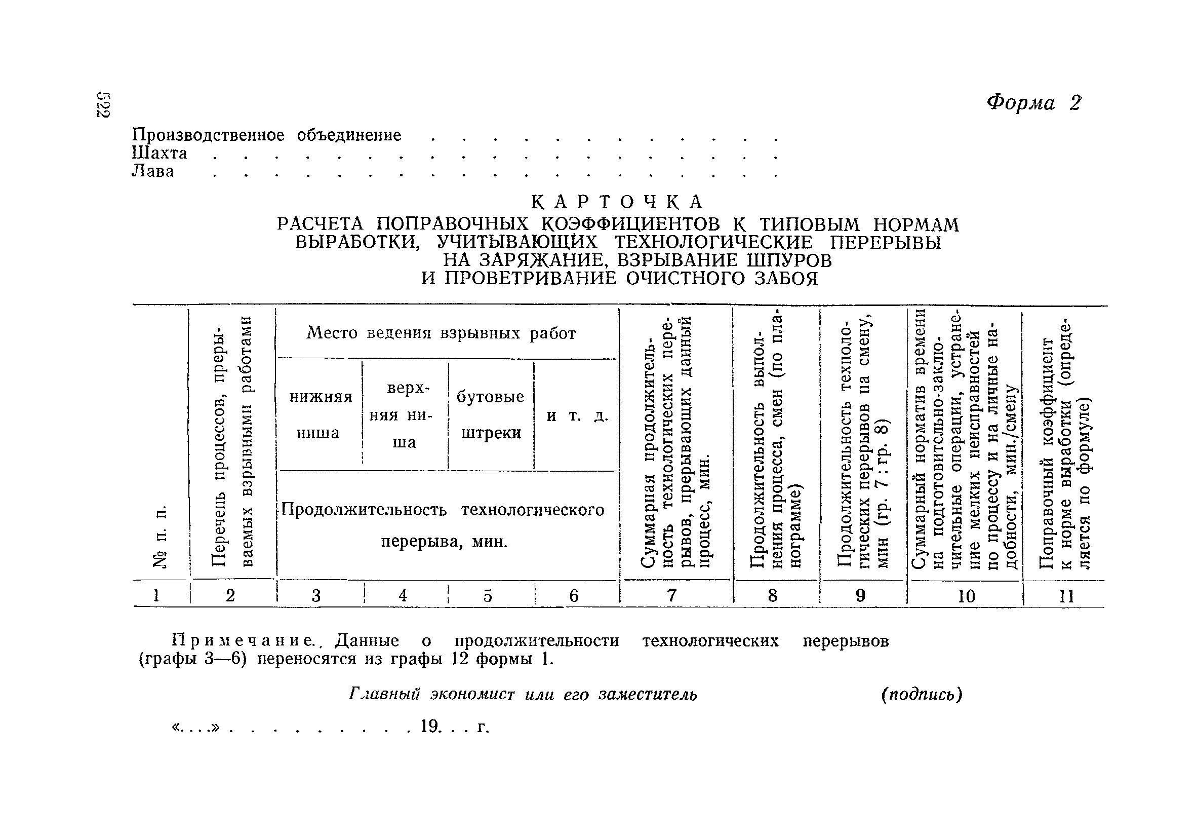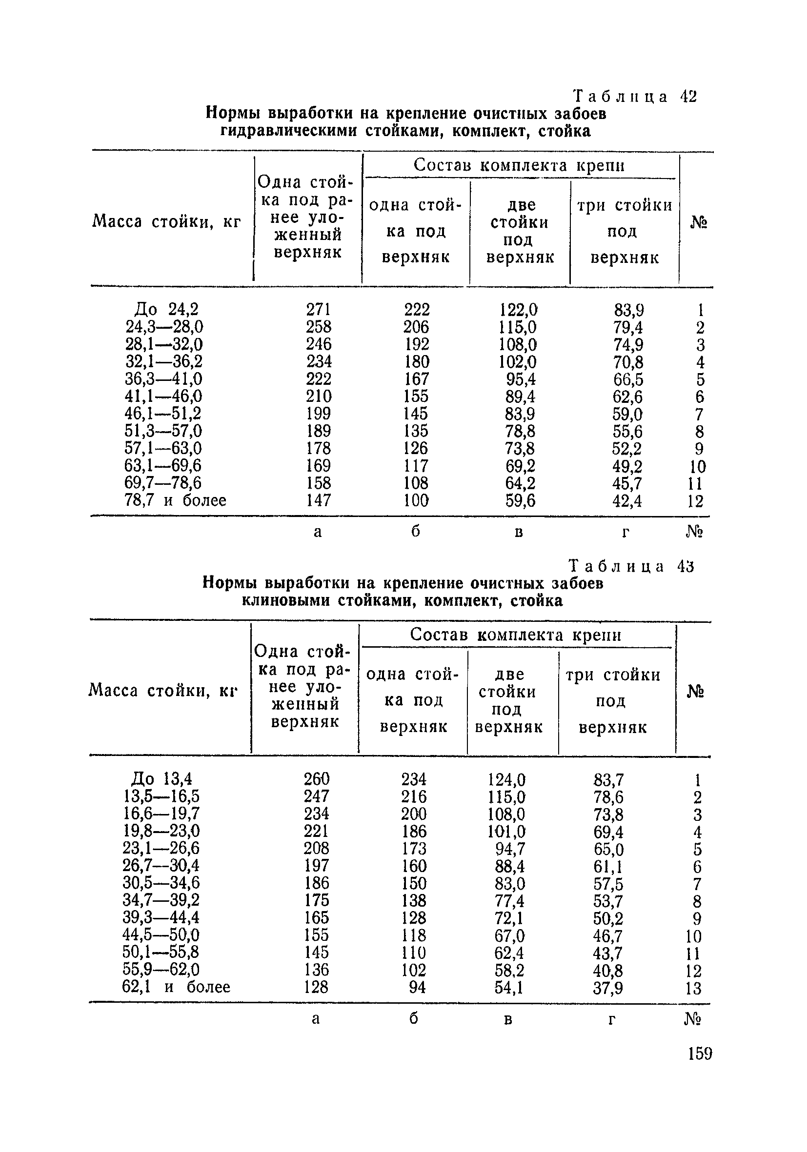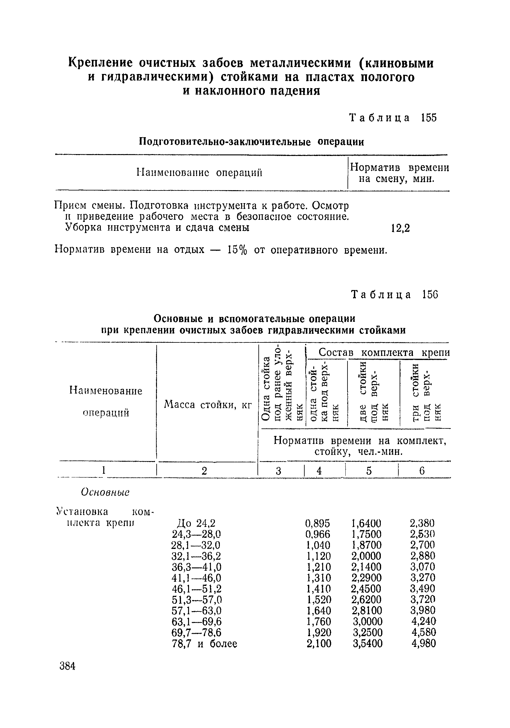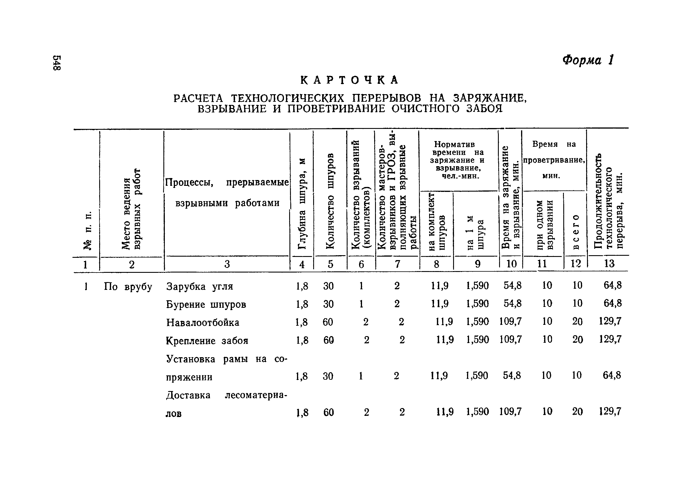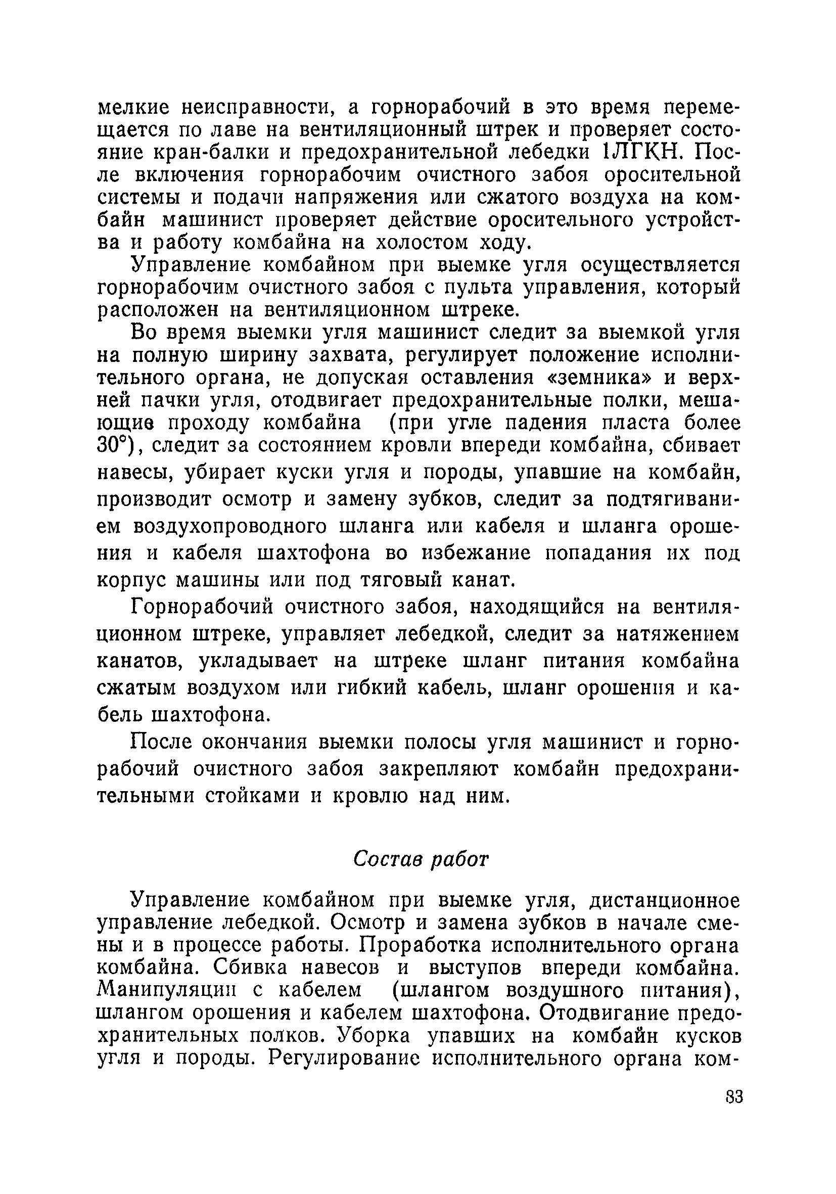 Типовые нормы выработки на очистные работы (кроме агрегатных) для угольных шахт| Статус: | справочные материалы, мп, тпр | | Название рус.: | Типовые нормы выработки на очистные работы (кроме агрегатных) для угольных шахт | | Дата добавления в базу: | 01.01.2019 | | Дата актуализации: | 01.01.2021 | | Область применения: | Типовые нормы выработки на очистные работы для угольных шахт рекомендуются для использования в качестве основы при разработке единых отраслевых и бассейновых норм выработки, а также для применения на предприятиях как местных технически обоснованных норм после утверждения их руководством по согласованию с соответствующим комитетом профсоюза и нормативно-исследовательской станцией производственного объединения (комбината) | | Оглавление: | Общая часть Техническая часть Нормативная часть Глава I. Типовые нормы выработки § 1. Выемка угля агрегатами типа АЩ (АНЩ) в лавах на пластах крутого падения § 2. Выемка угля очистными механизированными комплексами типа КГД в лавах на пластах крутого падения § 3. Передвижка гидрофицированной посадочной крепи «Спутник» § 4. Выемка угля в лавах, оборудованных струговыми установками § 5. Оформление забоя после выемки угля струговыми установками § 6. Передвижка гидродомкратов конвейерного става при выемке угля струговыми установками § 7. Выемка угля узкозахватным комбайном типа КШ и подготовка его к выемке следующей полосы угля § 8. Оформление забоя после выемки угля узкозахватным комбайном типа КШ § 9. Выемка угля узкозахватными комбайнами типов 1К-101, 2К-52, МК-67, БК-52 и подготовка комбайна к выемке следующей полосы угля в лавах на пластах пологого и наклонного падения § 10. Оформление забоя после выемки угля узкозахватными комбайнами типов 1К-101, 2К-52, МК-67 и ВК-52 § 11. Выемка угля комбайнами типов УКР, «Темп», КТ в лавах на пластах наклонного и крутого падения § 12. Спуск (перегон) комбайнов типов УКР, «Темп», КТ в лавах на пластах наклонного и крутого падения с передвижной кран-балки § 13. Передвижка предохранительной лебедки 1ЛГКН § 14. Оформление забоя после выемки угля комбайнами типов УКР, «Темп», КТ в лавах на пластах наклонного падения § 15. Выемка угля в лавах комбайном типа «Урал-2М» и подготовка его к выемке следующей полосы угля § 16. Оформление забоя после выемки угля комбайном типа «Урал-2М» § 17. Выемка угля широкозахватными комбайнами в лавах на пологих и наклонных пластах § 18. Демонтаж, монтаж, перегон и разворот широкозахватных комбайнов в лавах на пологих и наклонных пластах § 19. Оформление забоев после выемки угля широкозахватными комбайнами § 20. Зарубка угля в лавах врубовыми машинами § 21. Перегон (спуск) врубовых машин § 22. Навалоотбойка, навалка угля § 23. Бурение шпуров по углю ручными электросверлами (пневмосверлами) в лавах и камерах § 24. Бурение длинных шпуров ручными электросверлами с принудительной подачей при безлюдной выемке угля на пластах крутого падения § 25. Уборка угля в очистных забоях с помощью скреперной установки § 26. Передвижка скреперной установки § 27. Выемка угля отбойными молотками § 28. Выемка угля с применением ВМ в очистных забоях на пластах крутого падения § 29. Выемка угля под жесткими и эластичными щитами § 30. Выемка угля под арочными щитами § 31. Крепление очистных забоев металлическими (клиновыми и гидравлическими) стойками на пластах пологого и наклонного падения § 32. К