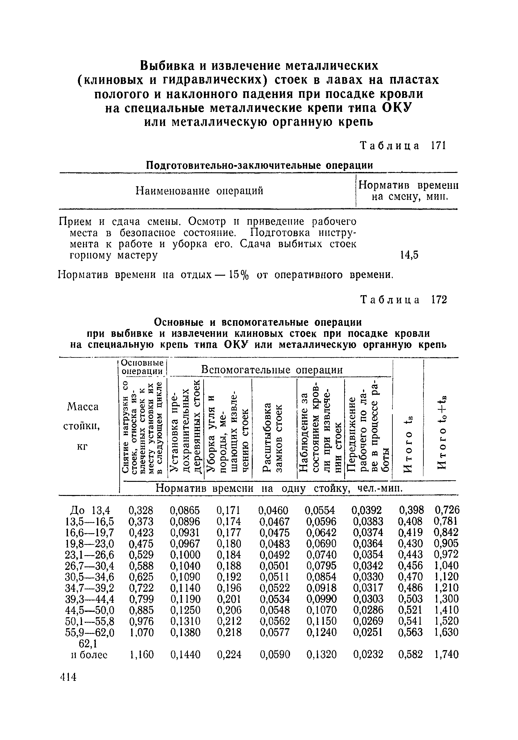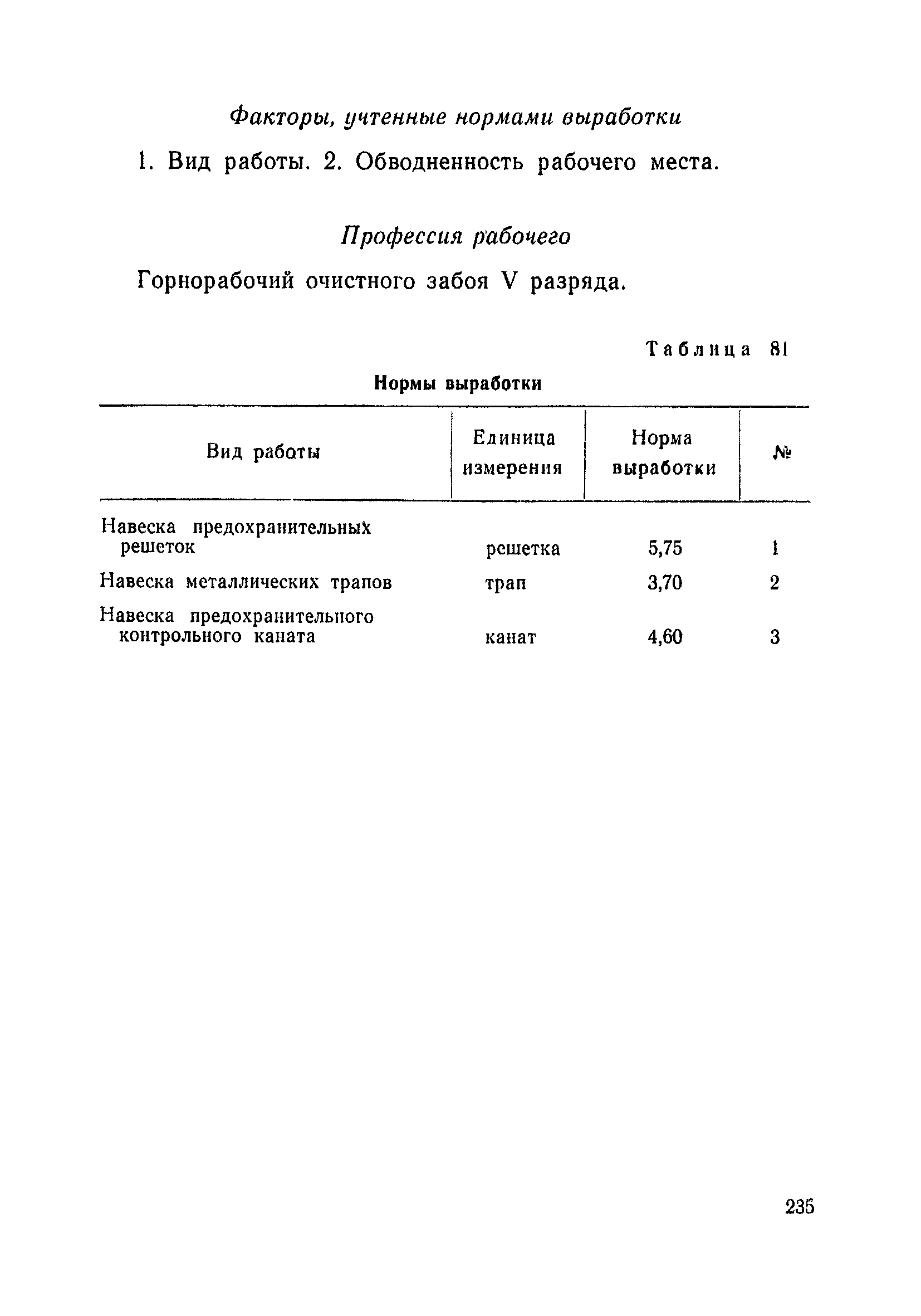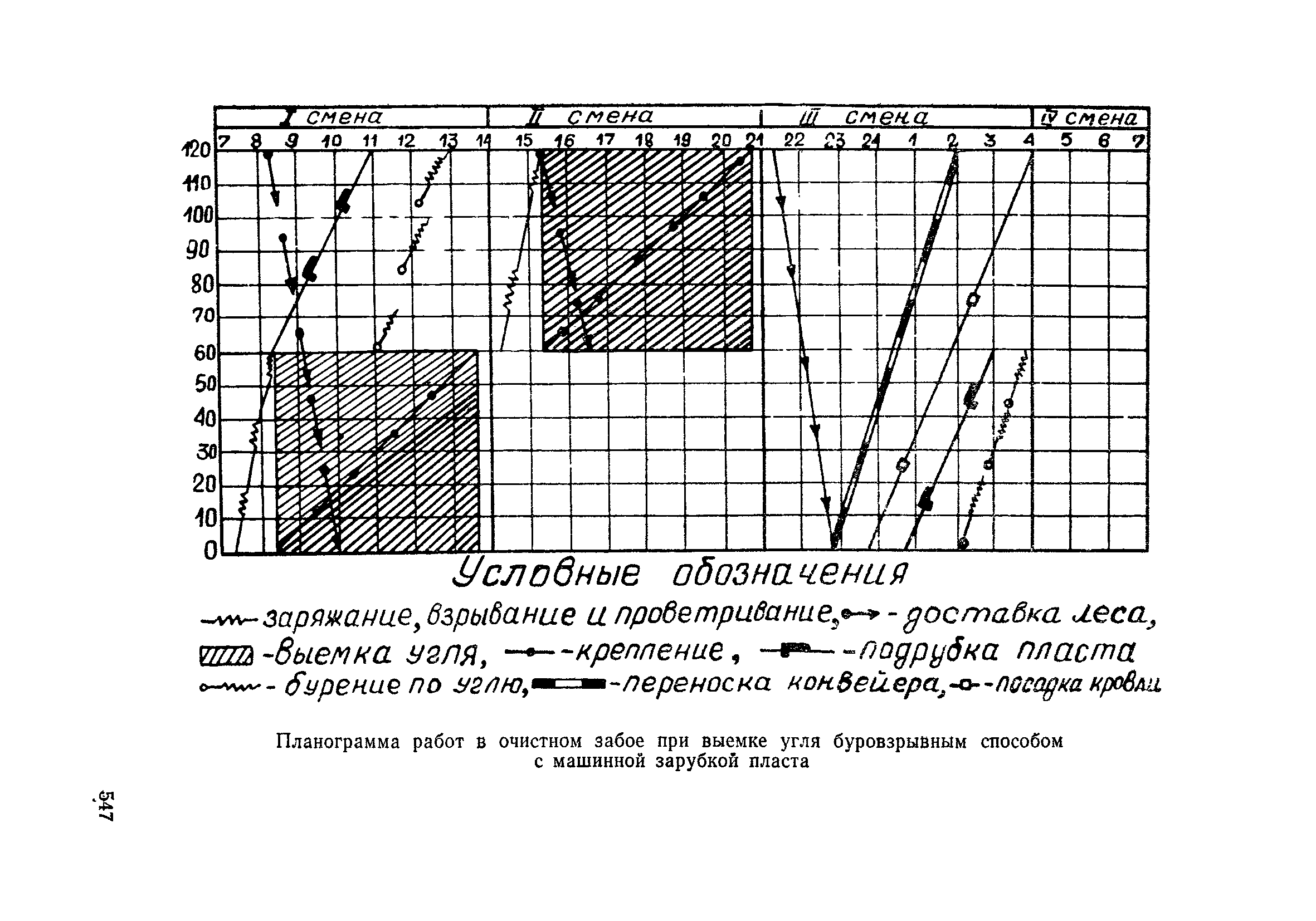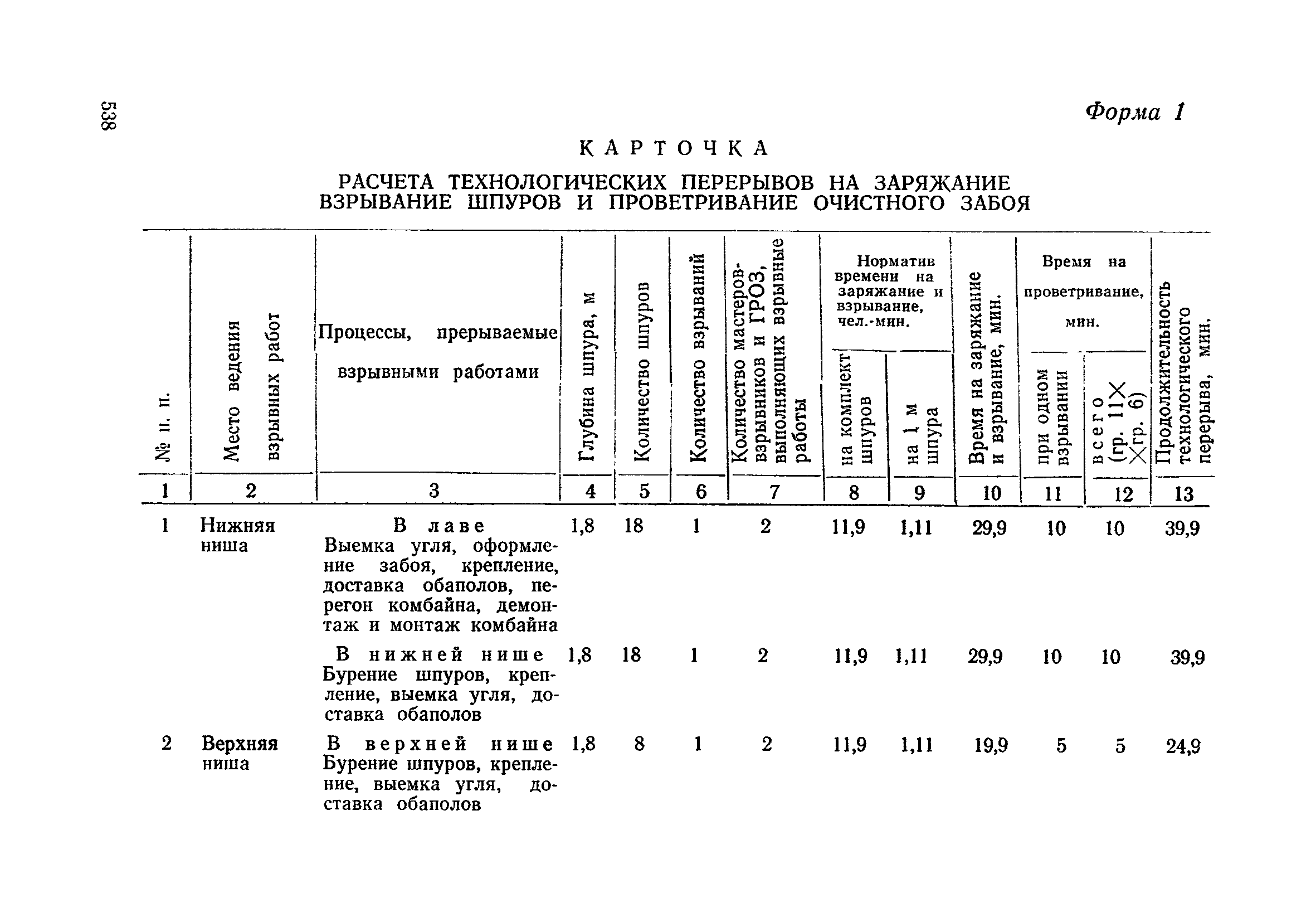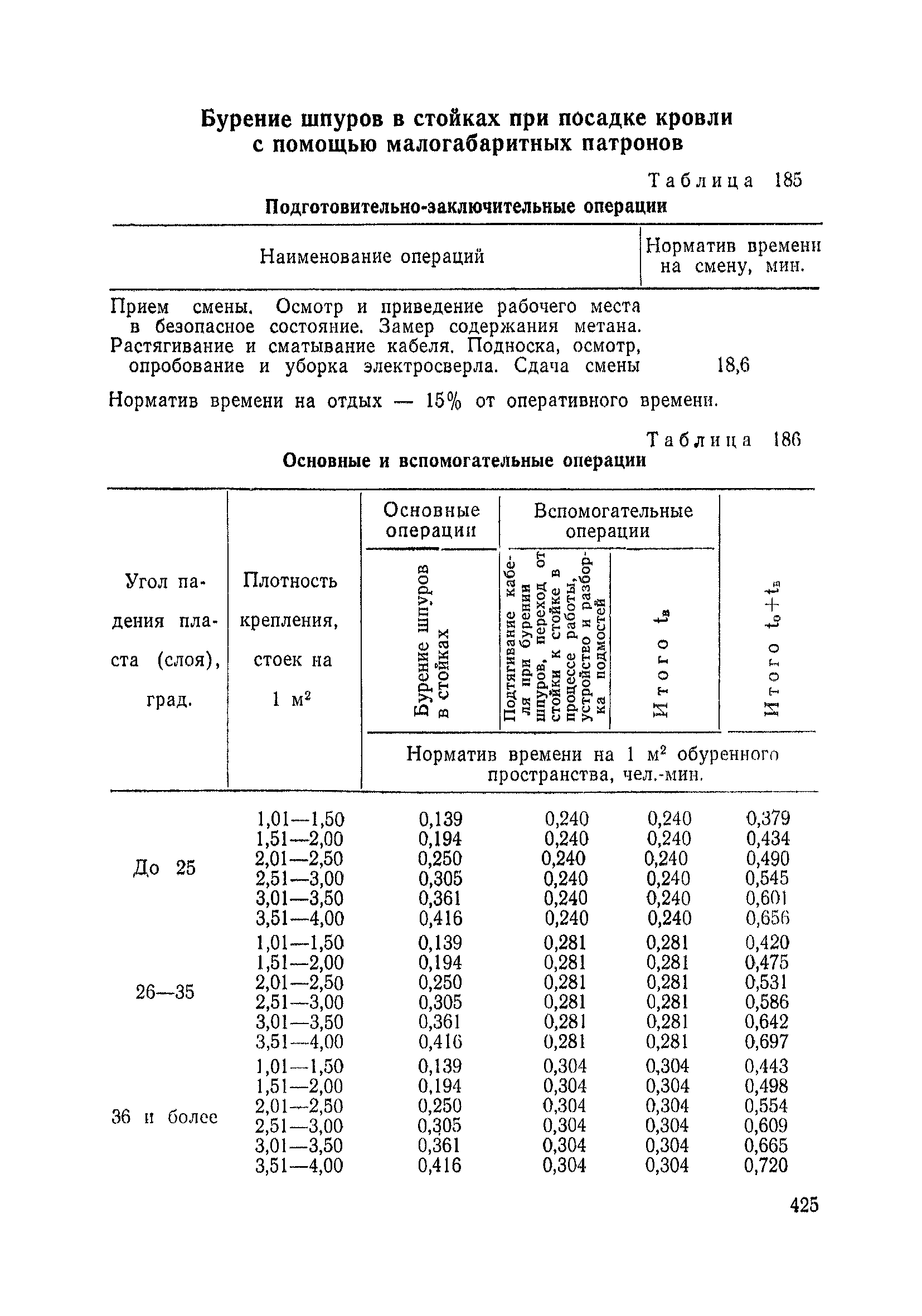 Типовые нормы выработки на очистные работы (кроме агрегатных) для угольных шахт| Статус: | справочные материалы, мп, тпр | | Название рус.: | Типовые нормы выработки на очистные работы (кроме агрегатных) для угольных шахт | | Дата добавления в базу: | 01.01.2019 | | Дата актуализации: | 01.01.2021 | | Область применения: | Типовые нормы выработки на очистные работы для угольных шахт рекомендуются для использования в качестве основы при разработке единых отраслевых и бассейновых норм выработки, а также для применения на предприятиях как местных технически обоснованных норм после утверждения их руководством по согласованию с соответствующим комитетом профсоюза и нормативно-исследовательской станцией производственного объединения (комбината) | | Оглавление: | Общая часть Техническая часть Нормативная часть Глава I. Типовые нормы выработки § 1. Выемка угля агрегатами типа АЩ (АНЩ) в лавах на пластах крутого падения § 2. Выемка угля очистными механизированными комплексами типа КГД в лавах на пластах крутого падения § 3. Передвижка гидрофицированной посадочной крепи «Спутник» § 4. Выемка угля в лавах, оборудованных струговыми установками § 5. Оформление забоя после выемки угля струговыми установками § 6. Передвижка гидродомкратов конвейерного става при выемке угля струговыми установками § 7. Выемка угля узкозахватным комбайном типа КШ и подготовка его к выемке следующей полосы угля § 8. Оформление забоя после выемки угля узкозахватным комбайном типа КШ § 9. Выемка угля узкозахватными комбайнами типов 1К-101, 2К-52, МК-67, БК-52 и подготовка комбайна к выемке следующей полосы угля в лавах на пластах пологого и наклонного падения § 10. Оформление забоя после выемки угля узкозахватными комбайнами типов 1К-101, 2К-52, МК-67 и ВК-52 § 11. Выемка угля комбайнами типов УКР, «Темп», КТ в лавах на пластах наклонного и крутого падения § 12. Спуск (перегон) комбайнов типов УКР, «Темп», КТ в лавах на пластах наклонного и крутого падения с передвижной кран-балки § 13. Передвижка предохранительной лебедки 1ЛГКН § 14. Оформление забоя после выемки угля комбайнами типов УКР, «Темп», КТ в лавах на пластах наклонного падения § 15. Выемка угля в лавах комбайном типа «Урал-2М» и подготовка его к выемке следующей полосы угля § 16. Оформление забоя после выемки угля комбайном типа «Урал-2М» § 17. Выемка угля широкозахватными комбайнами в лавах на пологих и наклонных пластах § 18. Демонтаж, монтаж, перегон и разворот широкозахватных комбайнов в лавах на пологих и наклонных пластах § 19. Оформление забоев после выемки угля широкозахватными комбайнами § 20. Зарубка угля в лавах врубовыми машинами § 21. Перегон (спуск) врубовых машин § 22. Навалоотбойка, навалка угля § 23. Бурение шпуров по углю ручными электросверлами (пневмосверлами) в лавах и камерах § 24. Бурение длинных шпуров ручными электросверлами с принудительной подачей при безлюдной выемке угля на пластах крутого падения § 25. Уборка угля в очистных забоях с помощью скреперной установки § 26. Передвижка скреперной установки § 27. Выемка угля отбойными молотками § 28. Выемка угля с применением ВМ в очистных забоях на пластах крутого падения § 29. Выемка угля под жесткими и эластичными щитами § 30. Выемка угля под арочными щитами § 31. Крепление очистных забоев металлическими (клиновыми и гидравлическими) стойками на пластах пологого и наклонного падения § 32. К