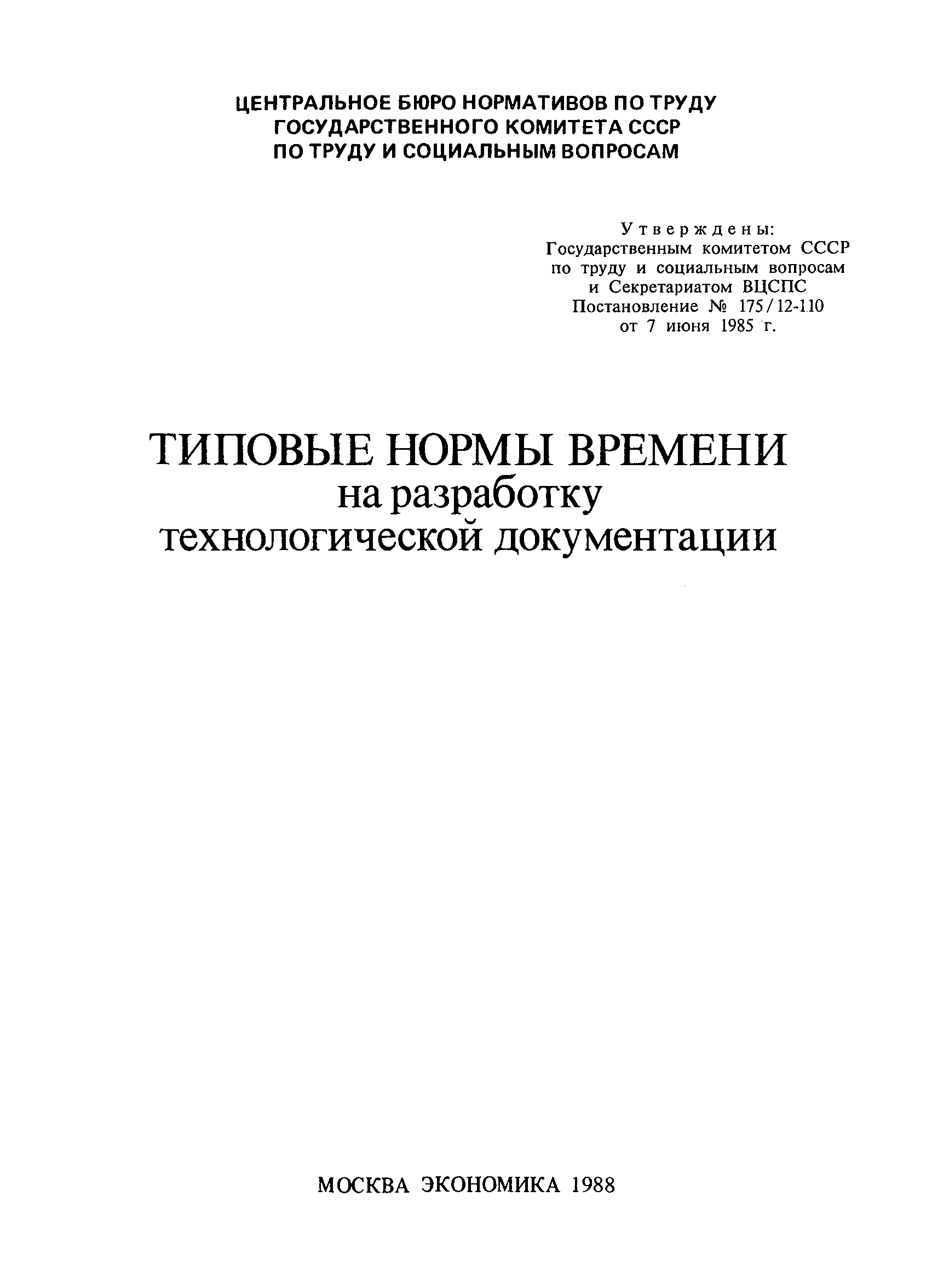 | Название рус.: | Типовые нормы времени на разработку технологической документации |