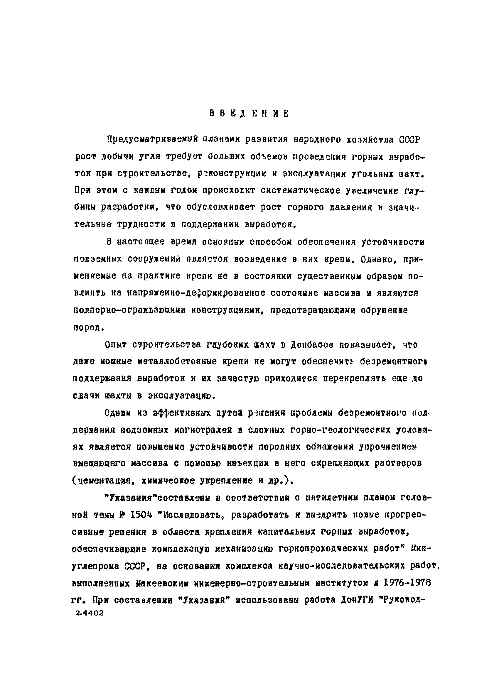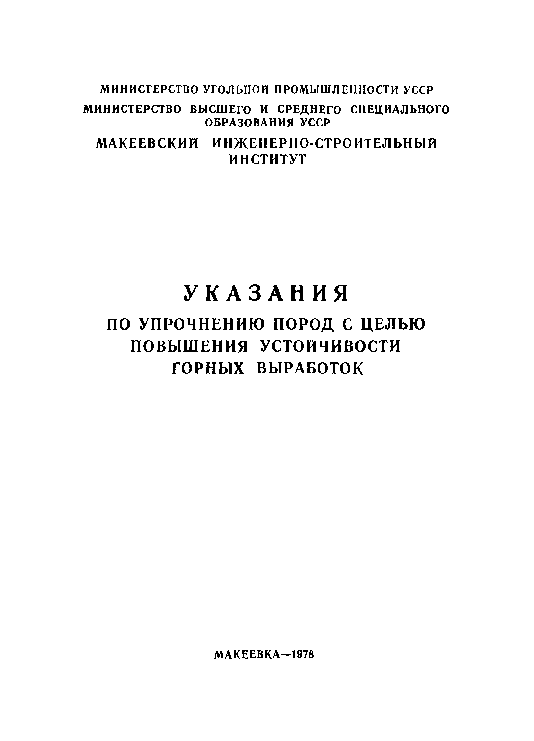 | Название рус.: | Указания по упрочнению пород с целью повышения устойчивости горных выработок |