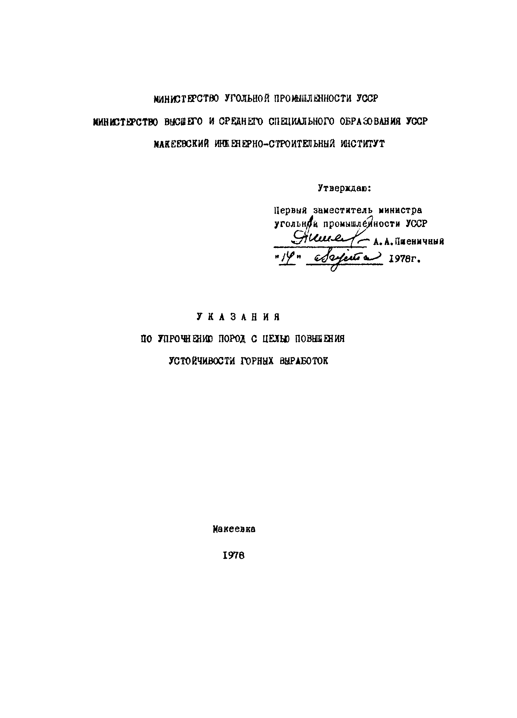 | Утверждён: | 14.08.1978 Министерство угольной промышленности СССР (USSR Ministry of the Coal Industry )
