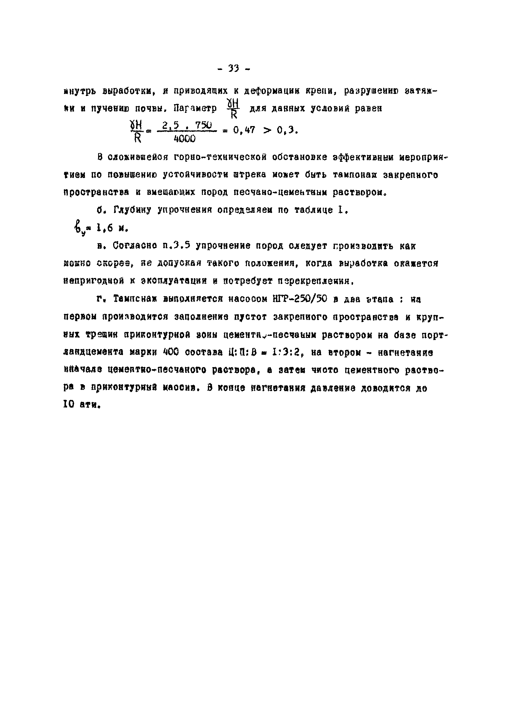 | Оглавление: | Принятые обозначения Введение 1. Общие положения 2. Область и условия применения 3. Геомеханические параметры упрочнения 4. Тампонажные растворы 5. Технология и организация работ по упрочнению 6. Технологическое оборудование 7. Примеры расчета параметров упрочнения Приложение 1. Значение функции Y = X1,2 Приложение 2. Значение функции Y = X2,67 Приложение 3. Значение функции Y = X1,67 Приложение 4. Значение функции Y |