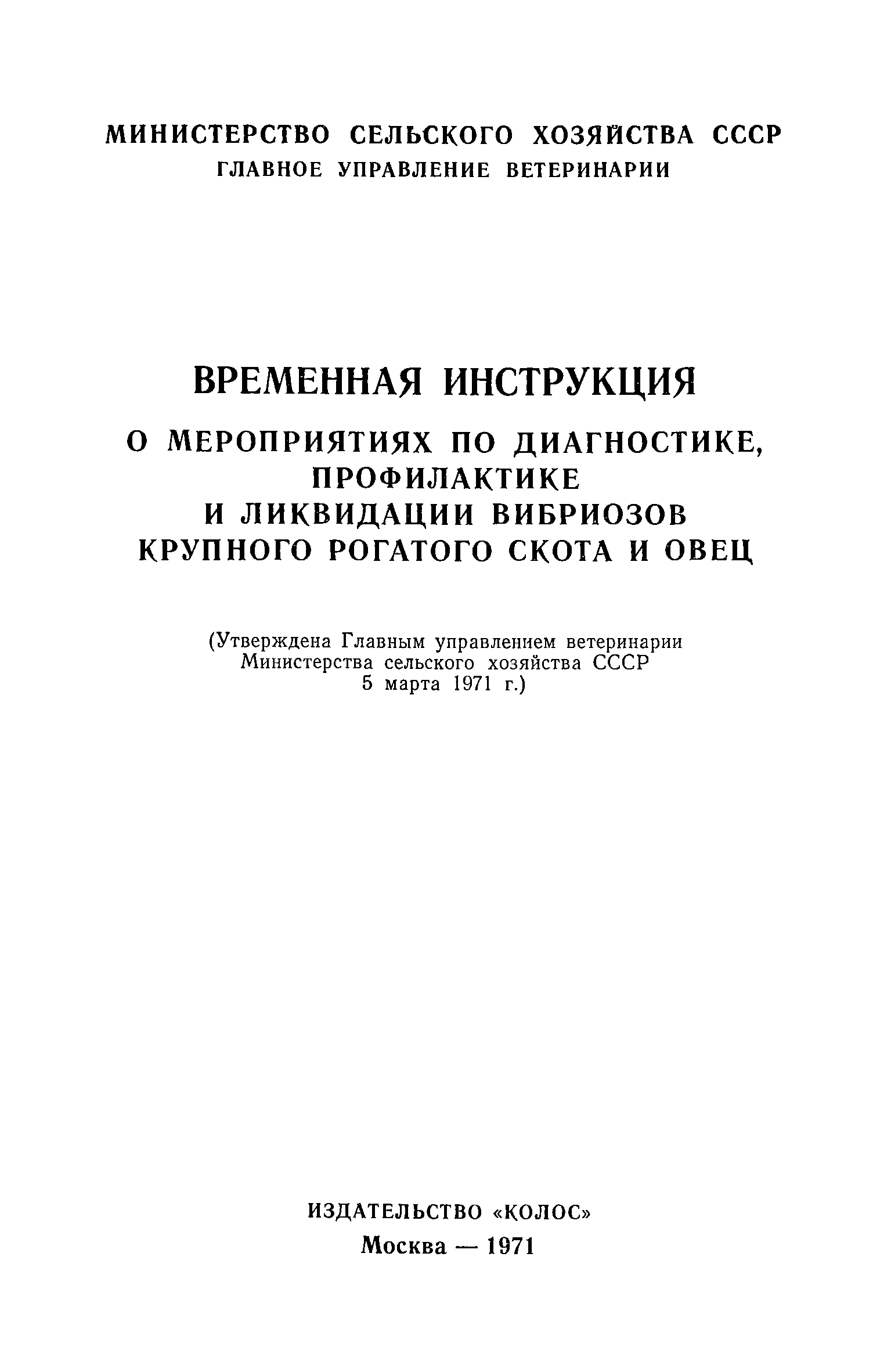 | Утверждён: | 05.03.1971 Главное управление ветеринарии Министерства сельского хозяйства СССР