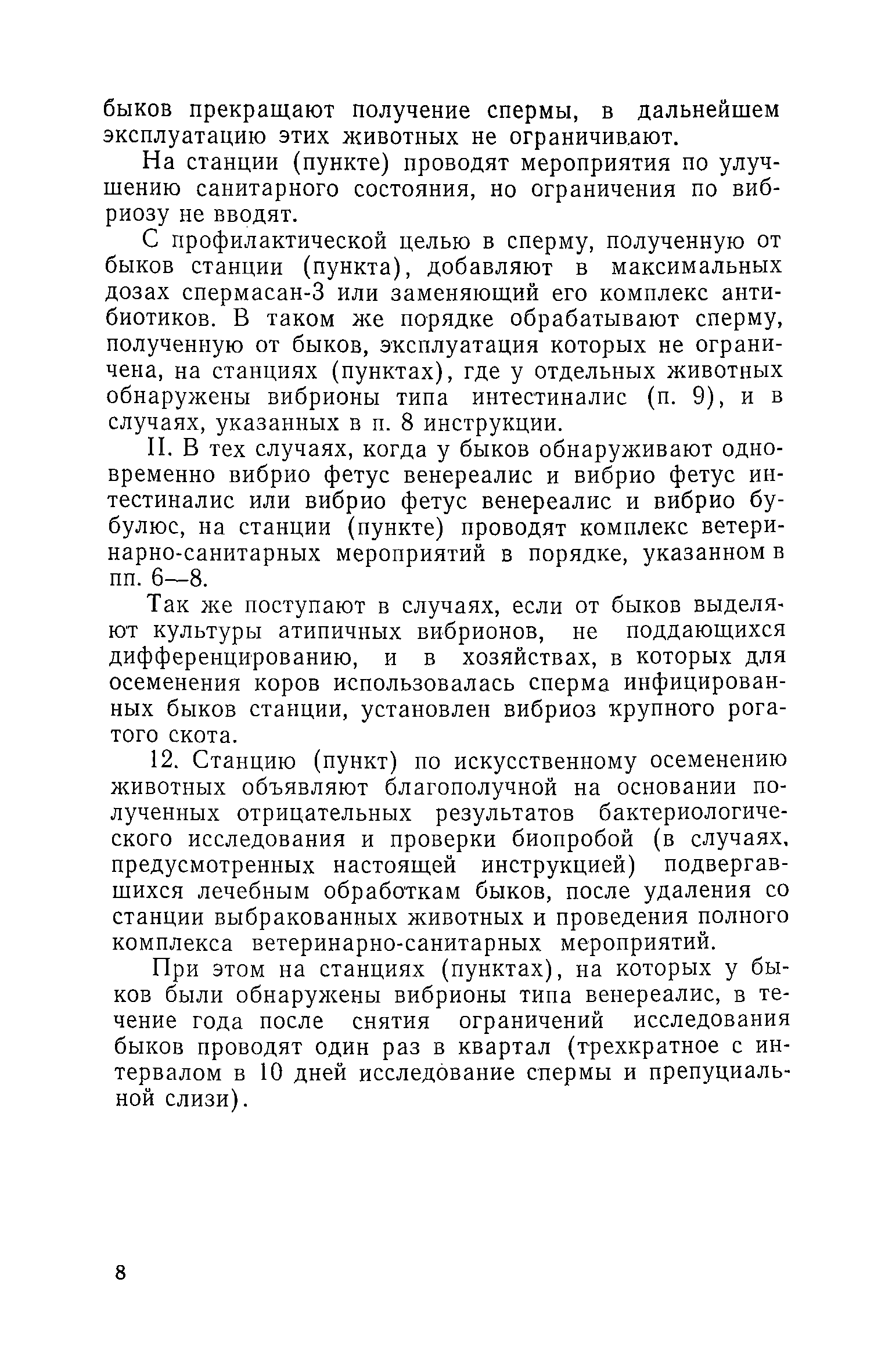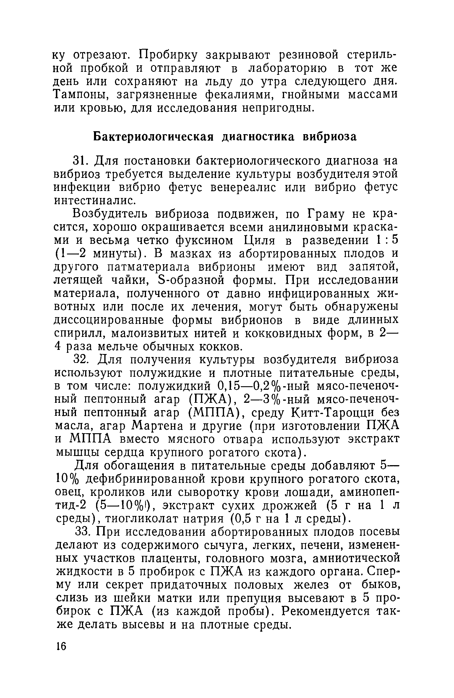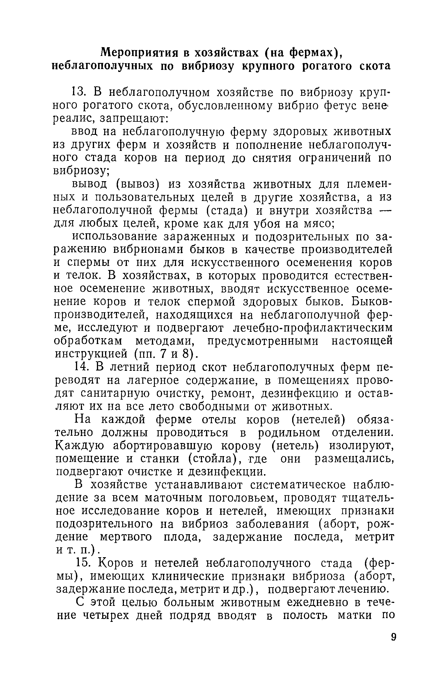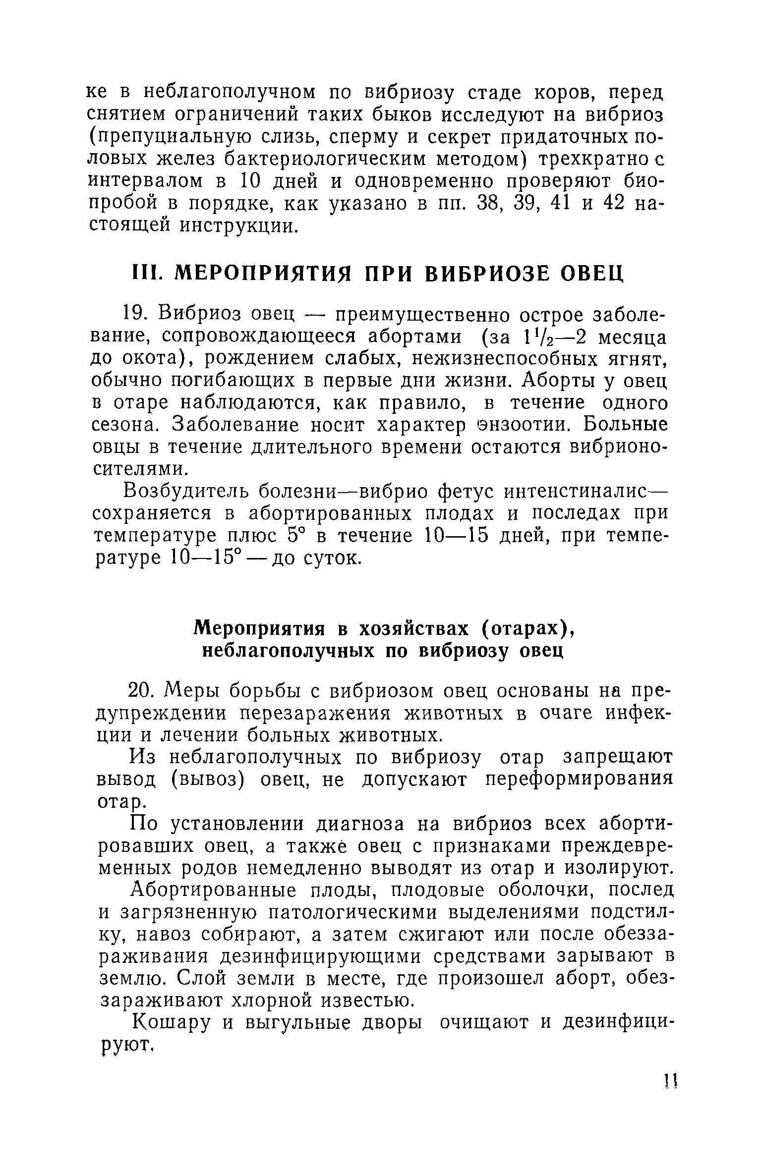 | Оглавление: | I. Общие положения II. Мероприятия при вибриозе крупного рогатого скота Мероприятия по оздоровлению неблагополучных по вибриозу станций (пунктов) по искусственному осеменению животных Мероприятия в хозяйствах (на фермах) неблагополучных по вибриозу крупного рогатого скота III. Мероприятия при вибриозе овец Мероприятия в хозяйствах (отарах) неблагополучных по вибриозу овец IV. Порядок ветеринарной обработки племенных и пользовательских животных выводимых из хозяйства V. Диагностика вибриоза Взятие материала и пересылка его для лабораторного исследования на вибриоз Бактериологическая диагностика вибриоза Серологическая диагностика вибриоза |