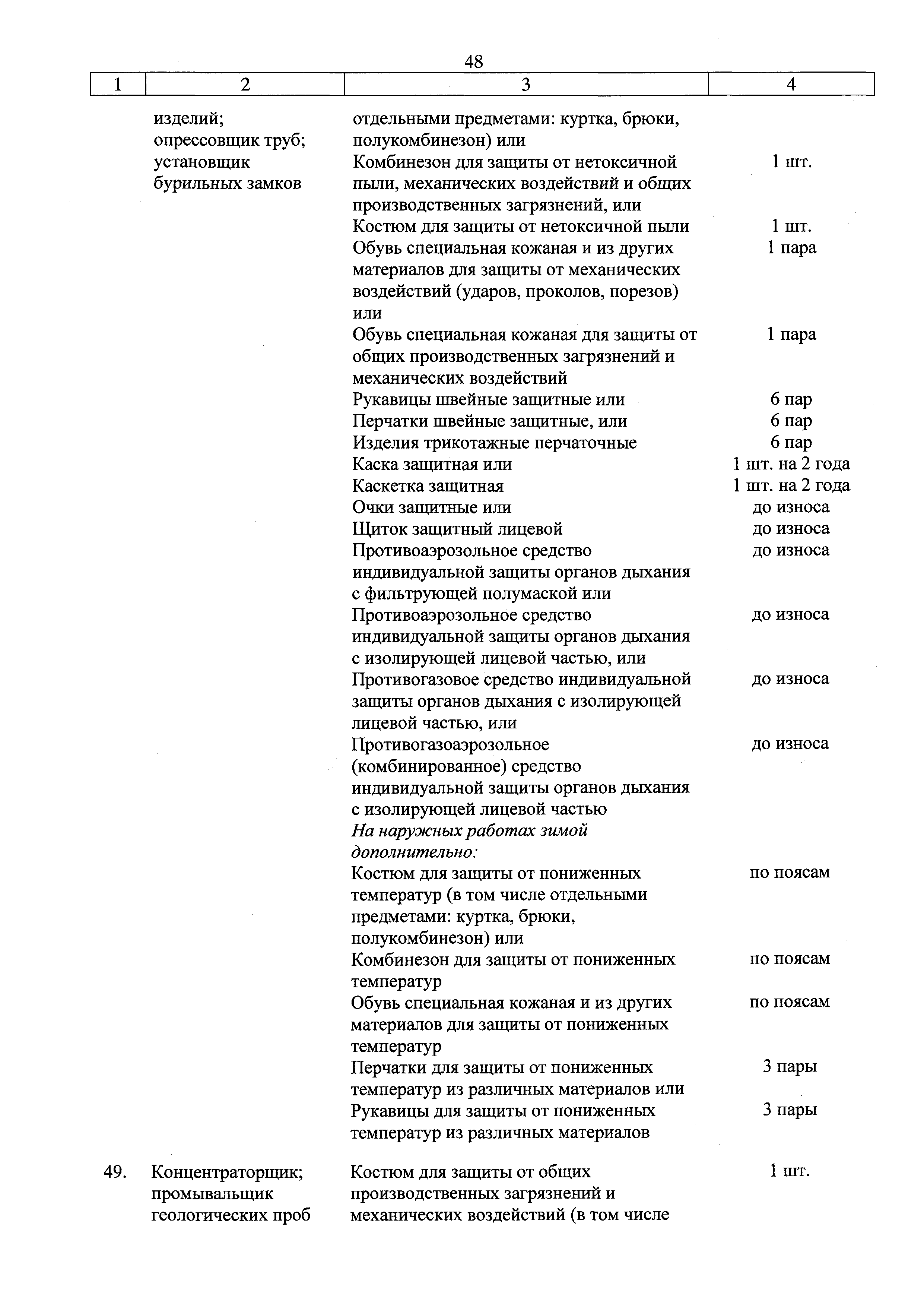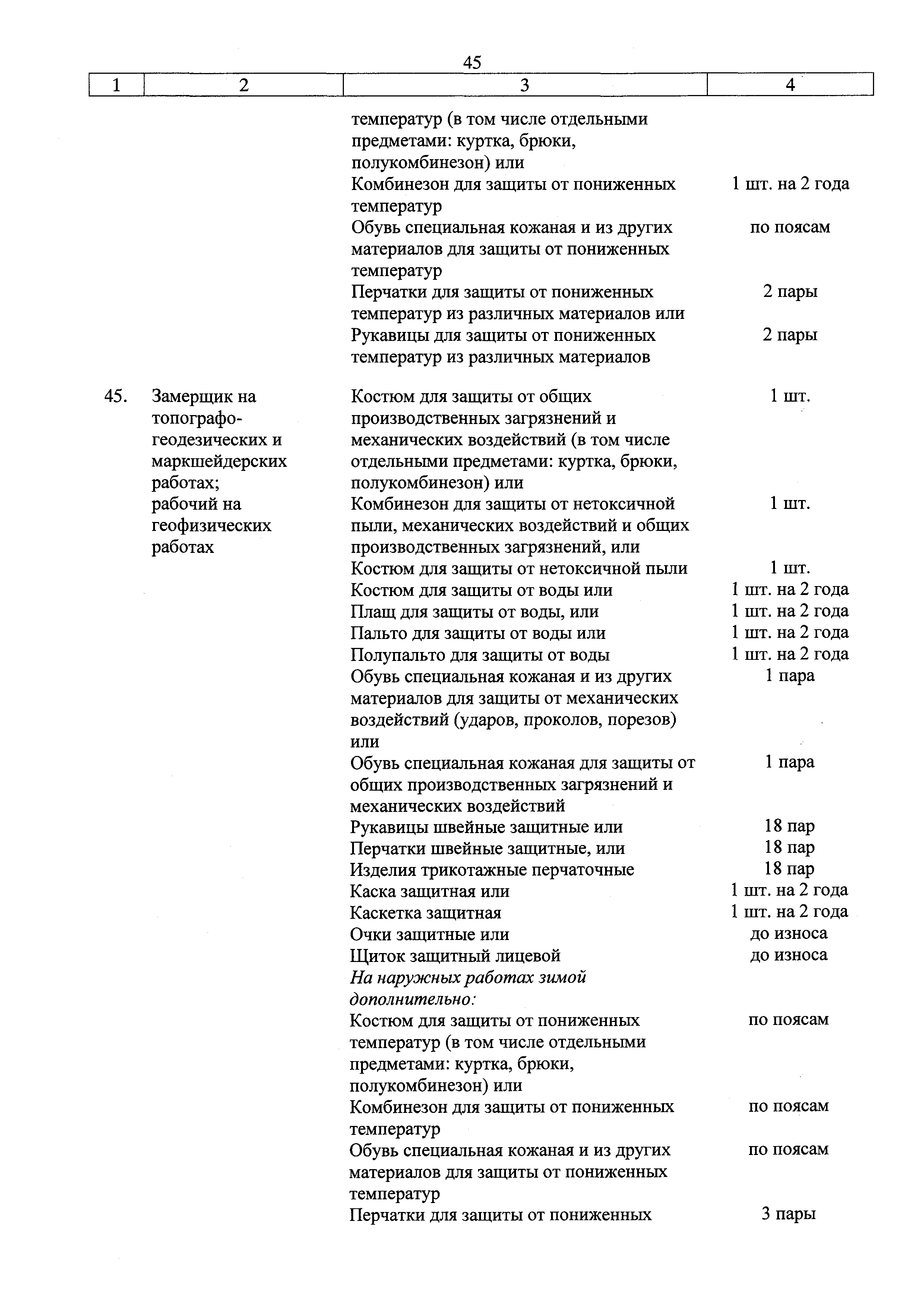 | Название рус.: | Типовые нормы бесплатной выдачи специальной одежды, специальной обуви и других средств индивидуальной защиты работникам, занятым на геологических, топографо-геодезических, изыскательских, землеустроительных работах и в картографическом производстве (занятым на работах с вредными и (или) опасными условиями труда, а также на работах, выполняемых в особых температурных условиях или связанных с загрязнением) |