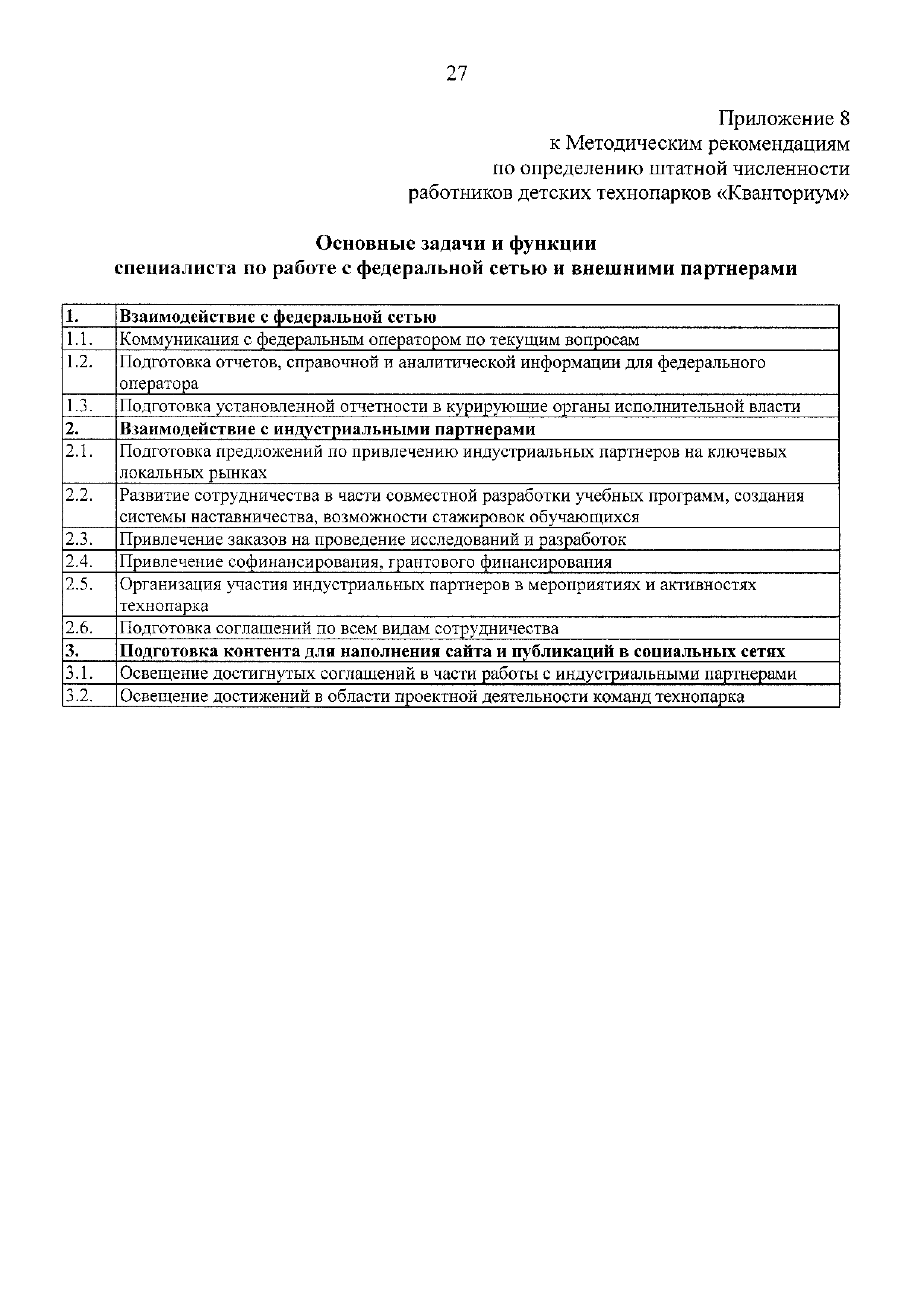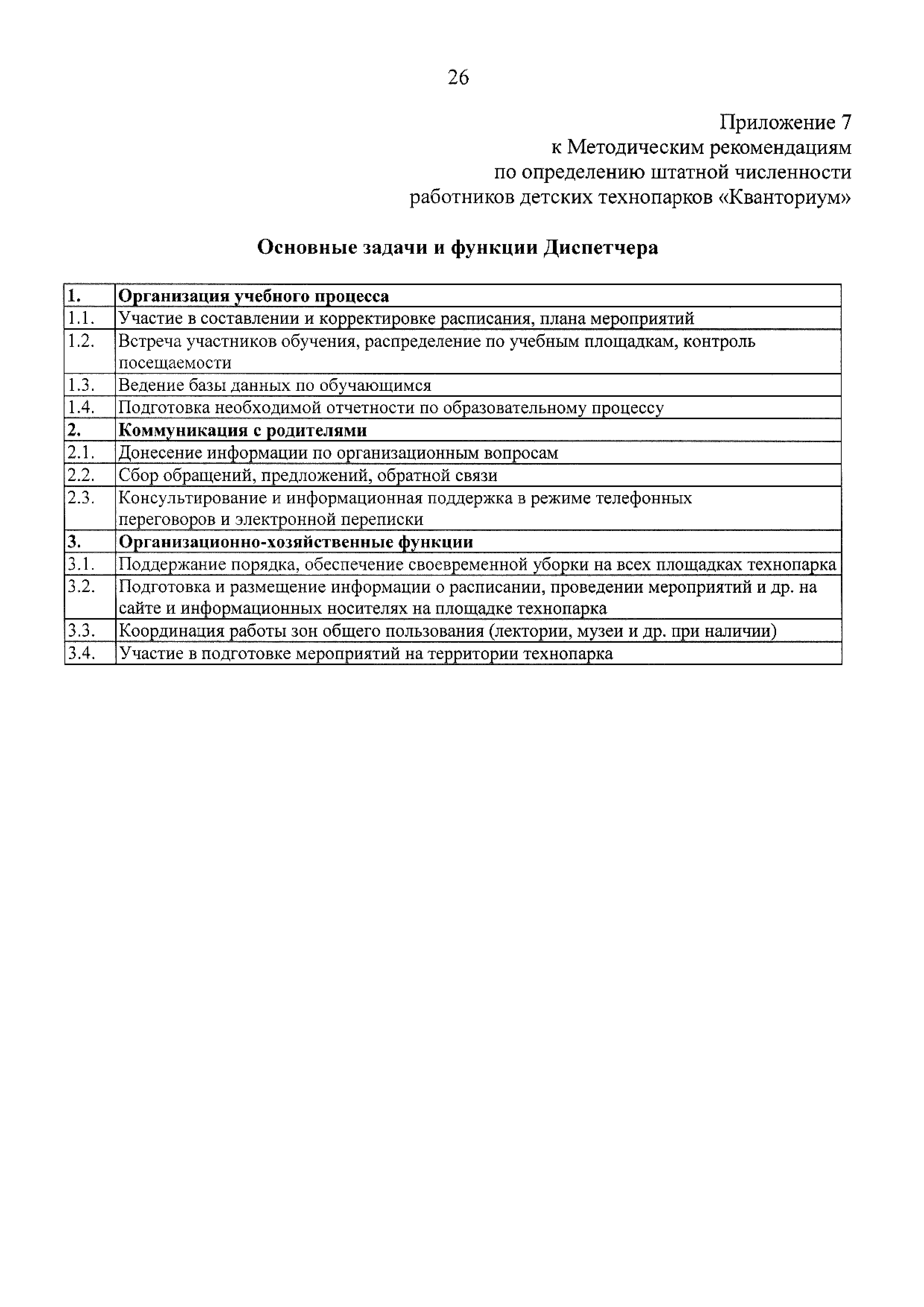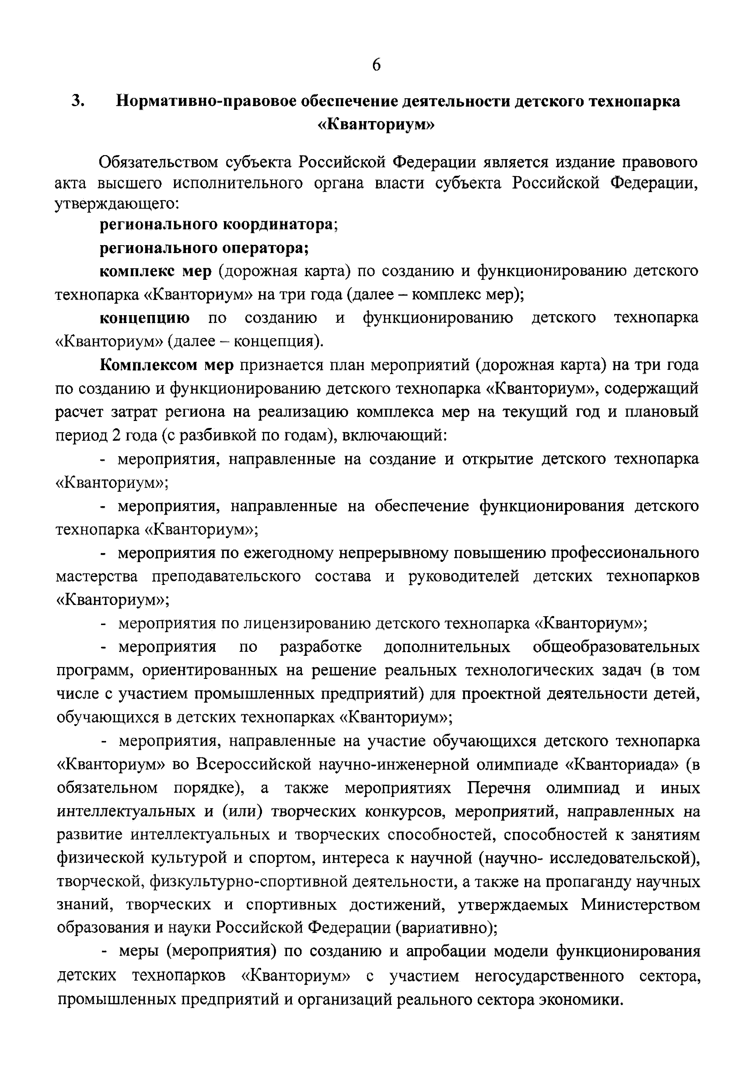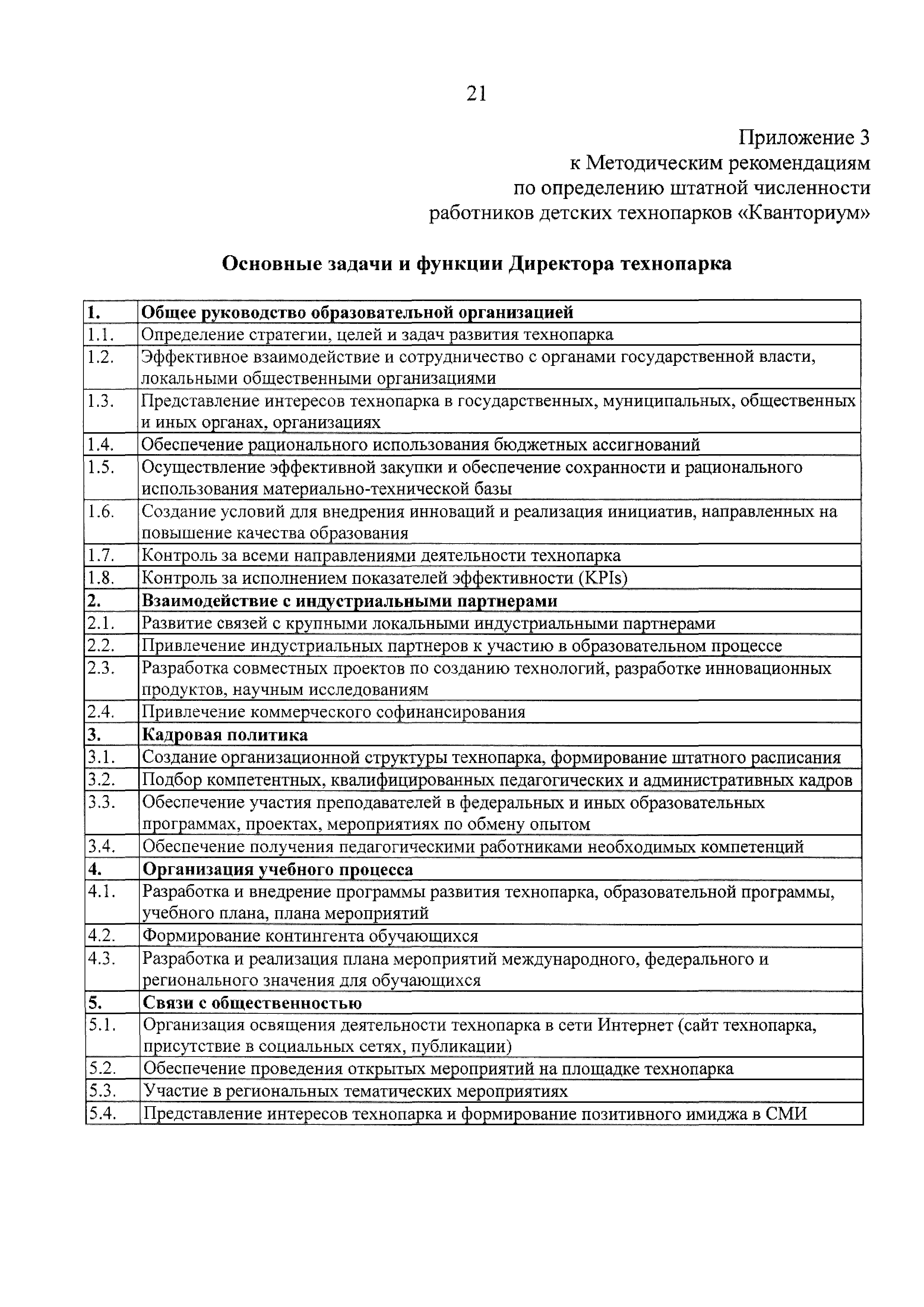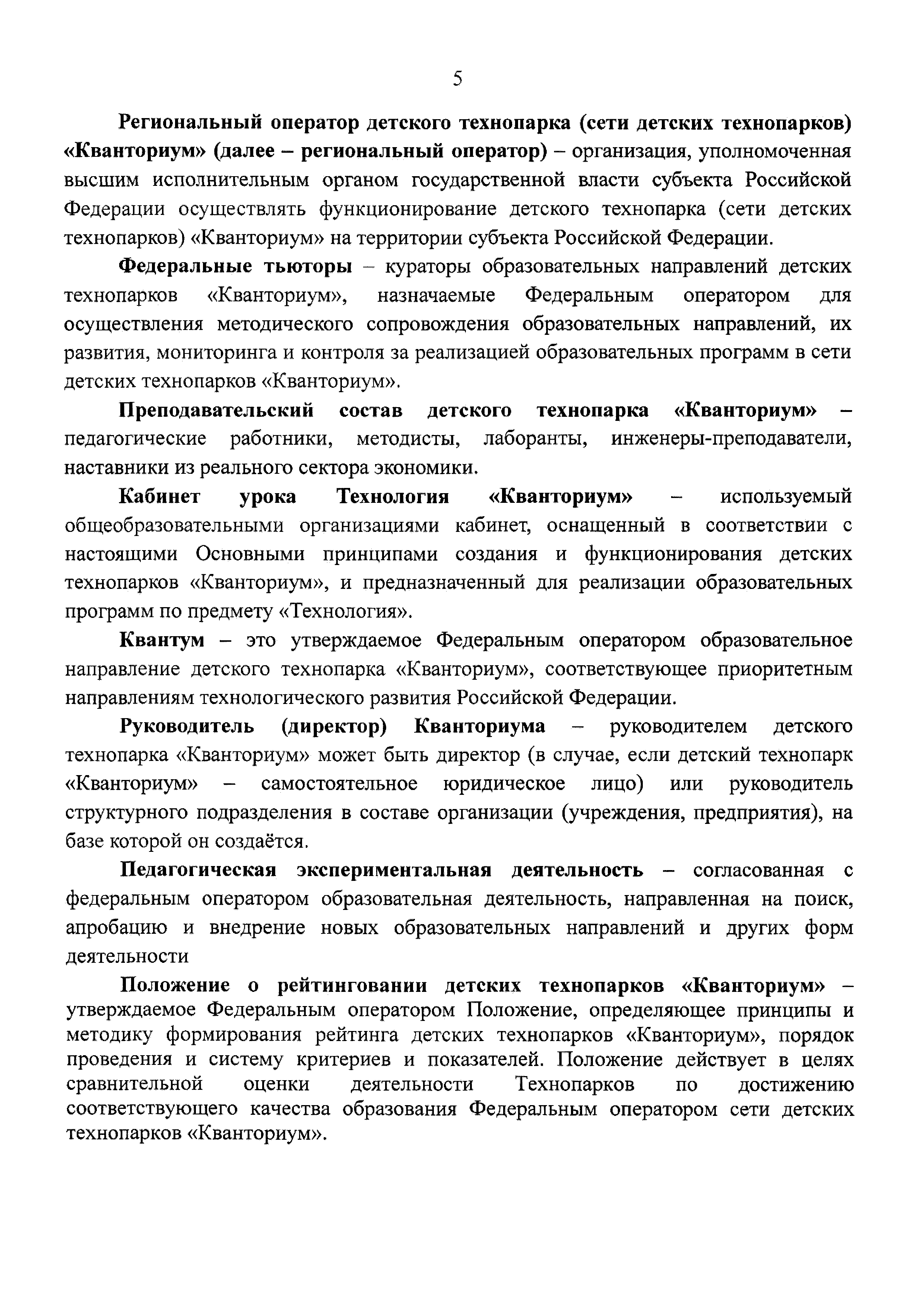 | Оглавление: | 1 Общая информация 2 Термины и определения 3 Нормативно-правовое обеспечение деятельности детского технопарка "Кванториум" 4 Имущественный комплекс детского технопарка "Кванториум" 5 Образовательные направления детского технопарка "Кванториум" 6 Требования к формату образовательного процесса 7 Кадровый состав детского технопарка "Кванториум" 8 Модели детских технопарков Приложение 1. Чек-лист по созданию детского технопарка "Кванториум" Приложение 2. Примерные операционные расходы Приложение 3. Методические рекомендации по определению штатной численности работников детских технопарков "Кванториум" Приложение 4. Положение о формировании плана-графика деятельности детского технопарка "Кванториум" Приложение 5. Руководство по брендированию интерьеров детского технопарка "Кванториум" Приложение 6. Специфика создания и функционирования детских технопарков "Кванториум" в моногородах |