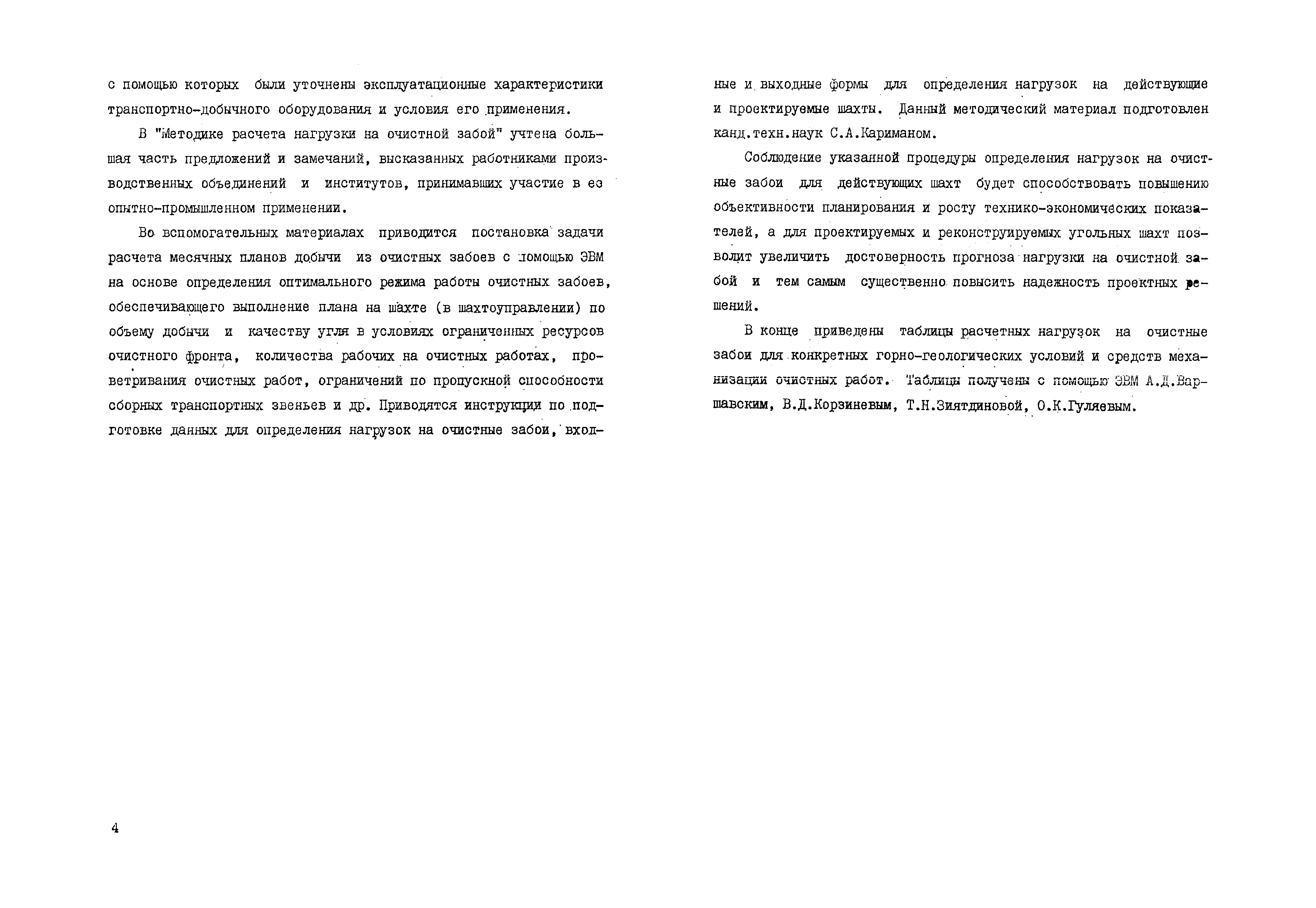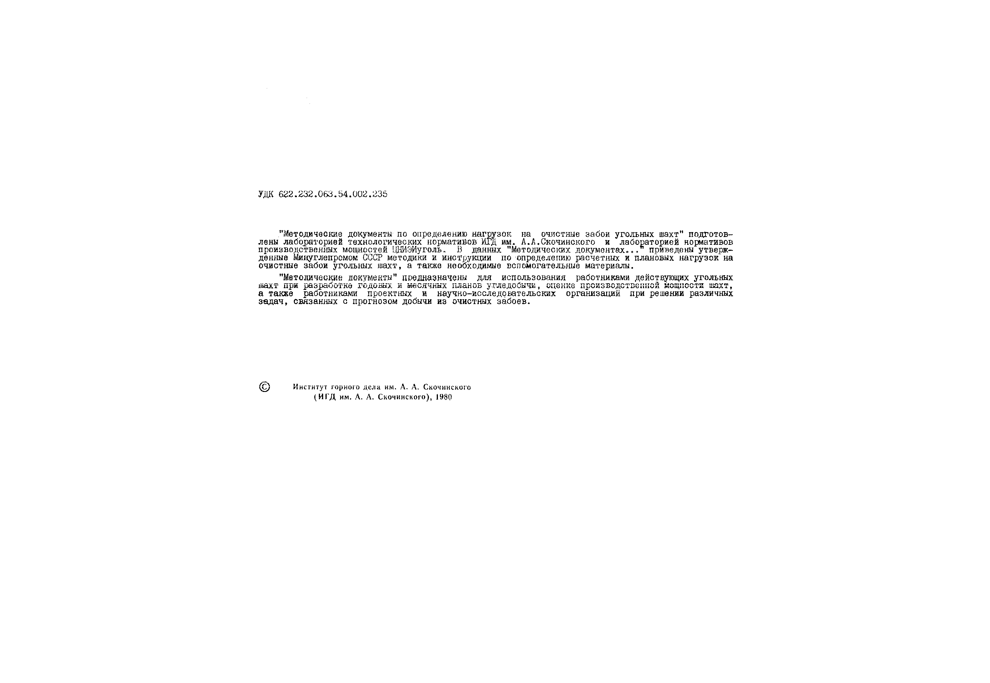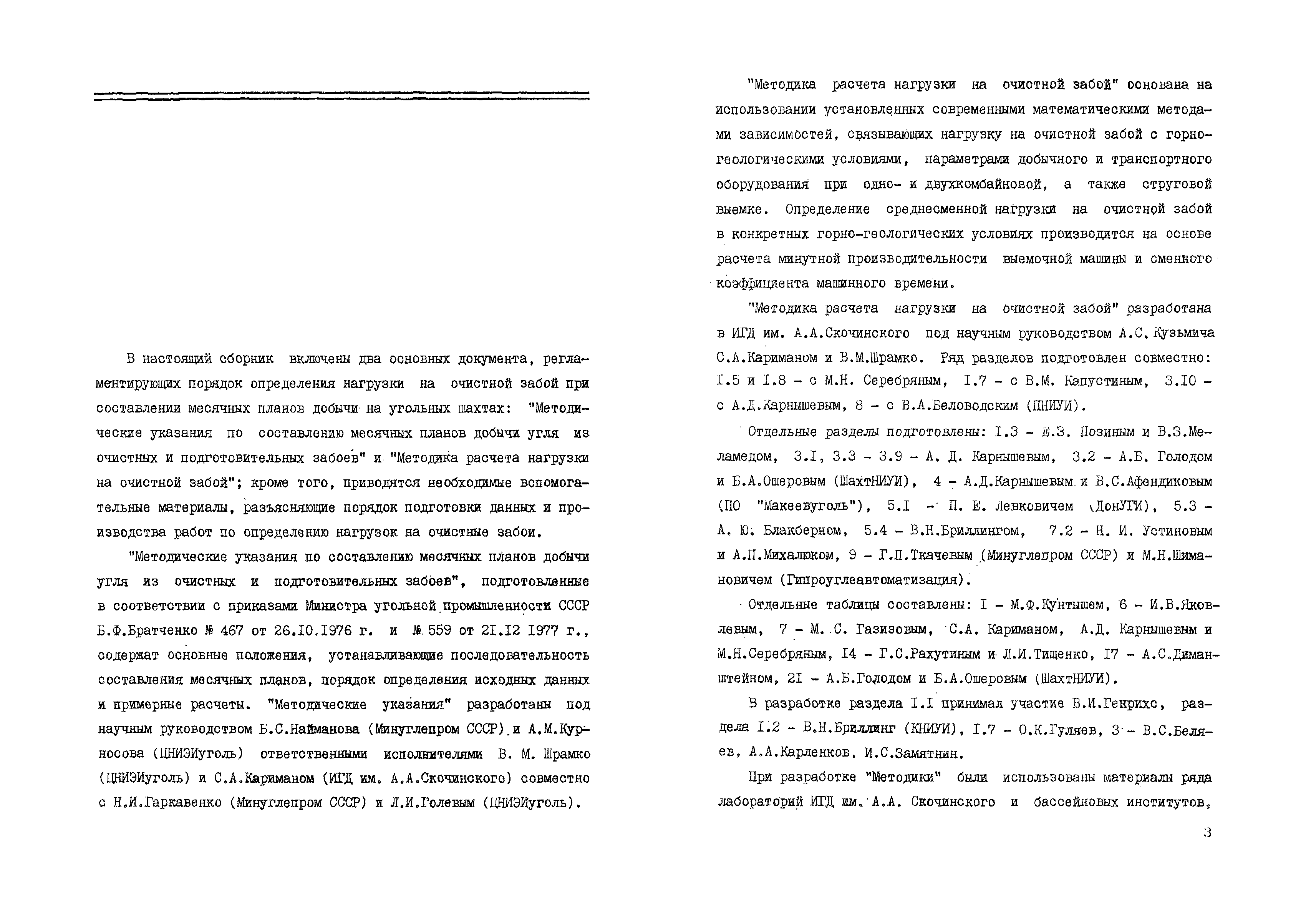 Методика расчета нагрузки на очистной забой| Статус: | справочные материалы, мп, тпр | | Название рус.: | Методика расчета нагрузки на очистной забой | | Дата добавления в базу: | 01.01.2019 | | Дата актуализации: | 01.01.2021 | | Область применения: | Документ предназначен для использования работниками действующих угольных шахт при разработке годовых и месячных планов угледобычи, оценке производственной мощности шахт, а также работниками проектных и научно-исследовательских организаций при решении различных задач, связанных с прогнозом добычи из очистных забоев | | Оглавление: | Методика расчета нагрузки на очистной забой 1 Расчет нагрузки на очистной забой при однокомбайновой выемке 2 Расчет нагрузки на очистной забой при работе двух комбайнов на одну конвейерную линию 3 Расчет нагрузки на очистной забой, оборудованный струговой установкой 4 Расчет нагрузки на очистной забой, оборудованный скреперо-струготаранной установкой 5 Расчет коэффициента уменьшения нагрузки, при работе очистного забоя в зоне горно—геологических нарушений 6 Проверка нагрузки на очистной забой по газовому фактору для действующих шахт 7 Проверка нагрузки на очистной забой при проектировании и реконструкции угольных шахт 8 Инструкция по расчету нормативов средней нагрузки на очистной забой при различных способах механизации по производственному объединению, бассейну и отрасли 9 Определение коэффициента машинного времени работы комбайна с помощью устройства УПМ2Р | | Утверждён: | 19.05.1979 Министерство угольной промышленности СССР (USSR Ministry of the Coal Industry )