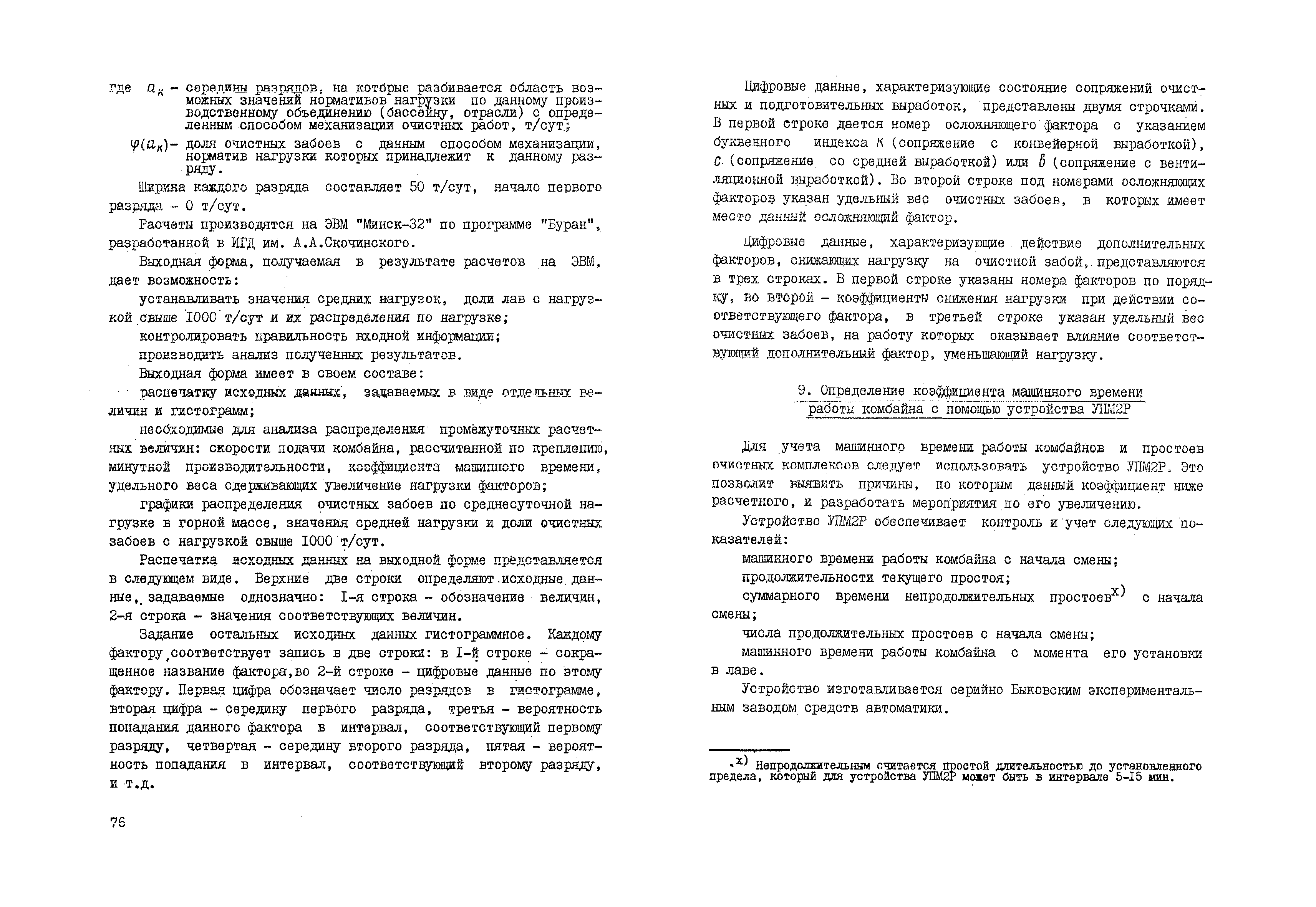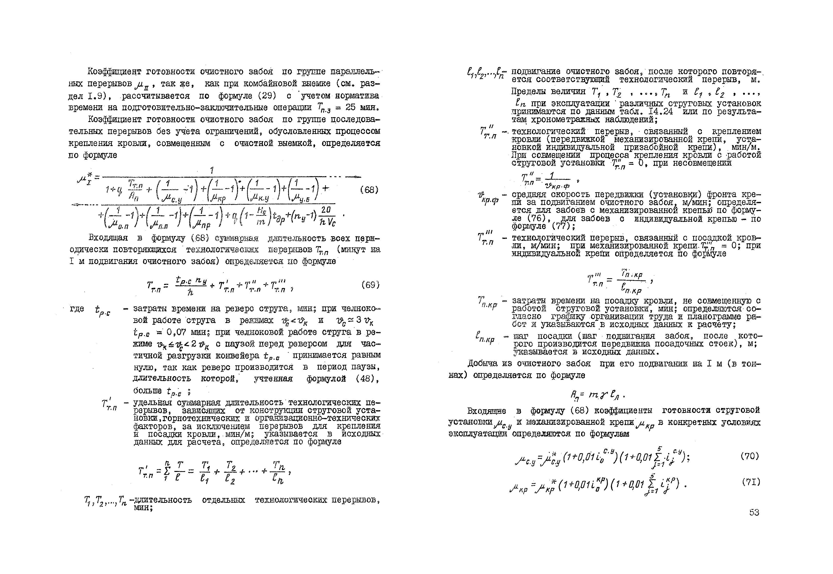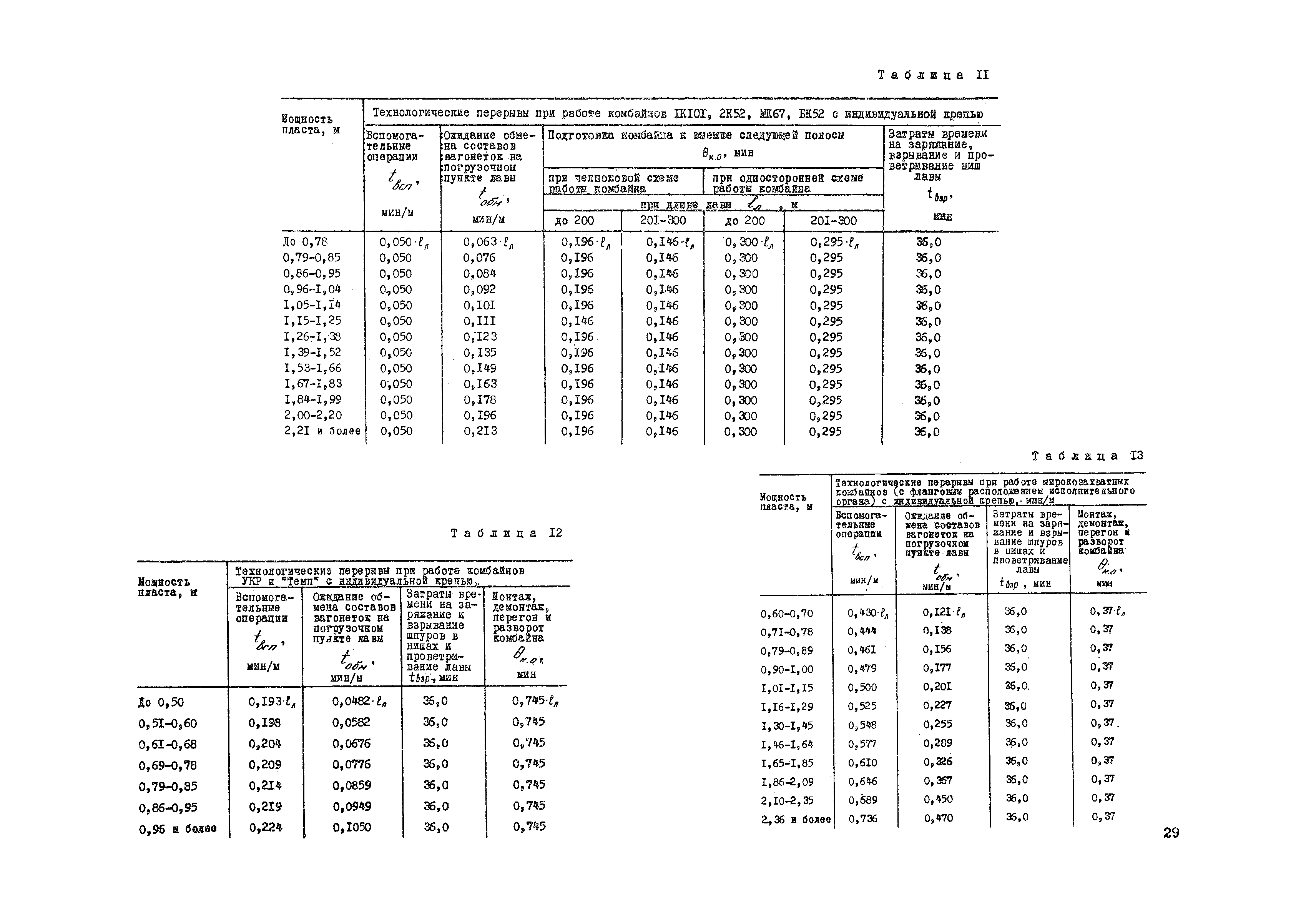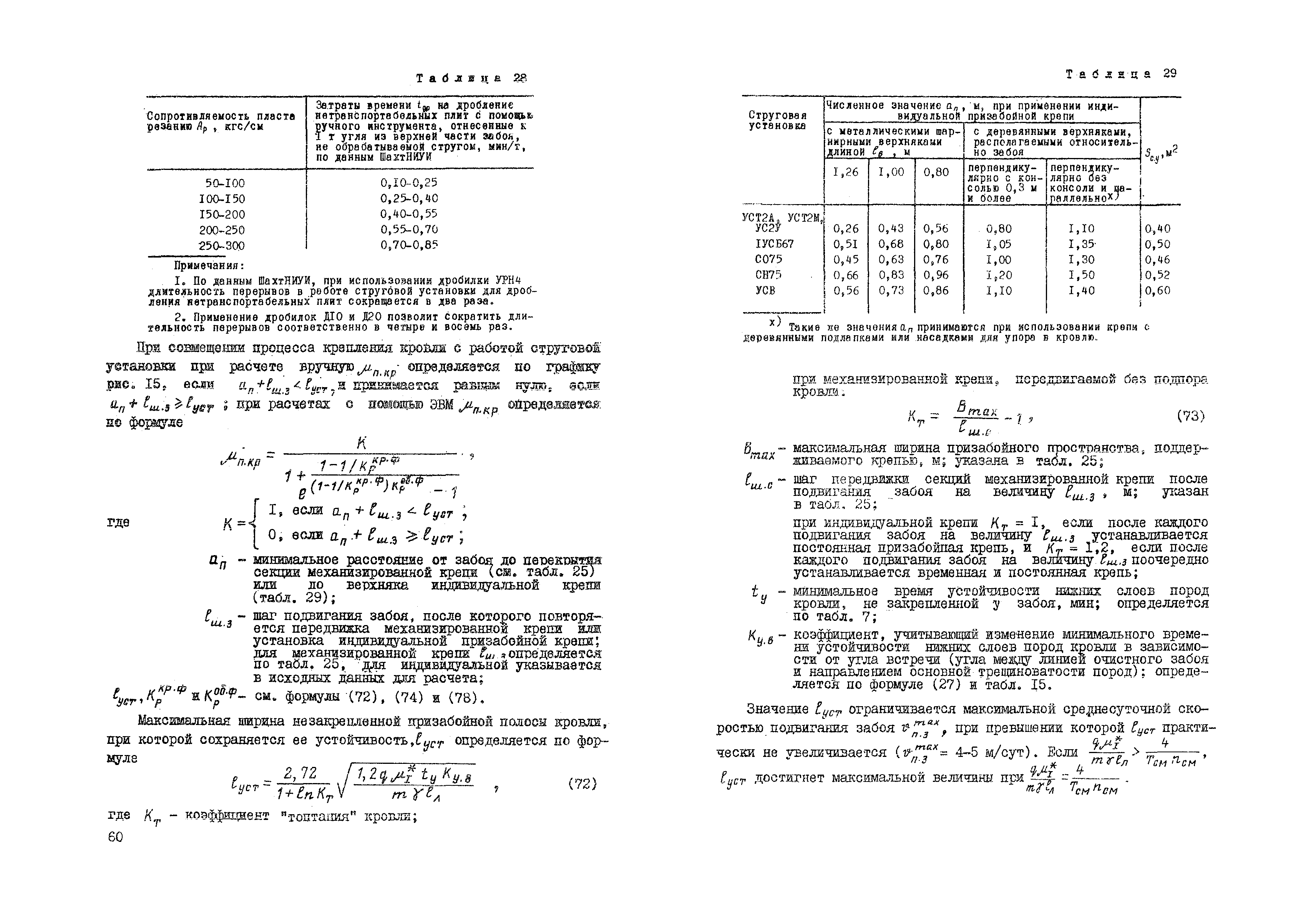 Методика расчета нагрузки на очистной забой| Статус: | справочные материалы, мп, тпр | | Название рус.: | Методика расчета нагрузки на очистной забой | | Дата добавления в базу: | 01.01.2019 | | Дата актуализации: | 01.01.2021 | | Область применения: | Документ предназначен для использования работниками действующих угольных шахт при разработке годовых и месячных планов угледобычи, оценке производственной мощности шахт, а также работниками проектных и научно-исследовательских организаций при решении различных задач, связанных с прогнозом добычи из очистных забоев | | Оглавление: | Методика расчета нагрузки на очистной забой 1 Расчет нагрузки на очистной забой при однокомбайновой выемке 2 Расчет нагрузки на очистной забой при работе двух комбайнов на одну конвейерную линию 3 Расчет нагрузки на очистной забой, оборудованный струговой установкой 4 Расчет нагрузки на очистной забой, оборудованный скреперо-струготаранной установкой 5 Расчет коэффициента уменьшения нагрузки, при работе очистного забоя в зоне горно—геологических нарушений 6 Проверка нагрузки на очистной забой по газовому фактору для действующих шахт 7 Проверка нагрузки на очистной забой при проектировании и реконструкции угольных шахт 8 Инструкция по расчету нормативов средней нагрузки на очистной забой при различных способах механизации по производственному объединению, бассейну и отрасли 9 Определение коэффициента машинного времени работы комбайна с помощью устройства УПМ2Р | | Утверждён: | 19.05.1979 Министерство угольной промышленности СССР (USSR Ministry of the Coal Industry )
