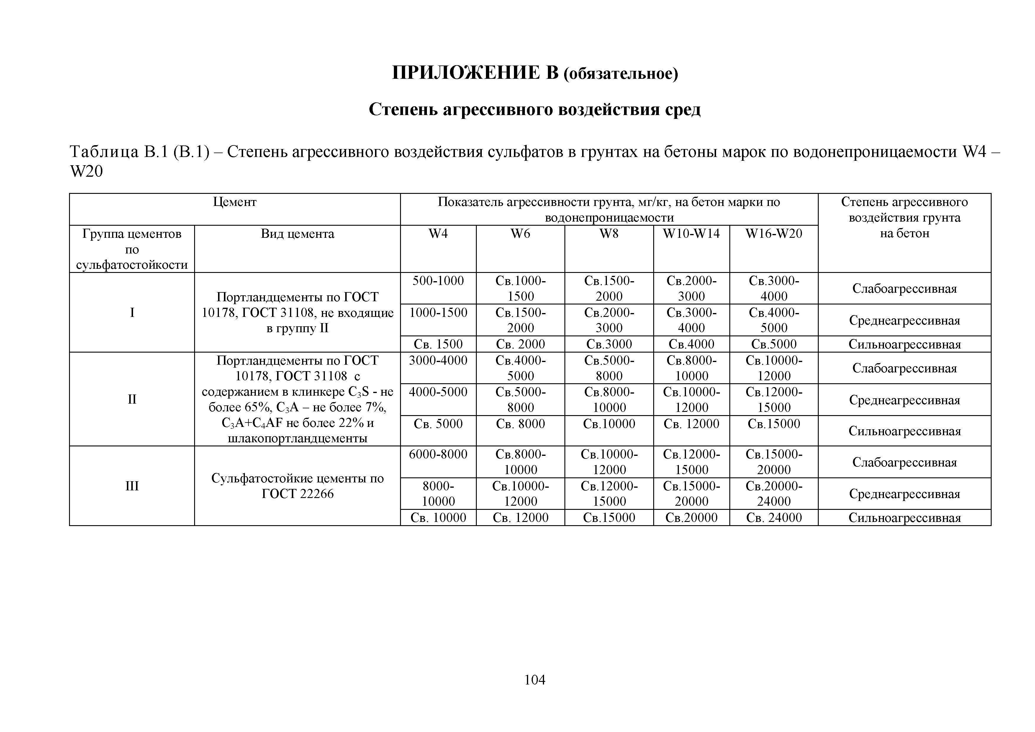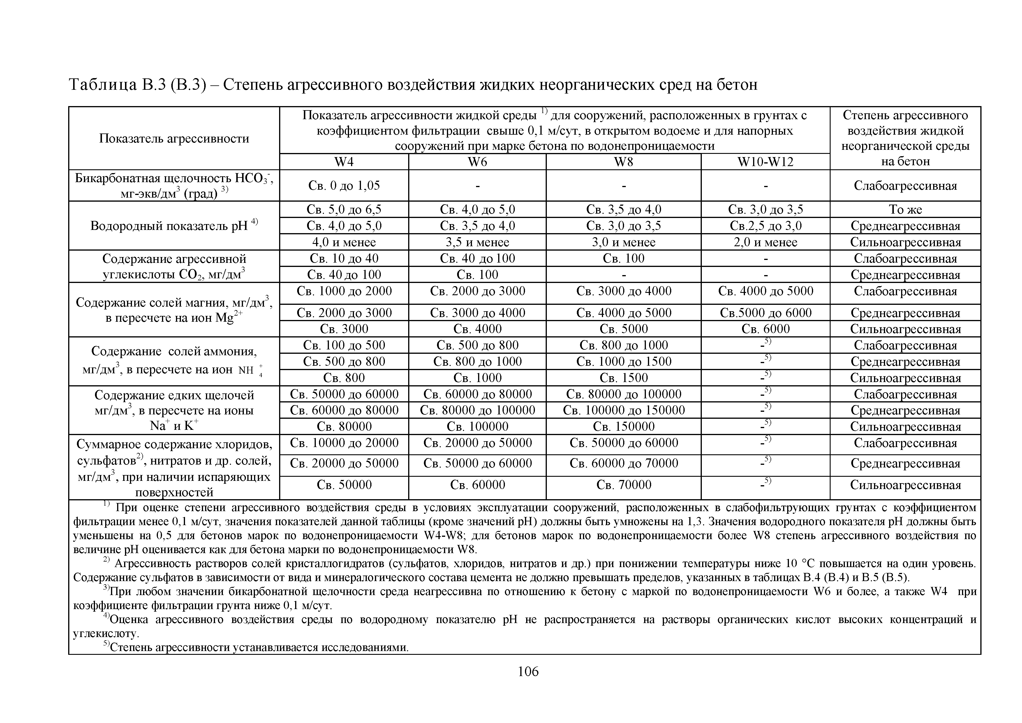Приложение В (обязательное). Степень агрессивного воздействия сред