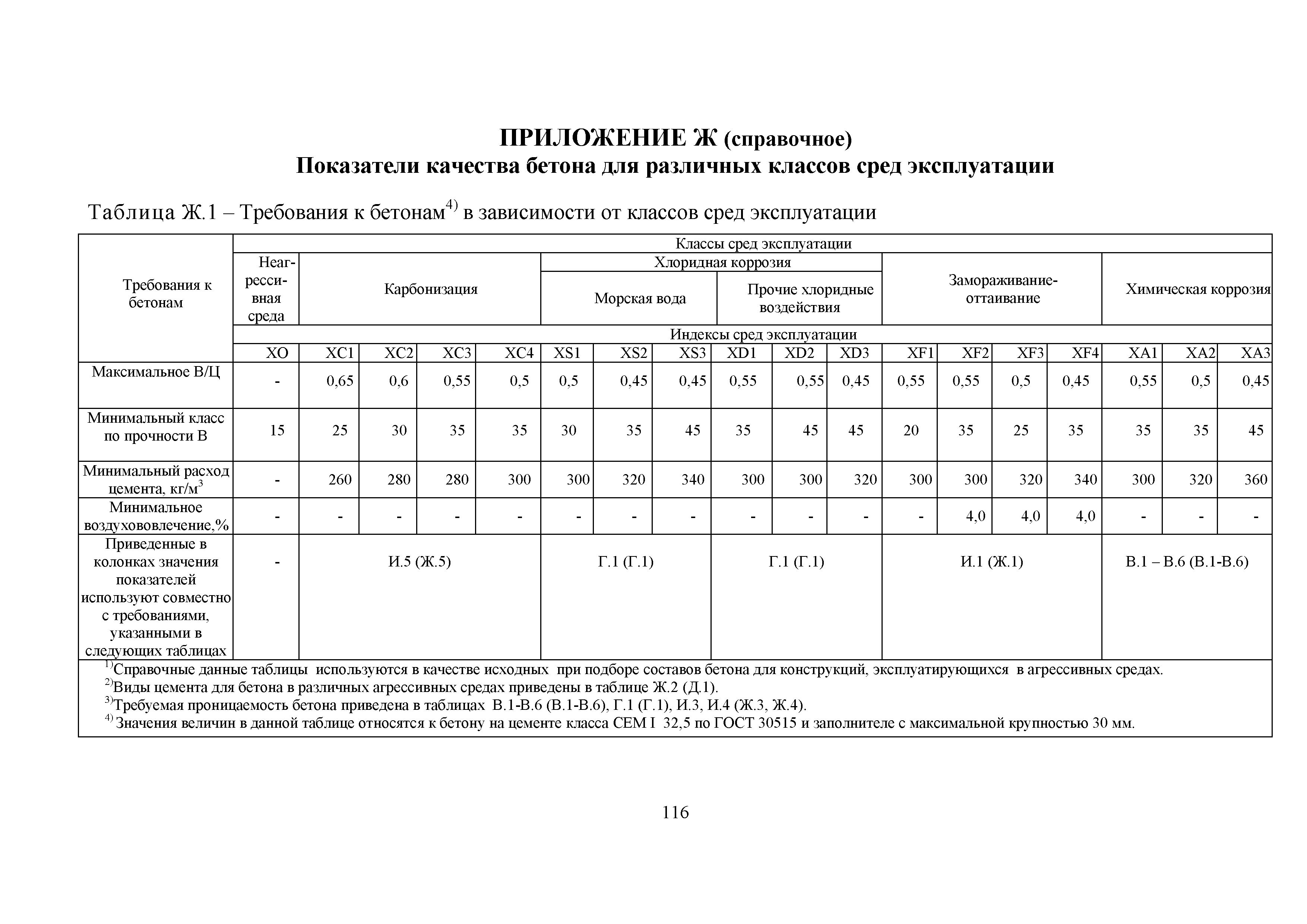 Приложение Ж (справочное). Показатели качества бетона для различных классов сред эксплуатации
