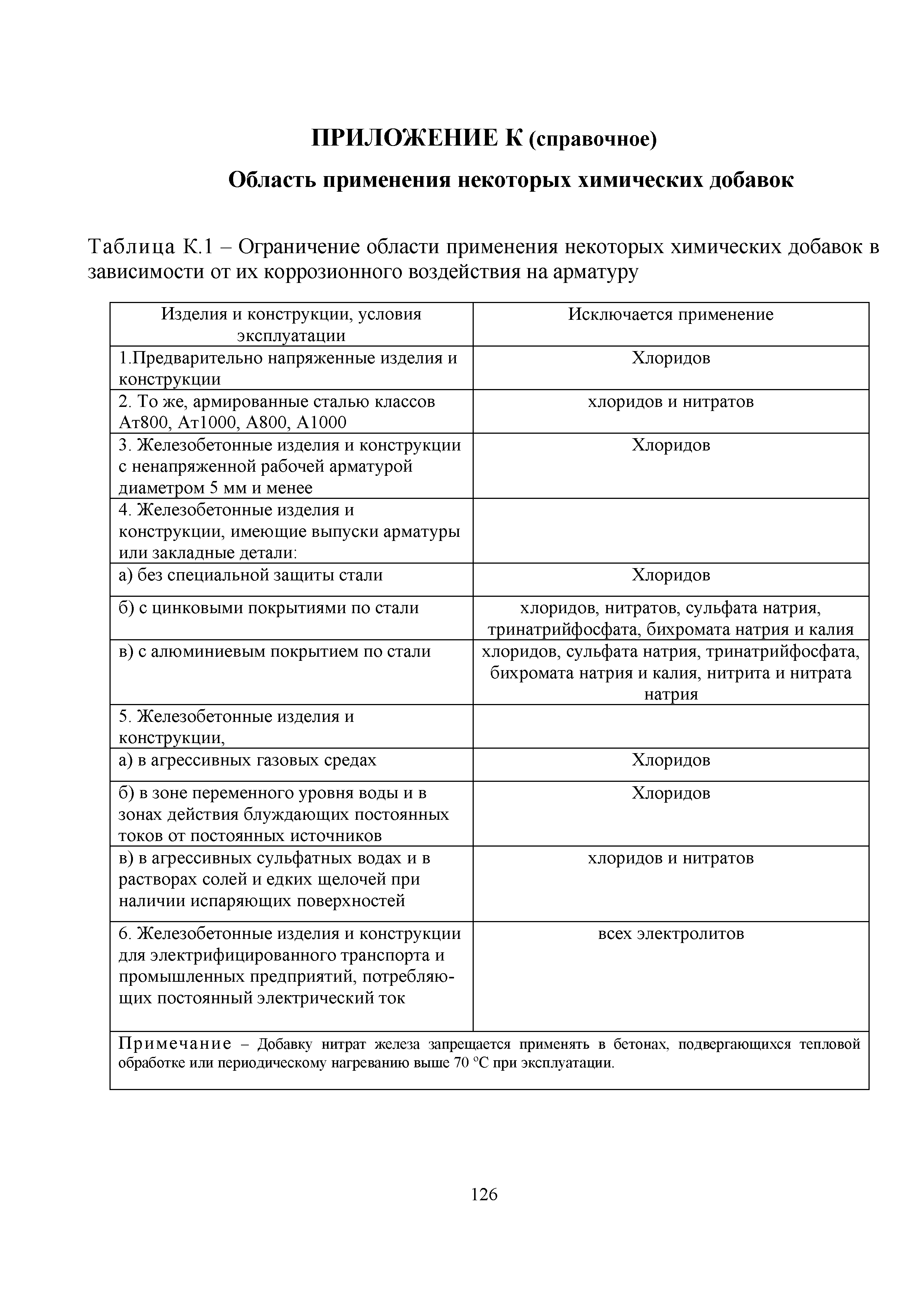 Приложение К (справочное). Область применения некоторых химических добавок