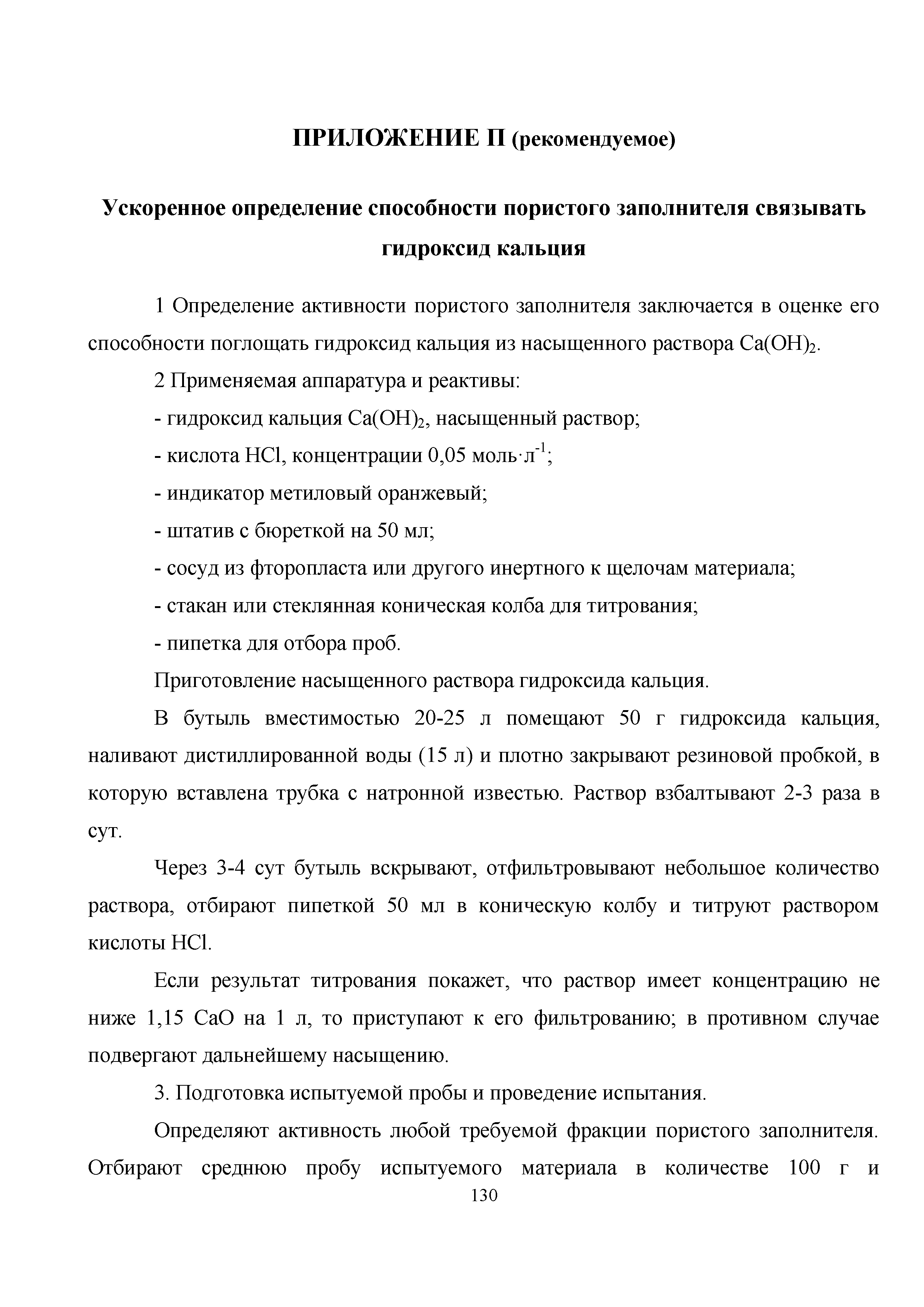 Приложение П (рекомендуемое). Ускоренное определение способности пористого заполнителя связывать гидроксид кальция