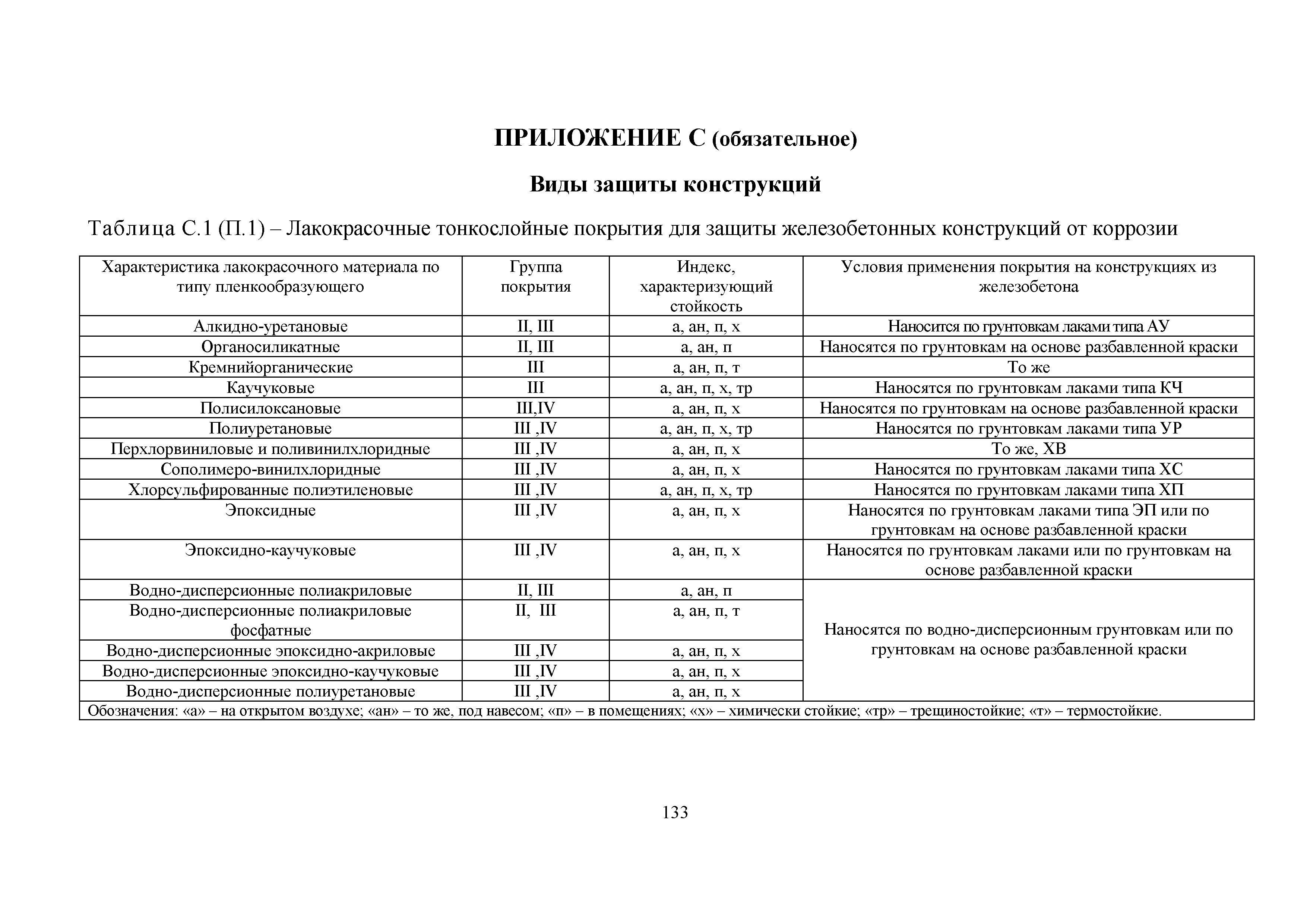 Приложение Р (рекомендуемое). Требования к выбору покрытий в зависимости от условий эксплуатации конструкций