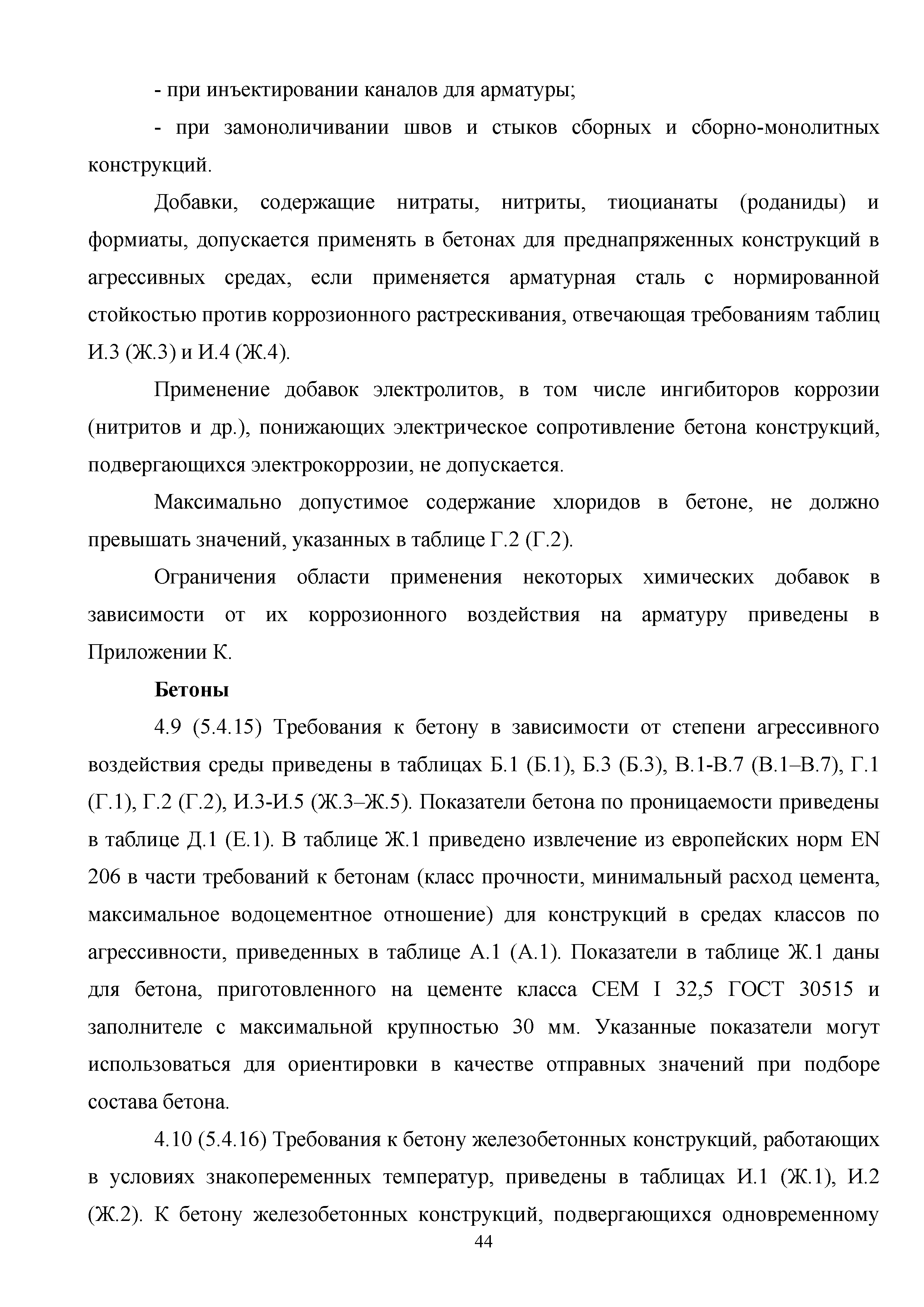 Приложение И (обязательное). Требования к бетонам и железобетонным конструкциям
