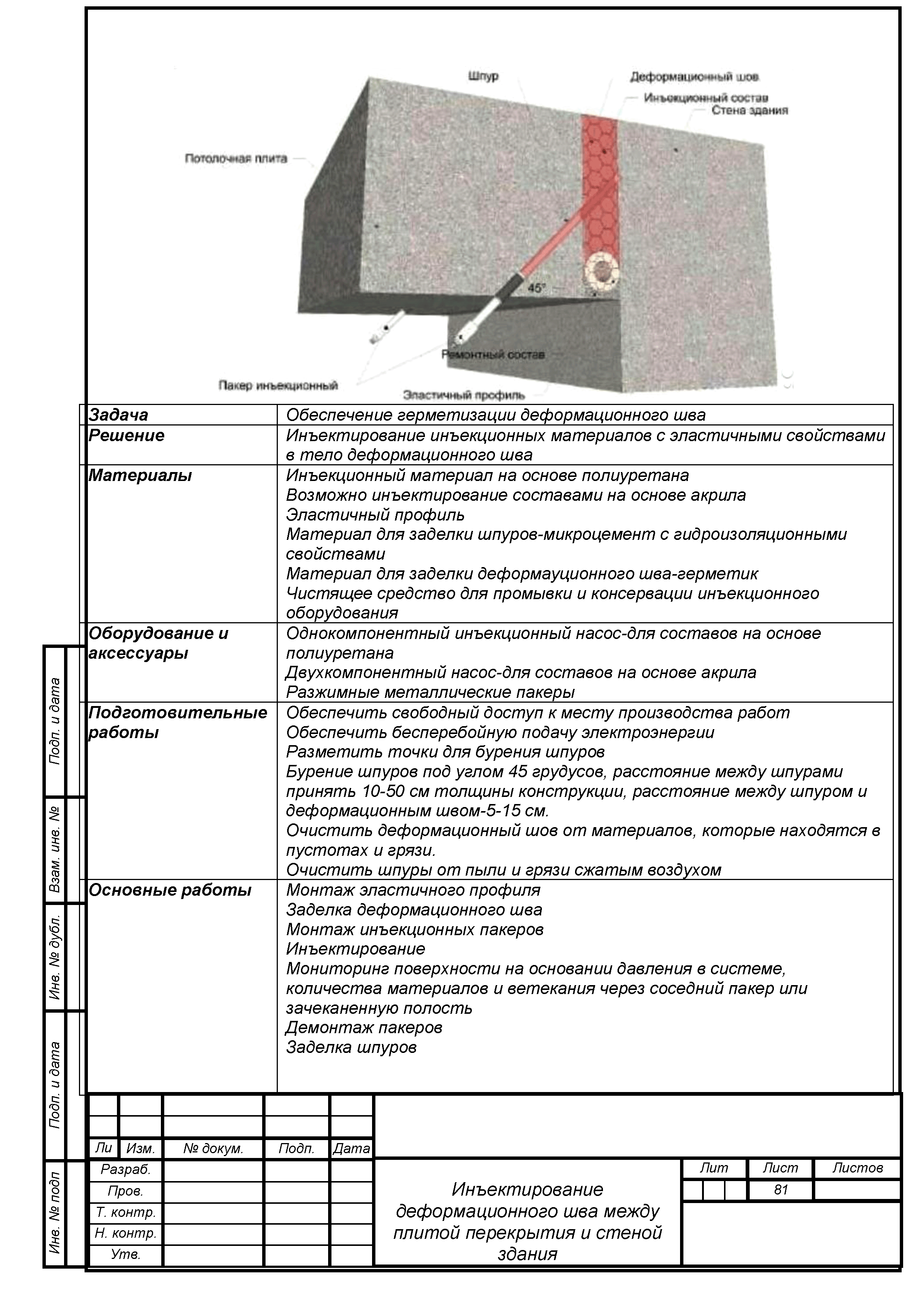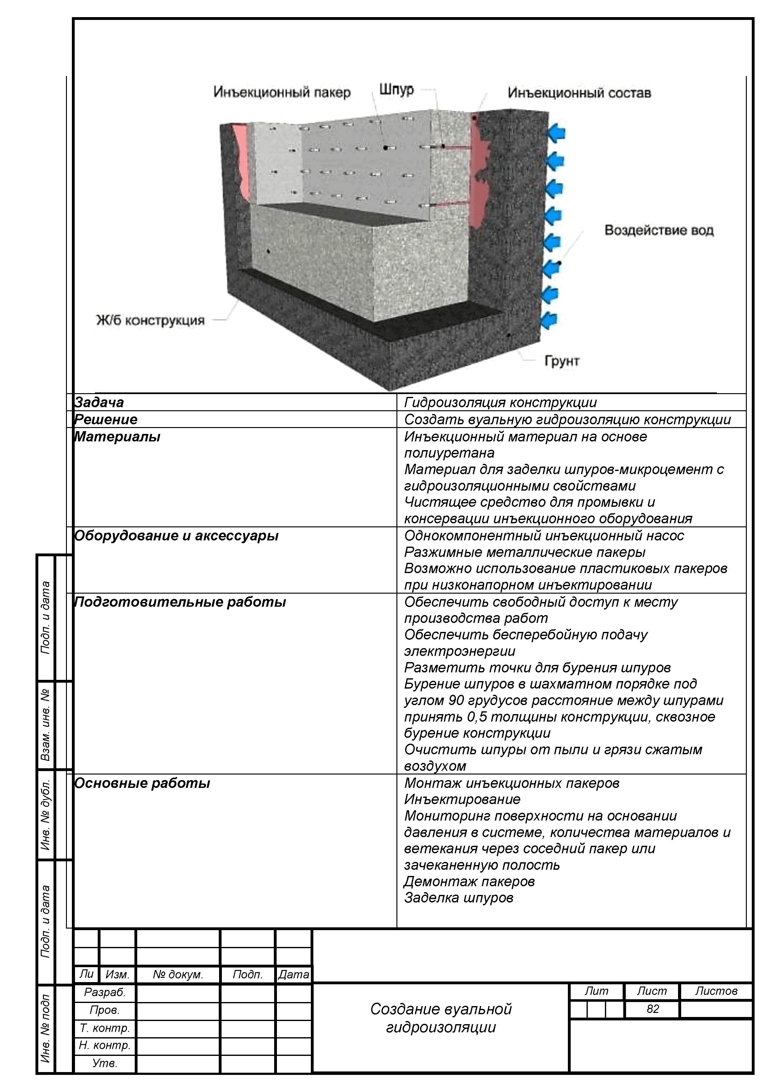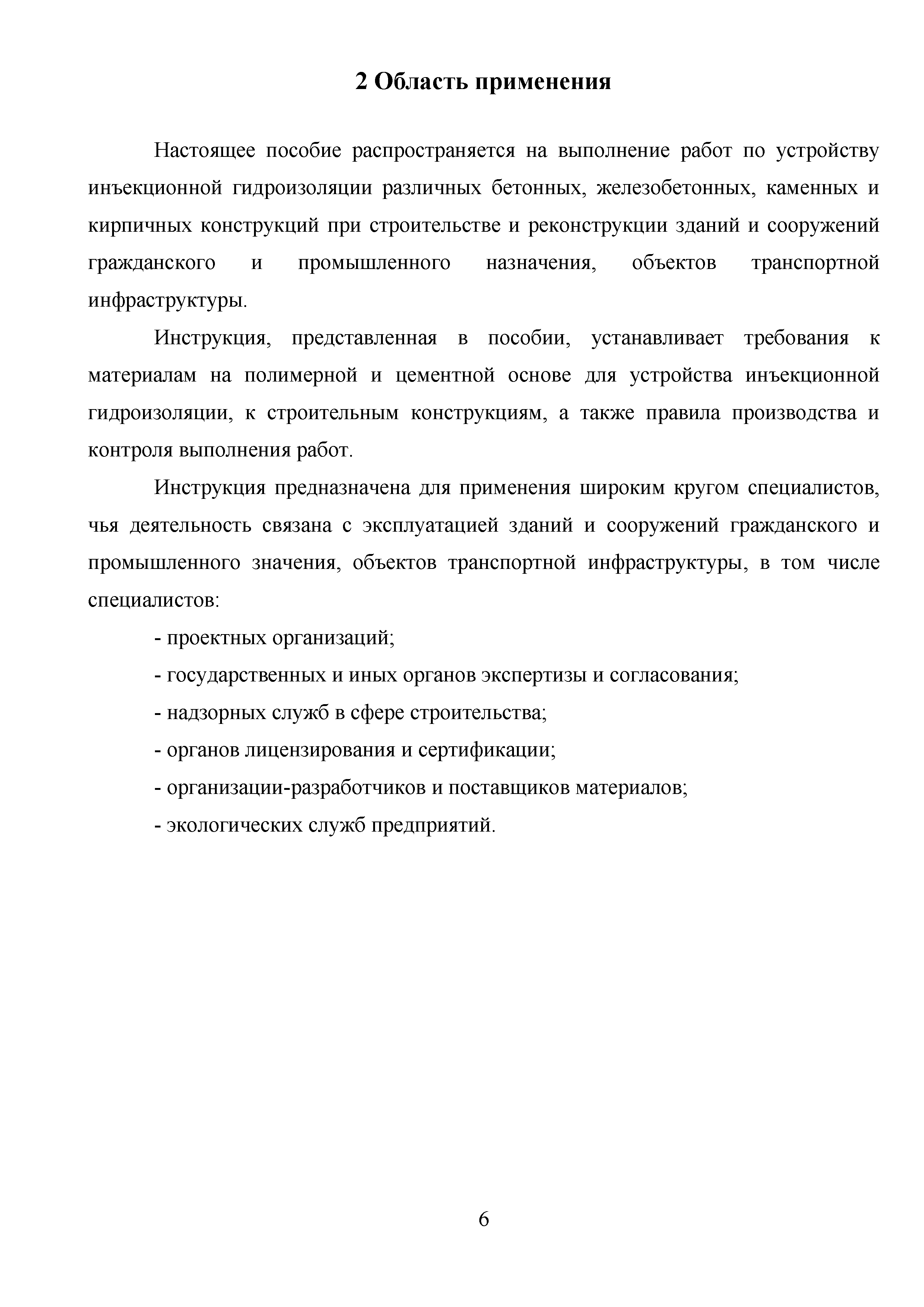 | Область применения: | Пособие распространяется на выполнение работ по устройству инъекционной гидроизоляции различных бетонных, железобетонных, каменных и кирпичных конструкций при строительстве и реконструкции зданий и сооружений гражданского и промышленного назначения, объектов транспортной инфраструктуры. Инструкция, представленная в пособии, устанавливает требования к материалам на полимерной и цементной основе для устройства инъекционной гидроизоляции, к строительным конструкциям, а также правила производства и контроля выполнения работ. |