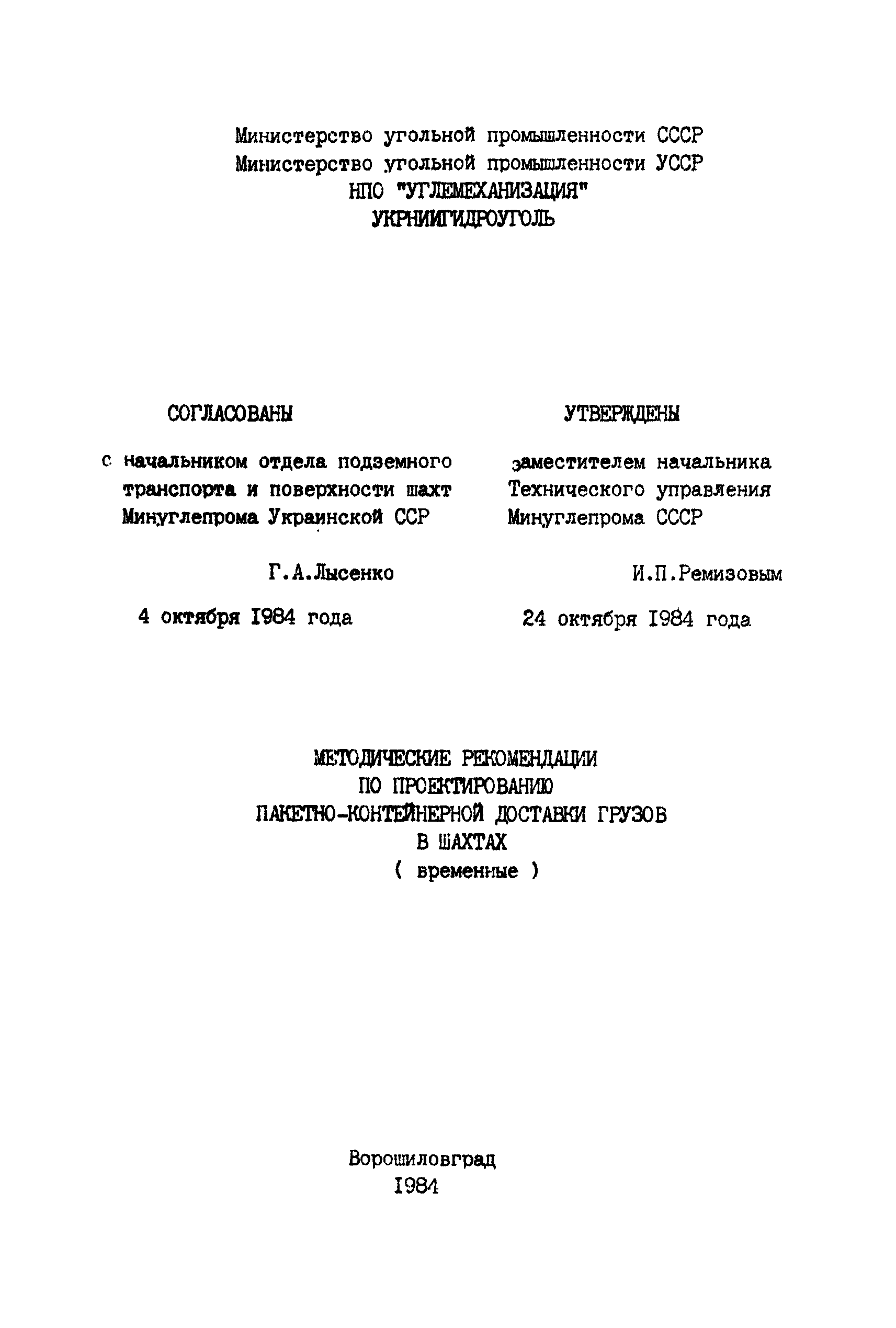 | Принят: | 04.10.1984 Министерство угольной промышленности УССР |