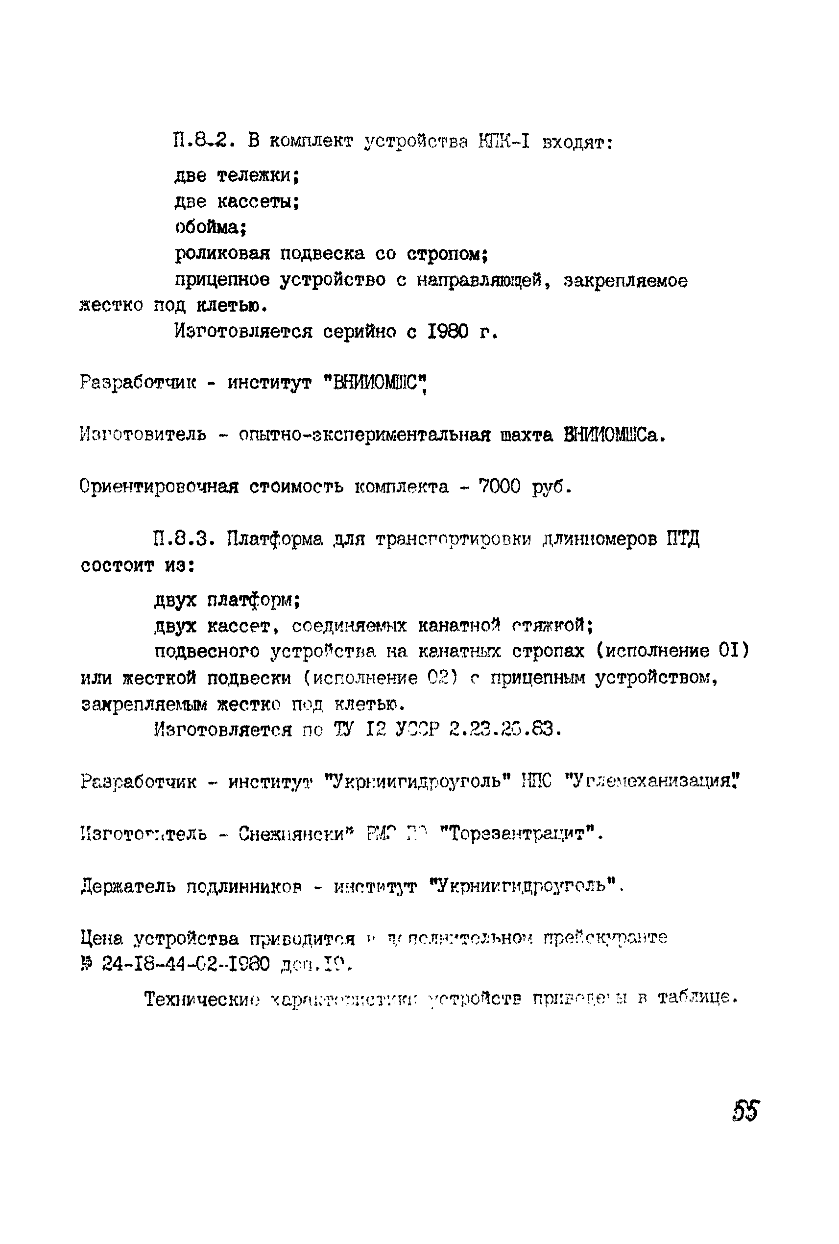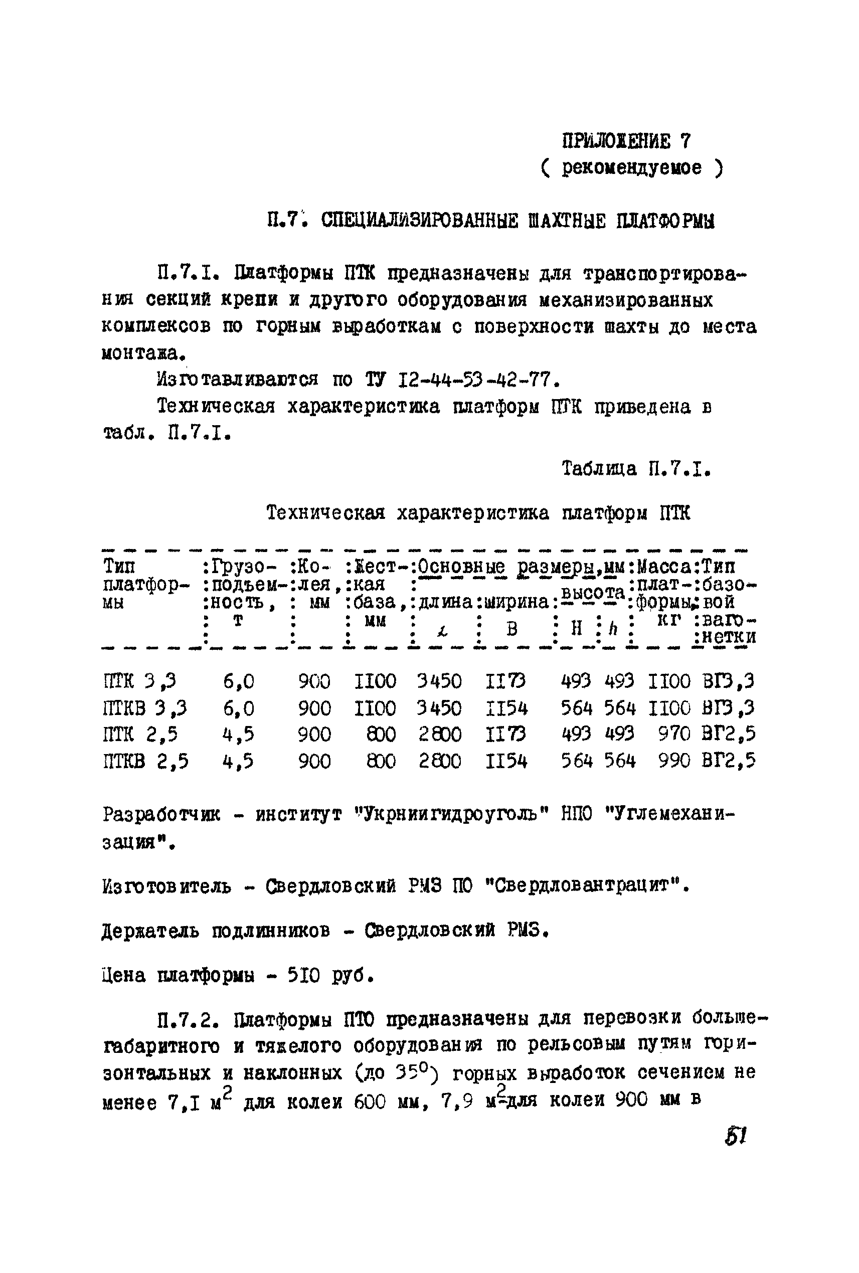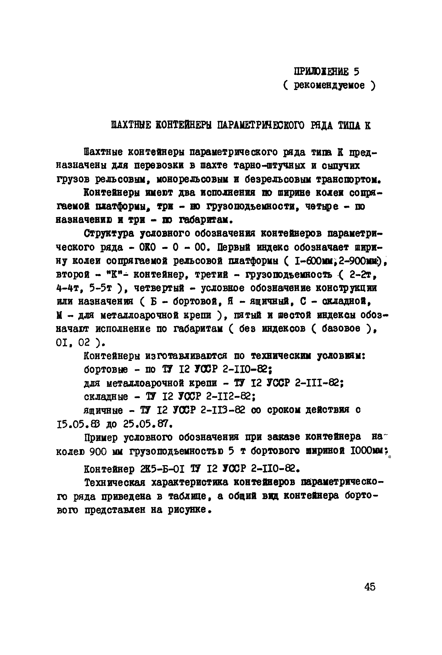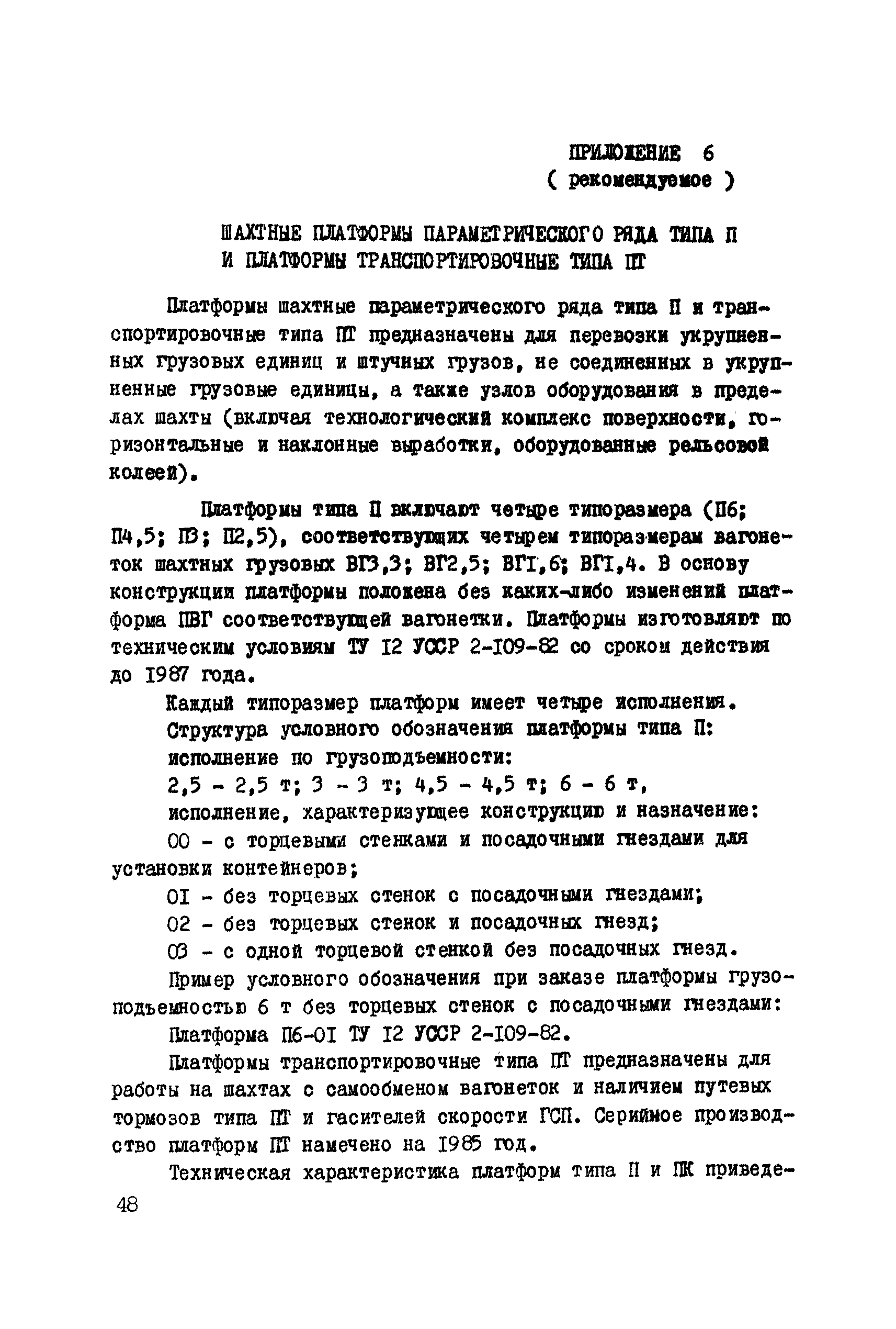 | Оглавление: | Введение 1. Общие положения 2. Рекомендуемые средства пакетирования, контейнеры и внутришахтные рельсовые средства подвижного состава 3. Рекомендации по проектированию подземного вспомогательного транспорта 4. Рекомендации по проектированию узлов стыка различных видов транспорта 5. Рекомендации по разработке узлов перегрузки и мест разгрузки в горных выработках 6. Требования безопасности Список использованных источников Приложение 1. Методические указания по разработке технического (техно-рабочего) проекта ПДК грузов в шахтах Приложение 2. Стропы для рудстоек СР и СРГ Приложение 3. Строп пакетирующий многооборотный СПМ Приложение 4. Кассета 1КМ Приложение 5. Шахтные контейнеры параметрического ряда типа К Приложение 6. Шахтные платформы параметрического ряда типа П и платформы транспортировочные типа ПТ Приложение 7. Специализированные шахтные платформы Приложение 8. Устройства для спуска по стволам и доставки по рельсовым выработкам длинномерных материалов Приложение 9. Техническая характеристика монорельсовых дорог с канатным тяговым органом Приложение 10. Техническая характеристика канатных напочвенных дорог Приложение 11. Перестановочные устройства Приложение 12. Техническая характеристика грузоподъемного оборудования |