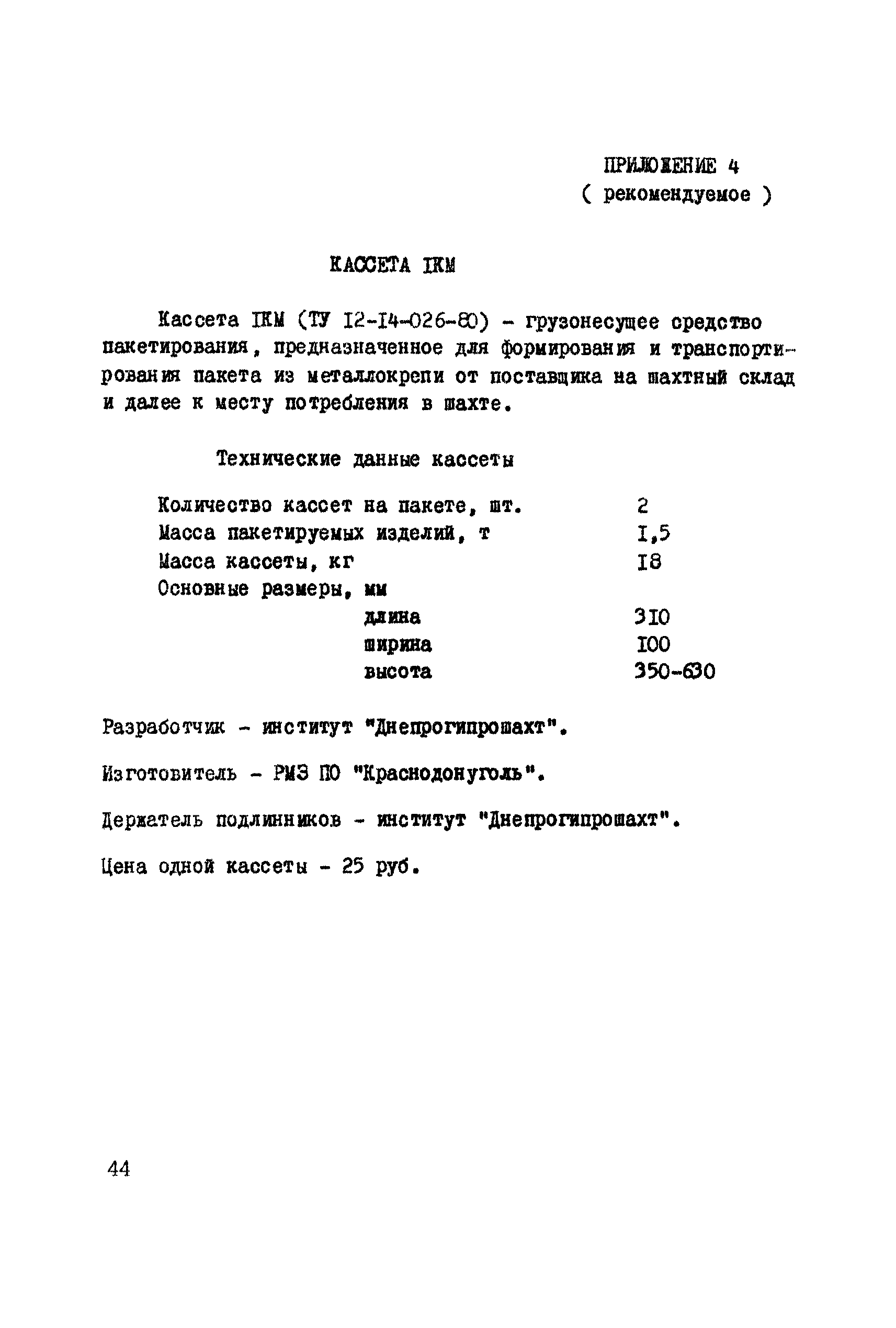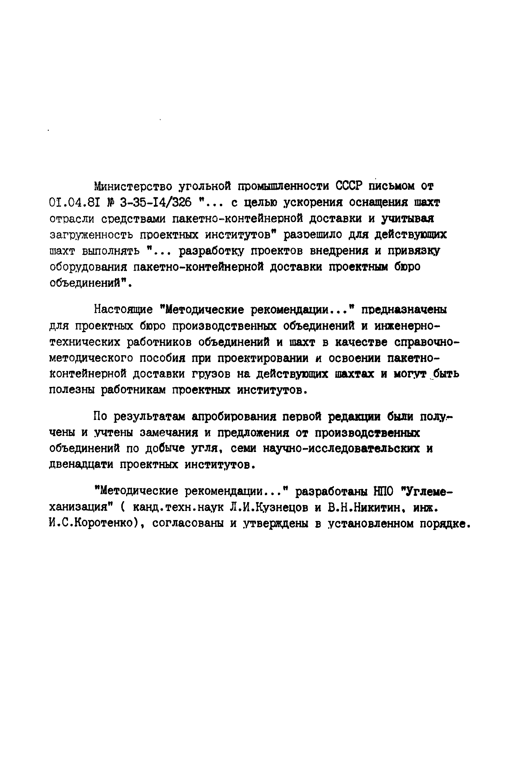 | Название рус.: | Методические рекомендации по проектированию пакетно-контейнерной доставки грузов в шахты |