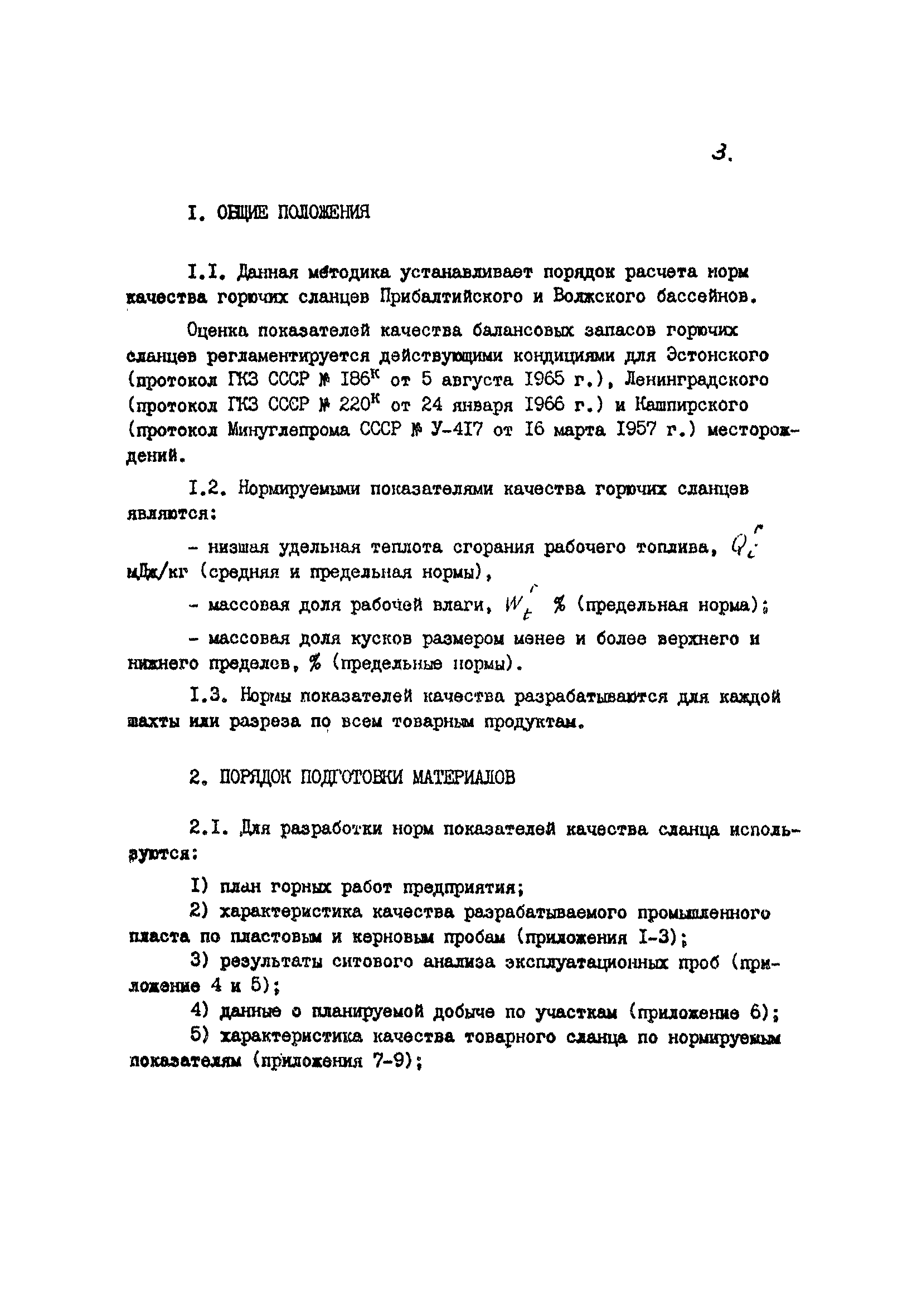 | Оглавление: | 1. Общие положения 2. Порядок подготовки материалов 3. Расчет средних норм показателей качества 4. Расчет предельных норм показателей качества товарного сланца Приложение 1. Сводная таблица актов отбора проб по шахте (разрезу) Приложение 2. Характеристика пласта по керновым пробам, подработанных геологоразведочных скважин Приложение 3. Сводная таблица керновых проб по подработанным скважин на поле шахты (разреза) Приложение 4. Сводная таблица актов отбора эксплуатационных проб по шахте (разрезу) Приложение 5. Сводная таблица . Характеристики ситового состава горючих сланцев Приложение 6. Справка о планируемой добыче сланца Приложение 7. Сводка фактических показателей качества сланца за истекший и планируемый периоды по шахте (разрезу) Приложение 8. Сводка колебаний показателей качества отгруженного сланца Приложение 9. Сводная таблица показателей качества горючих сланцев Приложение 10. Сводка фракционных анализов сланца Приложение 11. Пример расчета средней нормы удельной теплоты сгорания продуктов обогащения |