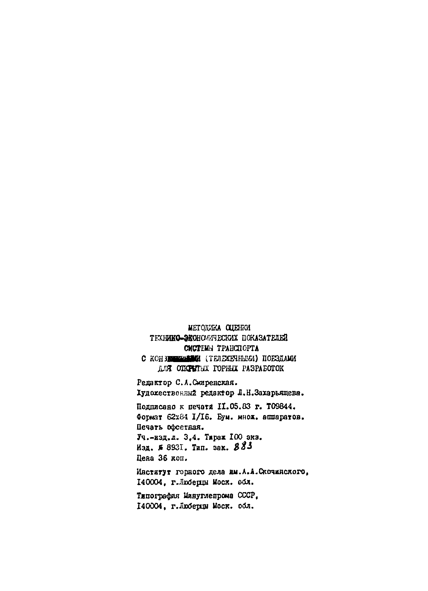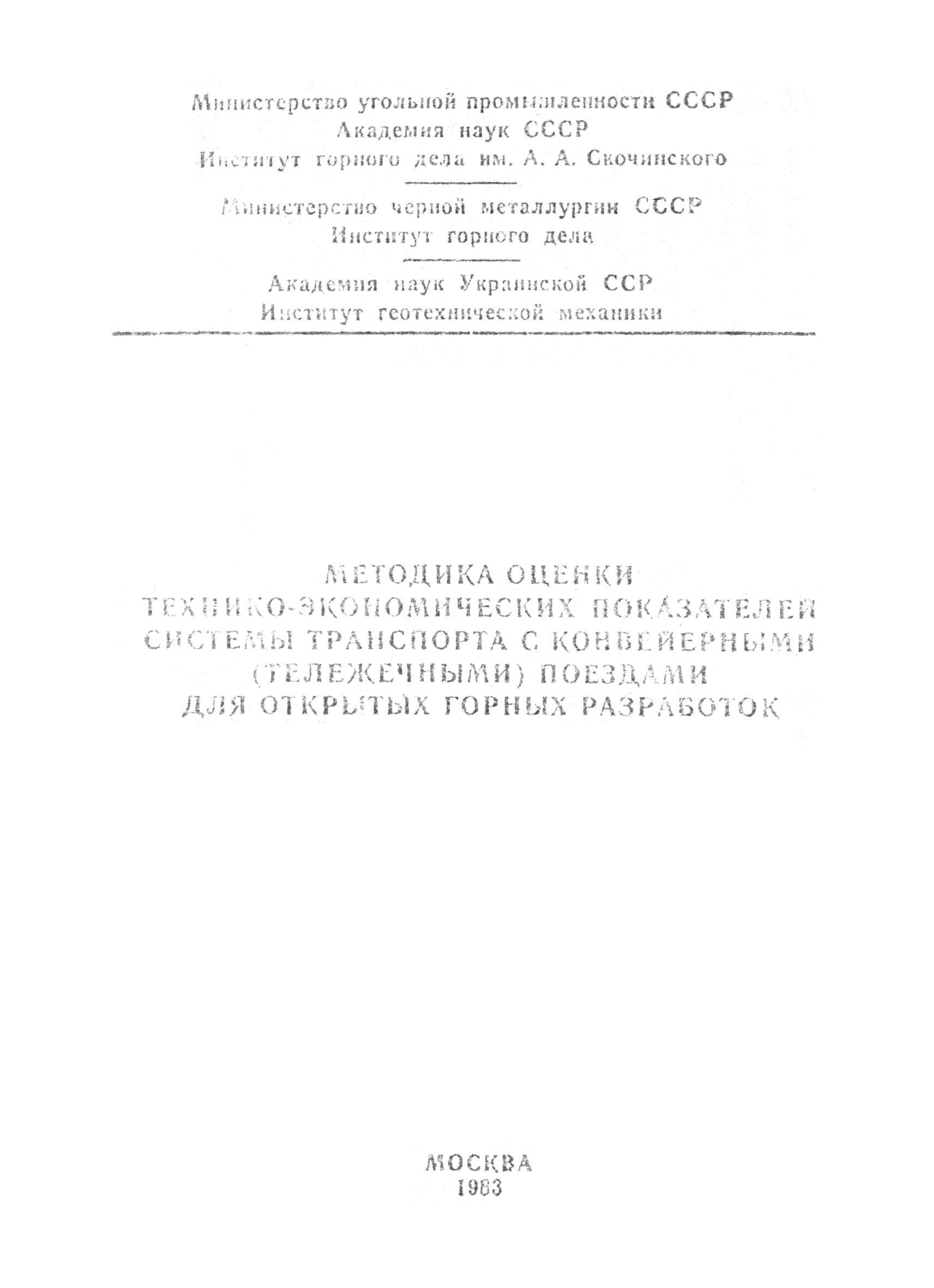 | Название рус.: | Методика оценки технико-экономических показателей системы транспорта с конвейерными (тележными) проездами для открытых горных разработок |