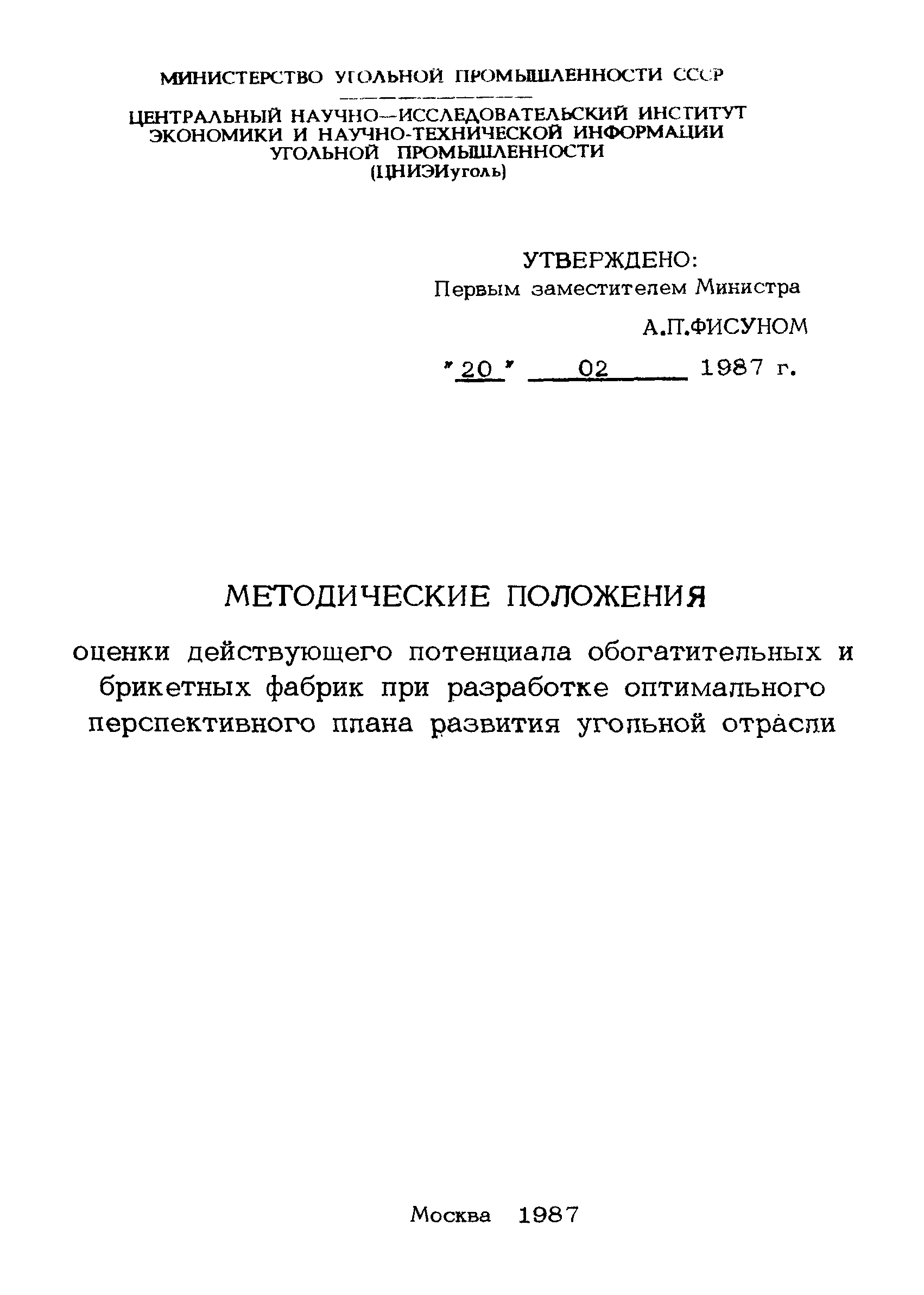 | Утверждён: | 20.02.1987 Министерство угольной промышленности СССР (USSR Ministry of the Coal Industry )