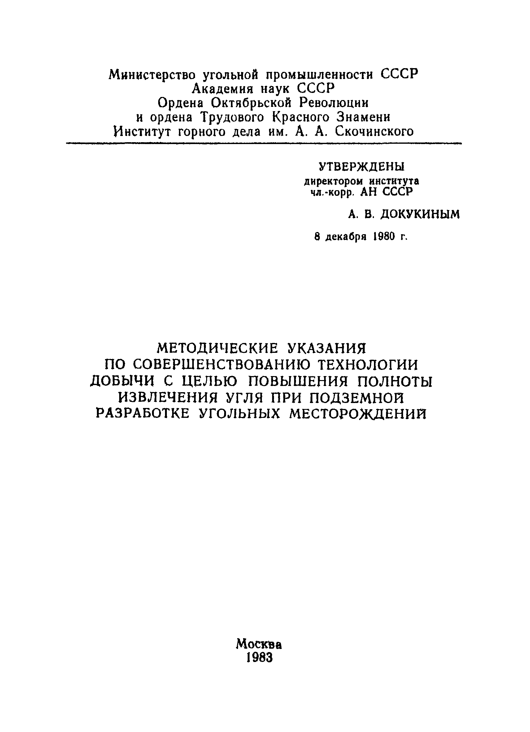 | Утверждён: | 08.12.1980 Институт горного дела им. А.А. Скочинского