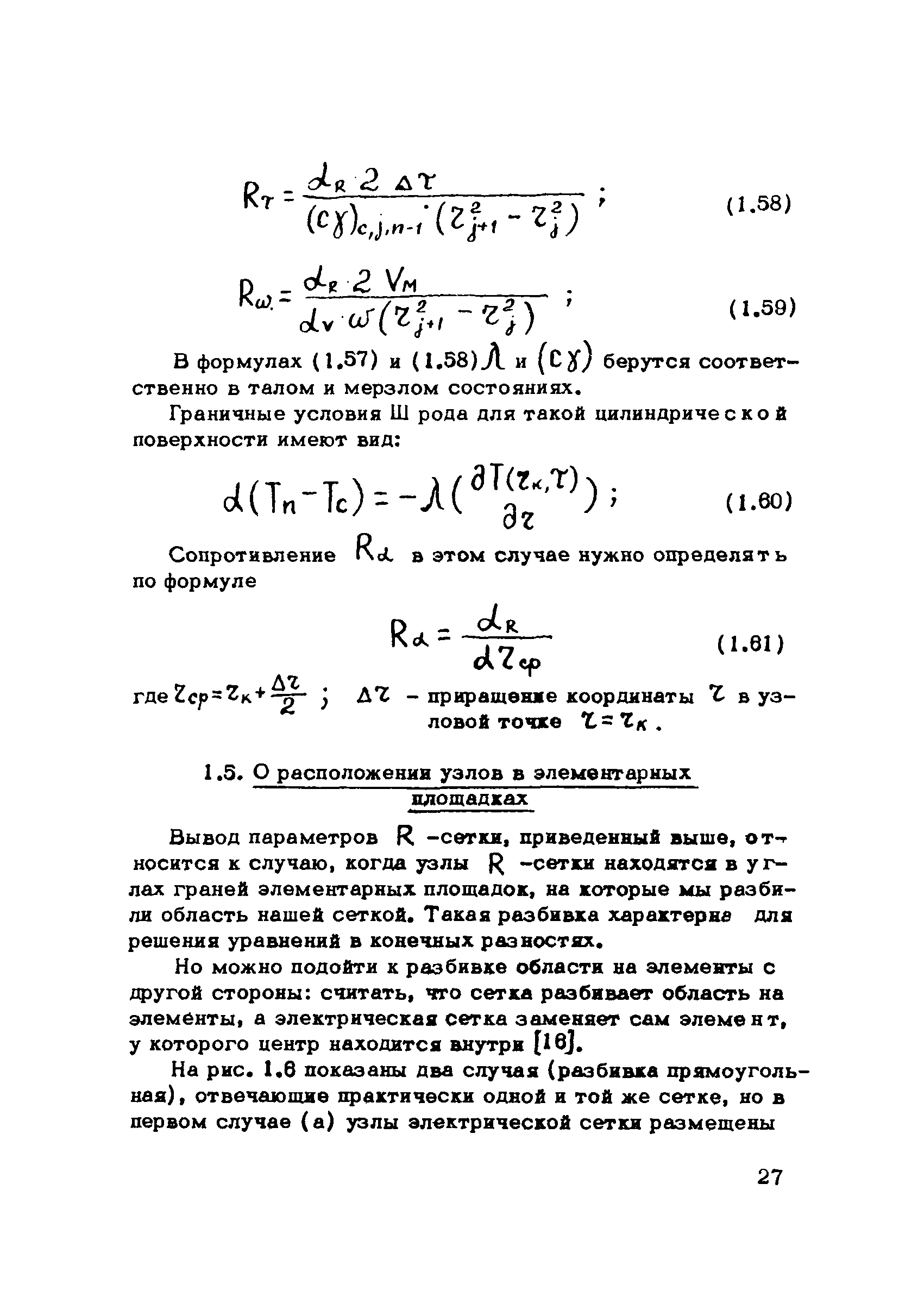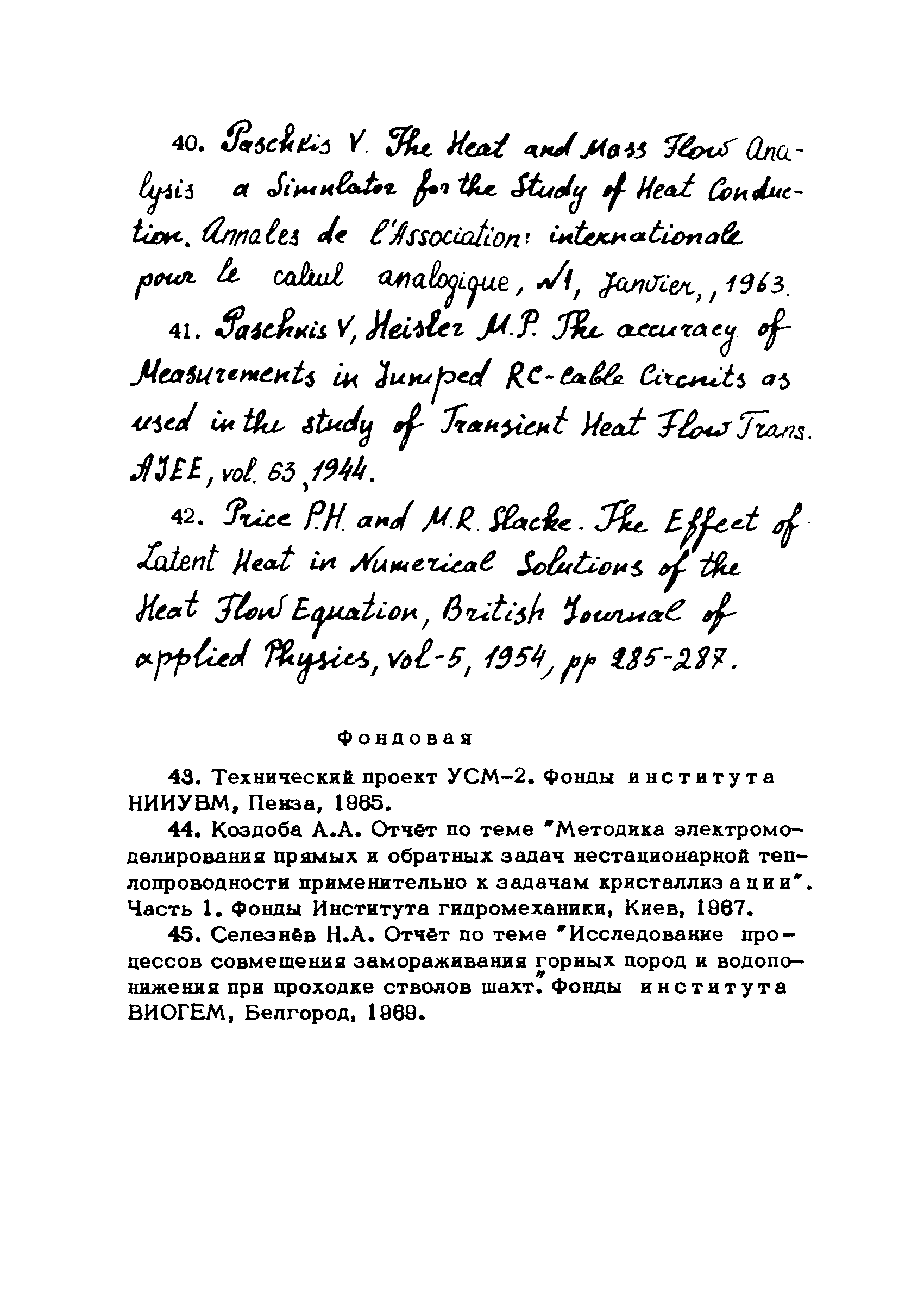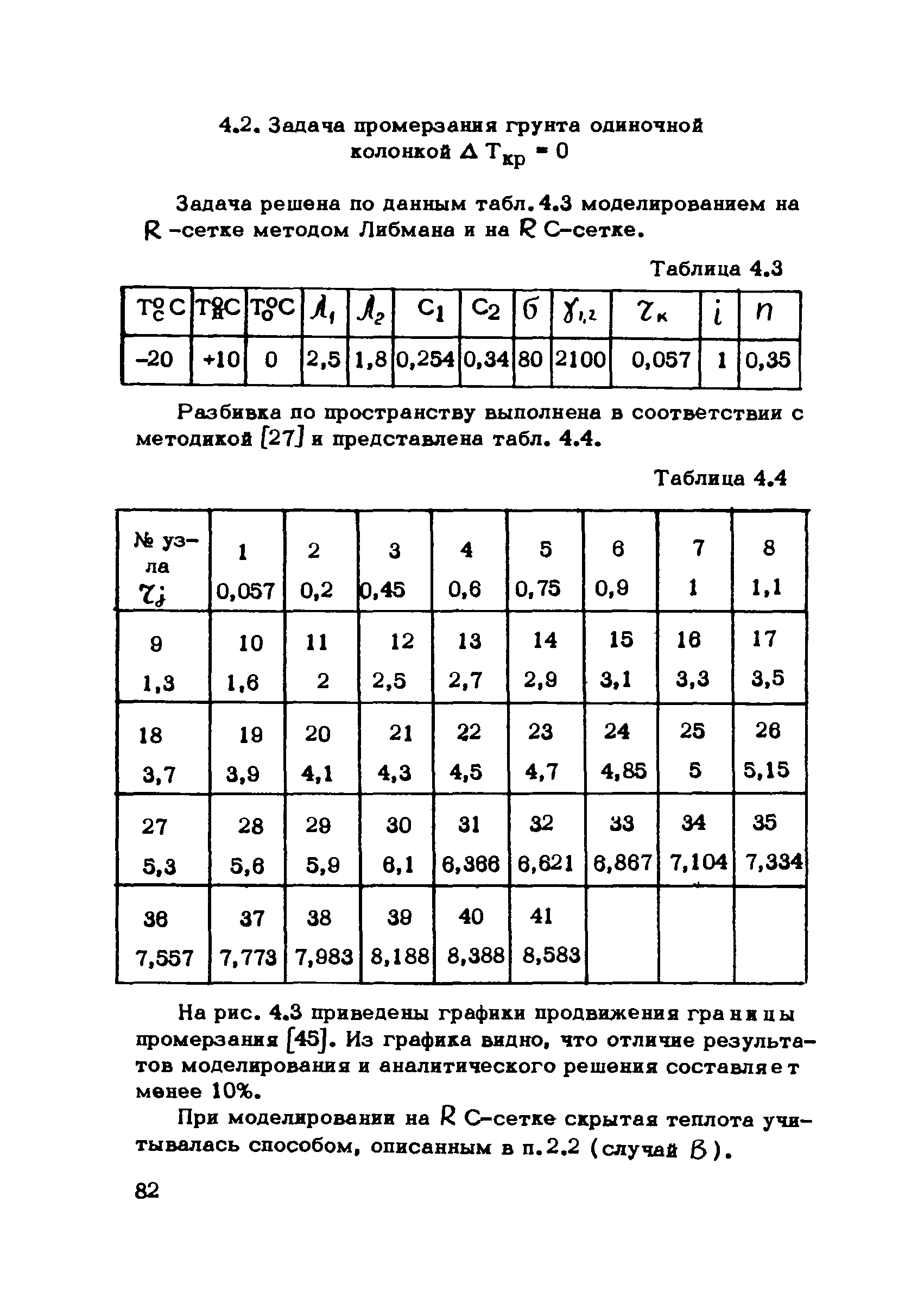 Методические указания по решению задач промерзания грунтов на электромоделях| Статус: | справочные материалы, мп, тпр | | Название рус.: | Методические указания по решению задач промерзания грунтов на электромоделях | | Дата добавления в базу: | 01.01.2019 | | Дата актуализации: | 01.01.2021 | | Область применения: | В работе приводится методика электромоделирования задач промерзания грунтов на моделях—аналогах R и RС—сетках, излагаются вопросы применения теории подобия к расчету температурных полей в грунтах, показаны различные способы учета скрытой теплоты льдообразования для случаев, когда дельта Ткр равно 0 и дельта Ткр не равно 0. Описан комбинированный способ решения задач, описываемых уравнениями типа теплопроводности, на RС—сетках | | Оглавление: | Введение Глава 1. Методика расчёта промерзания грунта на электрических моделях-сетках омических сопротивлений 1.1. Математическая теория вопроса 1.2. Схемы конечно-разностных аппроксимаций уравнений теплопроводности. Вопросы устойчивости и сходимости. Электрическая реализация неявных разностных схем 1.3. Правила моделирования. Электротепловая аналогия 1.4. Расчёт параметров R-сетки 1.5. О расположении узлов в элементарных площадках 1.6. Методика решения задач промерзания грунта 1.7. Методика решения задач промерзания грунта. Линеаризация уравнения 1.8. Некоторые дополнительные возможности учёта скрытой теплоты при моделировании на R-сетках 1.9. Точность решения, полученного на R-сетках Глава 2. Методика расчёта промерзания грунта на электромоделях RС-сетках 2.1. Расчёт масштабных коэффициентов при моделировании на RС-сетках 2.2. Способы учёта скрытой теплоты 2.3. Блок учёта нелинейностей (БУН) 2.4. Учёт скрытой теплоты 2.5. Комбинированный способ решения уравнений типа теплопроводности на сеточных электромоделях (на примере УСМ-1) 2.6. К вопросу точности решения, получаемого на RС-сетках Глава 3. Применение теории подобия задачам промерзания грунта 3.1. Критерии подобия, используемые при моделировании 3.2. Применение подобных преобразований при расчете температурных полей в грунтах 3.3. О различных линейных масштабах и масштабах времени в мерзлой и талой зонах при моделировании Глава 4. Решение конкретных задач промерзания грунтов 4.1. Задача промерзания полуограниченного массива грунта 4.2. Задача промерзания грунта одиночной колонкой 4.3. Задача промерзания грунта при расположении ряда колонок по прямой линии, А = О 4.4. Задача промерзания грунта при расположении ряда колонок по кольцу 4.5. Задача промерзания полуограниченного массива грунта Литература | | Разработан: | ВИОГЕМ
