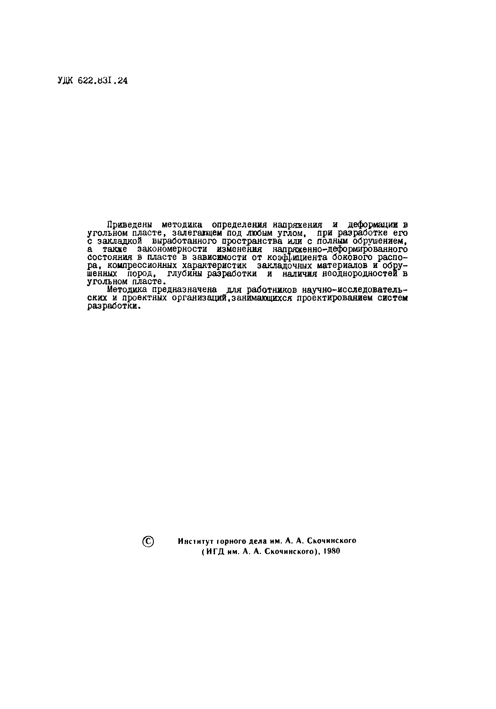 | Утверждён: | 05.03.1980 Институт горного дела им. А.А. Скочинского