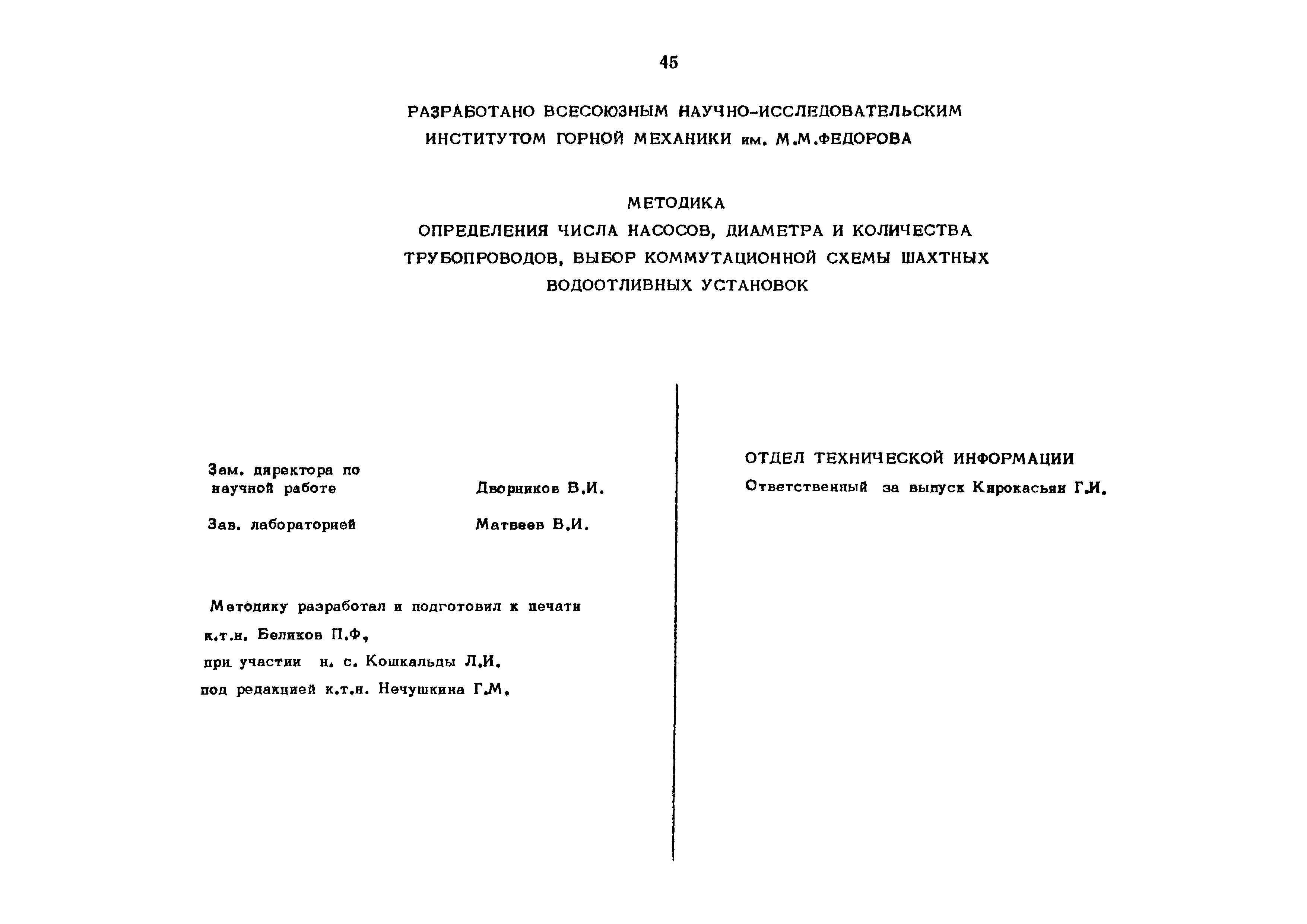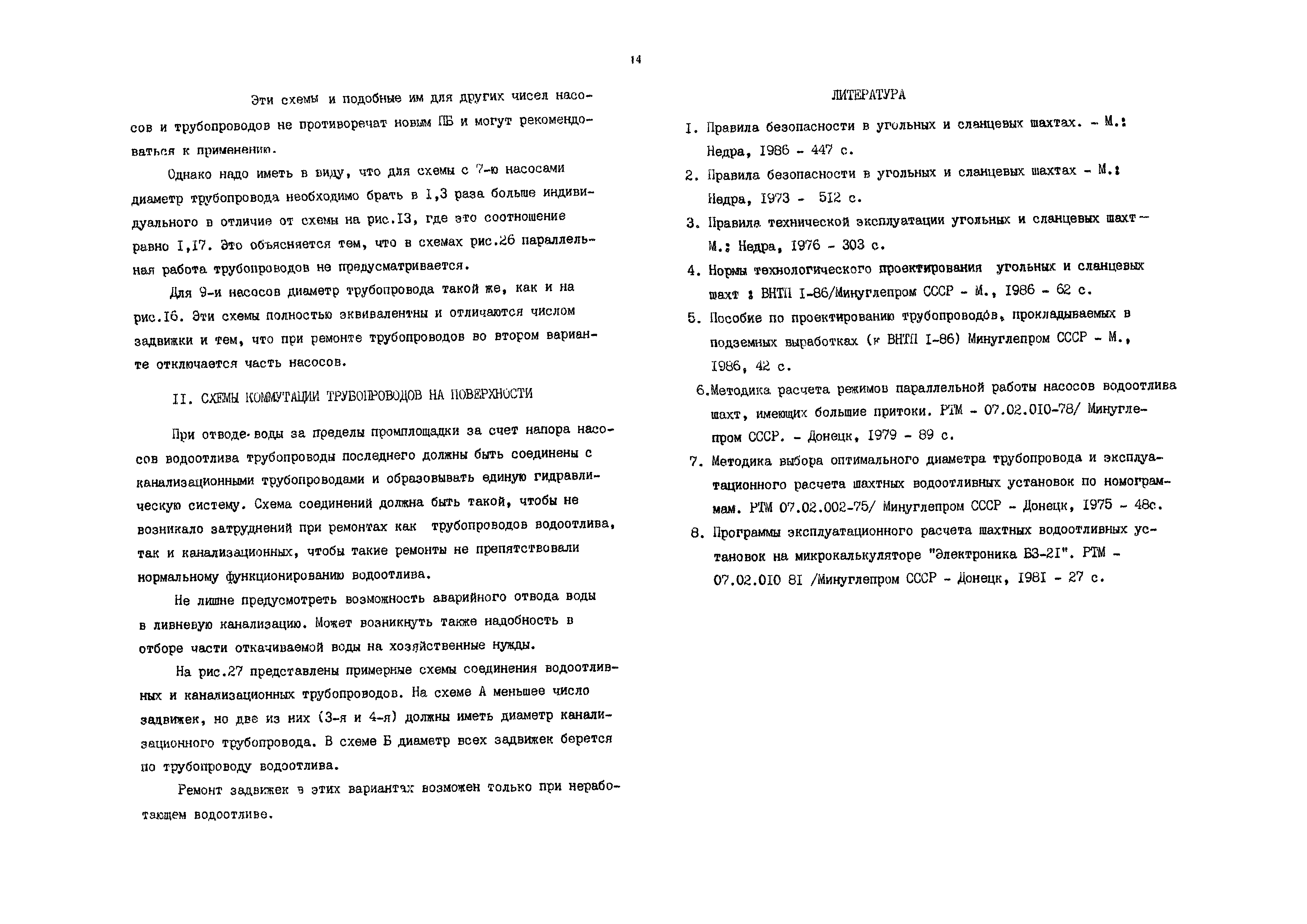Скачать Методика определения числа насосов, диаметра и количества трубопроводов, выбора коммутационной схемы шахтных водоотливных установокДата актуализации: 01.01.2021