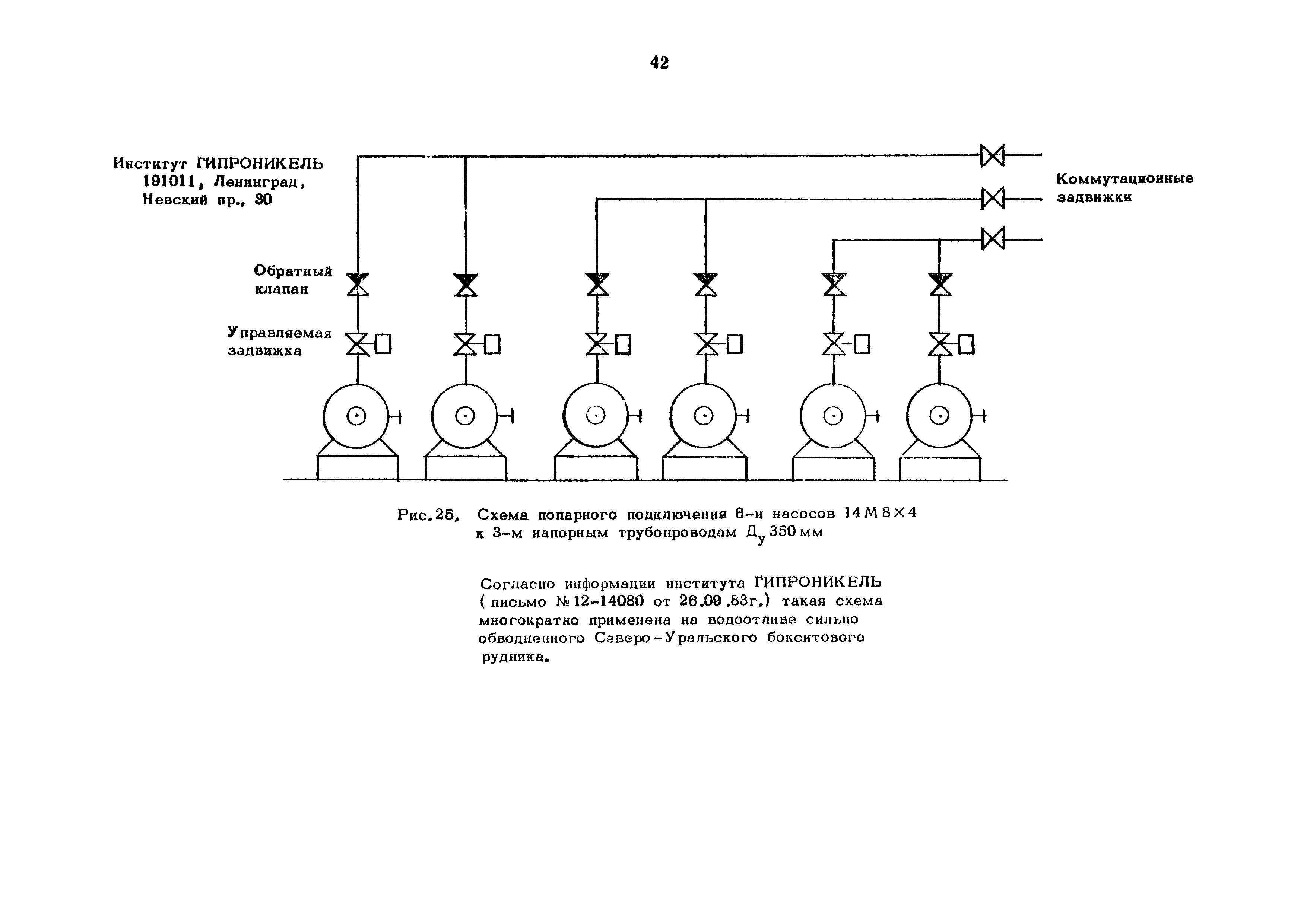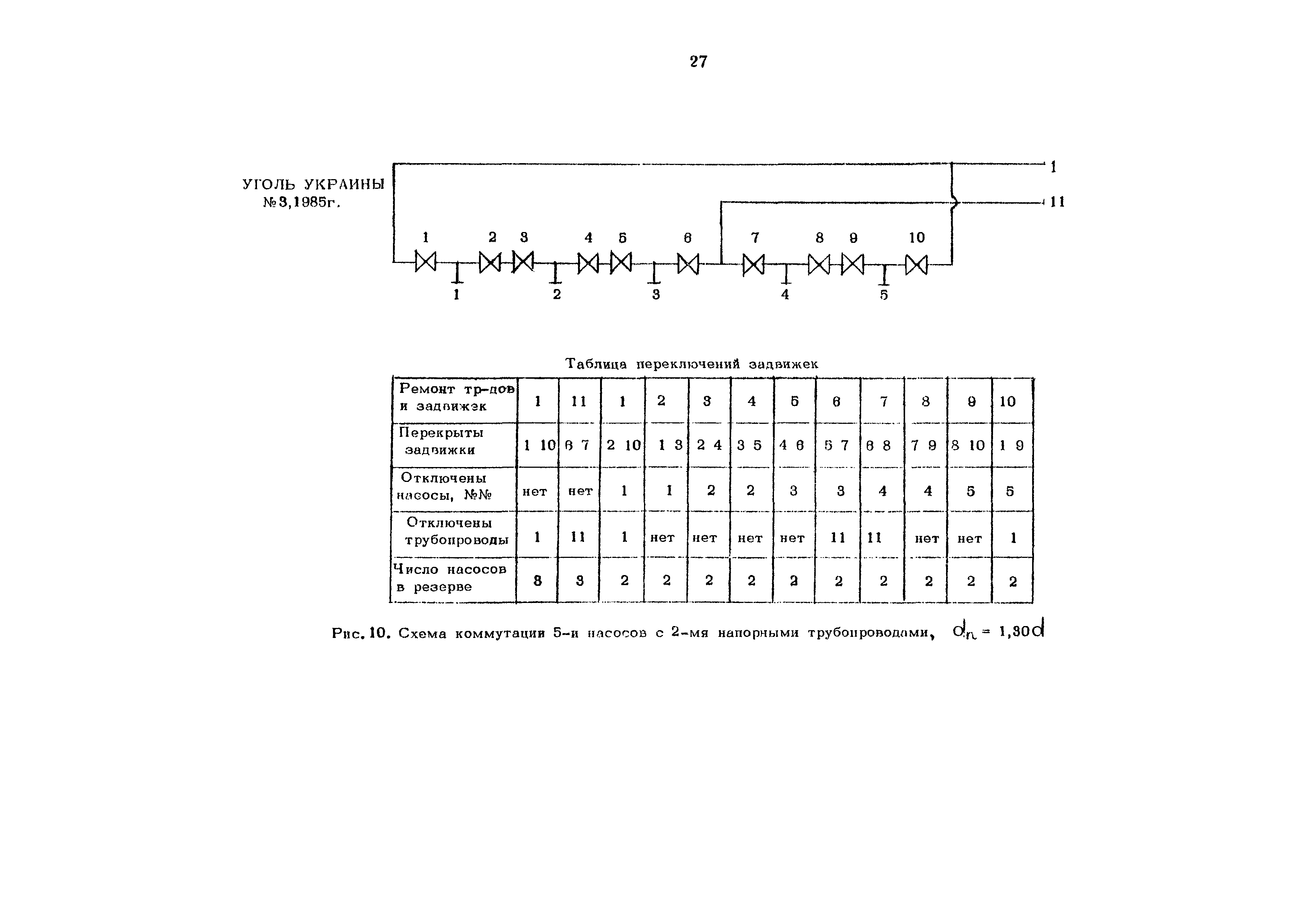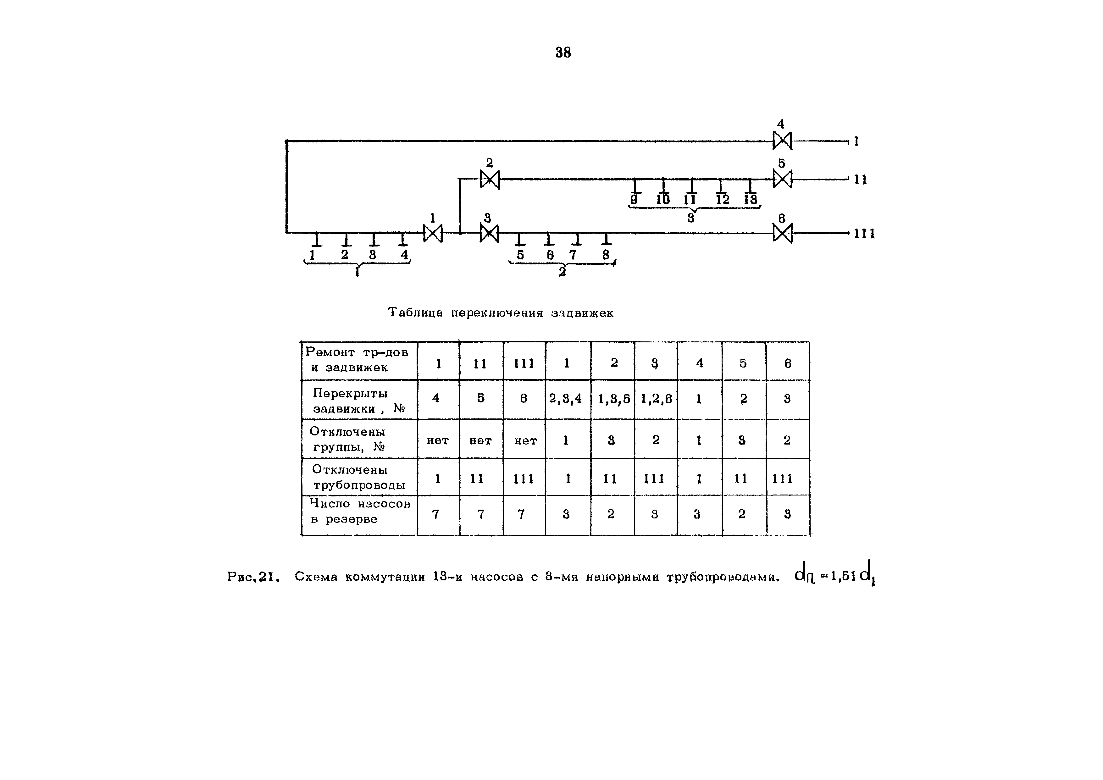 Методика определения числа насосов, диаметра и количества трубопроводов, выбора коммутационной схемы шахтных водоотливных установок| Статус: | справочные материалы, мп, тпр | | Название рус.: | Методика определения числа насосов, диаметра и количества трубопроводов, выбора коммутационной схемы шахтных водоотливных установок | | Дата добавления в базу: | 01.02.2020 | | Дата актуализации: | 01.01.2021 | | Оглавление: | Введение 1 Принятая терминология 2 Определение числа насосных агрегатов 3 Определение диаметра и количества трубопроводов 4 Требования к схемам коммутации 5 Недостатки традиционных схем коммутации при большом числе насосов и трубопроводов 6 Особенности предлагаемых схем коммутации 7 Таблицы переключений задвижек 8 Схемы коммутации двух напорных трубопроводов с 3,5 и 7 насосами 9 Схемы коммутации трех напорных трубопроводов с 7, 9, 11 и 13 насосами 10 Схемы коммутации с образованием автономных групп 11 Схемы коммутации трубопроводов на поверхности 12 Литература Приложение. Список организаций, приславших отзывы на требования и первую редакцию методики Таблицы | | Разработан: | Центральный научно-исследовательский институт экономики и научно-технической информации угольной промышленности (ЦНИЭИуголь)