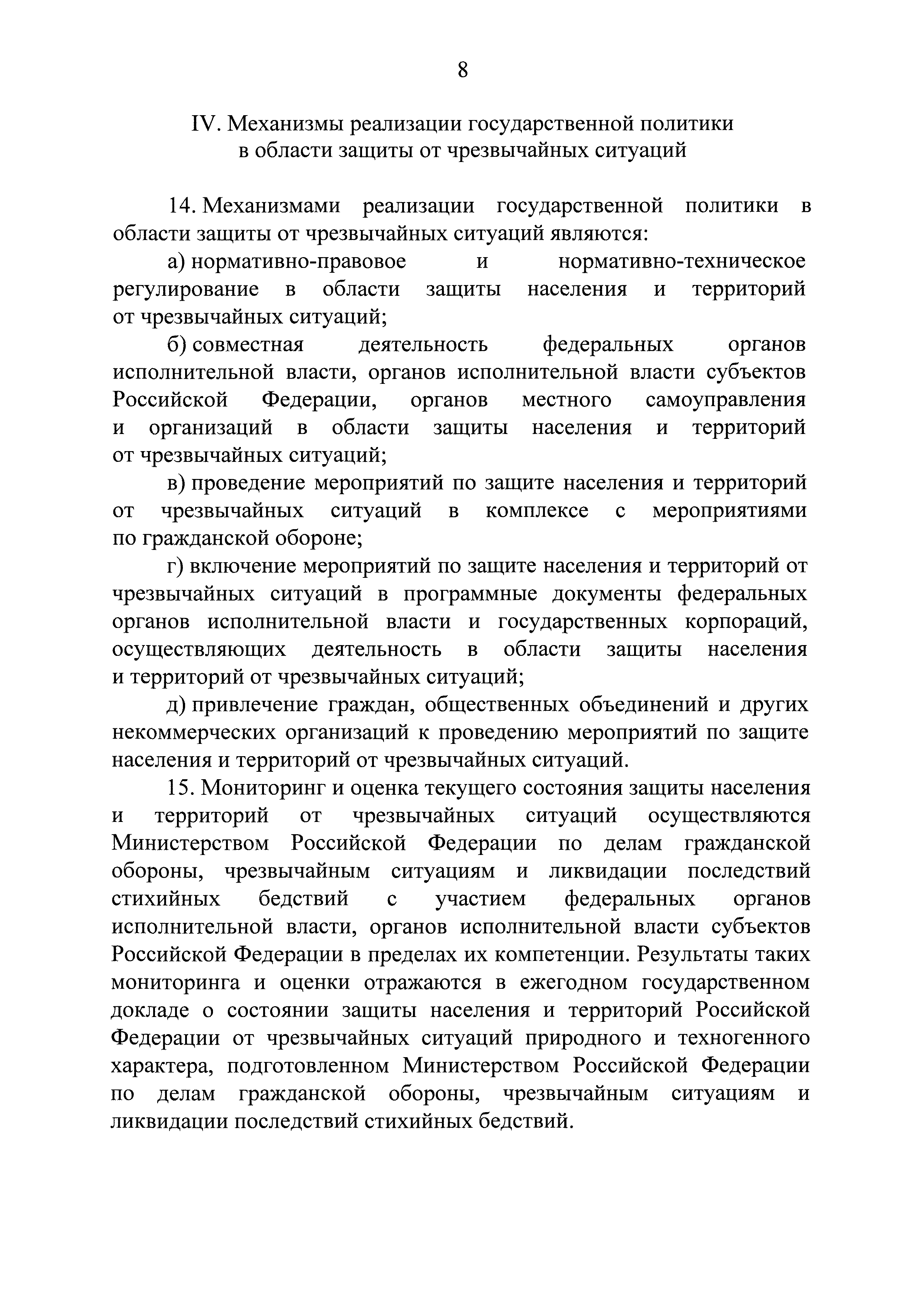 | Оглавление: | I. Общие положения II. Оценка состояния и основные тенденции в области защиты населения и территорий от чрезвычайных ситуаций III. Цель, задачи и приоритетные направления государственной политики в области защиты от чрезвычайных ситуаций IV. Механизмы реализации государственной политики в области защиты от чрезвычайных ситуаций V. Показатели состояния защиты населения и территорий от чрезвычайных ситуаций VI. Задачи, функции и порядок взаимодействия федеральных органов исполнительной власти, органов исполнительной власти субъектов Российской Федерации, органов местного самоуправления и организаций при реализации государственной политики в области защиты от чрезвычайных ситуаций VII. Ресурсное обеспечение мероприятий по реализации государственной политики в области защиты от чрезвычайных ситуаций |
