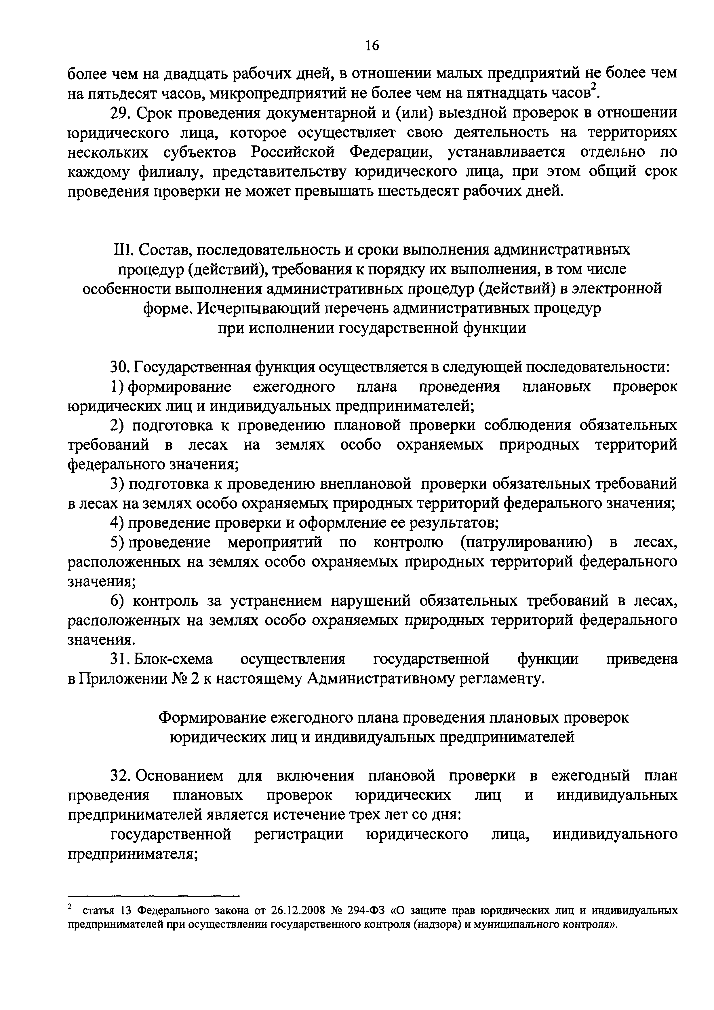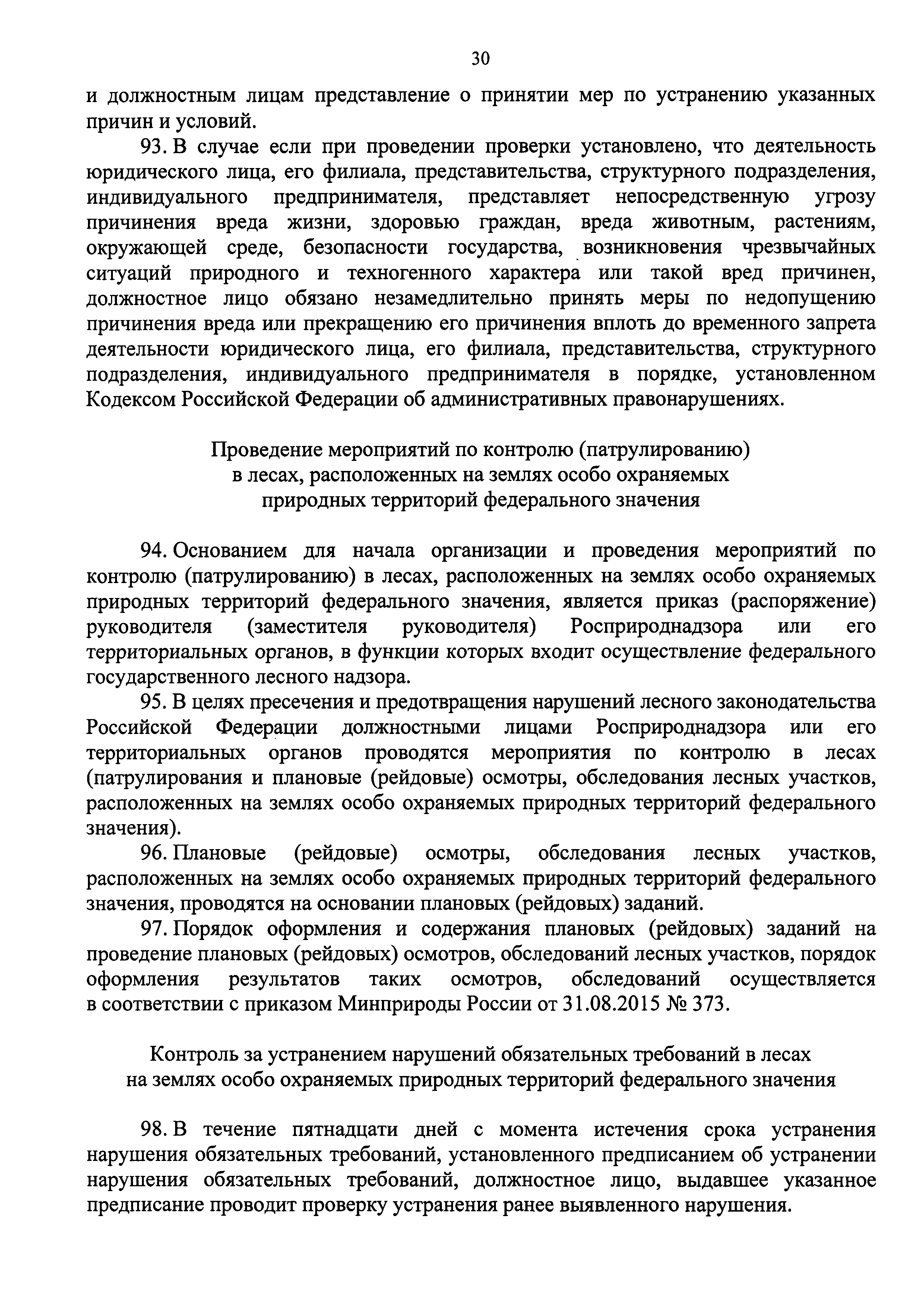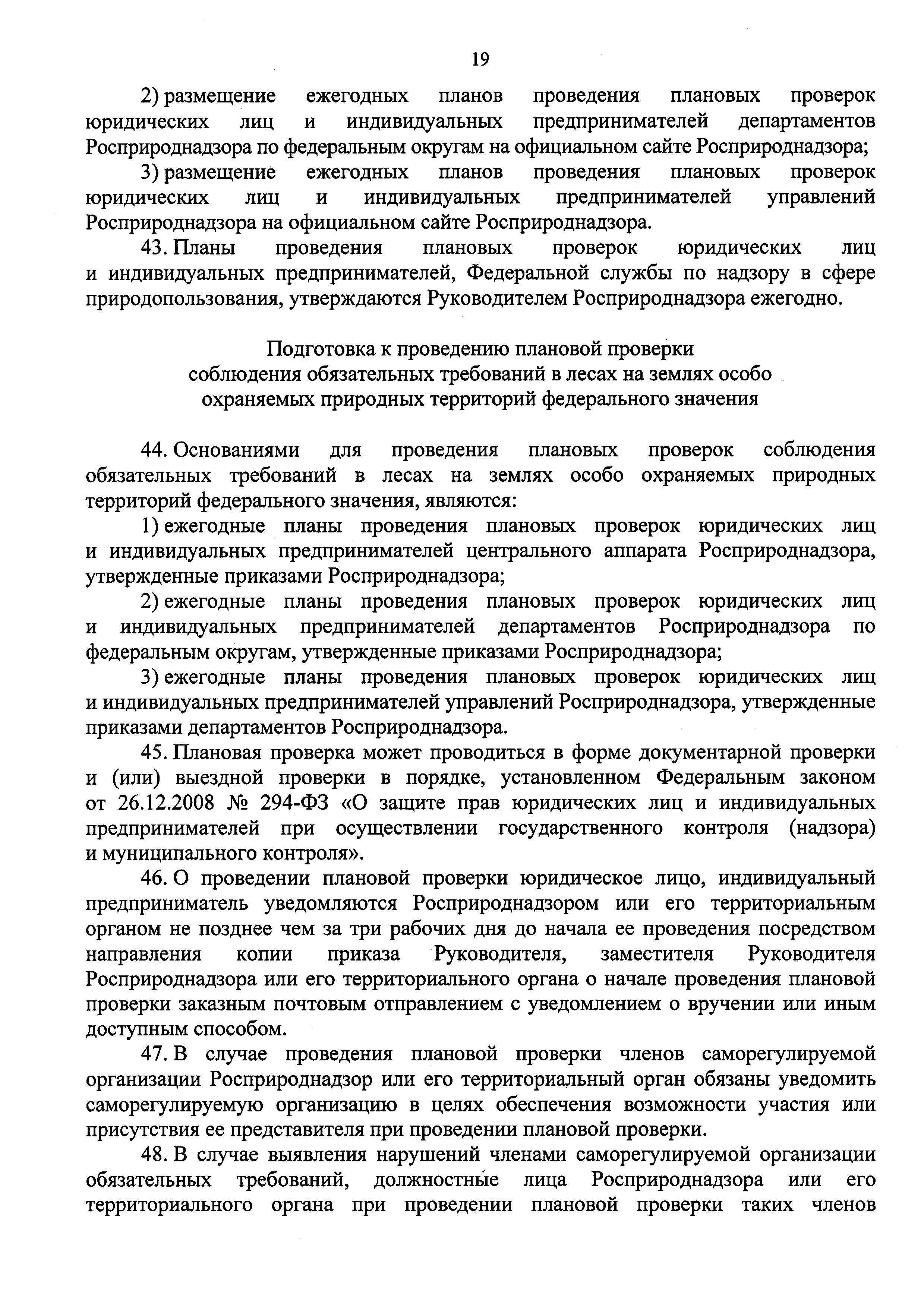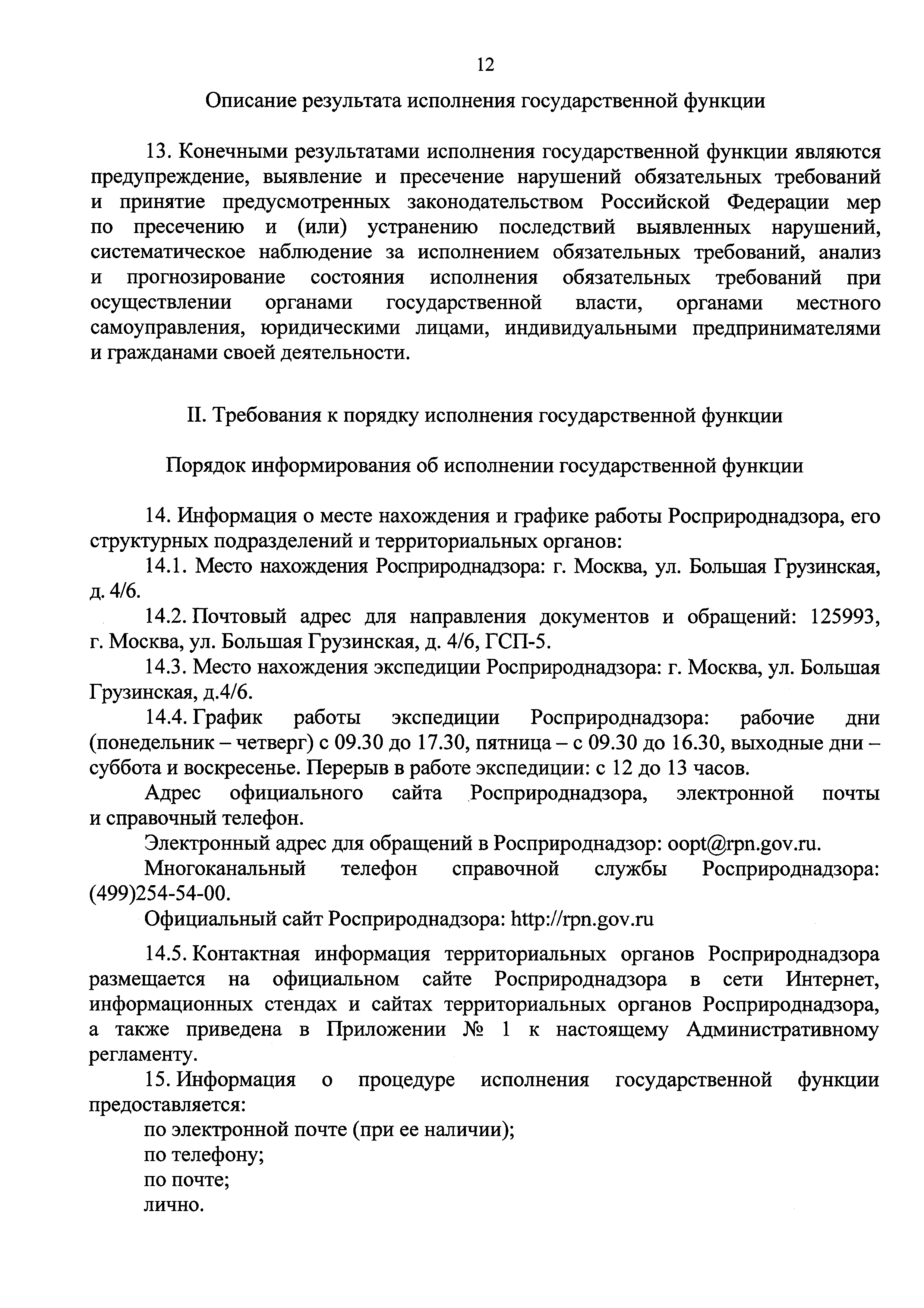 | Оглавление: | I. Общие положения II. Требования к порядку исполнения государственной функции III. Состав, последовательность и сроки выполнения административных процедур (действий), требования к порядку их выполнения, в том числе особенности выполнения административных процедур (действий) в электронной форме. Исчерпывающий перечень административных процедур при исполнении государственной функции Раздел IV. Порядок и формы контроля за исполнением государственной функции Раздел V. Досудебный (внесудебный) порядок обжалования решений и действий (бездействия) органа, исполняющего государственную функцию, а также их должностных лиц Приложение № 1. Список территориальных органов Росприроднадзора Приложение № 2. Блок-схема последовательности административных процедур при осуществлении федерального государственного пожарного надзора в лесах, расположенных на землях особо охраняемых природных территорий федерального значения |