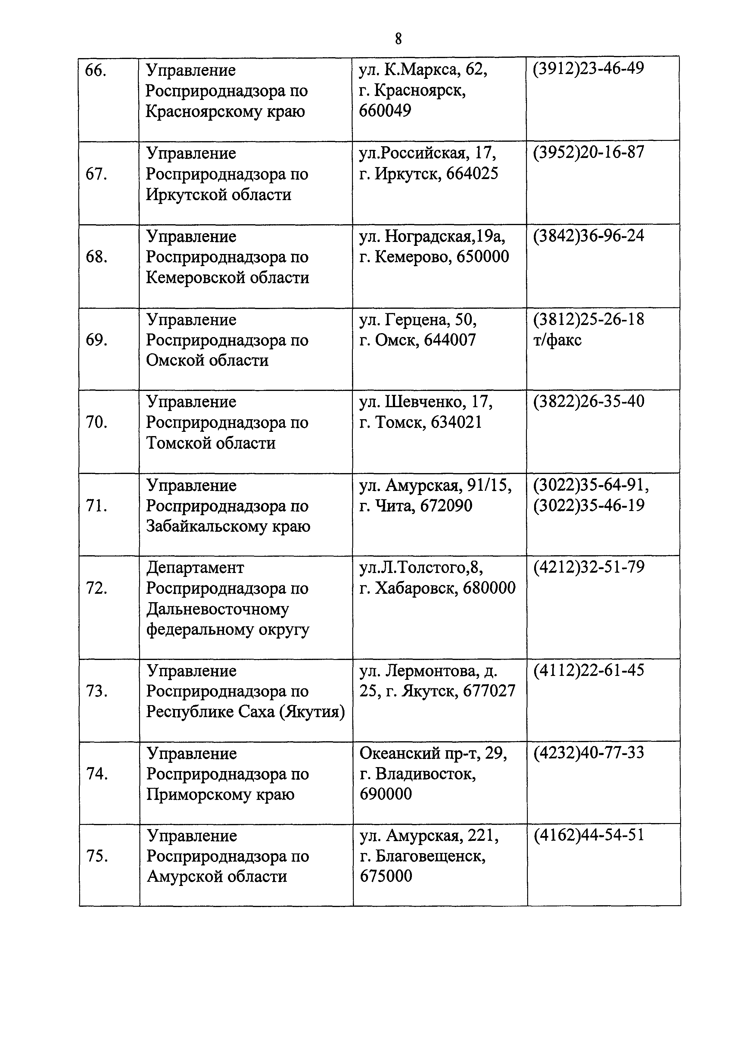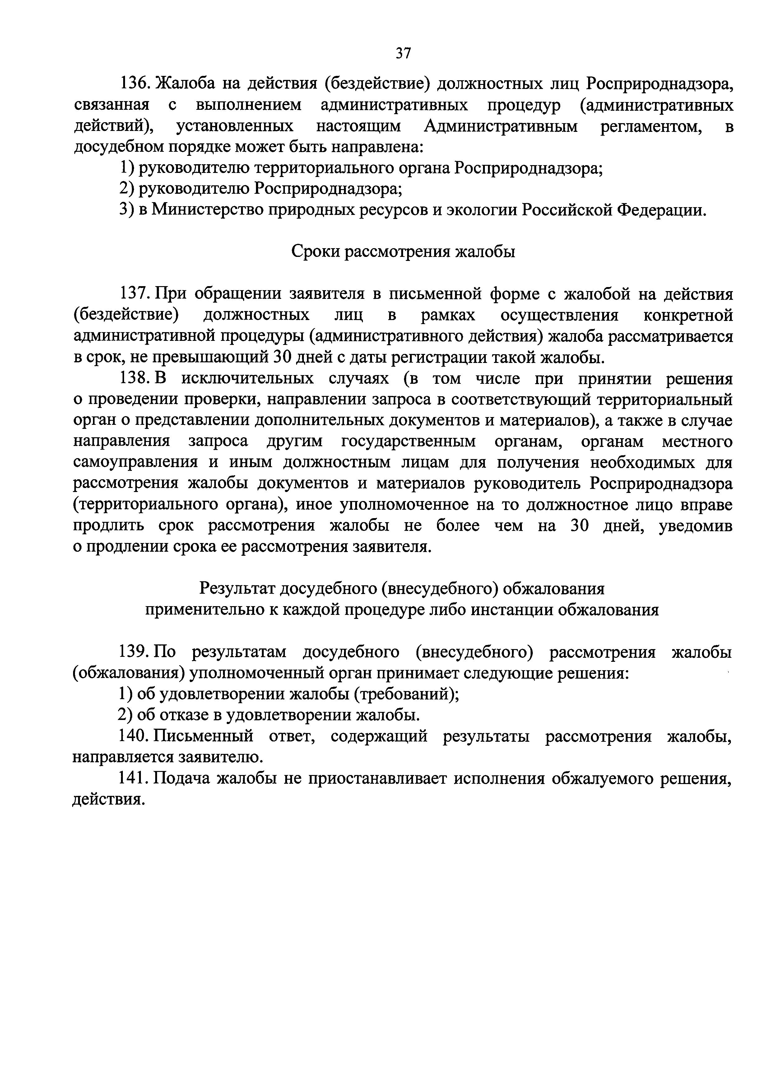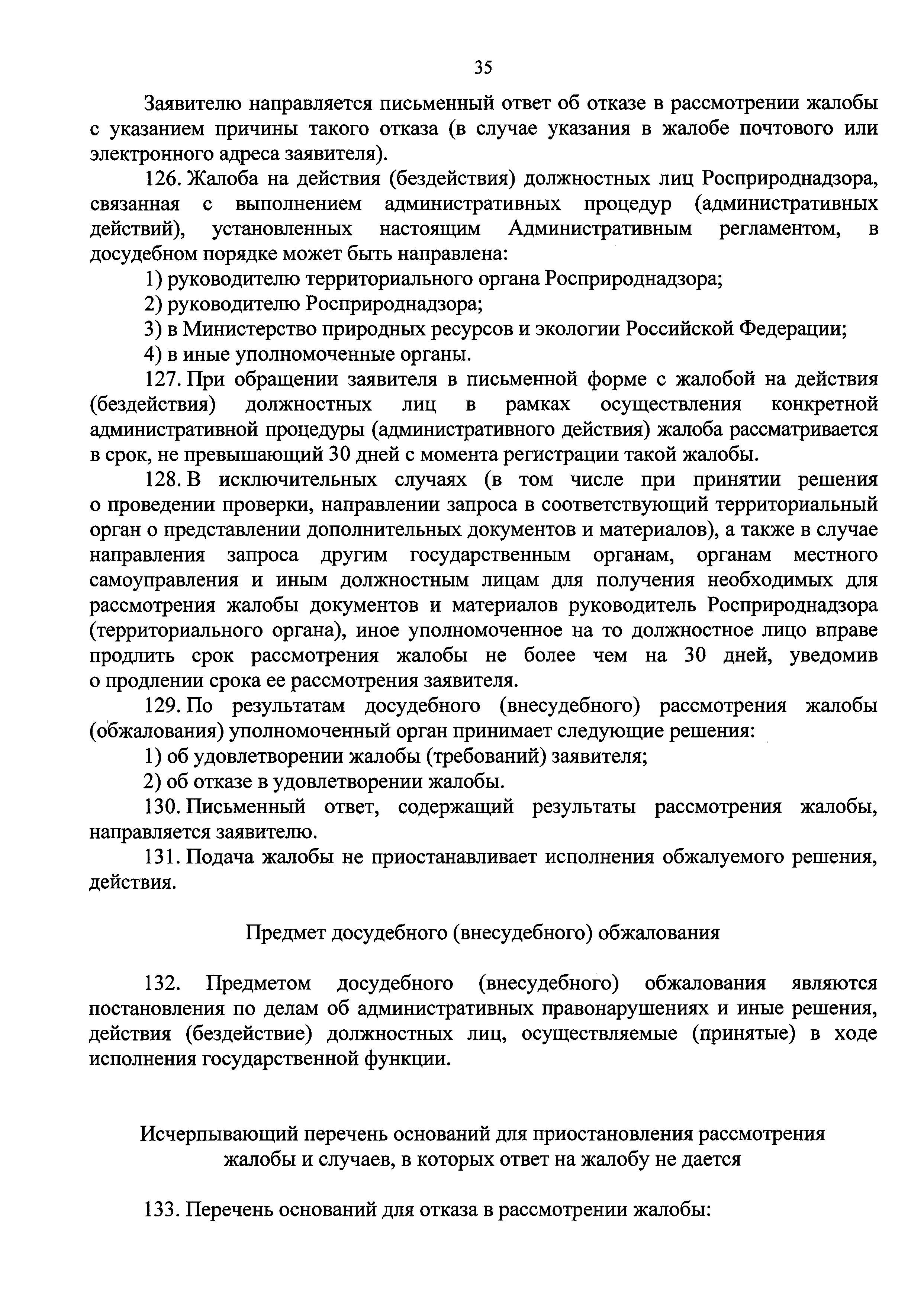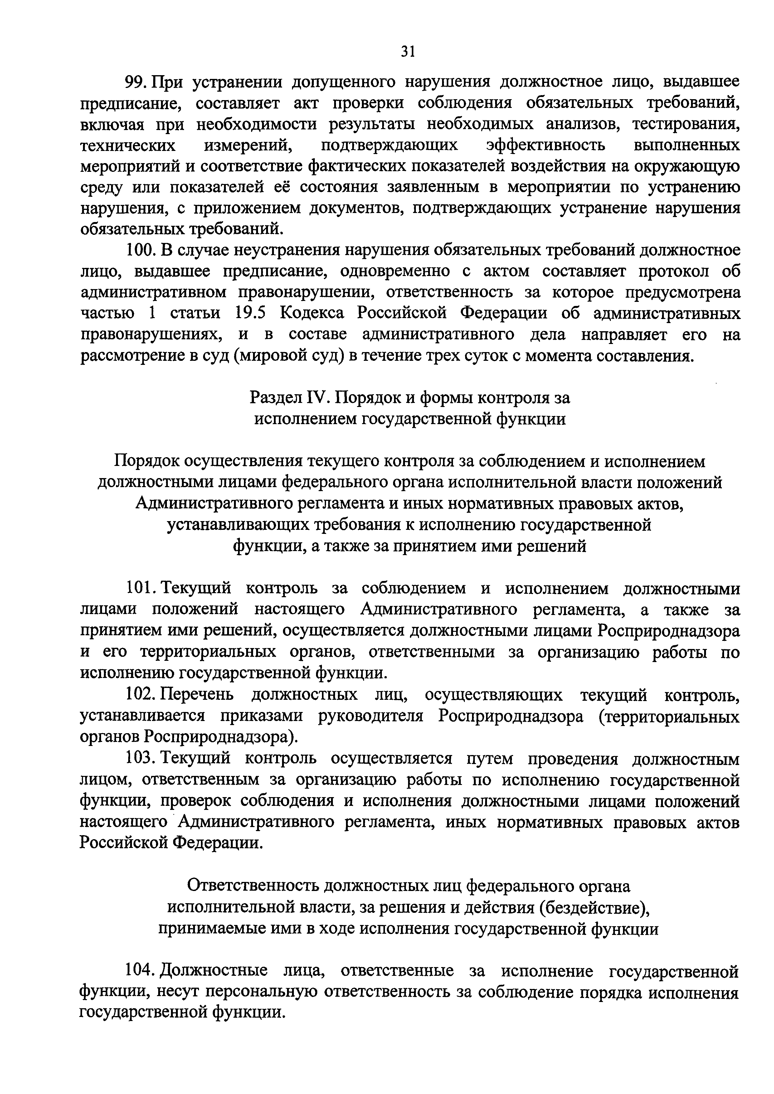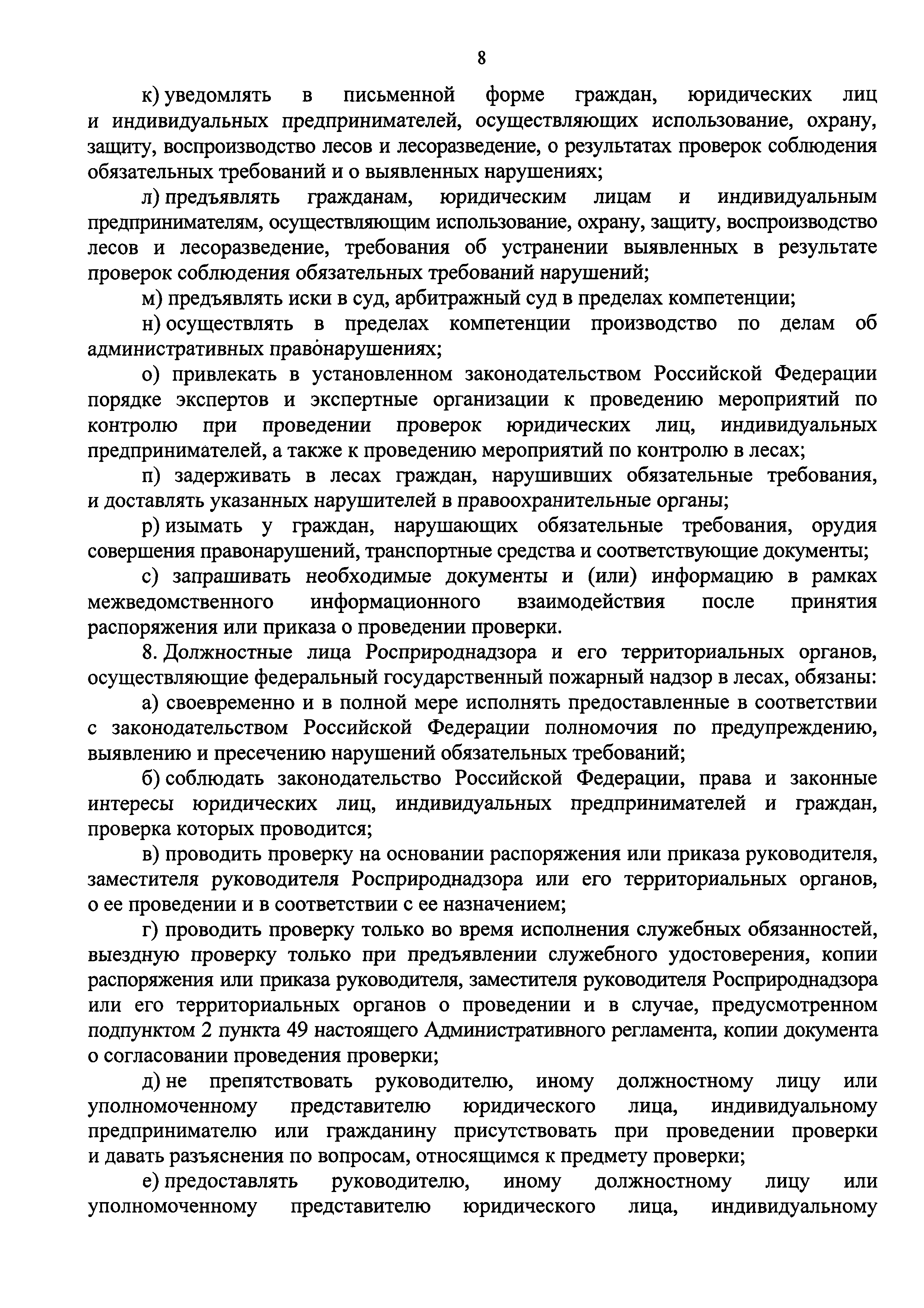 | Оглавление: | I. Общие положения II. Требования к порядку исполнения государственной функции III. Состав, последовательность и сроки выполнения административных процедур (действий), требования к порядку их выполнения, в том числе особенности выполнения административных процедур (действий) в электронной форме. Исчерпывающий перечень административных процедур при исполнении государственной функции Раздел IV. Порядок и формы контроля за исполнением государственной функции Раздел V. Досудебный (внесудебный) порядок обжалования решений и действий (бездействия) органа, исполняющего государственную функцию, а также их должностных лиц Приложение № 1. Список территориальных органов Росприроднадзора Приложение № 2. Блок-схема последовательности административных процедур при осуществлении федерального государственного пожарного надзора в лесах, расположенных на землях особо охраняемых природных территорий федерального значения |