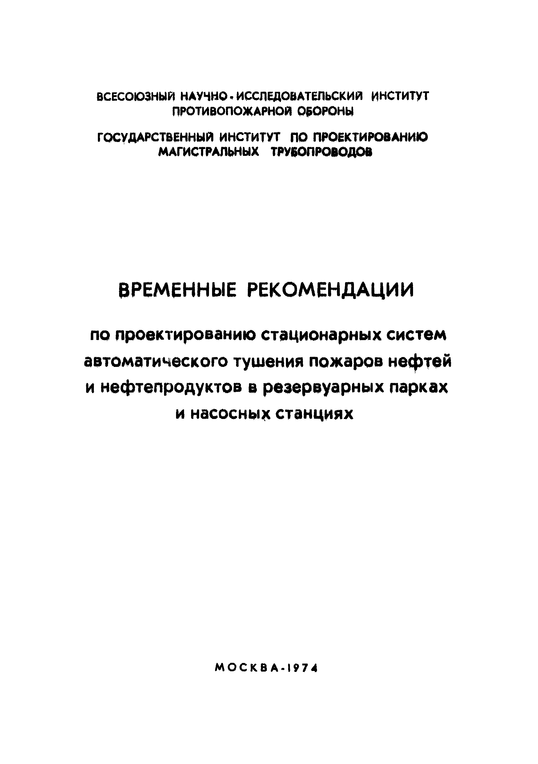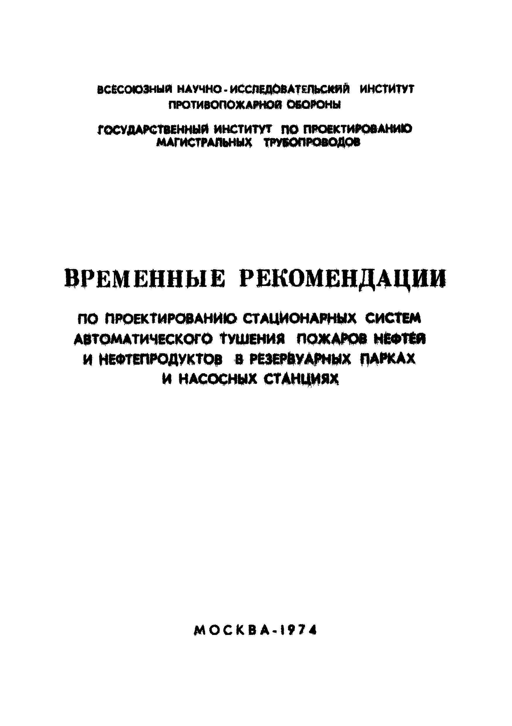 | Название рус.: | Временные рекомендации по проектированию стационарных систем автоматического тушения пожаров нефтей и нефтепродуктов в резервуарных парках и насосных станциях |