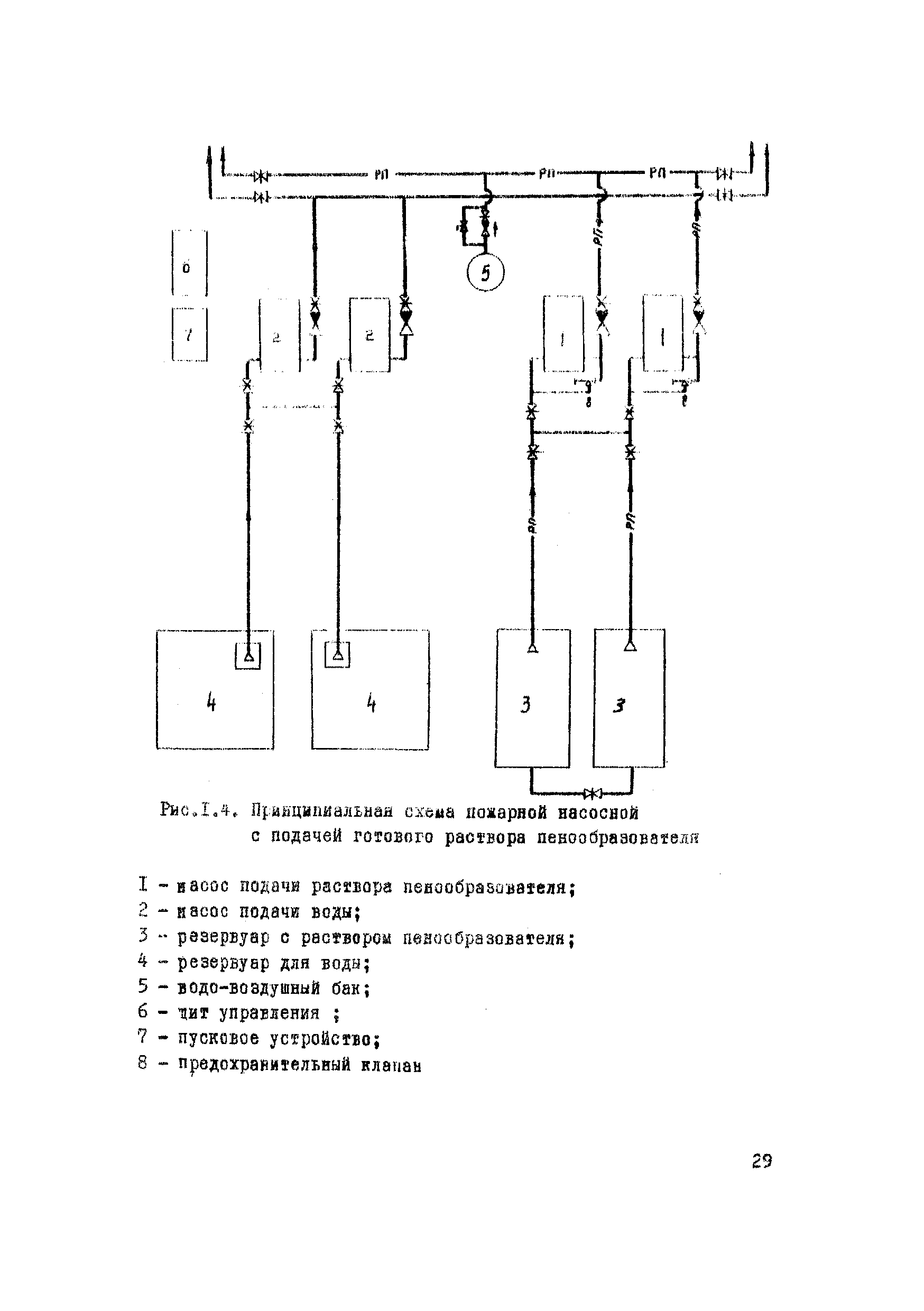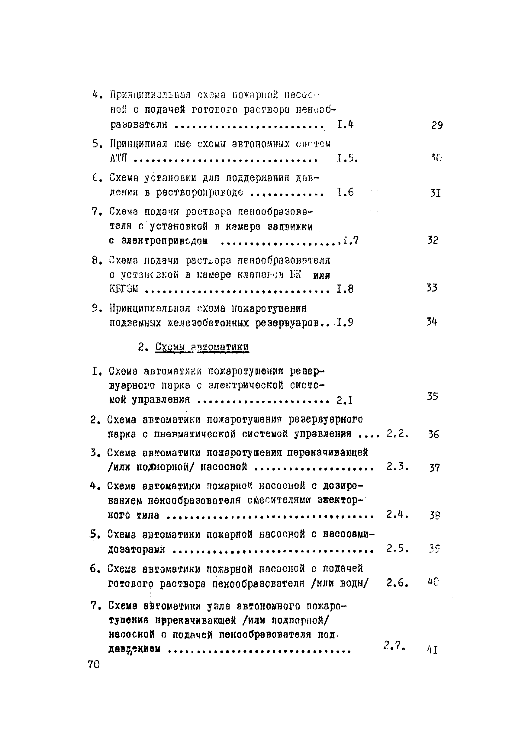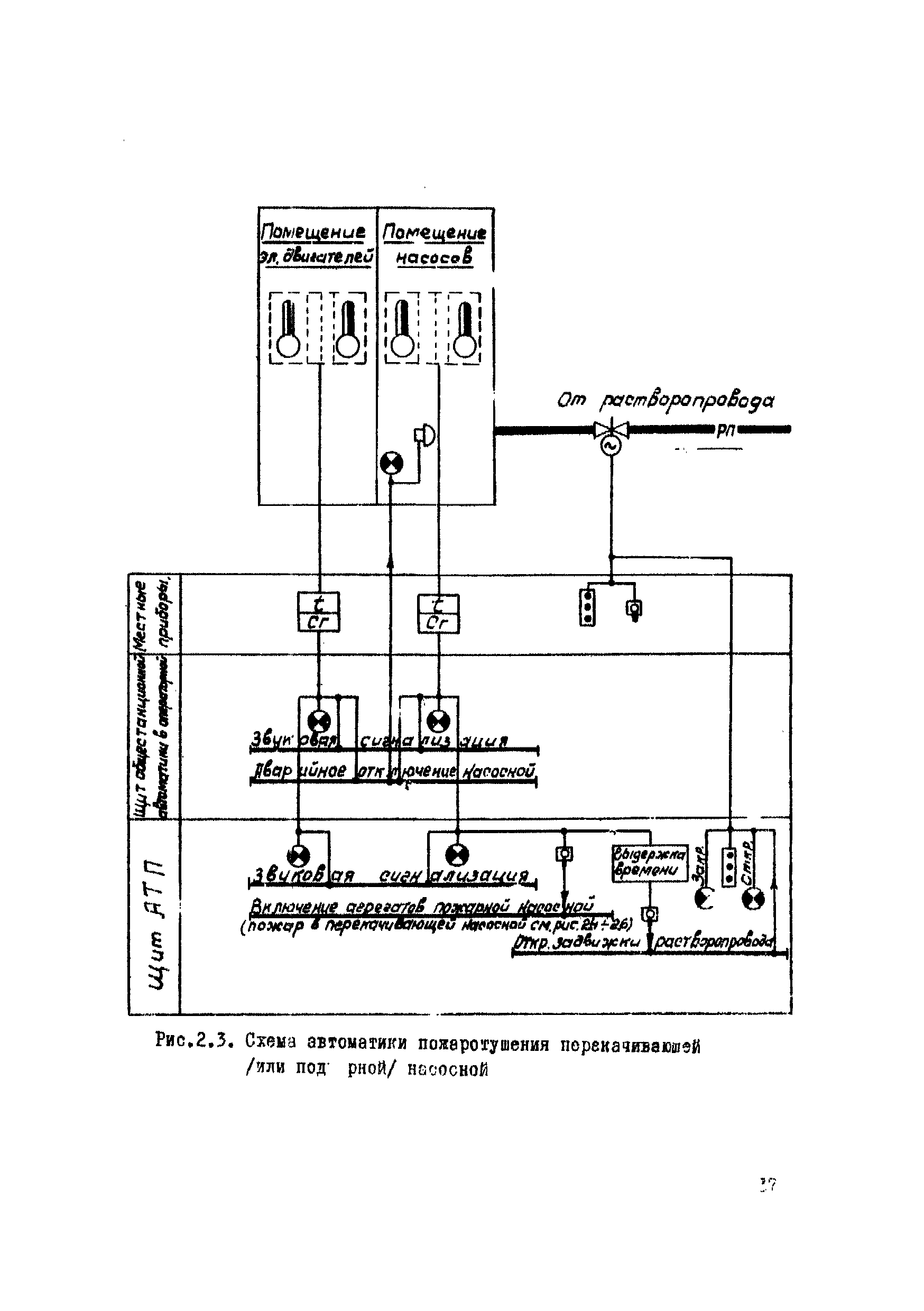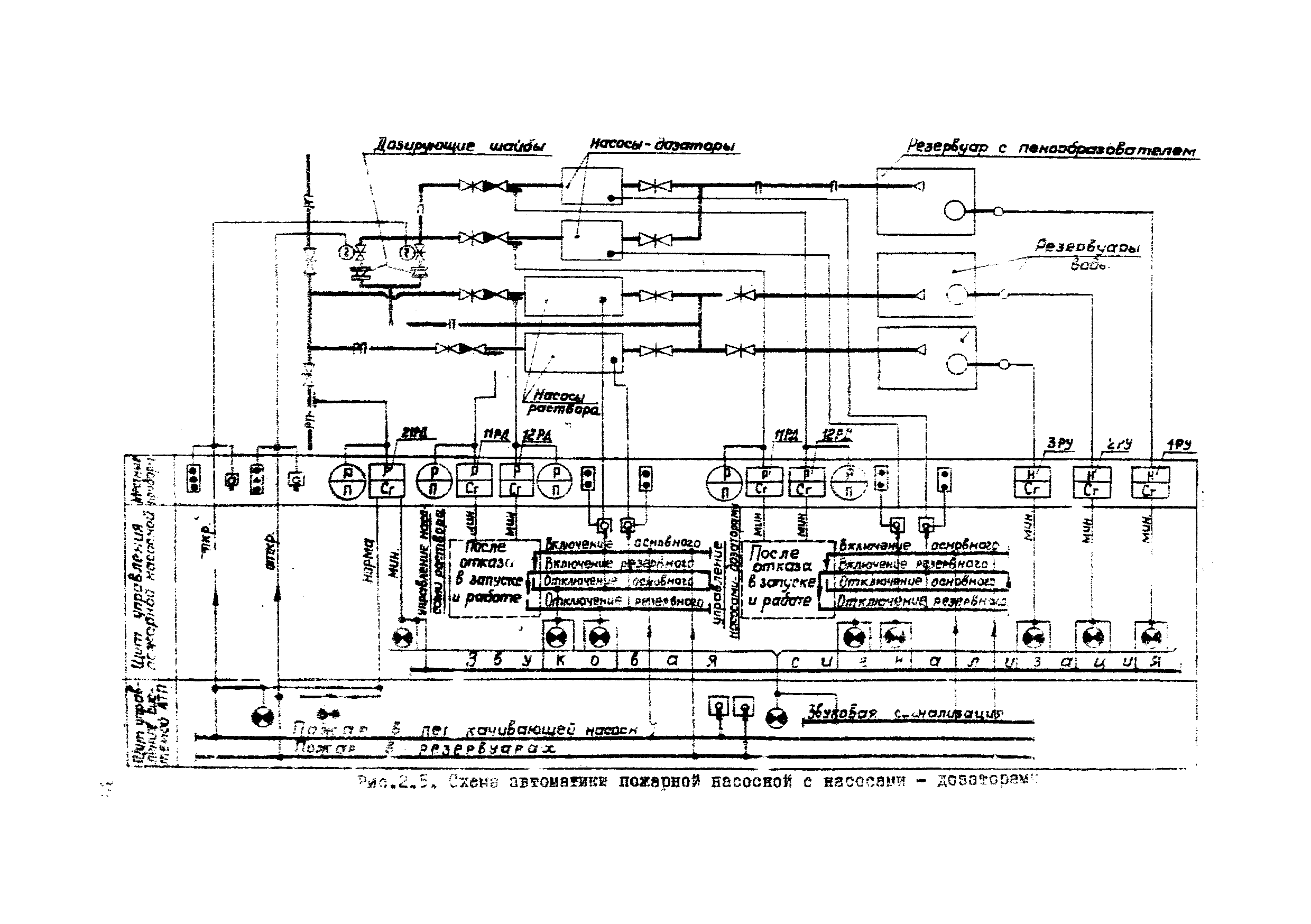 | Оглавление: | Введение Раздел I. Основные положения и требования к системе АТП 1 Общие положения 2 Принципиальная схема системы АТП 3 Пожарная насосная 4 Резервуары для воды, раствора пенообразователя и пенообразователя 5 Наружные сети растворопровода и водопровода 6 Устройства запорно—пусковые 7 Пеногенераторы и пенокамеры 8 Щит управления системой АТП 9 Пожарные извещатели (датчики) 10 Сети электропитания и автоматики Раздел II. Типовые принципиальные схемы систем АТП I Технологические схемы 1 Принципиальная технологическая схема системы АТП 2 Принципиальная схема пожарной насосной с дозированием пенообразователя смесителями эжекторного типа 3 Принципиальная схема пожарной насосной с насосами-дозаторами пенообразователя 4 Принципиальная схема пожарной насосной с подачей готового раствора пенообразователя 5 Принципиальные схемы автономных систем АТП 6 Схема установки для поддержания давления в растворопроводе 7 Схема подачи раствора пенообразователя с установкой в камере задвижки с электроприводом 8 Схема подачи раствора пенообразователя с установкой в камере клапанов БК или КБГЭМ 9 Принципиальная схема пожаротушения подземных железобетонных резервуаров 2 Схемы автоматики 1 Схема автоматики пожаротушения резервуарного парка с электрической системой управления 2 Схема автоматики пожаротушения резервуарного парка с пневматической системой управления 3 Схема автоматики пожаротушения перекачивающей (или подпорной) насосной 4 Схема автоматики пожарной насосной с дозированием пенообразователя смесителями эжекторного типа 5 Схема автоматики пожарной насосной с насосами-дозаторами 6 Схема автоматики пожарной насосной с подачей готового раствора пенообразователя (или воды) 7 Схема автоматики узла автономного пожаротушения перекачивающей (или подпорной) насосной с подачей пенообразователя под давлением 8 Схема автоматики узла автономного пожаротушения перекачивающей (или подпорной) насосной с эжектированием пенообразователя 3 Электрические схемы автоматики 1 Щит диспетчера (оператора) защищаемого сооружения. Узел общестанционной автоматики для вариантов с датчиками типа ТРВ и приставкой ПИО-017 2 Щит диспетчера (оператора) защищаемого сооружения. Узел общестанционной автоматики для вариантов с датчиками спринклерного типа. Узел сигнализации 3 Щит АТП. Вариант с использованием станции пожарной сигнализации ТОЛ с датчиками ТРВ с приставкой ПИО-017 4 Щит АТП. Вариант с использованием станции пожарной сигнализации ТОЛ с датчиками ТРВ с приставкой ПИО-017. Узел лучевых реле 5 Щит АТП. Вариант с использованием станции пожарной сигнализации ТОЛ с датчиками спринклерного типа 6 Щит АТП. Вариант с использованием станции пожарной сигнализации ТОЛ с датчиками спринклерного типа. Узел лучевых реле 7 Щит АТП. Вариант с использованием реле импульсной сигнализации РИС с датчиками типа ТРВ и приставкой ПИО-017 8 Щит АТП. Вариант с использованием реле импульсной сигнализации РИС с датчиками спринклерного типа 9 Щит АТП. Вариант с использованием реле импульсной сигнализации РИС с датчиками спринклерного типа (продолжение) 10 Щит АТП. Узел управления электроприводными задвижками растворопроводов 11 Пожарная насосная. Связи со щитом АТП и сигнализация 12 Пожарная насосная. Связи со щитом АТП и сигнализация (продолжение) 13 Пожарн