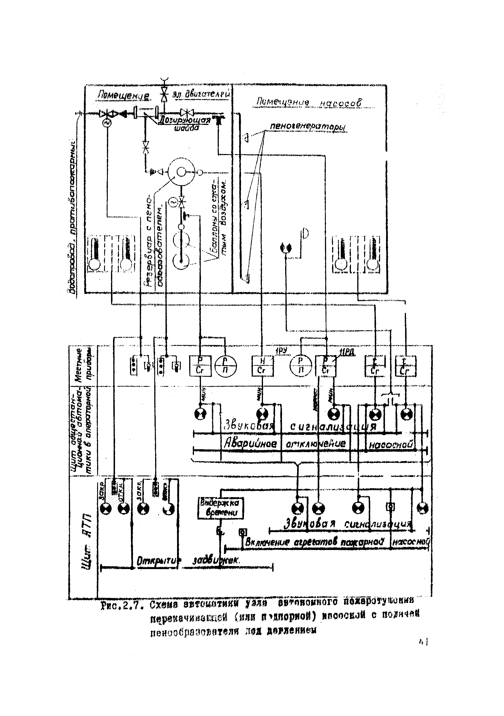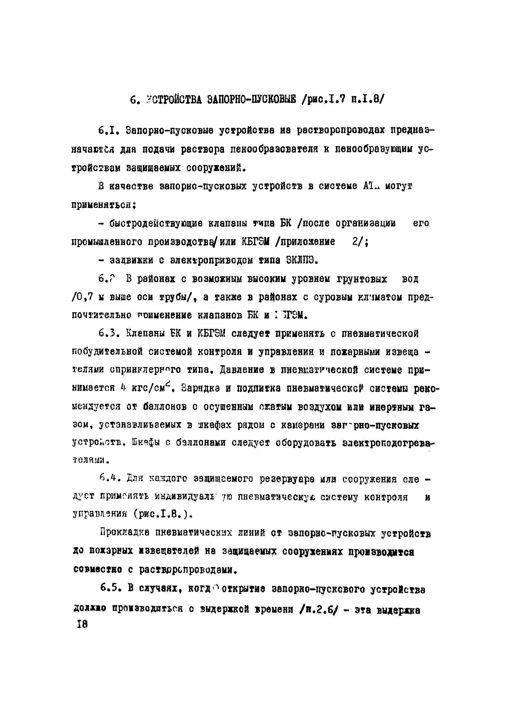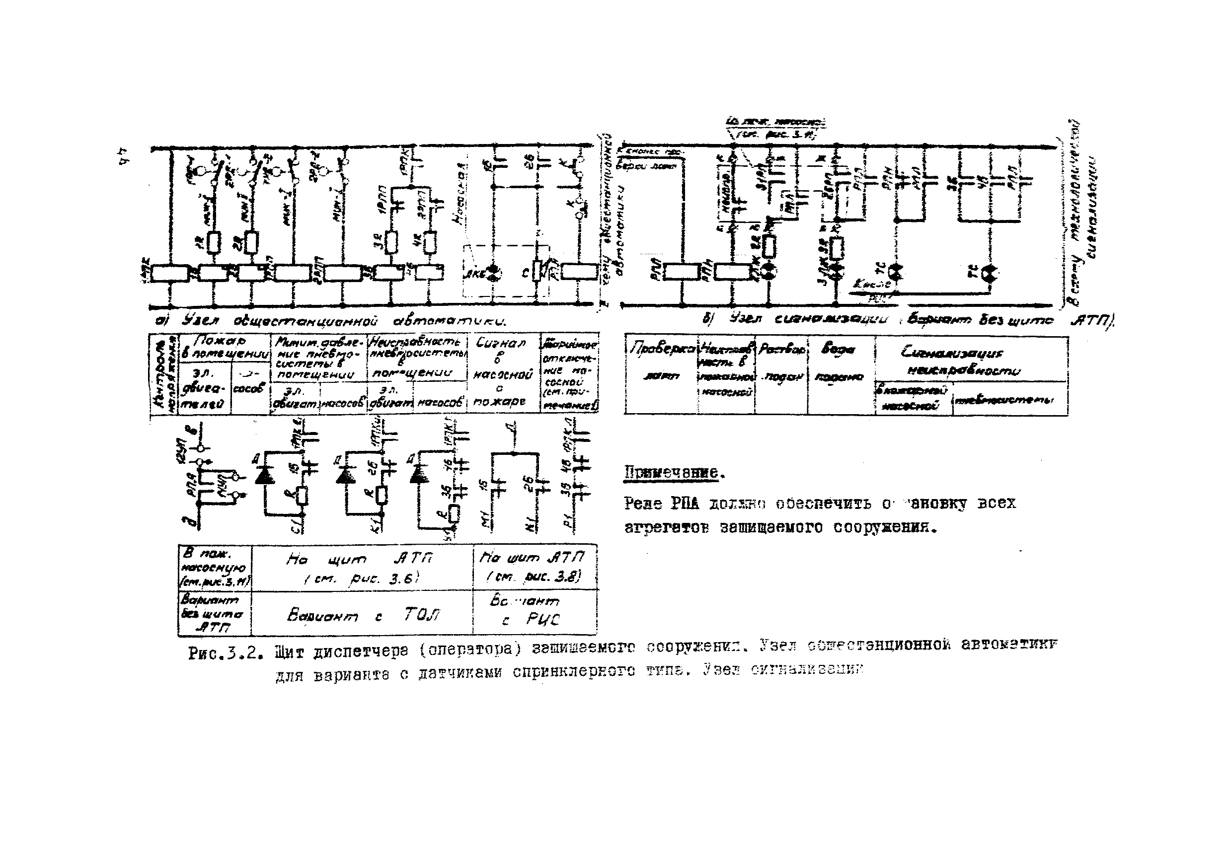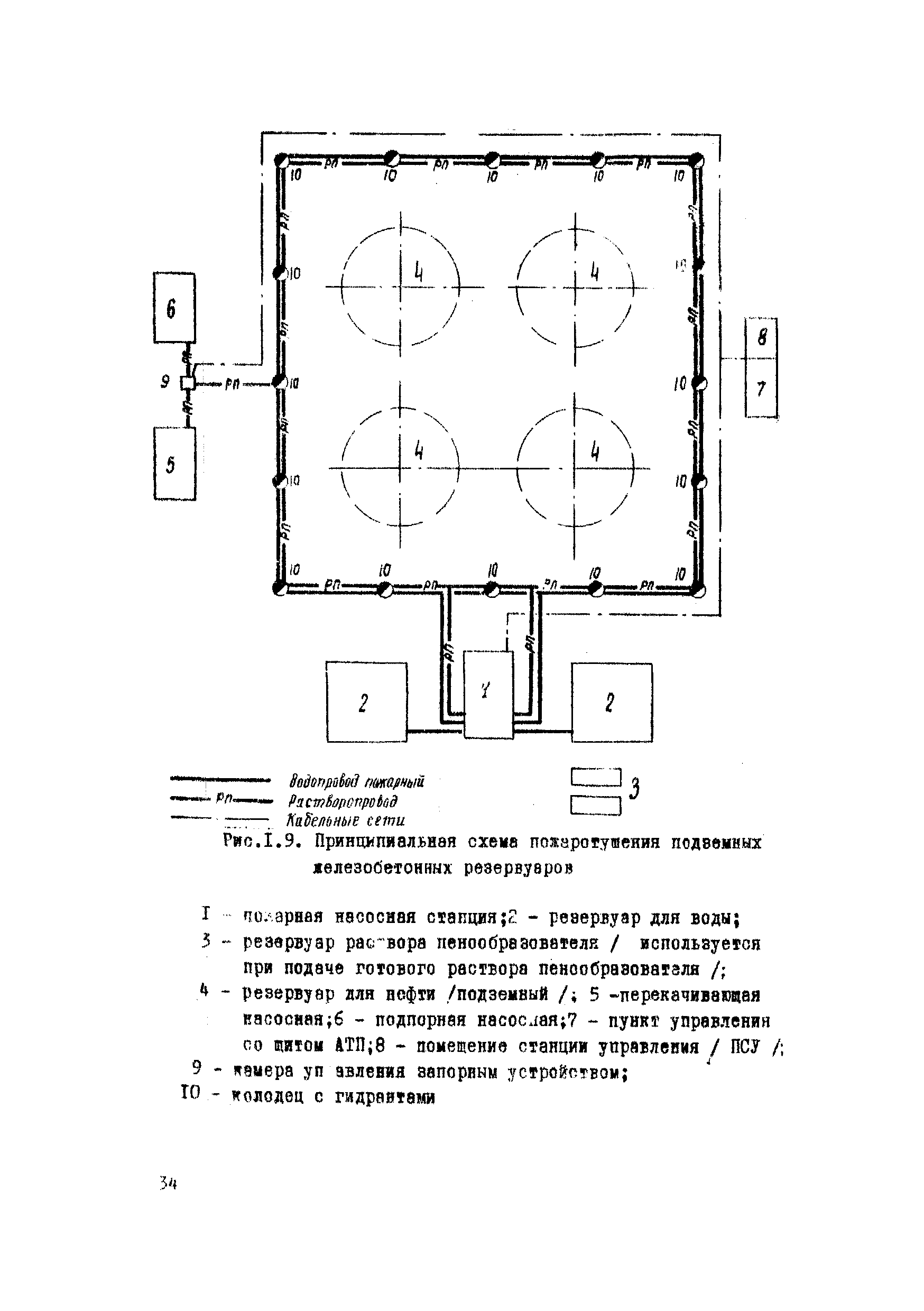| Оглавление: | Введение Раздел I. Основные положения и требования к системе АТП 1 Общие положения 2 Принципиальная схема системы АТП 3 Пожарная насосная 4 Резервуары для воды, раствора пенообразователя и пенообразователя 5 Наружные сети растворопровода и водопровода 6 Устройства запорно—пусковые 7 Пеногенераторы и пенокамеры 8 Щит управления системой АТП 9 Пожарные извещатели (датчики) 10 Сети электропитания и автоматики Раздел II. Типовые принципиальные схемы систем АТП I Технологические схемы 1 Принципиальная технологическая схема системы АТП 2 Принципиальная схема пожарной насосной с дозированием пенообразователя смесителями эжекторного типа 3 Принципиальная схема пожарной насосной с насосами-дозаторами пенообразователя 4 Принципиальная схема пожарной насосной с подачей готового раствора пенообразователя 5 Принципиальные схемы автономных систем АТП 6 Схема установки для поддержания давления в растворопроводе 7 Схема подачи раствора пенообразователя с установкой в камере задвижки с электроприводом 8 Схема подачи раствора пенообразователя с установкой в камере клапанов БК или КБГЭМ 9 Принципиальная схема пожаротушения подземных железобетонных резервуаров 2 Схемы автоматики 1 Схема автоматики пожаротушения резервуарного парка с электрической системой управления 2 Схема автоматики пожаротушения резервуарного парка с пневматической системой управления 3 Схема автоматики пожаротушения перекачивающей (или подпорной) насосной 4 Схема автоматики пожарной насосной с дозированием пенообразователя смесителями эжекторного типа 5 Схема автоматики пожарной насосной с насосами-дозаторами 6 Схема автоматики пожарной насосной с подачей готового раствора пенообразователя (или воды) 7 Схема автоматики узла автономного пожаротушения перекачивающей (или подпорной) насосной с подачей пенообразователя под давлением 8 Схема автоматики узла автономного пожаротушения перекачивающей (или подпорной) насосной с эжектированием пенообразователя 3 Электрические схемы автоматики 1 Щит диспетчера (оператора) защищаемого сооружения. Узел общестанционной автоматики для вариантов с датчиками типа ТРВ и приставкой ПИО-017 2 Щит диспетчера (оператора) защищаемого сооружения. Узел общестанционной автоматики для вариантов с датчиками спринклерного типа. Узел сигнализации 3 Щит АТП. Вариант с использованием станции пожарной сигнализации ТОЛ с датчиками ТРВ с приставкой ПИО-017 4 Щит АТП. Вариант с использованием станции пожарной сигнализации ТОЛ с датчиками ТРВ с приставкой ПИО-017. Узел лучевых реле 5 Щит АТП. Вариант с использованием станции пожарной сигнализации ТОЛ с датчиками спринклерного типа 6 Щит АТП. Вариант с использованием станции пожарной сигнализации ТОЛ с датчиками спринклерного типа. Узел лучевых реле 7 Щит АТП. Вариант с использованием реле импульсной сигнализации РИС с датчиками типа ТРВ и приставкой ПИО-017 8 Щит АТП. Вариант с использованием реле импульсной сигнализации РИС с датчиками спринклерного типа 9 Щит АТП. Вариант с использованием реле импульсной сигнализации РИС с датчиками спринклерного типа (продолжение) 10 Щит АТП. Узел управления электроприводными задвижками растворопроводов 11 Пожарная насосная. Связи со щитом АТП и сигнализация 12 Пожарная насосная. Связи со щитом АТП и сигнализация (продолжение) 13 Пожарн