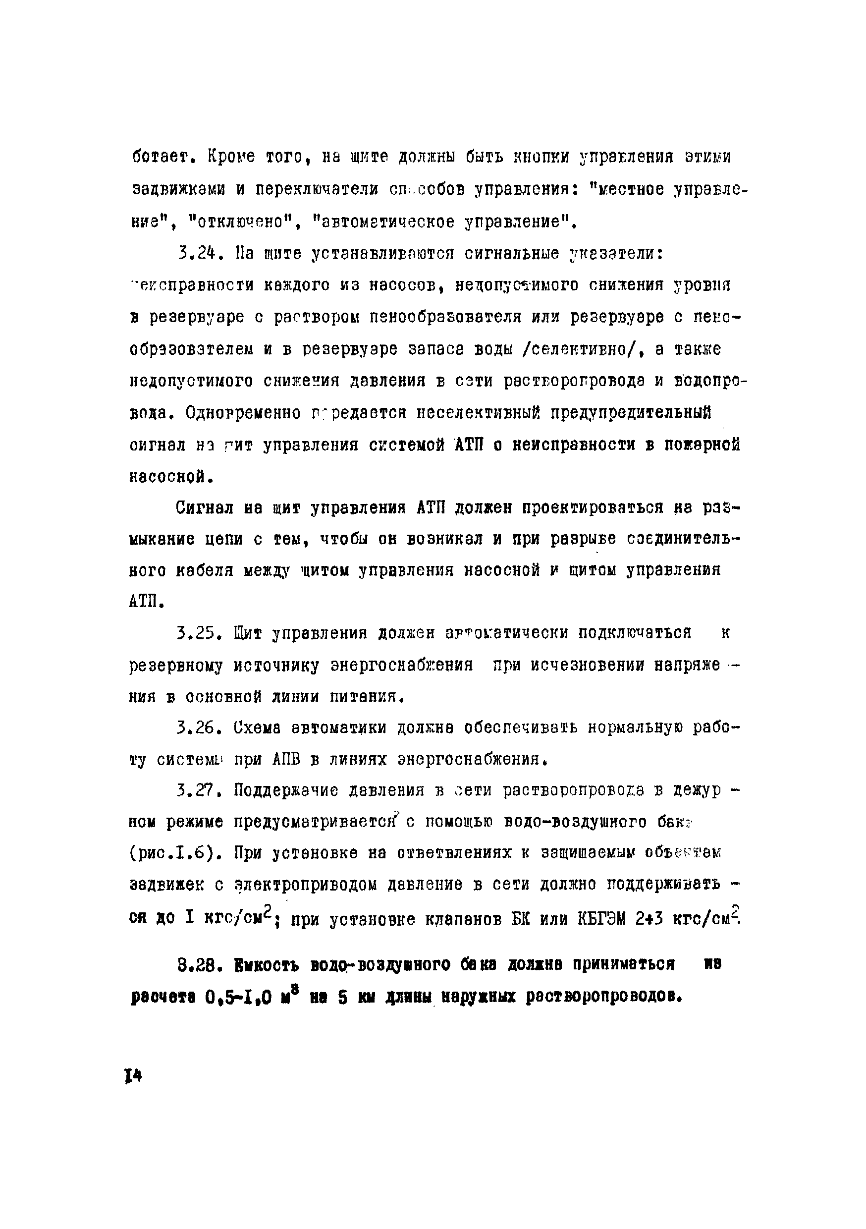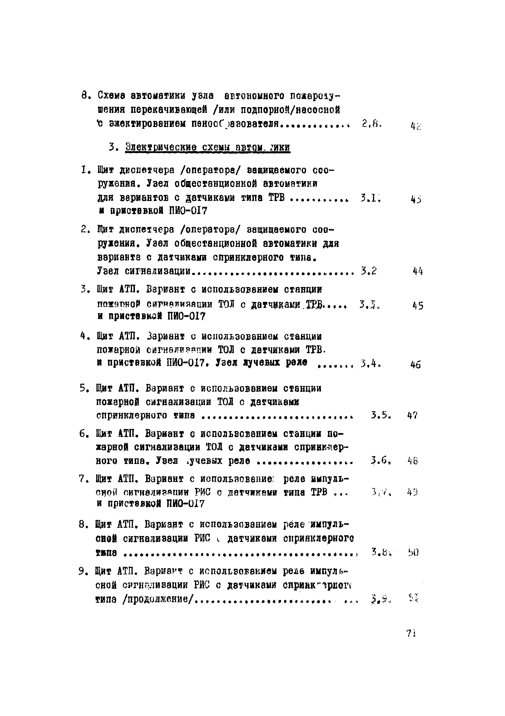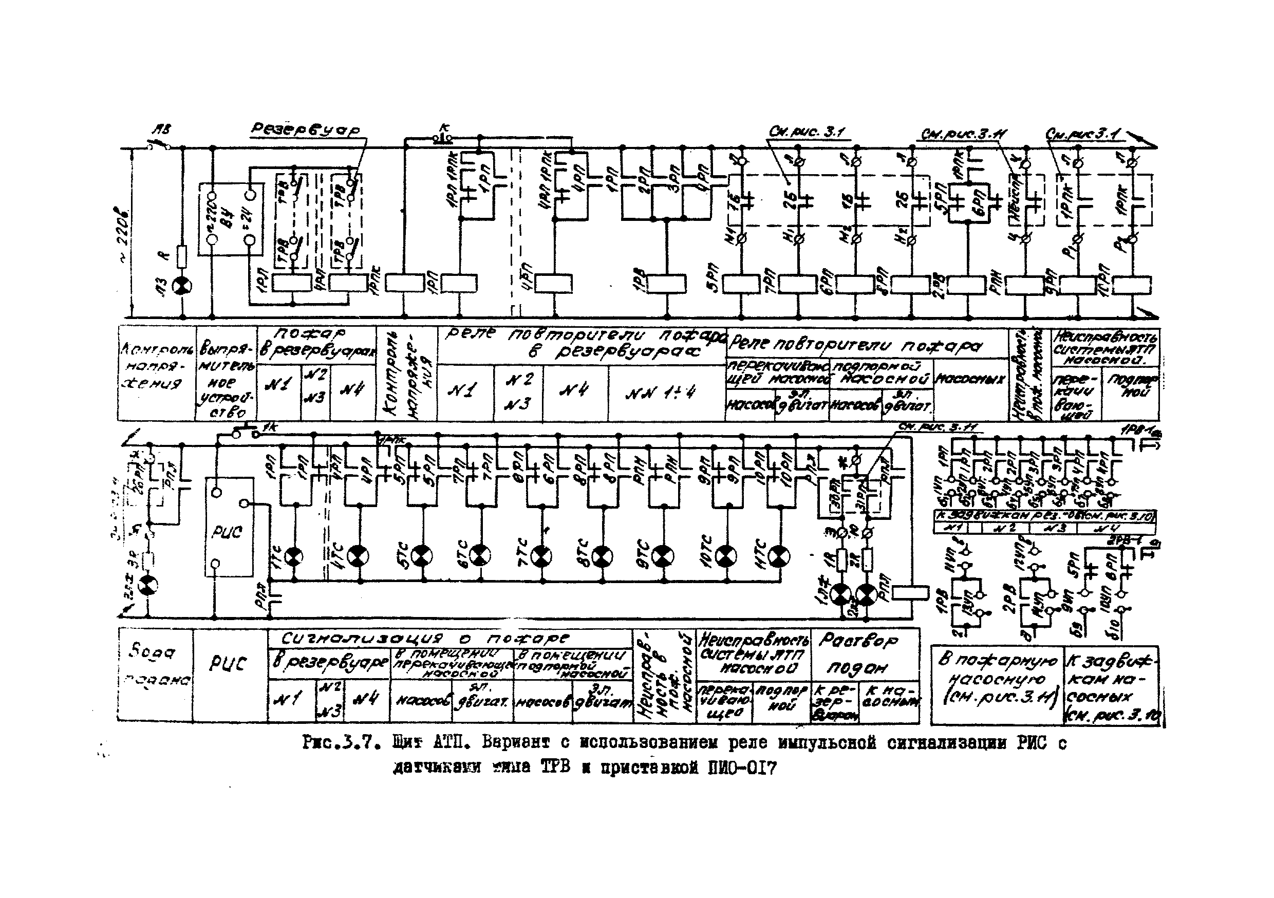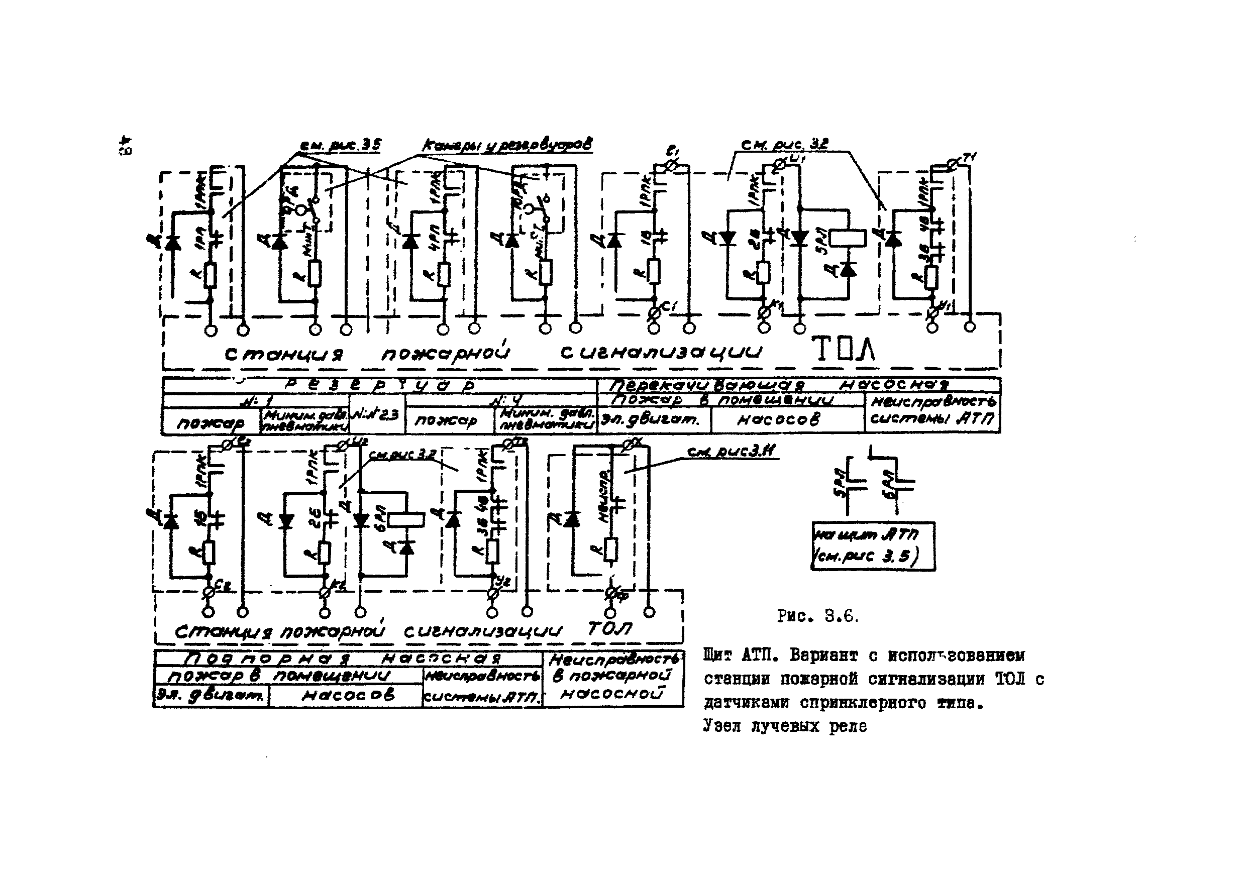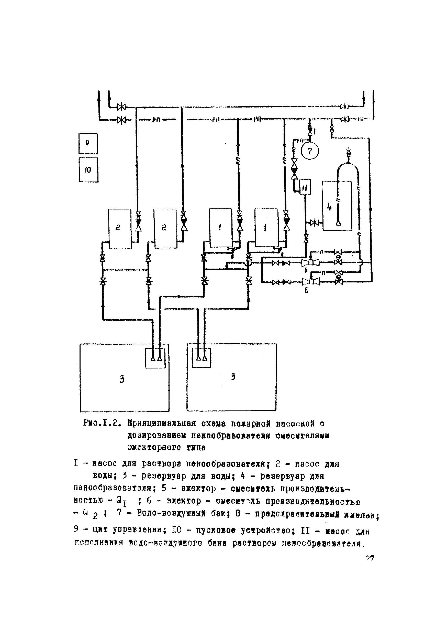 | Оглавление: | Введение Раздел I. Основные положения и требования к системе АТП 1 Общие положения 2 Принципиальная схема системы АТП 3 Пожарная насосная 4 Резервуары для воды, раствора пенообразователя и пенообразователя 5 Наружные сети растворопровода и водопровода 6 Устройства запорно—пусковые 7 Пеногенераторы и пенокамеры 8 Щит управления системой АТП 9 Пожарные извещатели (датчики) 10 Сети электропитания и автоматики Раздел II. Типовые принципиальные схемы систем АТП I Технологические схемы 1 Принципиальная технологическая схема системы АТП 2 Принципиальная схема пожарной насосной с дозированием пенообразователя смесителями эжекторного типа 3 Принципиальная схема пожарной насосной с насосами-дозаторами пенообразователя 4 Принципиальная схема пожарной насосной с подачей готового раствора пенообразователя 5 Принципиальные схемы автономных систем АТП 6 Схема установки для поддержания давления в растворопроводе 7 Схема подачи раствора пенообразователя с установкой в камере задвижки с электроприводом 8 Схема подачи раствора пенообразователя с установкой в камере клапанов БК или КБГЭМ 9 Принципиальная схема пожаротушения подземных железобетонных резервуаров 2 Схемы автоматики 1 Схема автоматики пожаротушения резервуарного парка с электрической системой управления 2 Схема автоматики пожаротушения резервуарного парка с пневматической системой управления 3 Схема автоматики пожаротушения перекачивающей (или подпорной) насосной 4 Схема автоматики пожарной насосной с дозированием пенообразователя смесителями эжекторного типа 5 Схема автоматики пожарной насосной с насосами-дозаторами 6 Схема автоматики пожарной насосной с подачей готового раствора пенообразователя (или воды) 7 Схема автоматики узла автономного пожаротушения перекачивающей (или подпорной) насосной с подачей пенообразователя под давлением 8 Схема автоматики узла автономного пожаротушения перекачивающей (или подпорной) насосной с эжектированием пенообразователя 3 Электрические схемы автоматики 1 Щит диспетчера (оператора) защищаемого сооружения. Узел общестанционной автоматики для вариантов с датчиками типа ТРВ и приставкой ПИО-017 2 Щит диспетчера (оператора) защищаемого сооружения. Узел общестанционной автоматики для вариантов с датчиками спринклерного типа. Узел сигнализации 3 Щит АТП. Вариант с использованием станции пожарной сигнализации ТОЛ с датчиками ТРВ с приставкой ПИО-017 4 Щит АТП. Вариант с использованием станции пожарной сигнализации ТОЛ с датчиками ТРВ с приставкой ПИО-017. Узел лучевых реле 5 Щит АТП. Вариант с использованием станции пожарной сигнализации ТОЛ с датчиками спринклерного типа 6 Щит АТП. Вариант с использованием станции пожарной сигнализации ТОЛ с датчиками спринклерного типа. Узел лучевых реле 7 Щит АТП. Вариант с использованием реле импульсной сигнализации РИС с датчиками типа ТРВ и приставкой ПИО-017 8 Щит АТП. Вариант с использованием реле импульсной сигнализации РИС с датчиками спринклерного типа 9 Щит АТП. Вариант с использованием реле импульсной сигнализации РИС с датчиками спринклерного типа (продолжение) 10 Щит АТП. Узел управления электроприводными задвижками растворопроводов 11 Пожарная насосная. Связи со щитом АТП и сигнализация 12 Пожарная насосная. Связи со щитом АТП и сигнализация (продолжение) 13 Пожарн