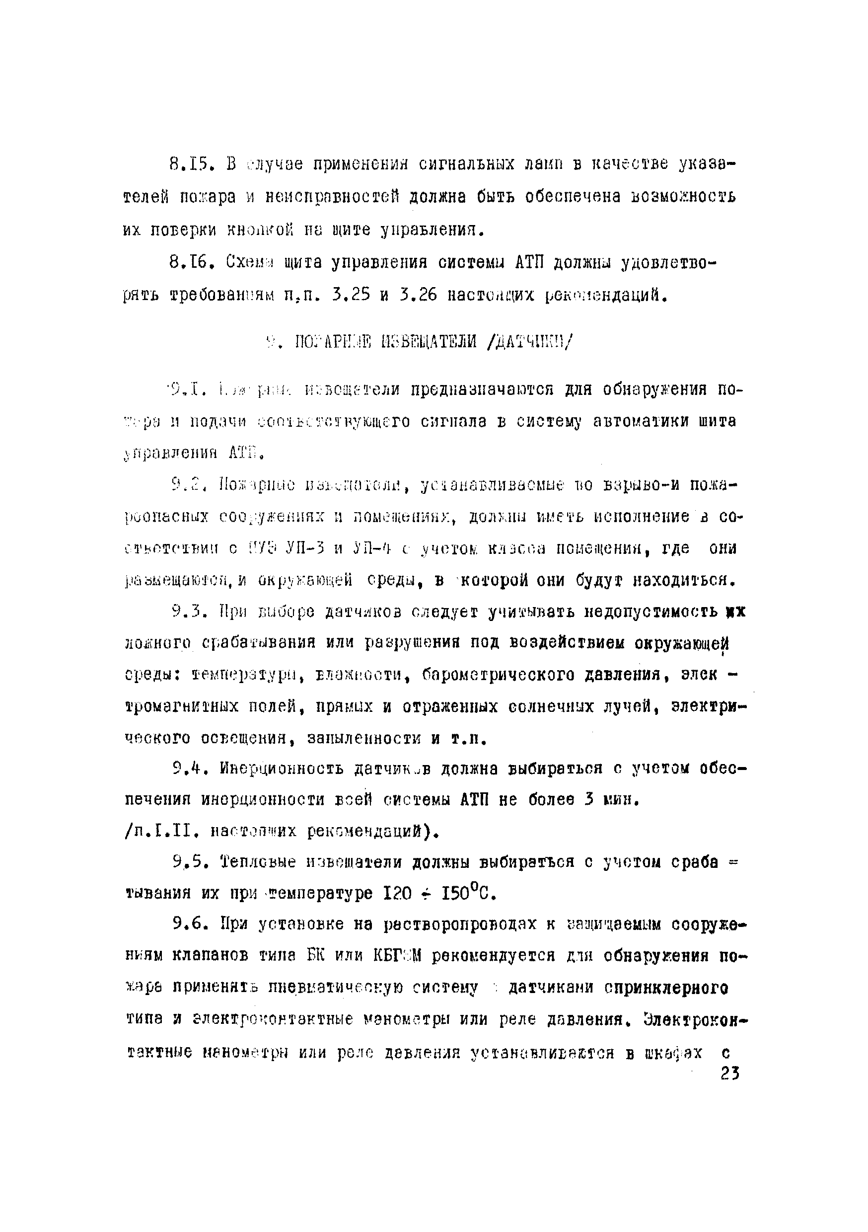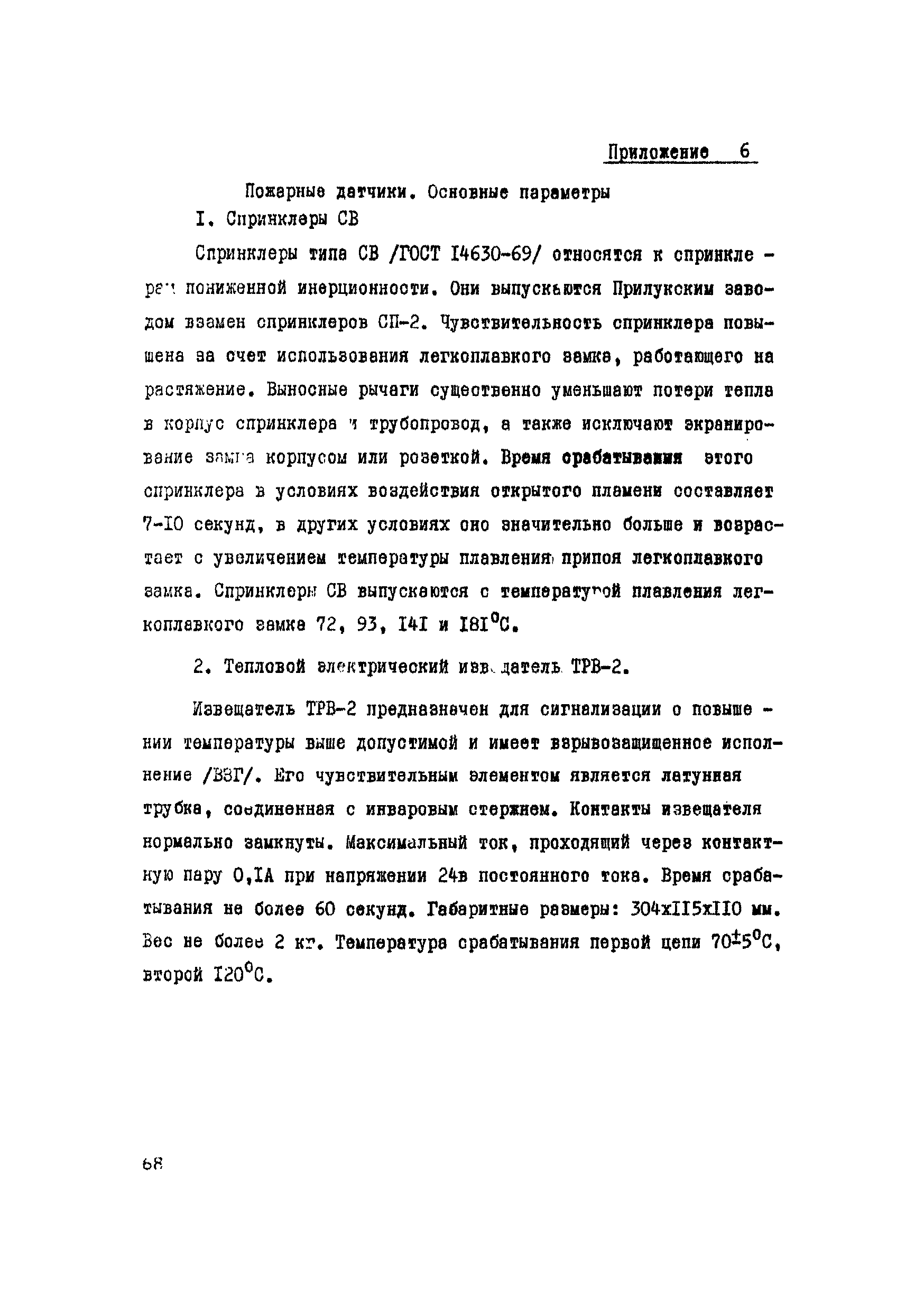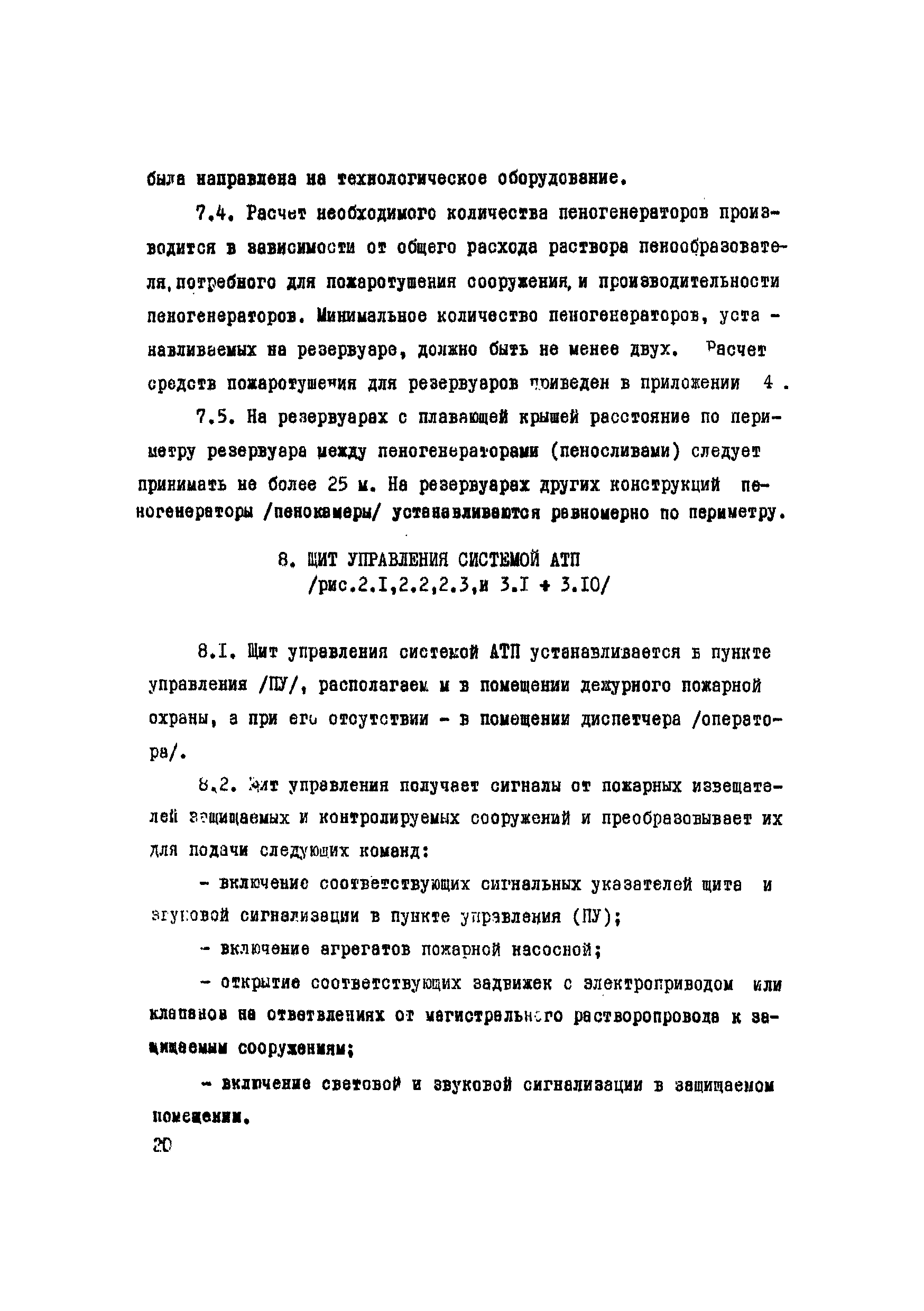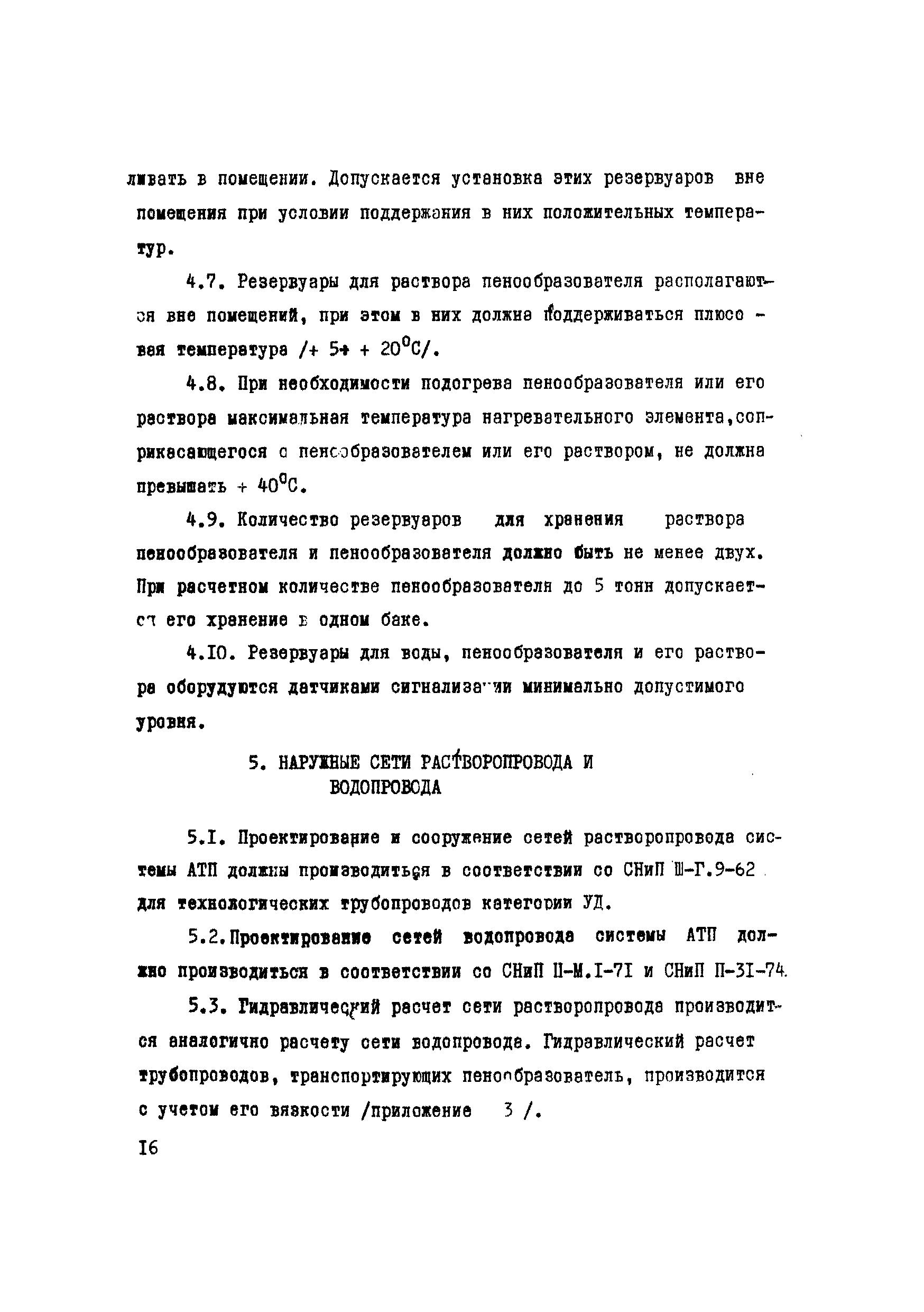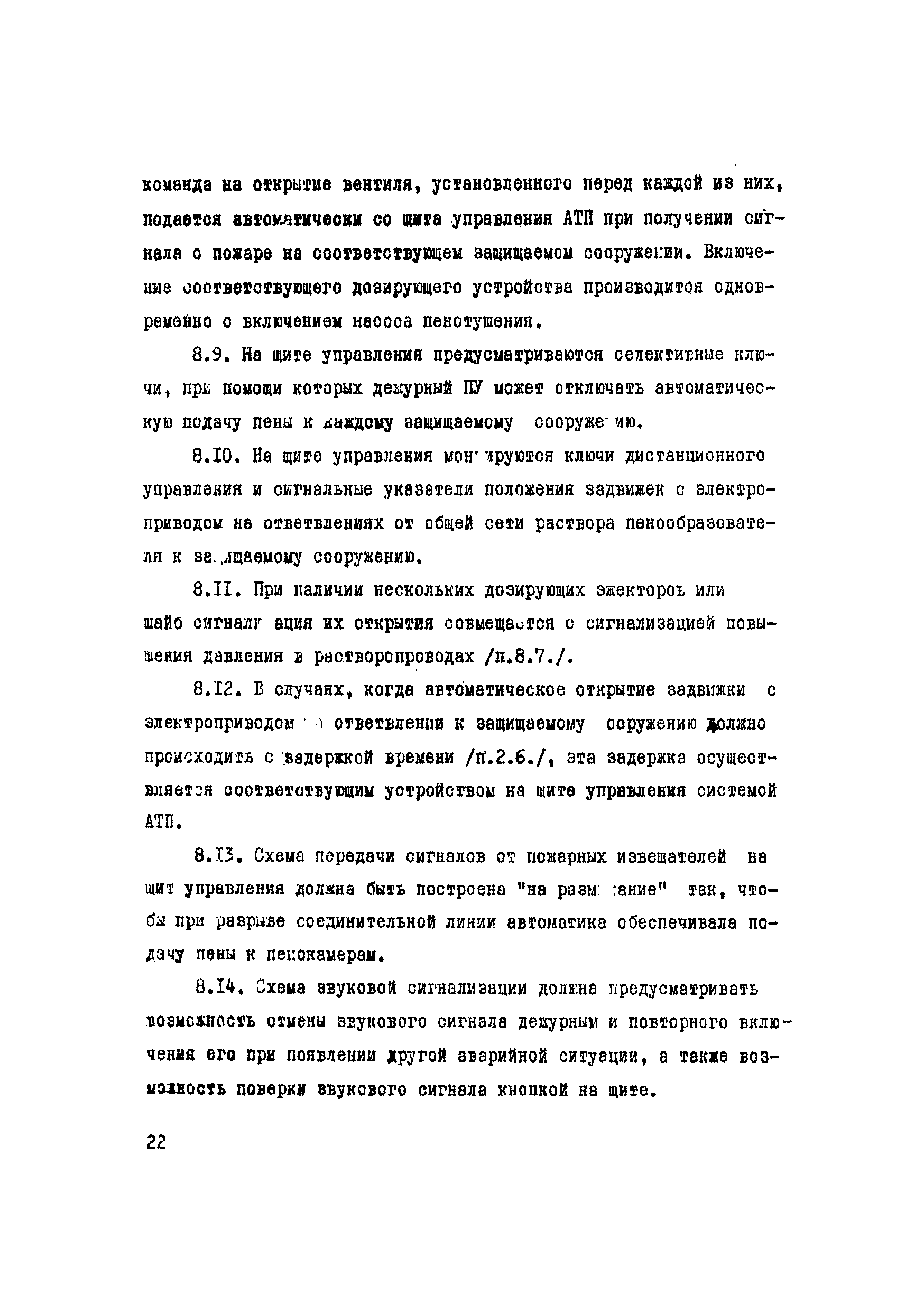 | Оглавление: | Введение Раздел I. Основные положения и требования к системе АТП 1 Общие положения 2 Принципиальная схема системы АТП 3 Пожарная насосная 4 Резервуары для воды, раствора пенообразователя и пенообразователя 5 Наружные сети растворопровода и водопровода 6 Устройства запорно—пусковые 7 Пеногенераторы и пенокамеры 8 Щит управления системой АТП 9 Пожарные извещатели (датчики) 10 Сети электропитания и автоматики Раздел II. Типовые принципиальные схемы систем АТП I Технологические схемы 1 Принципиальная технологическая схема системы АТП 2 Принципиальная схема пожарной насосной с дозированием пенообразователя смесителями эжекторного типа 3 Принципиальная схема пожарной насосной с насосами-дозаторами пенообразователя 4 Принципиальная схема пожарной насосной с подачей готового раствора пенообразователя 5 Принципиальные схемы автономных систем АТП 6 Схема установки для поддержания давления в растворопроводе 7 Схема подачи раствора пенообразователя с установкой в камере задвижки с электроприводом 8 Схема подачи раствора пенообразователя с установкой в камере клапанов БК или КБГЭМ 9 Принципиальная схема пожаротушения подземных железобетонных резервуаров 2 Схемы автоматики 1 Схема автоматики пожаротушения резервуарного парка с электрической системой управления 2 Схема автоматики пожаротушения резервуарного парка с пневматической системой управления 3 Схема автоматики пожаротушения перекачивающей (или подпорной) насосной 4 Схема автоматики пожарной насосной с дозированием пенообразователя смесителями эжекторного типа 5 Схема автоматики пожарной насосной с насосами-дозаторами 6 Схема автоматики пожарной насосной с подачей готового раствора пенообразователя (или воды) 7 Схема автоматики узла автономного пожаротушения перекачивающей (или подпорной) насосной с подачей пенообразователя под давлением 8 Схема автоматики узла автономного пожаротушения перекачивающей (или подпорной) насосной с эжектированием пенообразователя 3 Электрические схемы автоматики 1 Щит диспетчера (оператора) защищаемого сооружения. Узел общестанционной автоматики для вариантов с датчиками типа ТРВ и приставкой ПИО-017 2 Щит диспетчера (оператора) защищаемого сооружения. Узел общестанционной автоматики для вариантов с датчиками спринклерного типа. Узел сигнализации 3 Щит АТП. Вариант с использованием станции пожарной сигнализации ТОЛ с датчиками ТРВ с приставкой ПИО-017 4 Щит АТП. Вариант с использованием станции пожарной сигнализации ТОЛ с датчиками ТРВ с приставкой ПИО-017. Узел лучевых реле 5 Щит АТП. Вариант с использованием станции пожарной сигнализации ТОЛ с датчиками спринклерного типа 6 Щит АТП. Вариант с использованием станции пожарной сигнализации ТОЛ с датчиками спринклерного типа. Узел лучевых реле 7 Щит АТП. Вариант с использованием реле импульсной сигнализации РИС с датчиками типа ТРВ и приставкой ПИО-017 8 Щит АТП. Вариант с использованием реле импульсной сигнализации РИС с датчиками спринклерного типа 9 Щит АТП. Вариант с использованием реле импульсной сигнализации РИС с датчиками спринклерного типа (продолжение) 10 Щит АТП. Узел управления электроприводными задвижками растворопроводов 11 Пожарная насосная. Связи со щитом АТП и сигнализация 12 Пожарная насосная. Связи со щитом АТП и сигнализация (продолжение) 13 Пожарн
