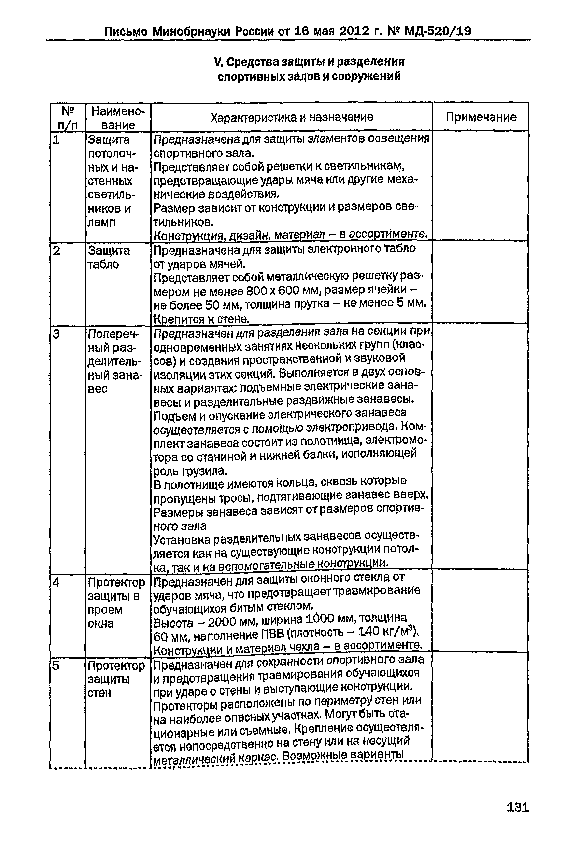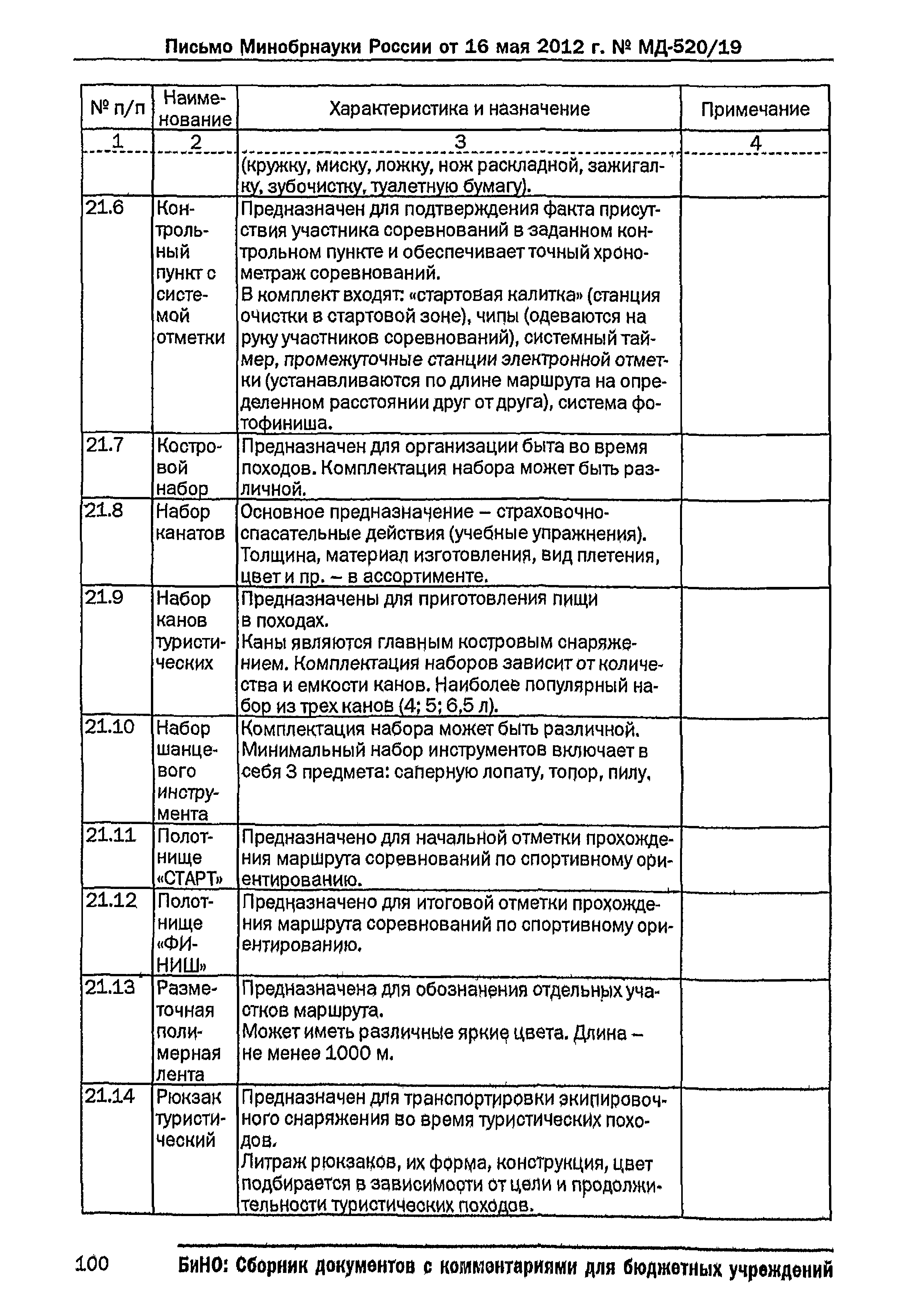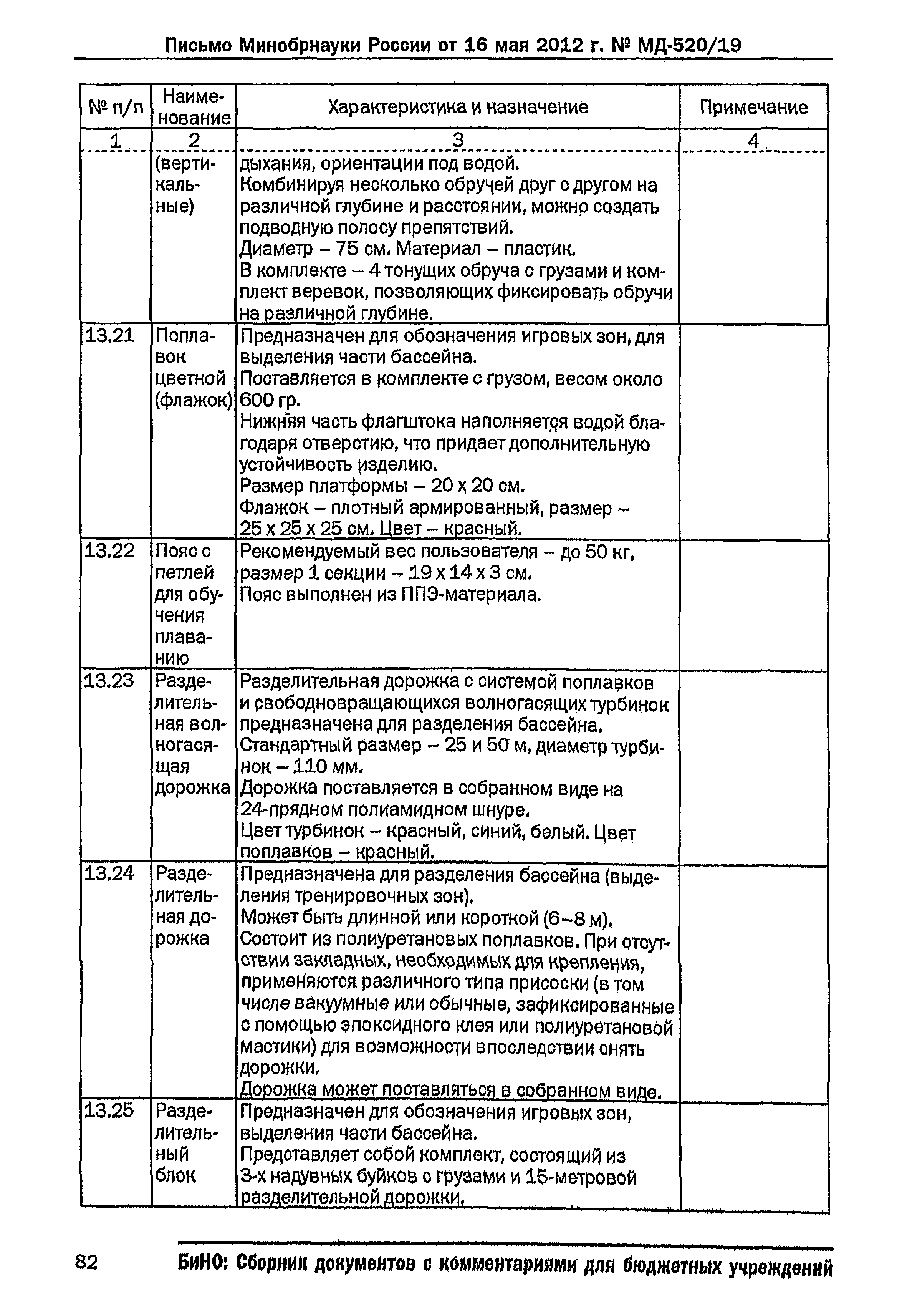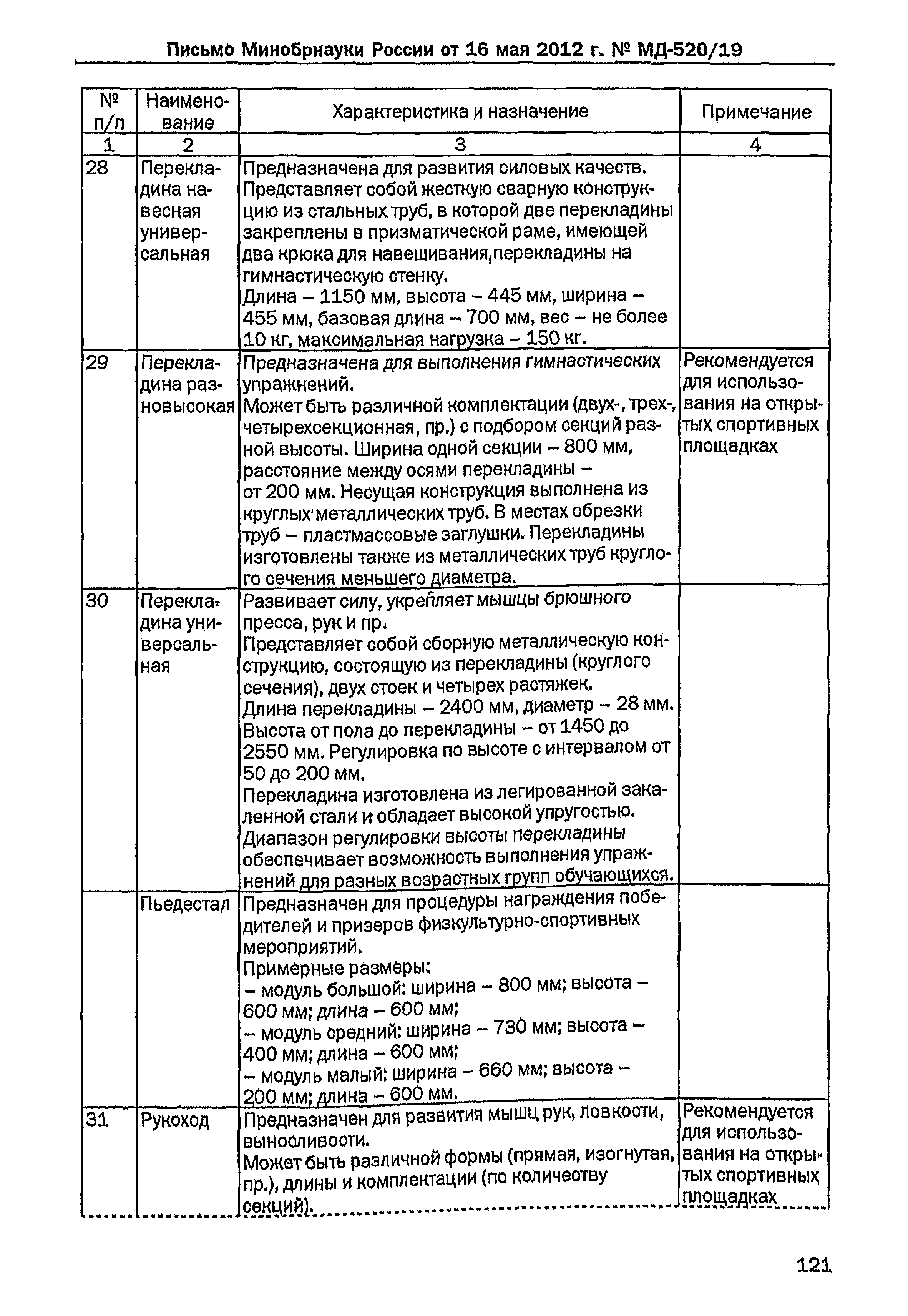 | Область применения: | Перечень подготовлен с целью оказания помощи органам исполнительной власти субъектов Российской Федерации и муниципальным органам, осуществляющим управление в сфере образования, а также общеобразовательным учреждениям в приобретении современного спортивного оборудования и инвентаря для организации учебной деятельности по предмету "Физическая культура", внеучебной деятельности физкультурно-спортивной направленности, реализации программ дополнительного образования детей физкультурно-спортивной направленности, организации деятельности школьных спортивных клубов и т.д. В Перечне представлены обобщенные характеристики современного спортивного оборудования и инвентаря, которые могут быть более детально представлены у конкретных производителей. В Перечень не включены оборудование и инвентарь, предназначенные для личного пользования обучающихся. Перечень может быть дополнен органами исполнительной власти субъектов Российской Федерации, осуществляющими управление в сфере образования, в части, касающейся национальных видов спорта и видов спорта, не включенных в перечень, но являющихся приоритетными в субъекте Российской Федерации. |