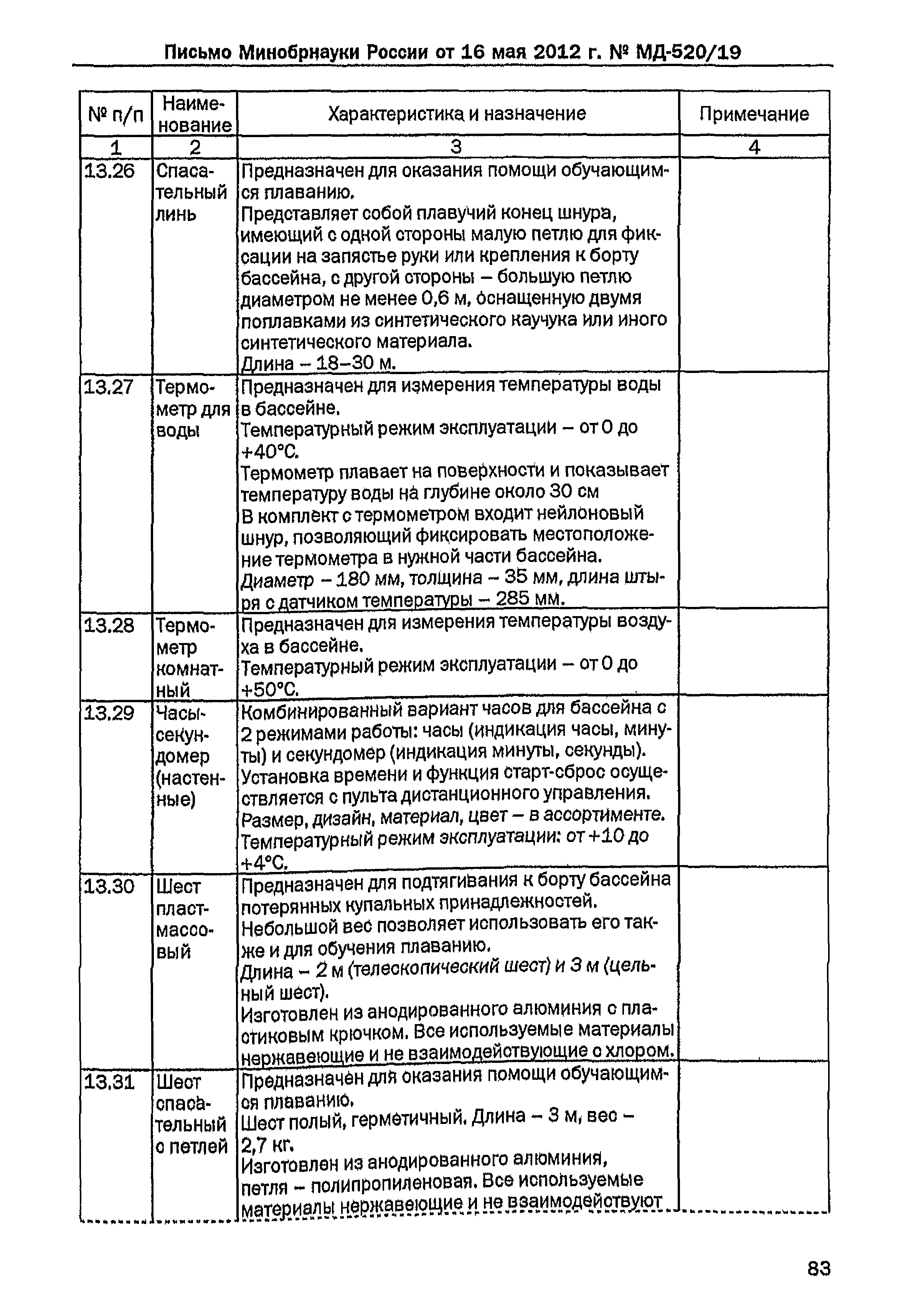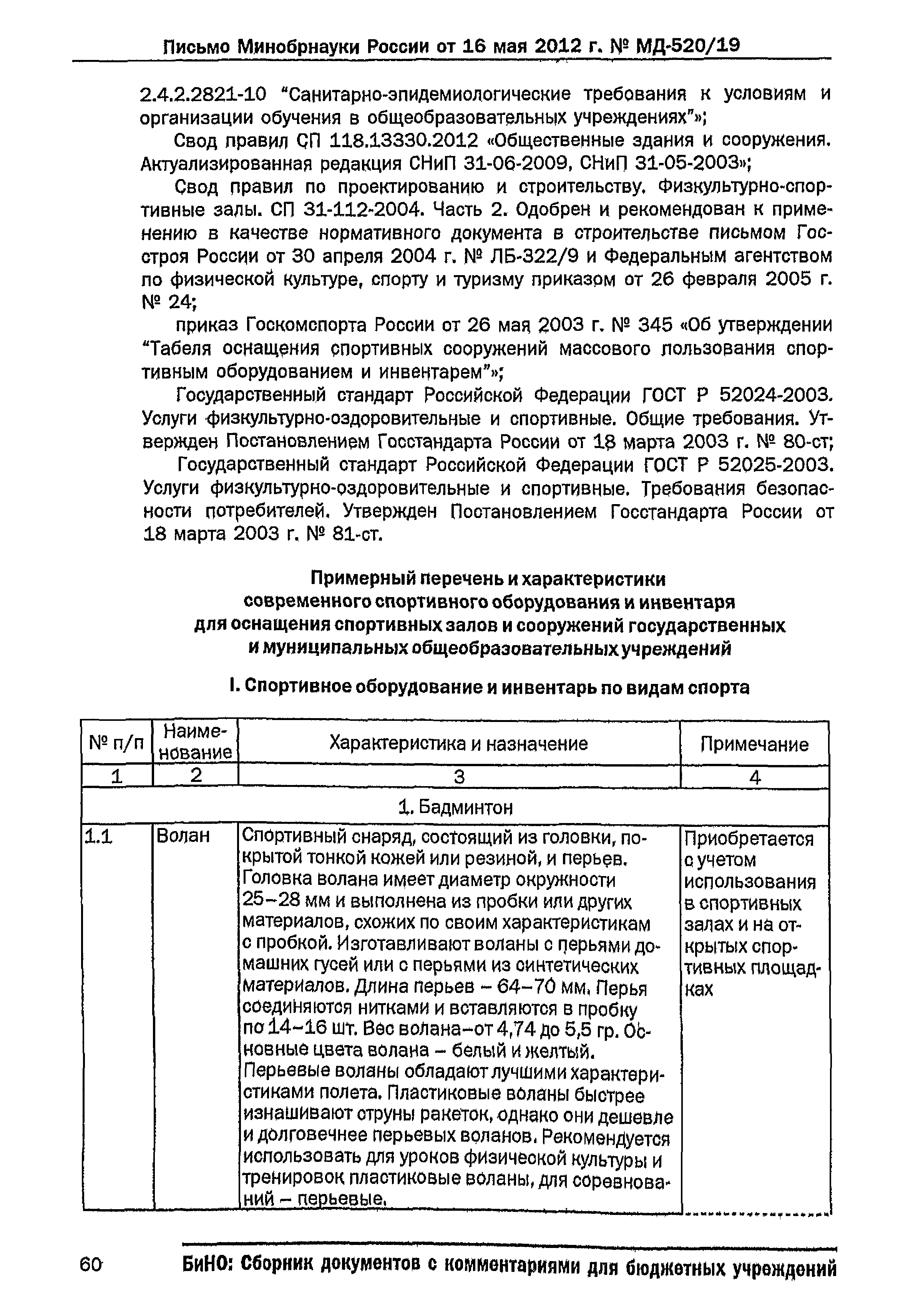 | Название рус.: | Примерный перечень и характеристики современного спортивного оборудования и инвентаря для оснащения спортивных залов и сооружений государственных и муниципальных общеобразовательных учреждений |