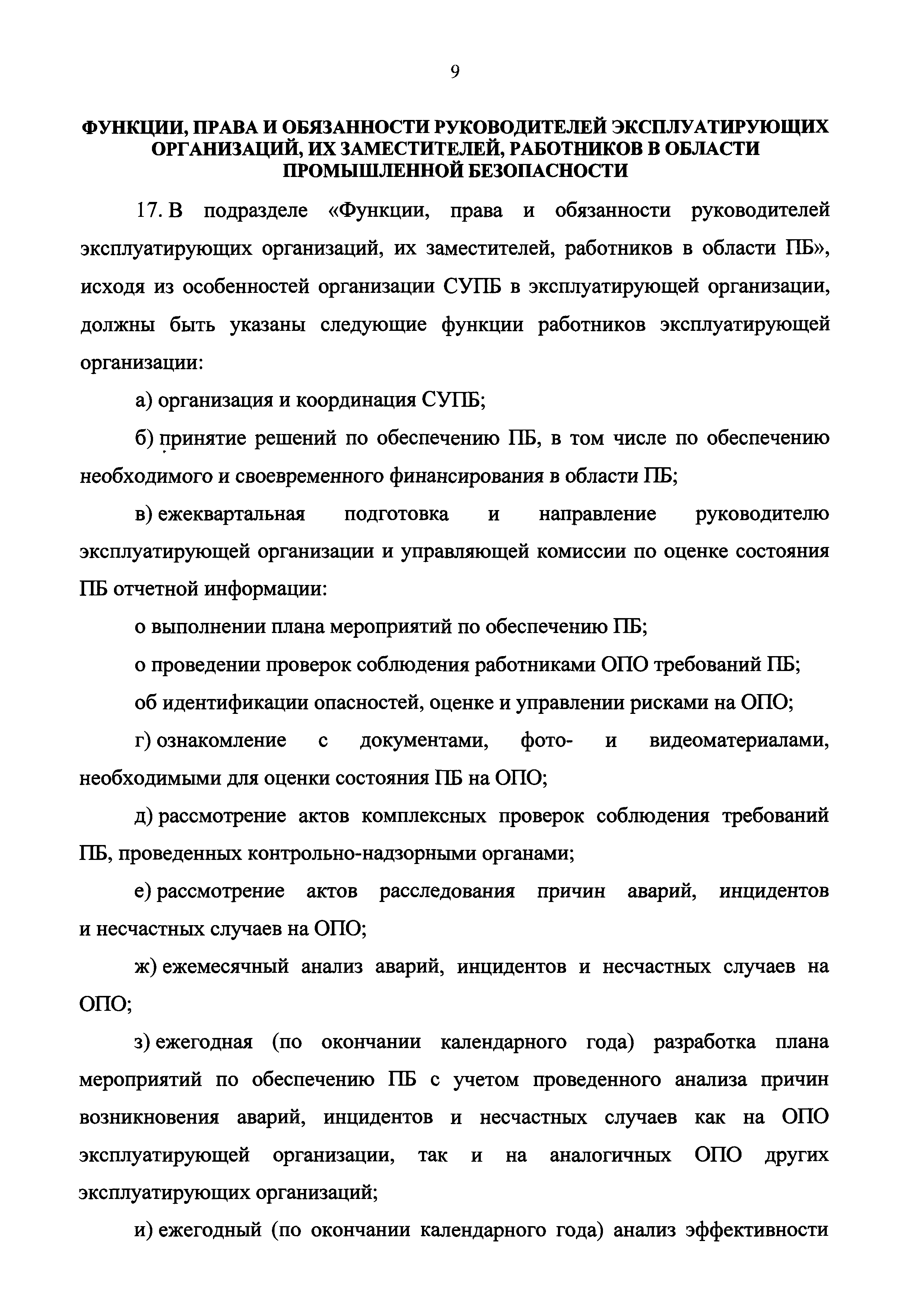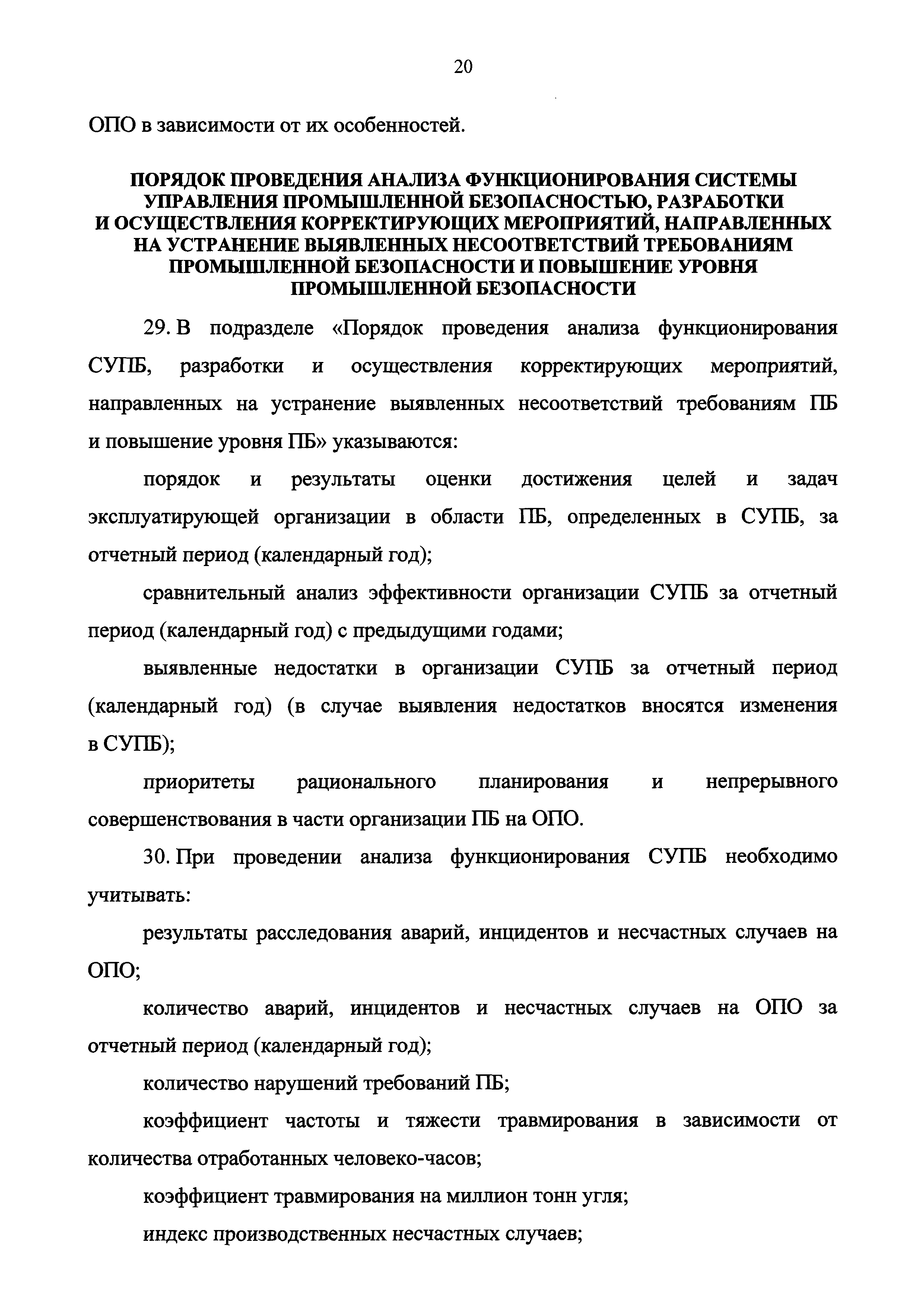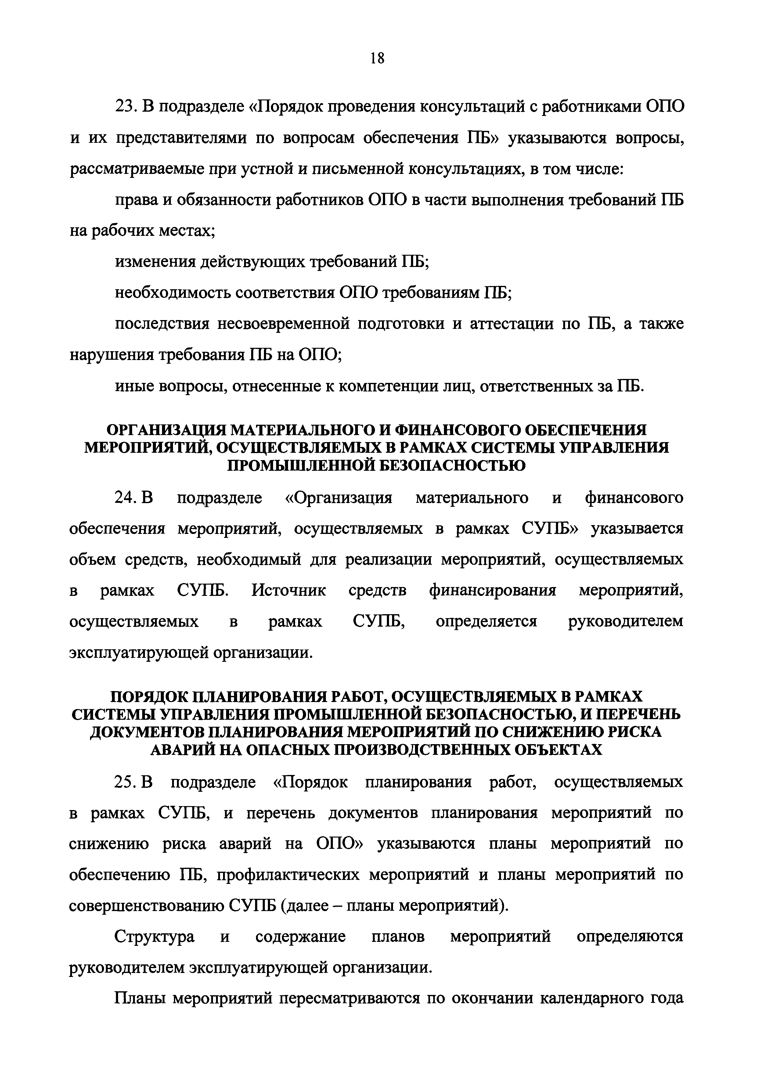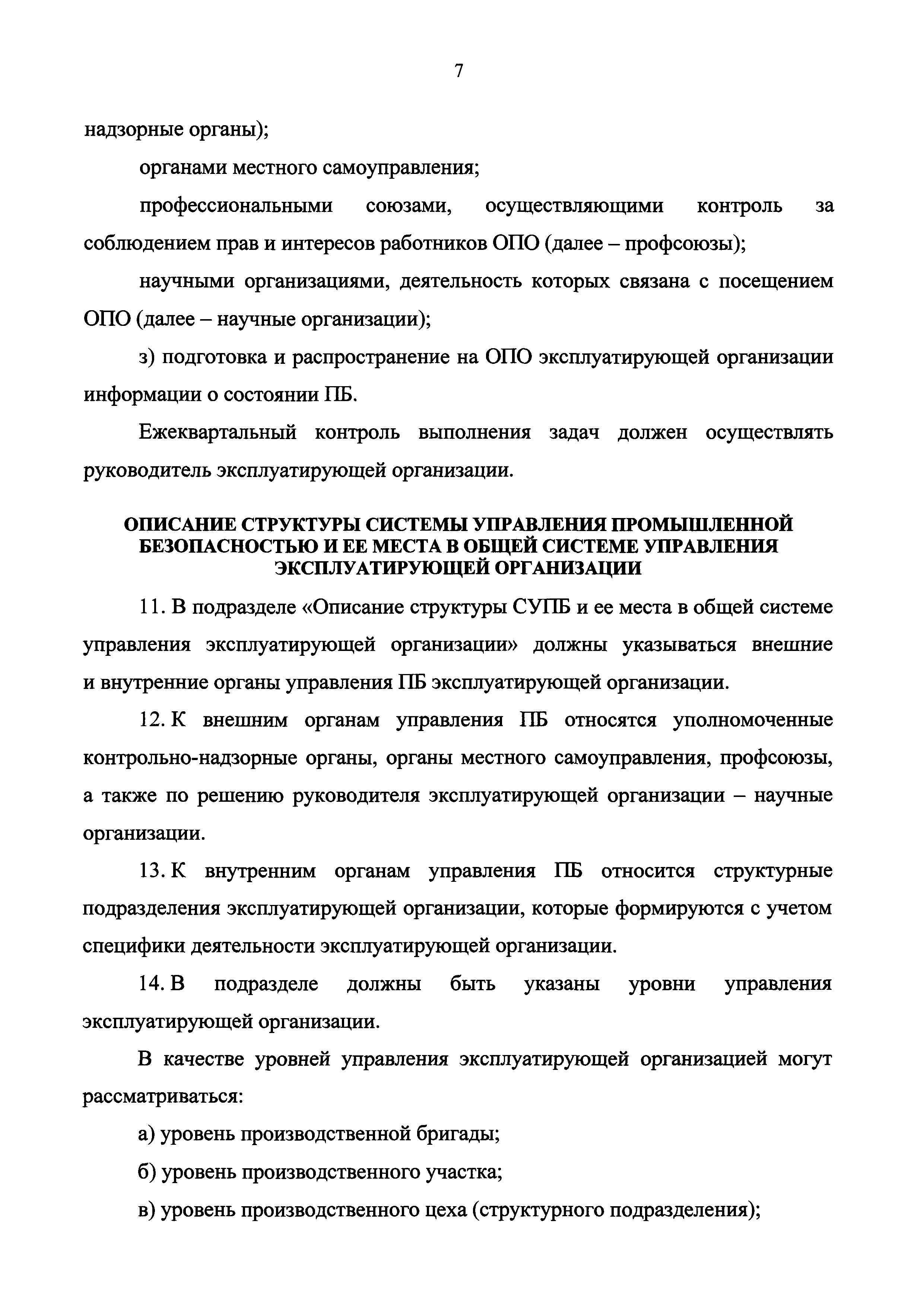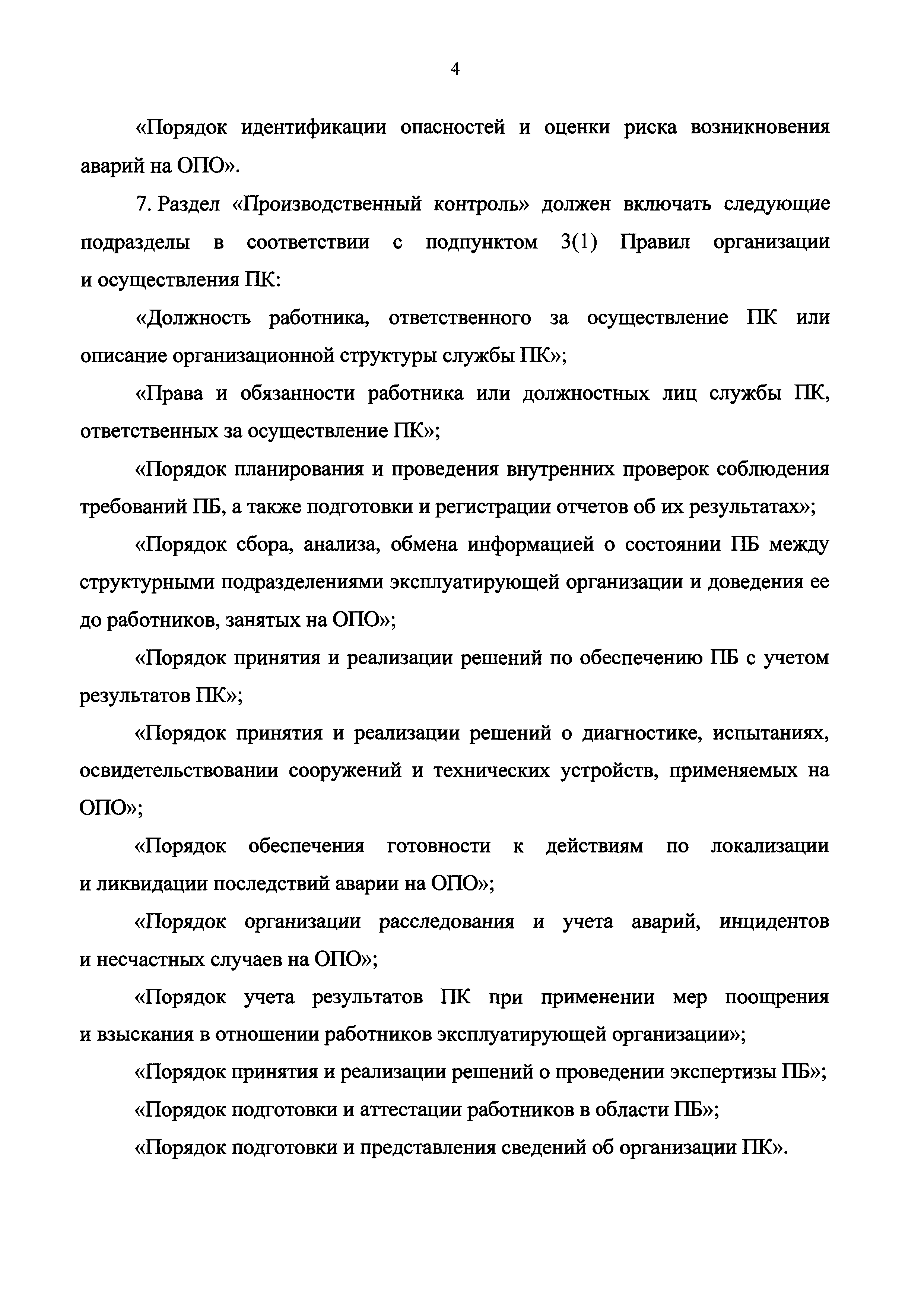 | Оглавление: | I. Основные положения II. Структура и основные положения системы управления промышленной безопасностью и охрана труда III. Система управления промышленной безопасностью эксплуатирующей организации Задачи эксплуатирующей организации в области промышленной безопасности Описание структуры системы управления промышленной безопасностью и ее места в общей системе управления эксплуатирующей организации Перечень опасных производственных объектов эксплуатирующей организации, на которые распространяется действие системы управления промышленной безопасностью Функции, права и обязанности руководителей эксплуатирующих организаций, их заместителей, работников в области промышленной безопасности Порядок проведения консультаций с работниками опасных производственных объектов и их представителями по вопросам обеспечения промышленной безопасности Организация материального и финансового обеспечения мероприятий, осуществляемых в рамках системы управления промышленной безопасностью Порядок планирования работ, осуществляемых в рамках системы управления промышленной безопасностью, и перечень документов планирования мероприятий по снижению риска аварий на опасных производственных объектах Порядок проведения анализа функционирования системы управления промышленной безопасностью, разработки и осуществления корректирующих мероприятий, направленных на устранение выявленных несоответствий требованиям промышленной безопасности и повышения уровня промышленной безопасности Организация информационного обеспечения в рамках системы управления промышленной безопасностью Порядок проведения предаттестационной подготовки и аттестации в области промышленной безопасности руководителей и работников эксплуатирующей организации Порядок проведения обучения и проверки знаний в области промышленной безопасности работников опасных производственных объектов Организация документационного обеспечения мероприятий осуществляемых в рамках системы управления промышленной безопасностью Порядок работы с подрядными организациями, осуществляющими деятельность на опасных производственных объектах Обеспечение безопасности опытного применения технических устройств в случаях, предусмотренных федеральным законом № 116-ФЗ Порядок идентификации опасностей и оценки рисков возникновения аварий на опасных производственных объектах IV. Производственный контроль V. Система управления охраной труда Приложение № 1 Перечень опасных производственных объектов, на которые распространяются действия системы управления промышленной безопасностью Приложение № 2 Совмещение обязанностей в области промышленной безопасности и охраны труда |