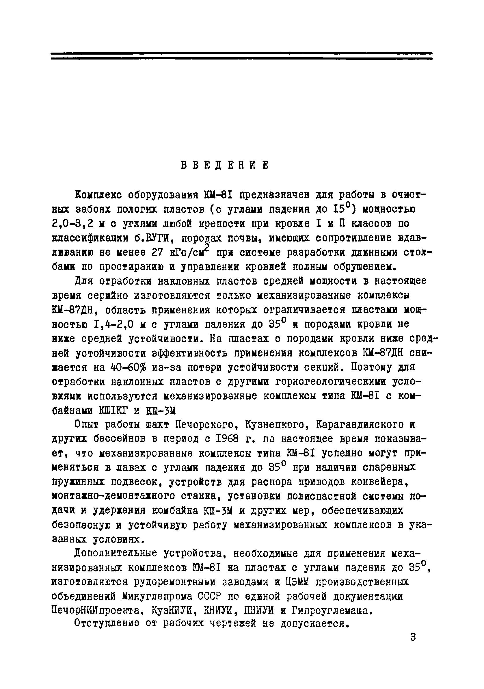 - «Временная инструкция по эксплуатации комплексов КМ-81 и 3ОКП с комбайнами КШ-3М на пластах наклонного падения»