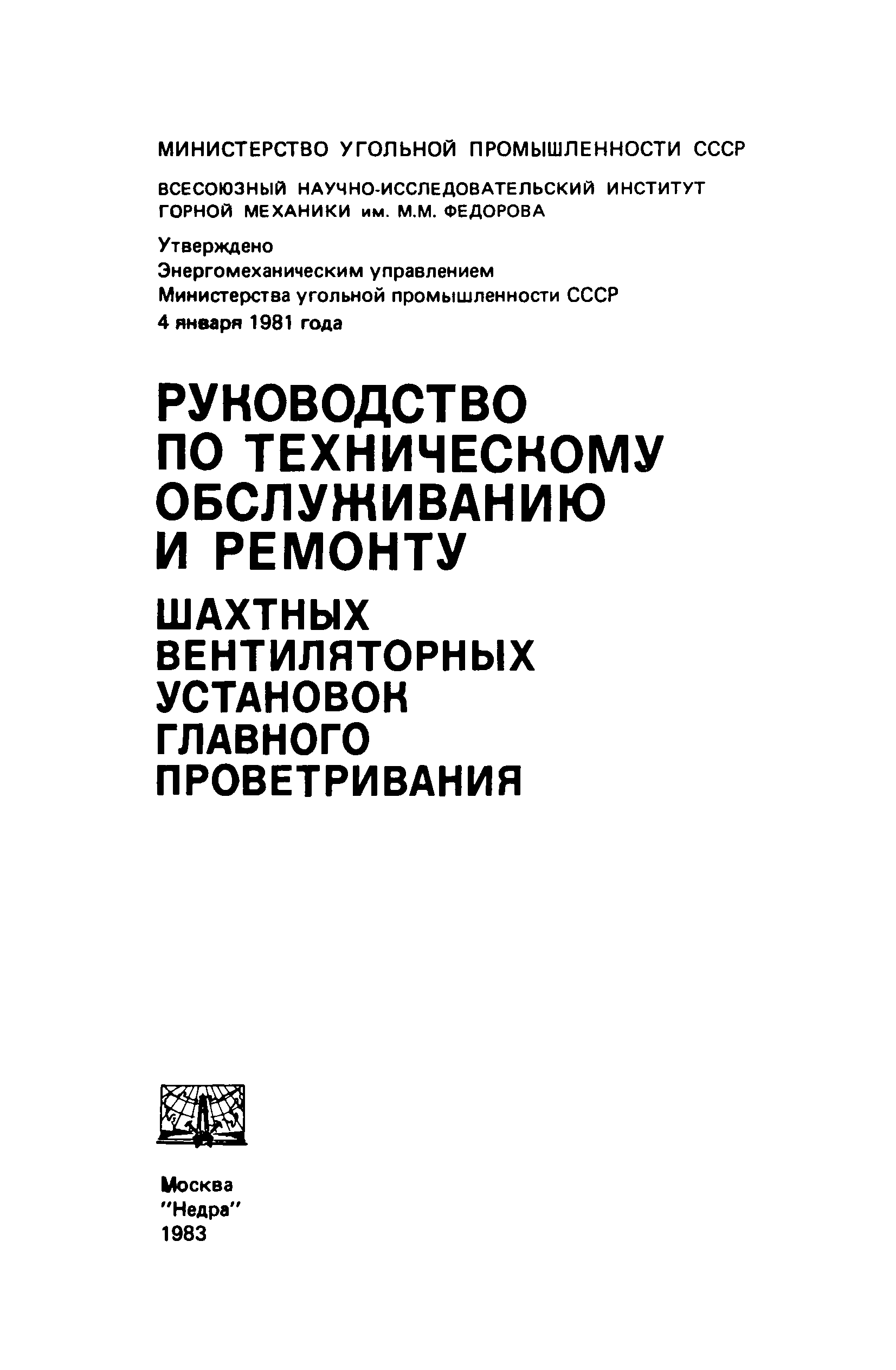 | Название рус.: | Руководство по техническому обслуживанию и ремонту шахтных вентиляторных установок главного проветривания |