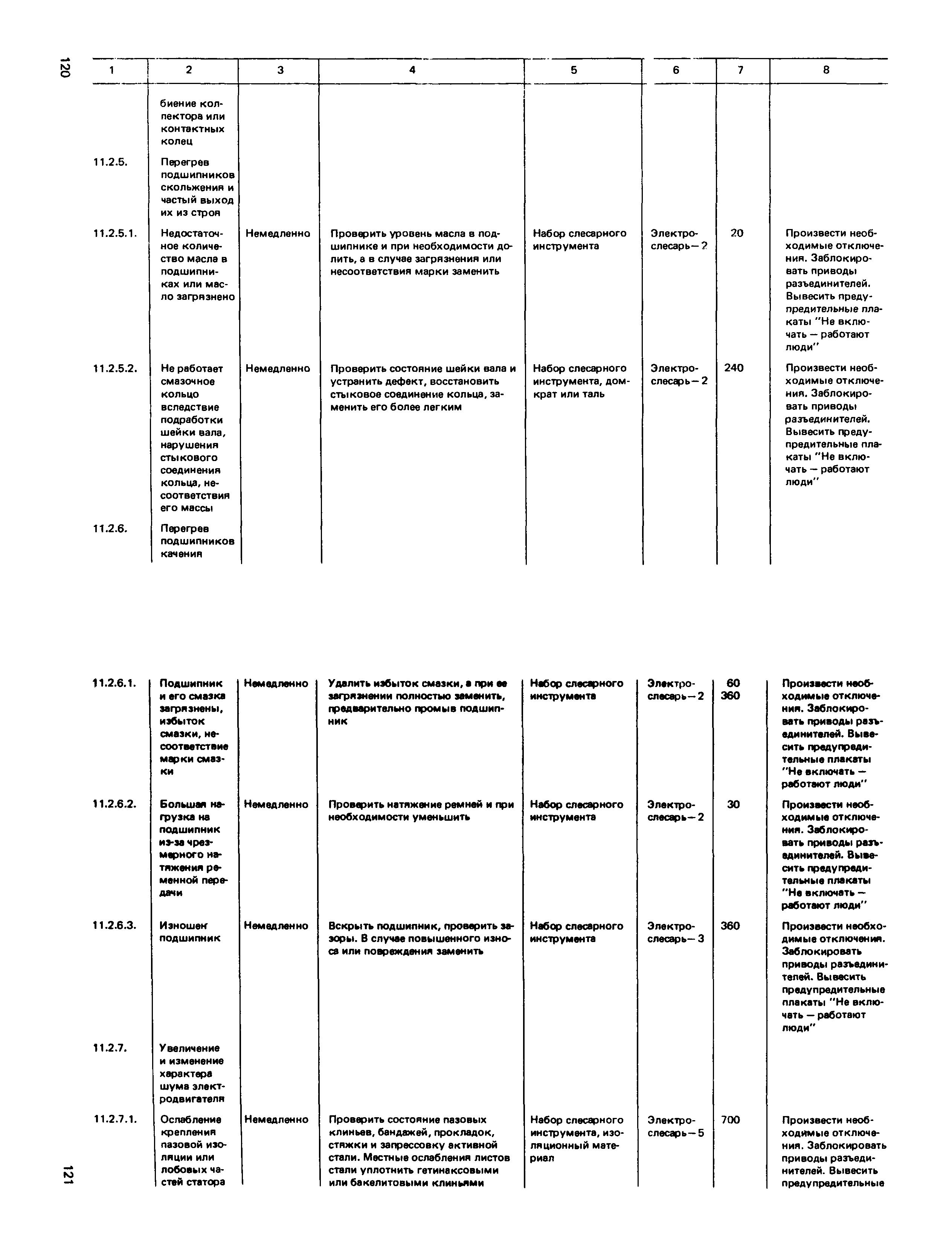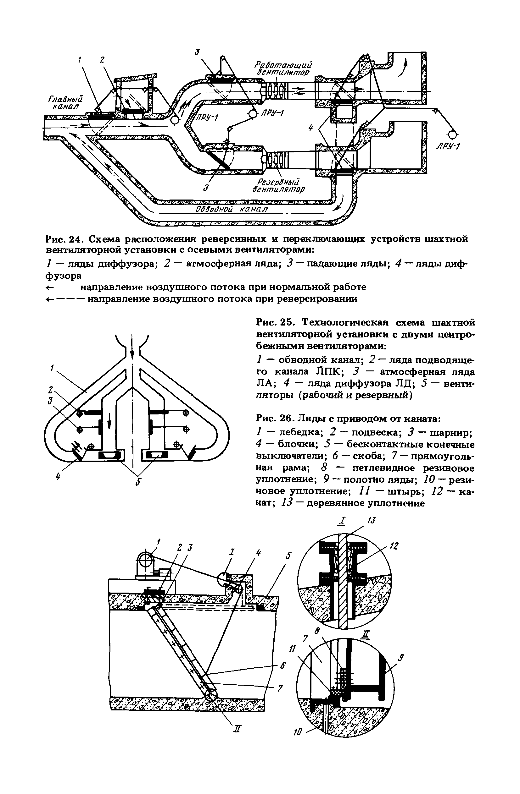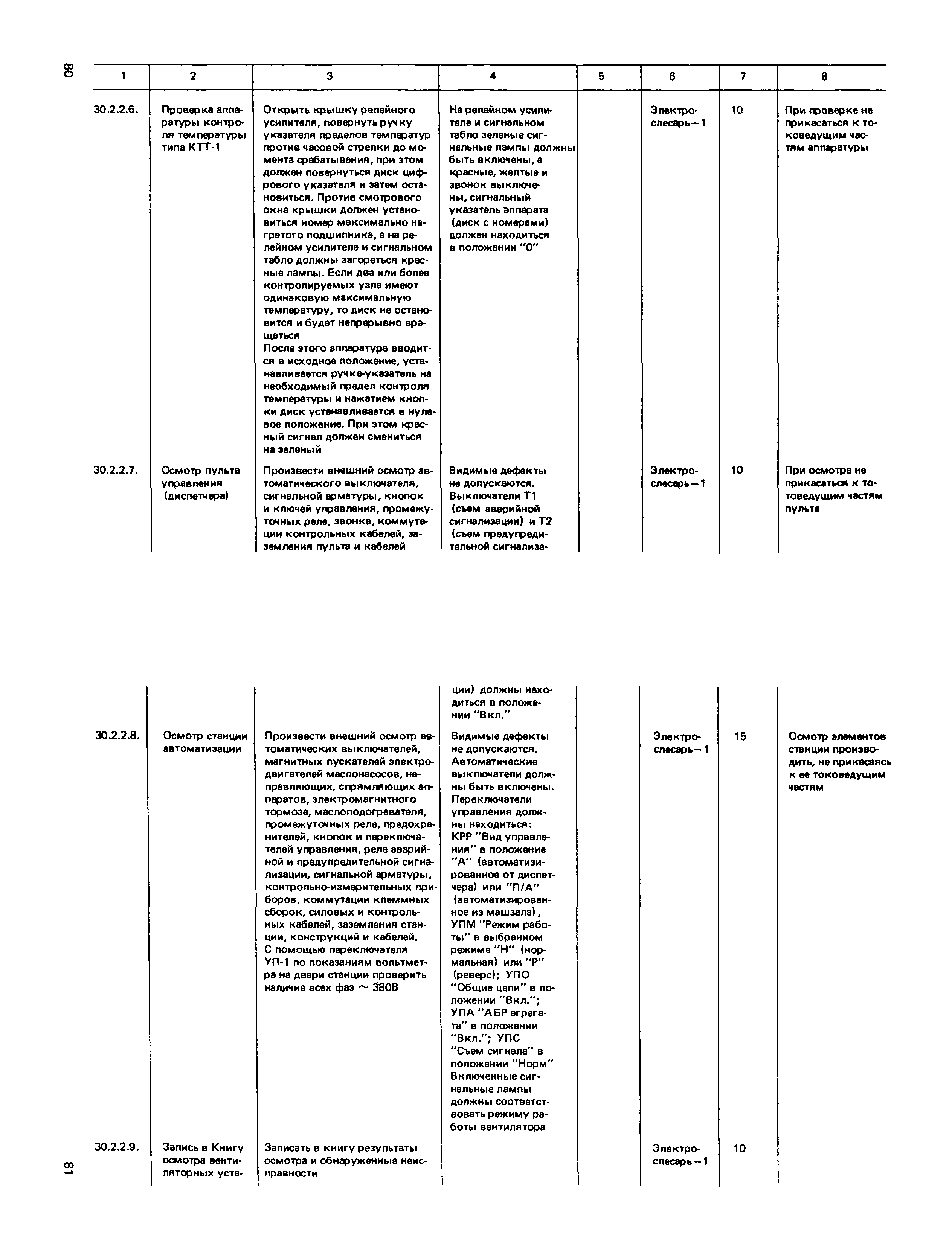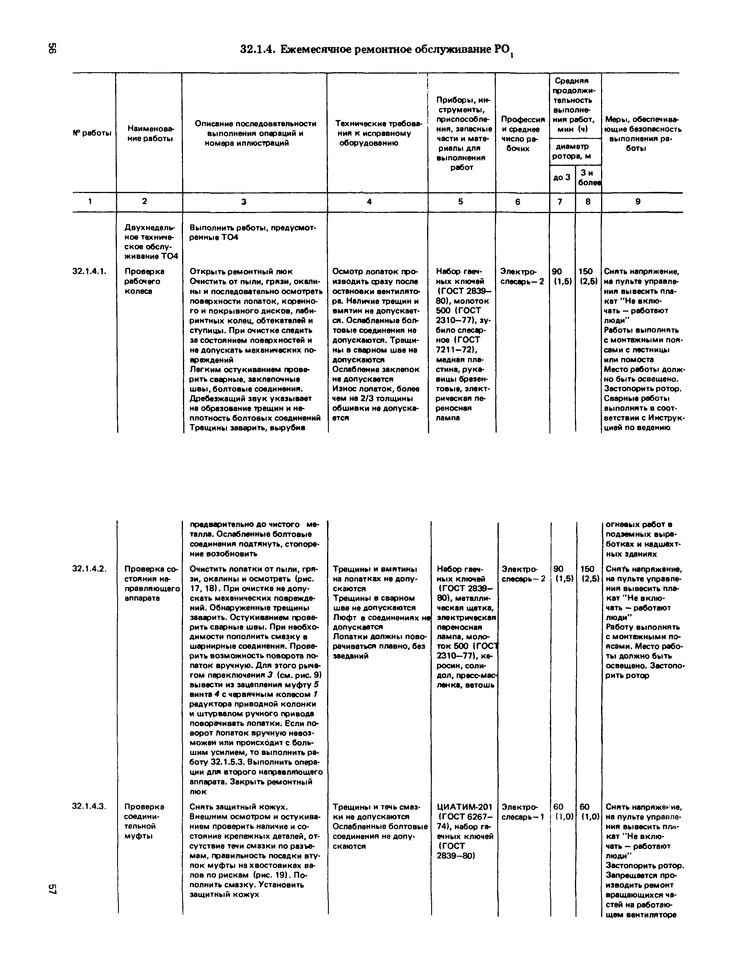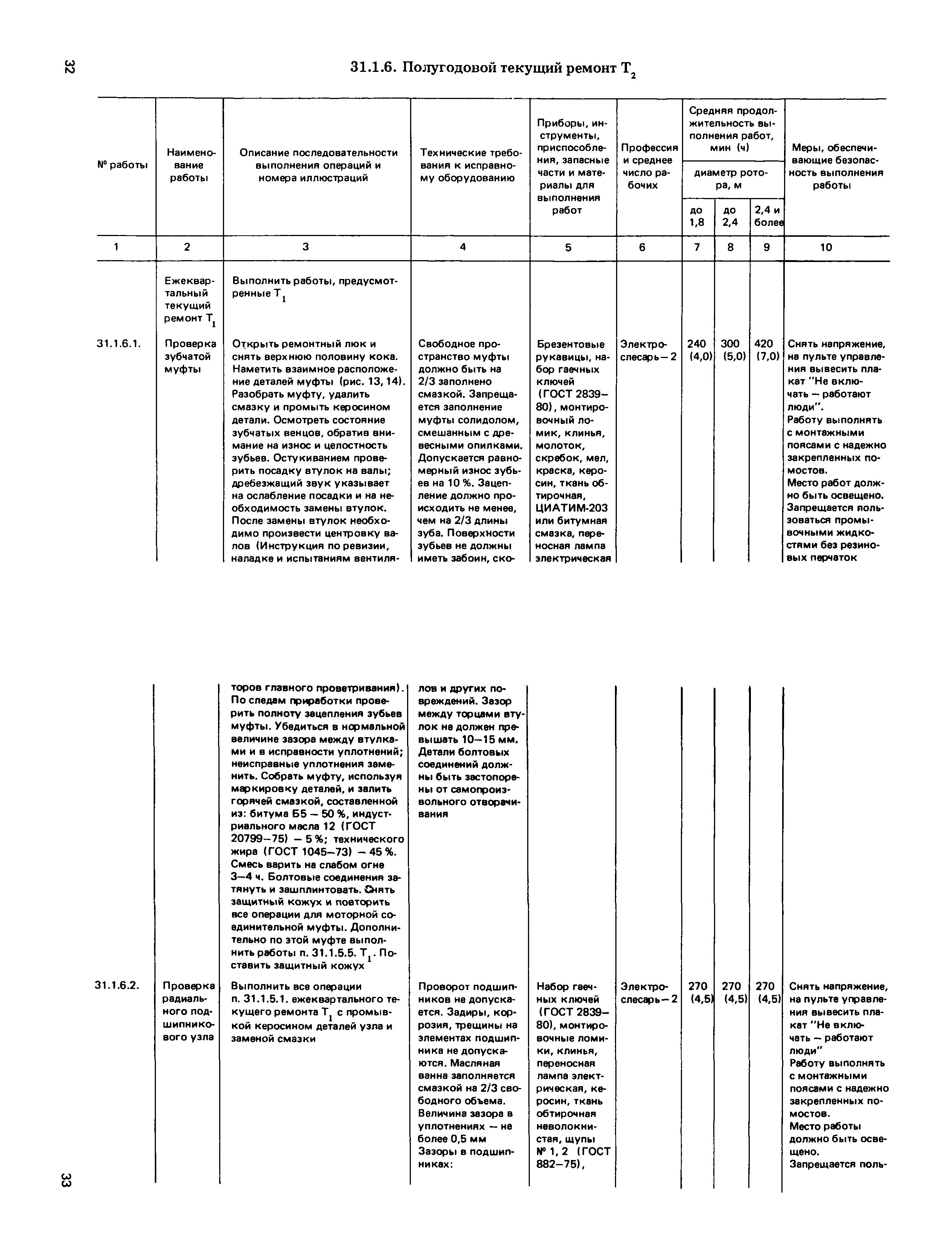 | Оглавление: | 1. Введение 2. Указание мер безопасности Меры безопасности при техническом обслуживании и ремонте механического оборудования вентиляторных установок Меры безопасности при Техническом обслуживании и ремонте электрооборудования вентиляторных установок Противопожарные мероприятия 3. Состав вентиляторной установки 4. Правила хранения оборудования шахтных вентиляторных установок 5. Организация смазочного хозяйства 6. Ревизия, наладка и испытания шахтной вентиляторной установки 7. Техническое обслуживание и текущий ремонт 8. Технологические карты технического обслуживания и ремонта вентиля торной установки главного проветривания 8.1. Технологическая карта технического обслуживания и ремонта осевого вентилятора главного проветривания 31.1.1. Ежесменное техническое обслуживание ТО1 31.1.2. Ежесуточное техническое обслуживание ТО2 31.1.3. Двухнедельное техническое обслуживание ТО4 31.1.4. Ежемесячное ремонтное обслуживание РО1 31.1.5. Ежеквартальный текущий ремонт Т1 31.1.6. Полугодовой текущий ремонт Т2 31.1.7. Годовая ревизия и наладка (НРГ) 31.1.8. Двухгодичная ревизия и наладка (НРД) 8.2. Технологическая карта технического обслуживания и ремонта центробежного вентилятора главного проветривания 32.1.1. Ежесменное техническое обслуживание ТО1 32.1.2. Ежесуточное техническое обслуживание ТО2 32.1.3. Двухнедельное техническое обслуживание ТО4 32.1.4. Ежемесячное ремонтное обслуживание РО1 32.1.5. Ежеквартальный текущий ремонт Т1 32.1.6. Полугодовой текущий ремонт Т2 32.1.7. Годовая ревизия и наладка НРГ 32.1.8. двухгодичная ревизия и наладка НРД 9. Технологическая карта технического обслуживания и ремонта электрического оборудования вентиляторной установки главного проветривания 30.2.1. Ежесменное техническое обслуживание ТО1 30.2.2. Ежесуточное техническое обслуживание ТО2 30.2.3. Двухнедельное техническое обслуживание ТО4 30.2.4. Ежемесячное ремонтное обслуживание РО1 30.2.5. Ежеквартальный текущий ремонт Т1 30.2.6. Полугодовой текущий ремонт Т2 30.2.7. Годовая ревизия и наладка НРГ 30.2.8. Двухгодичная ревизия и наладка НРД 10. Технологическая карта технического обслуживания и ремонта вспомогательного оборудования вентиляторной установки главного проветривания 30.3.1. Ежесменное техническое обслуживание ТО1 30.3.2. Ежесуточное техническое обслуживание ТО2 30.3.3. двухнедельное техническое обслуживание ТО4 30.3.4. Ежемесячное ремонтное обслуживание РО1 30.3.5. Полугодовой текущий ремонт Т2 30.3.6. Годовая ревизия и наладка НРГ 30.3.7. двухгодичная ревизия и наладка НРД 11. Возможные неисправности и методы их устранения 11.1. Возможные неисправности вентиляторов и методы их устранения 11.2. Возможные неисправности электрического оборудования и методы их устранения 11.3. Возможные неисправности вспомогательного оборудования и методы их устранения Список литературы |