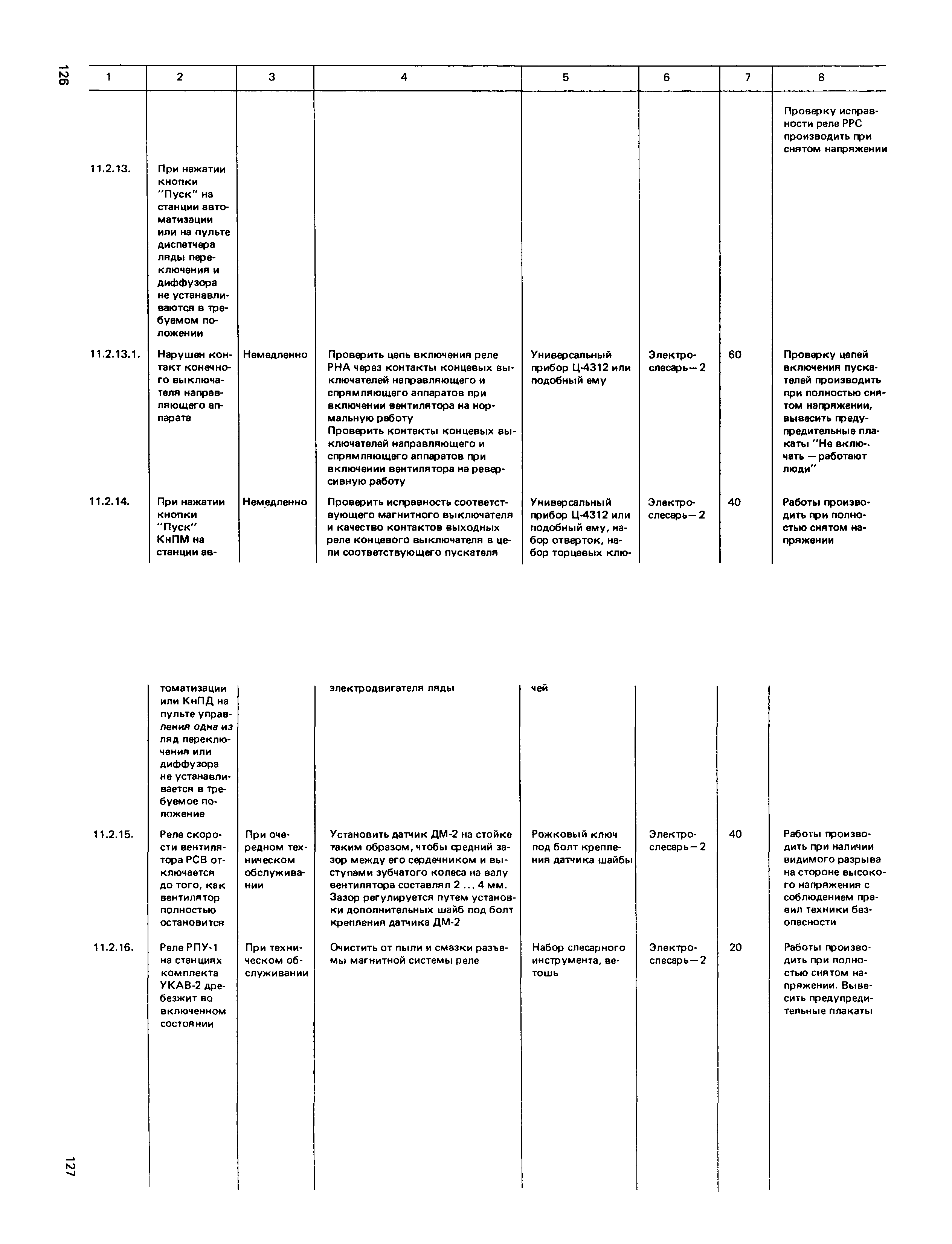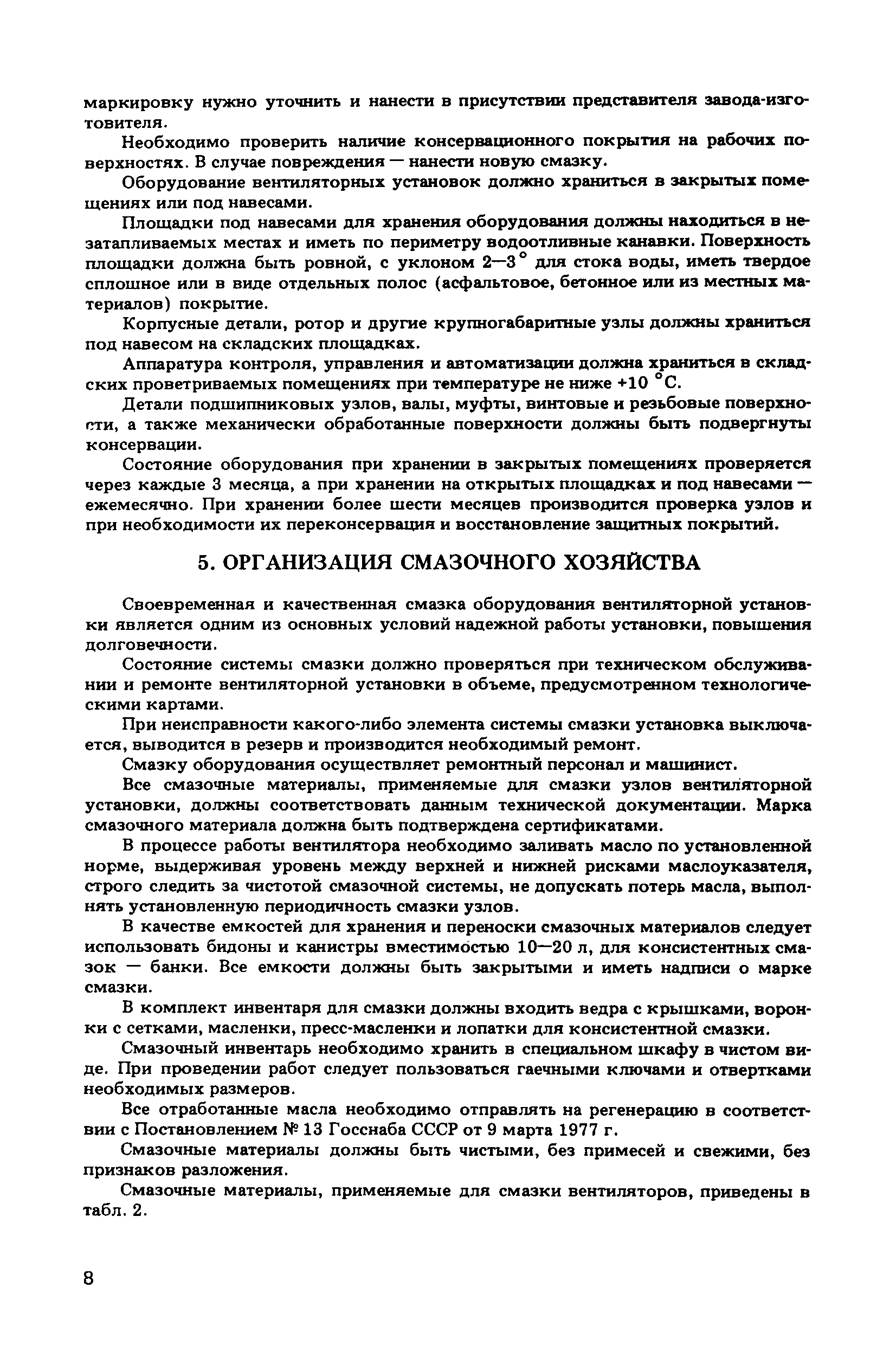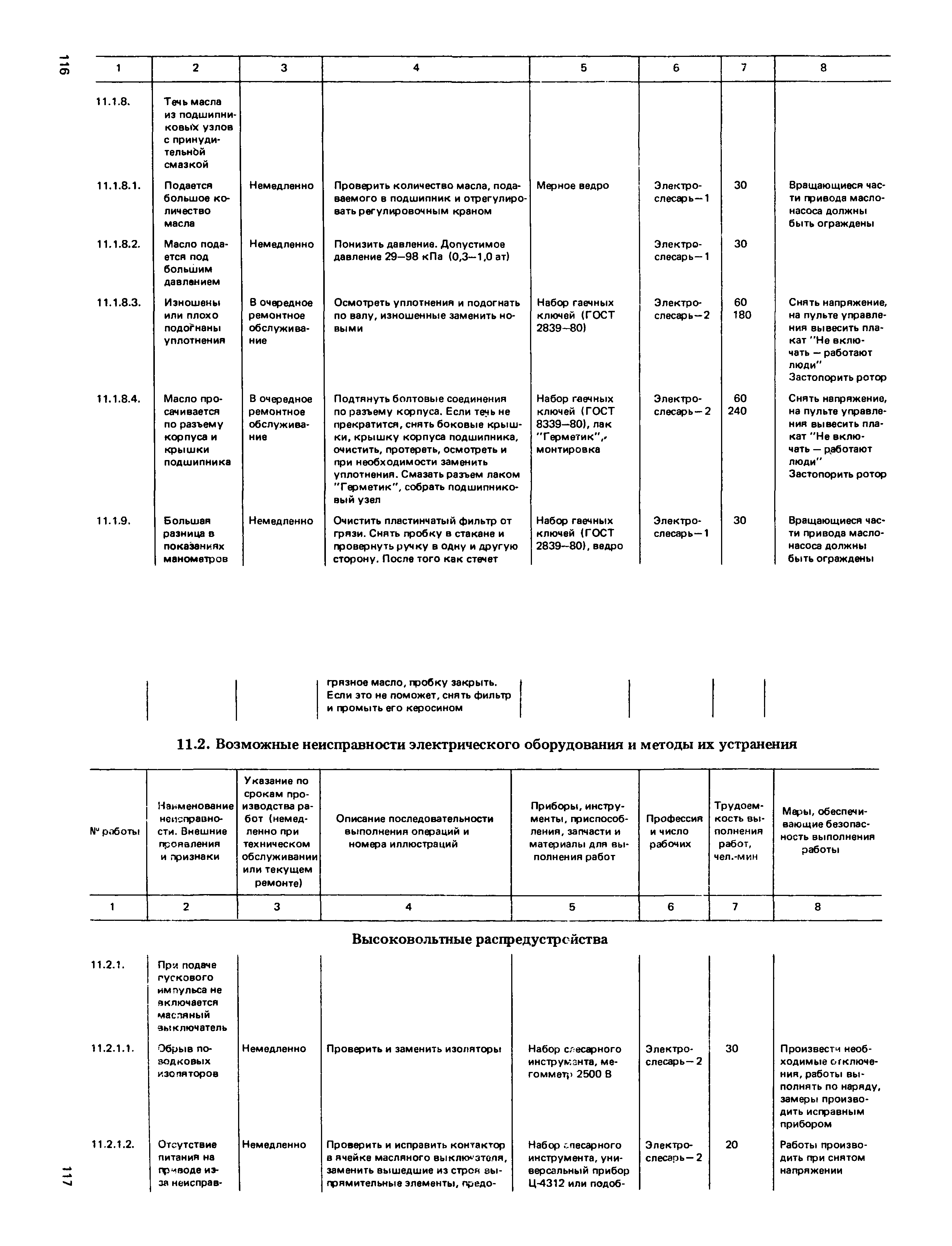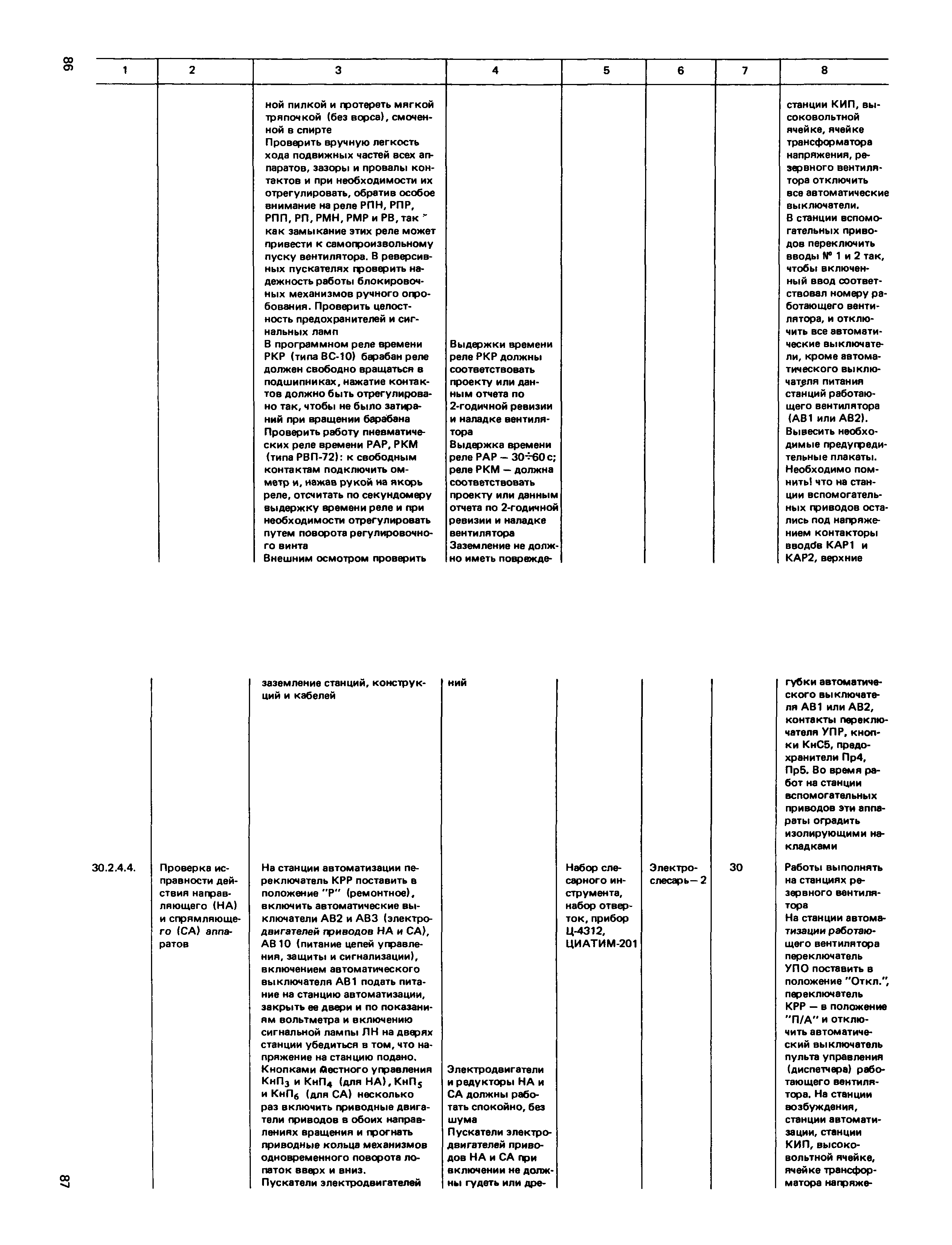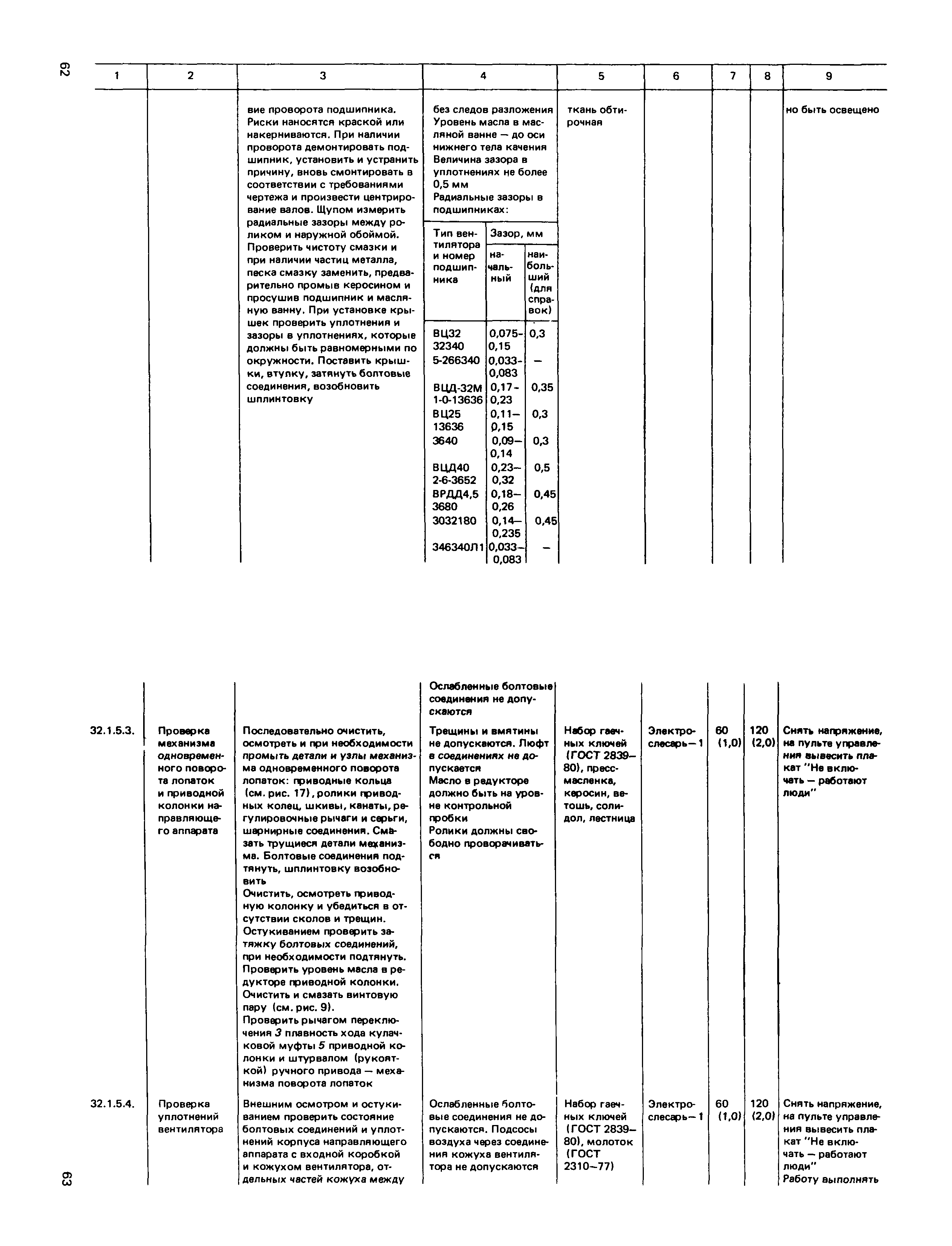| Оглавление: | 1. Введение 2. Указание мер безопасности Меры безопасности при техническом обслуживании и ремонте механического оборудования вентиляторных установок Меры безопасности при Техническом обслуживании и ремонте электрооборудования вентиляторных установок Противопожарные мероприятия 3. Состав вентиляторной установки 4. Правила хранения оборудования шахтных вентиляторных установок 5. Организация смазочного хозяйства 6. Ревизия, наладка и испытания шахтной вентиляторной установки 7. Техническое обслуживание и текущий ремонт 8. Технологические карты технического обслуживания и ремонта вентиля торной установки главного проветривания 8.1. Технологическая карта технического обслуживания и ремонта осевого вентилятора главного проветривания 31.1.1. Ежесменное техническое обслуживание ТО1 31.1.2. Ежесуточное техническое обслуживание ТО2 31.1.3. Двухнедельное техническое обслуживание ТО4 31.1.4. Ежемесячное ремонтное обслуживание РО1 31.1.5. Ежеквартальный текущий ремонт Т1 31.1.6. Полугодовой текущий ремонт Т2 31.1.7. Годовая ревизия и наладка (НРГ) 31.1.8. Двухгодичная ревизия и наладка (НРД) 8.2. Технологическая карта технического обслуживания и ремонта центробежного вентилятора главного проветривания 32.1.1. Ежесменное техническое обслуживание ТО1 32.1.2. Ежесуточное техническое обслуживание ТО2 32.1.3. Двухнедельное техническое обслуживание ТО4 32.1.4. Ежемесячное ремонтное обслуживание РО1 32.1.5. Ежеквартальный текущий ремонт Т1 32.1.6. Полугодовой текущий ремонт Т2 32.1.7. Годовая ревизия и наладка НРГ 32.1.8. двухгодичная ревизия и наладка НРД 9. Технологическая карта технического обслуживания и ремонта электрического оборудования вентиляторной установки главного проветривания 30.2.1. Ежесменное техническое обслуживание ТО1 30.2.2. Ежесуточное техническое обслуживание ТО2 30.2.3. Двухнедельное техническое обслуживание ТО4 30.2.4. Ежемесячное ремонтное обслуживание РО1 30.2.5. Ежеквартальный текущий ремонт Т1 30.2.6. Полугодовой текущий ремонт Т2 30.2.7. Годовая ревизия и наладка НРГ 30.2.8. Двухгодичная ревизия и наладка НРД 10. Технологическая карта технического обслуживания и ремонта вспомогательного оборудования вентиляторной установки главного проветривания 30.3.1. Ежесменное техническое обслуживание ТО1 30.3.2. Ежесуточное техническое обслуживание ТО2 30.3.3. двухнедельное техническое обслуживание ТО4 30.3.4. Ежемесячное ремонтное обслуживание РО1 30.3.5. Полугодовой текущий ремонт Т2 30.3.6. Годовая ревизия и наладка НРГ 30.3.7. двухгодичная ревизия и наладка НРД 11. Возможные неисправности и методы их устранения 11.1. Возможные неисправности вентиляторов и методы их устранения 11.2. Возможные неисправности электрического оборудования и методы их устранения 11.3. Возможные неисправности вспомогательного оборудования и методы их устранения Список литературы |