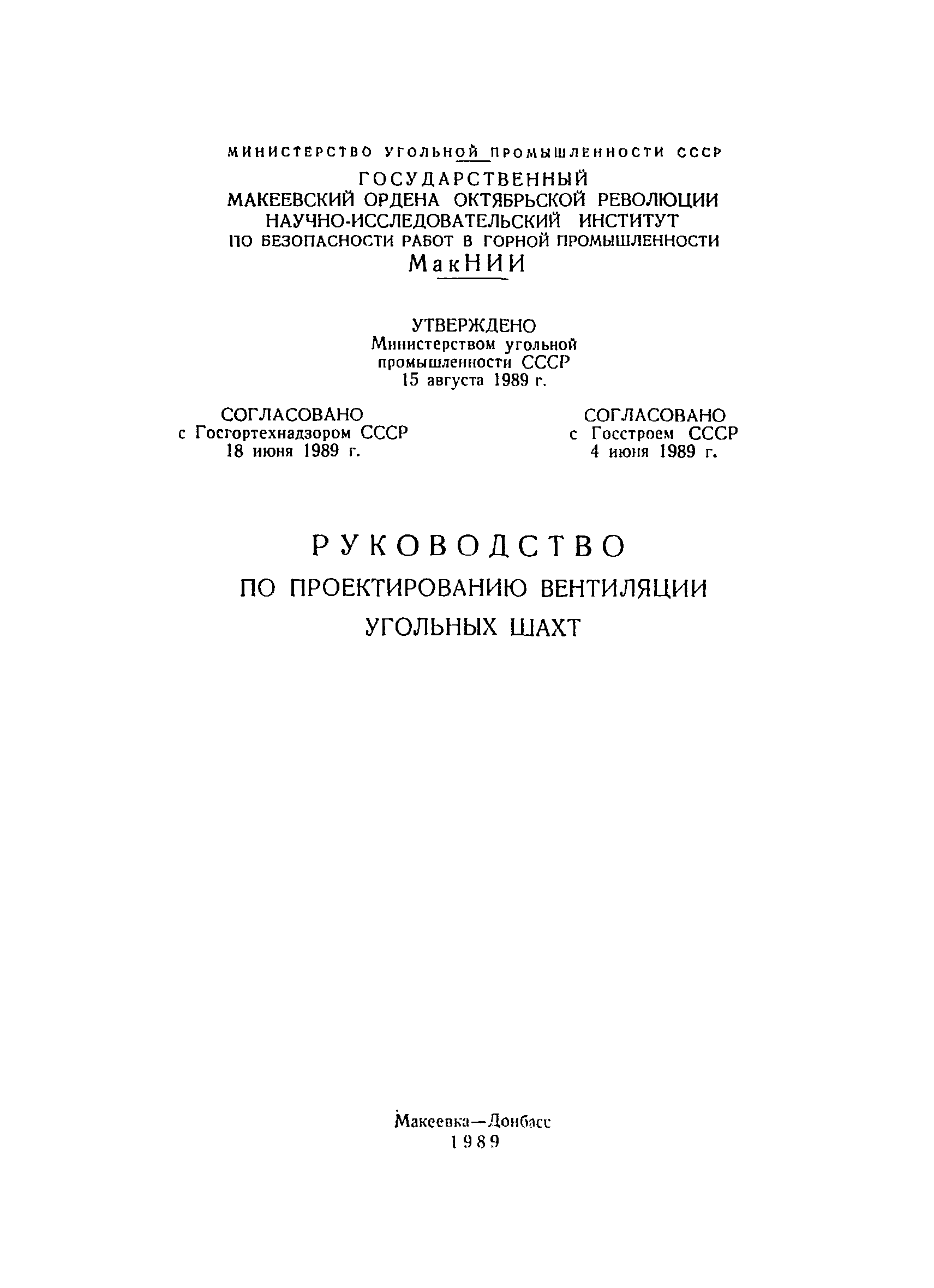 | Утверждён: | 15.08.1989 Министерство угольной промышленности СССР (USSR Ministry of the Coal Industry ) |