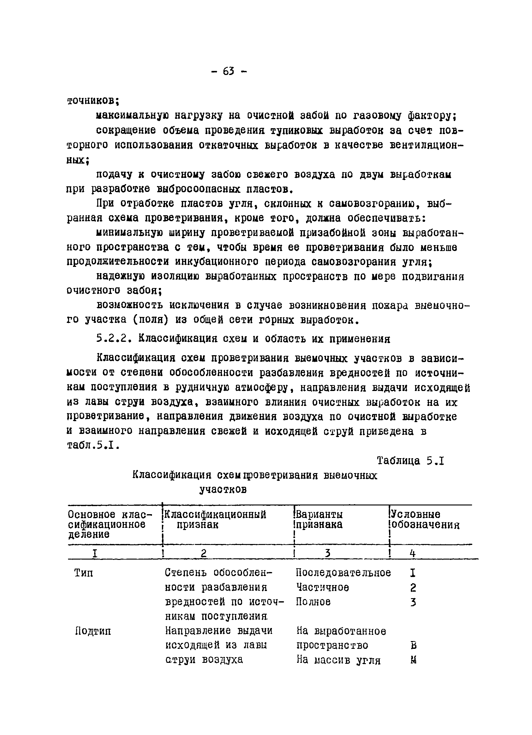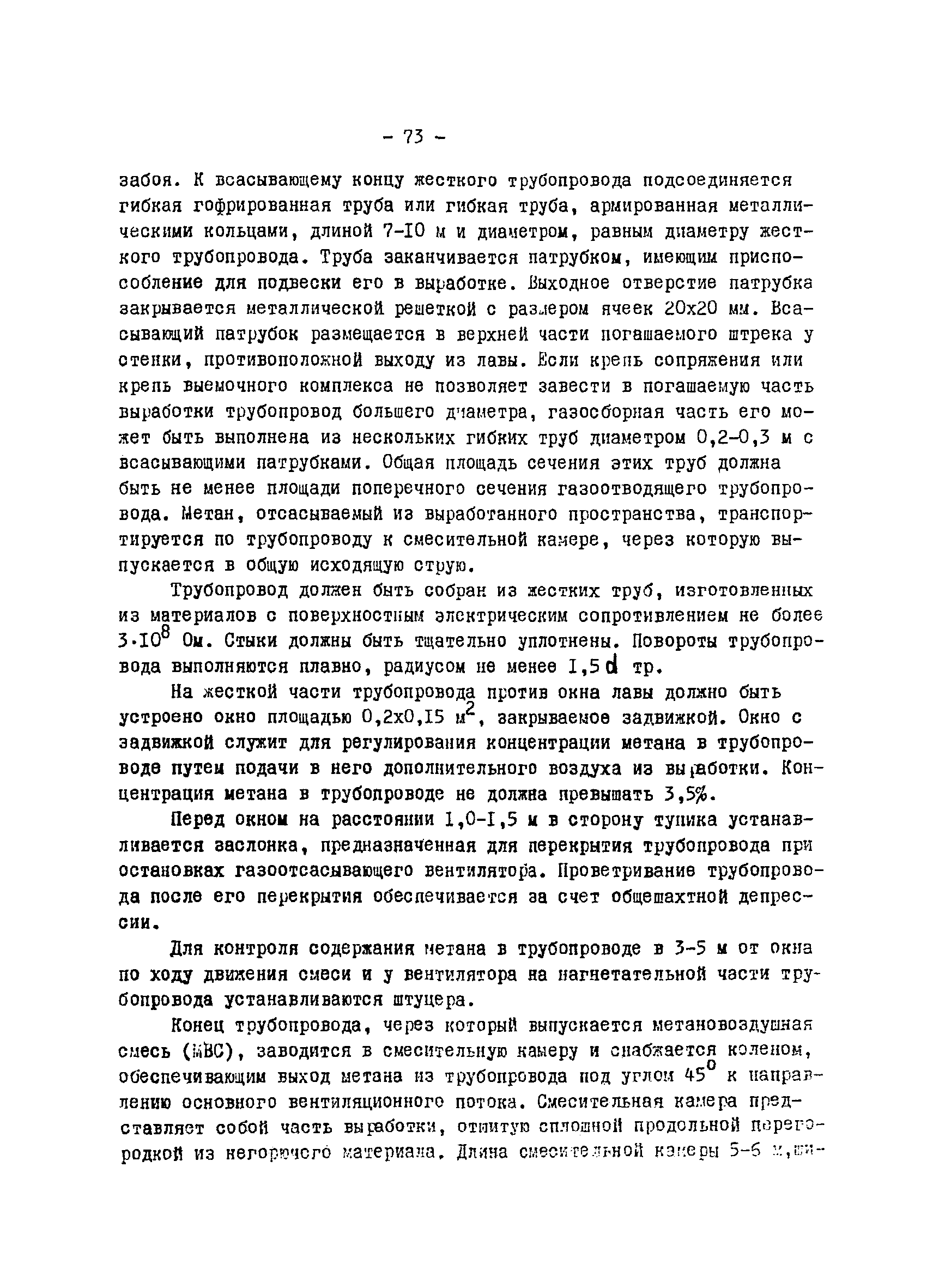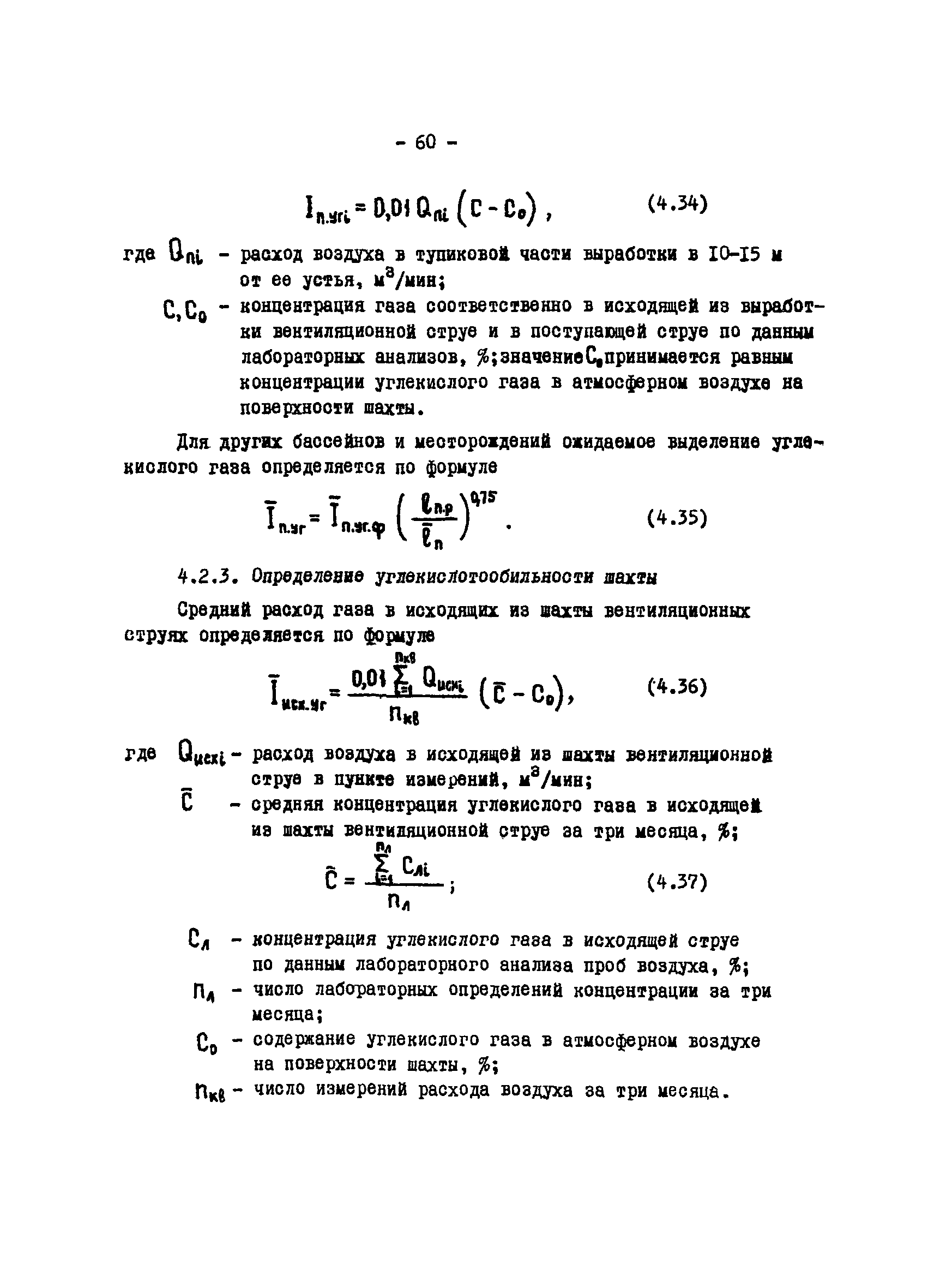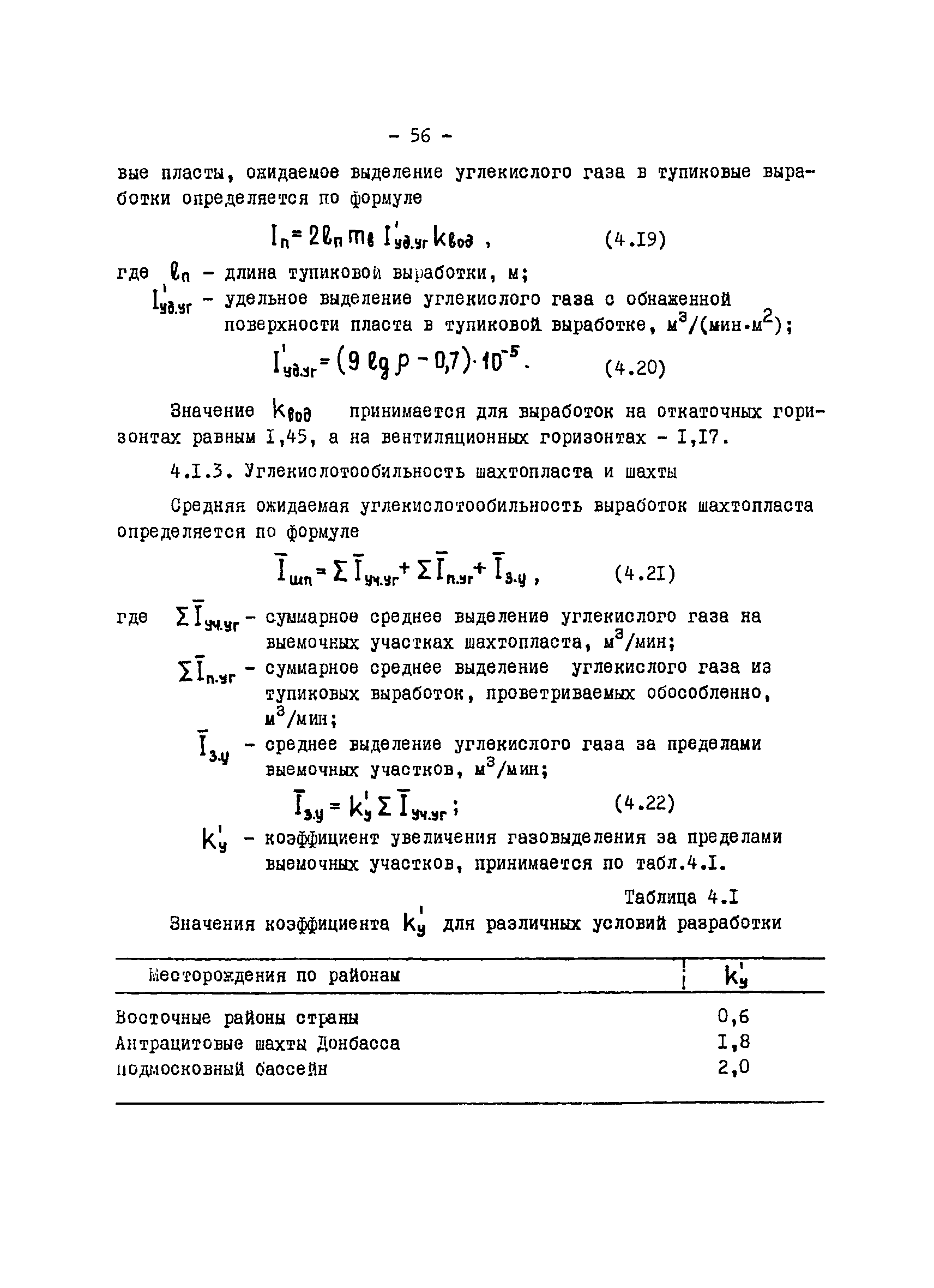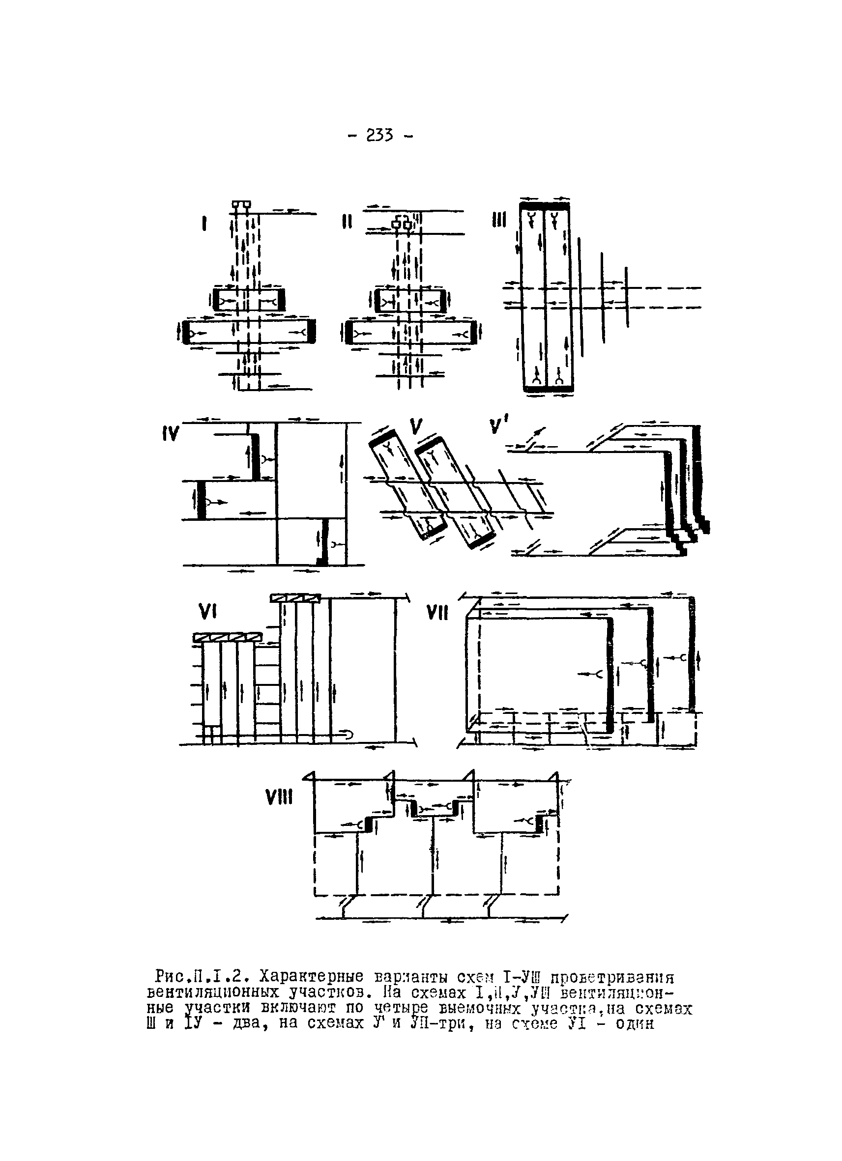 | Оглавление: | Основные условные обозначения 1. Общие положения 1.1. Геологоразведочные организация 1.2. Угольные шахты 1.3. Проектные организации 1.4. Научно-исследовательские институты и служба ВГСЧ 2. Порядок проектирования вентиляции угольных вахт 2.1. Проектирование вентиляции новых шахт и на период строительства 2.2. Проектирование вентиляции реконструируемых шахт и новых горизонтов на действующих шахтах 3. Прогноз метанообильности выработок угольных шахт 3.1. Прогноз метанообильности выработок по метаноносности угольных пластов 3.1.1. Метановыделение из разрабатываемого пласта 3.1.2. Метановыделение из сближенных угольных пластов (спутников) 3.1.3. Метановыделение из вмещающих пород 3.1.4. Метан обильность тупиковых выработок 3.1.5. Метановыделение при проведении вертикальных стволов 3.1.6. Определение относительной метанообильности шахты 3.2. Определение ожидаемой абсолютной газообильности выработок действующей шахты 3.2.1. Общие положения определения фактической газообильности горных выработок 3.2.2. Определение метанообильности тупиковых выработок 3.2.3. Определение газообильности очистных выработок и выемочных участков 3.2.4. Определение ожидаемого метановыделения очистной выработки и выемочного участка 3.2.5. Определение метанообильности шахты 4. Прогноз углекислотообильности горных выработок 4.1. Прогноз углекислотообильности горных выработок по степени метаморфизма углей 4.1.1. Углекислотообильность выемочного участка 4.1.2. Углекислотообильность тупиковых выработок 4.1.3. Углекислотообильность шахтопласта и шахты 4.2. Определение ожидаемой углекислотообильности выработок действующей шахты 4.2.1. Определение углекислотообильности очистных выработок и выемочных участков 4.2.2. Определение углекислотообильности тупиковых выработок 4.2.3. Определение углекислотообильности шахты 5. Способы и схемы проветривания шахт 5.1. Выбор схемы и способа проветривания шахты 5.2. Схемы проветривания выемочных участков 5.2.1. Требования к схемам проветривания выемочных участков 5.2.2. Классификация схем и область их применения 5.2.3. Проверка схем проветривания выемочных участков по опасности местных скоплений метана 5.2.4. Способы предупреждения образования местных скоплений метана 5.2.5. Оценка схем проветривания выемочных участков по фактору эндогенной пожароопасности 5.3. Схемы проветривания стволов и тупиковых выработок 6. Максимально допустимая нагрузка на очистную выработку по газовому фактору 6.1. Расчет максимально допустимой нагрузки на очистную выработку при проектировании новых шахт 6.1.1. Для очистных выработок типа лав по природной метаноносности угольных пластов 6.1.2. Для систем разработки с камерообразными выработками 6.2. Расчет максимально допустимой нагрузки на очистную выработку для действующих шахт 7. Расчет расхода воздуха для проветривания угольных шахт 7.1. Расчет расхода воздуха для шахты в целом 7.2. Расчет расхода воздуха для проветривания одиночных тупиковых выработок и вертикальных стволов 7.3. Расчет расхода воздуха для проветривания очистных выработок 7.4. Расход воздуха для проветривания выемочных участков 7.5. Расход воздуха для проветривания погашаемых и поддерживаемых выработок 7.6. Расход воздуха для проветривания камер 7.7. Утечки воздуха через вентиляционные сооружения 7.8. Выбор средств проветривания тупиковых выработок 