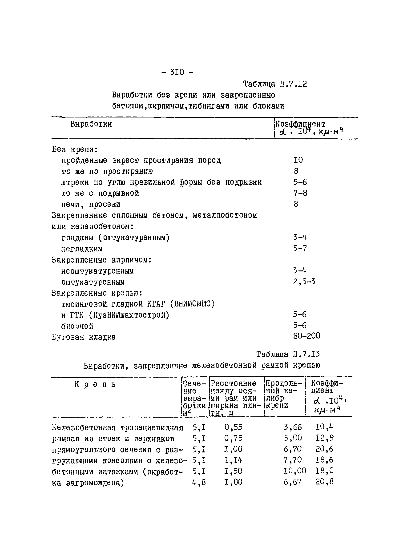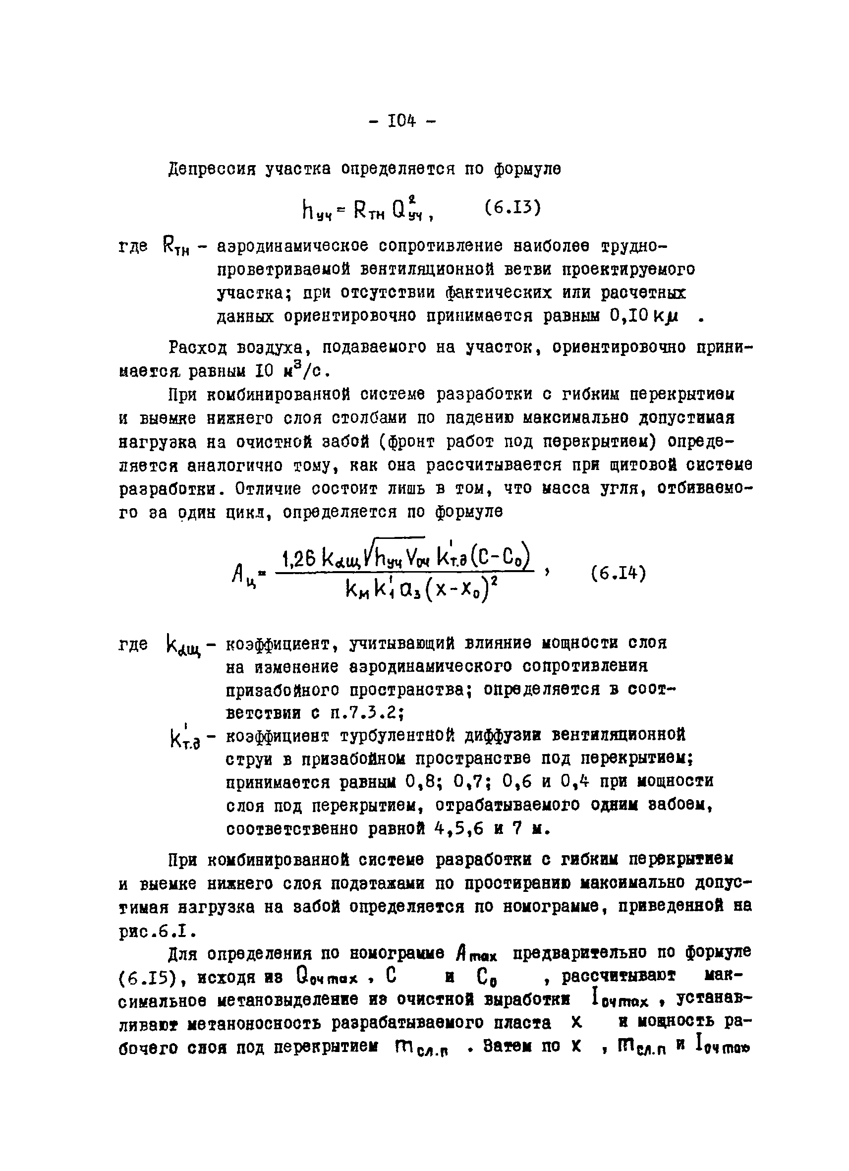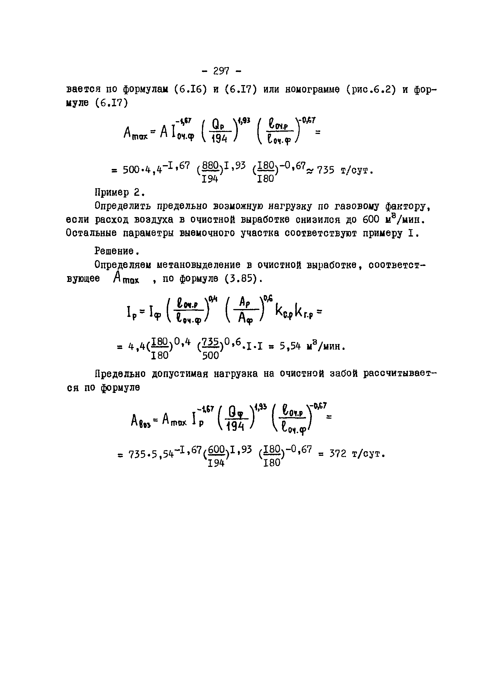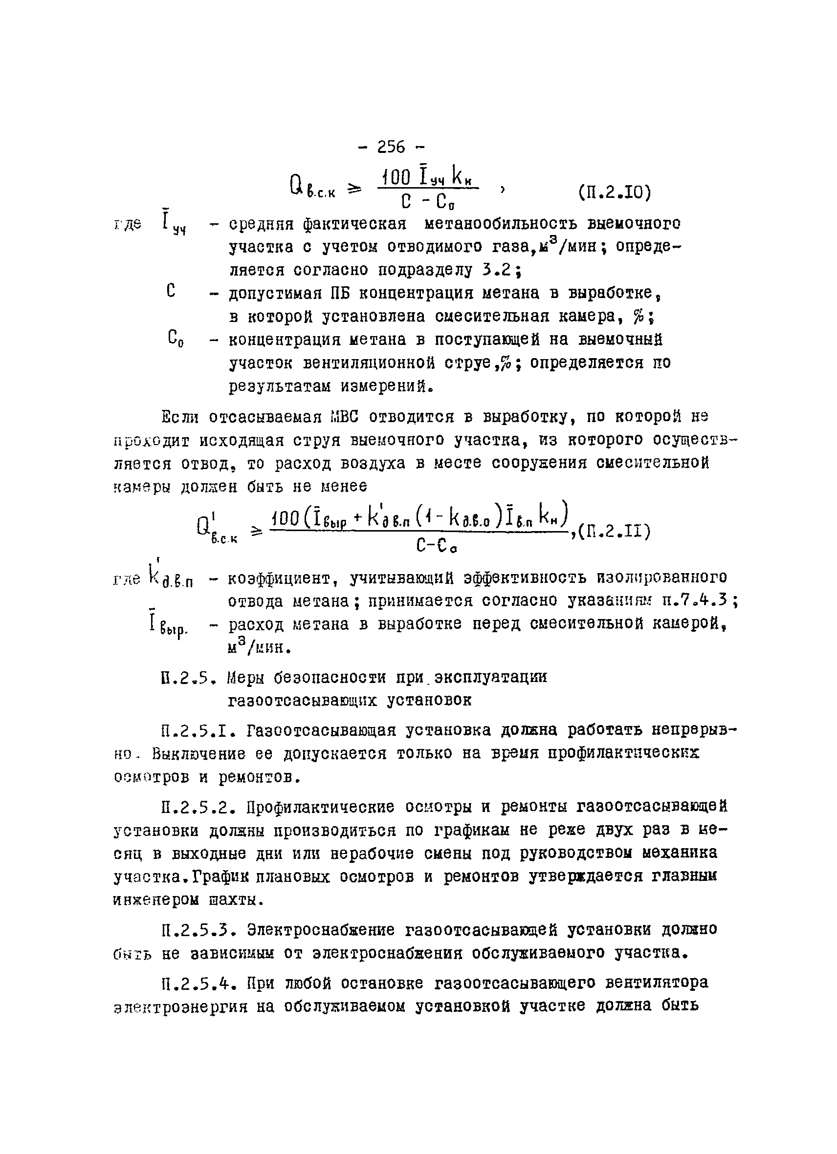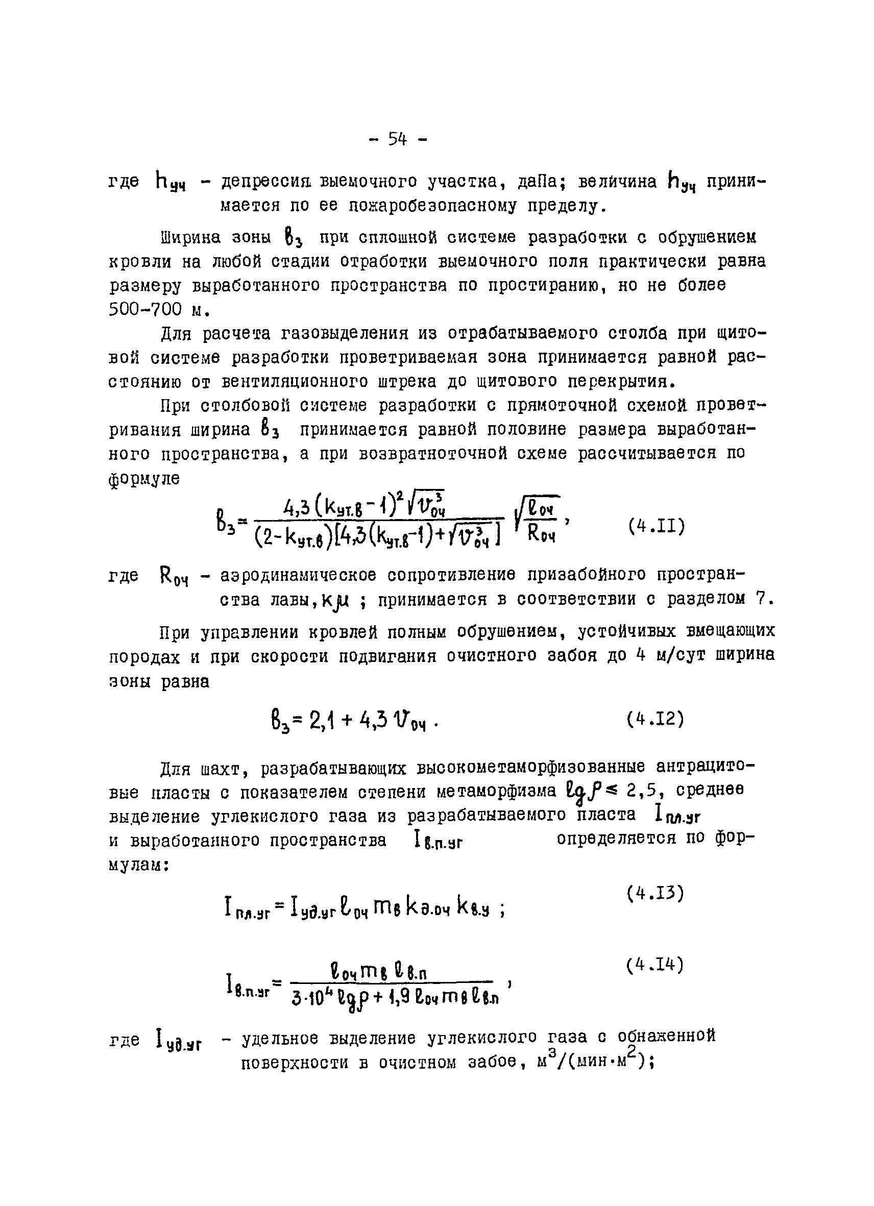 | Оглавление: | Основные условные обозначения 1. Общие положения 1.1. Геологоразведочные организация 1.2. Угольные шахты 1.3. Проектные организации 1.4. Научно-исследовательские институты и служба ВГСЧ 2. Порядок проектирования вентиляции угольных вахт 2.1. Проектирование вентиляции новых шахт и на период строительства 2.2. Проектирование вентиляции реконструируемых шахт и новых горизонтов на действующих шахтах 3. Прогноз метанообильности выработок угольных шахт 3.1. Прогноз метанообильности выработок по метаноносности угольных пластов 3.1.1. Метановыделение из разрабатываемого пласта 3.1.2. Метановыделение из сближенных угольных пластов (спутников) 3.1.3. Метановыделение из вмещающих пород 3.1.4. Метан обильность тупиковых выработок 3.1.5. Метановыделение при проведении вертикальных стволов 3.1.6. Определение относительной метанообильности шахты 3.2. Определение ожидаемой абсолютной газообильности выработок действующей шахты 3.2.1. Общие положения определения фактической газообильности горных выработок 3.2.2. Определение метанообильности тупиковых выработок 3.2.3. Определение газообильности очистных выработок и выемочных участков 3.2.4. Определение ожидаемого метановыделения очистной выработки и выемочного участка 3.2.5. Определение метанообильности шахты 4. Прогноз углекислотообильности горных выработок 4.1. Прогноз углекислотообильности горных выработок по степени метаморфизма углей 4.1.1. Углекислотообильность выемочного участка 4.1.2. Углекислотообильность тупиковых выработок 4.1.3. Углекислотообильность шахтопласта и шахты 4.2. Определение ожидаемой углекислотообильности выработок действующей шахты 4.2.1. Определение углекислотообильности очистных выработок и выемочных участков 4.2.2. Определение углекислотообильности тупиковых выработок 4.2.3. Определение углекислотообильности шахты 5. Способы и схемы проветривания шахт 5.1. Выбор схемы и способа проветривания шахты 5.2. Схемы проветривания выемочных участков 5.2.1. Требования к схемам проветривания выемочных участков 5.2.2. Классификация схем и область их применения 5.2.3. Проверка схем проветривания выемочных участков по опасности местных скоплений метана 5.2.4. Способы предупреждения образования местных скоплений метана 5.2.5. Оценка схем проветривания выемочных участков по фактору эндогенной пожароопасности 5.3. Схемы проветривания стволов и тупиковых выработок 6. Максимально допустимая нагрузка на очистную выработку по газовому фактору 6.1. Расчет максимально допустимой нагрузки на очистную выработку при проектировании новых шахт 6.1.1. Для очистных выработок типа лав по природной метаноносности угольных пластов 6.1.2. Для систем разработки с камерообразными выработками 6.2. Расчет максимально допустимой нагрузки на очистную выработку для действующих шахт 7. Расчет расхода воздуха для проветривания угольных шахт 7.1. Расчет расхода воздуха для шахты в целом 7.2. Расчет расхода воздуха для проветривания одиночных тупиковых выработок и вертикальных стволов 7.3. Расчет расхода воздуха для проветривания очистных выработок 7.4. Расход воздуха для проветривания выемочных участков 7.5. Расход воздуха для проветривания погашаемых и поддерживаемых выработок 7.6. Расход воздуха для проветривания камер 7.7. Утечки воздуха через вентиляционные сооружения 7.8. Выбор средств проветривания тупиковых выработок 